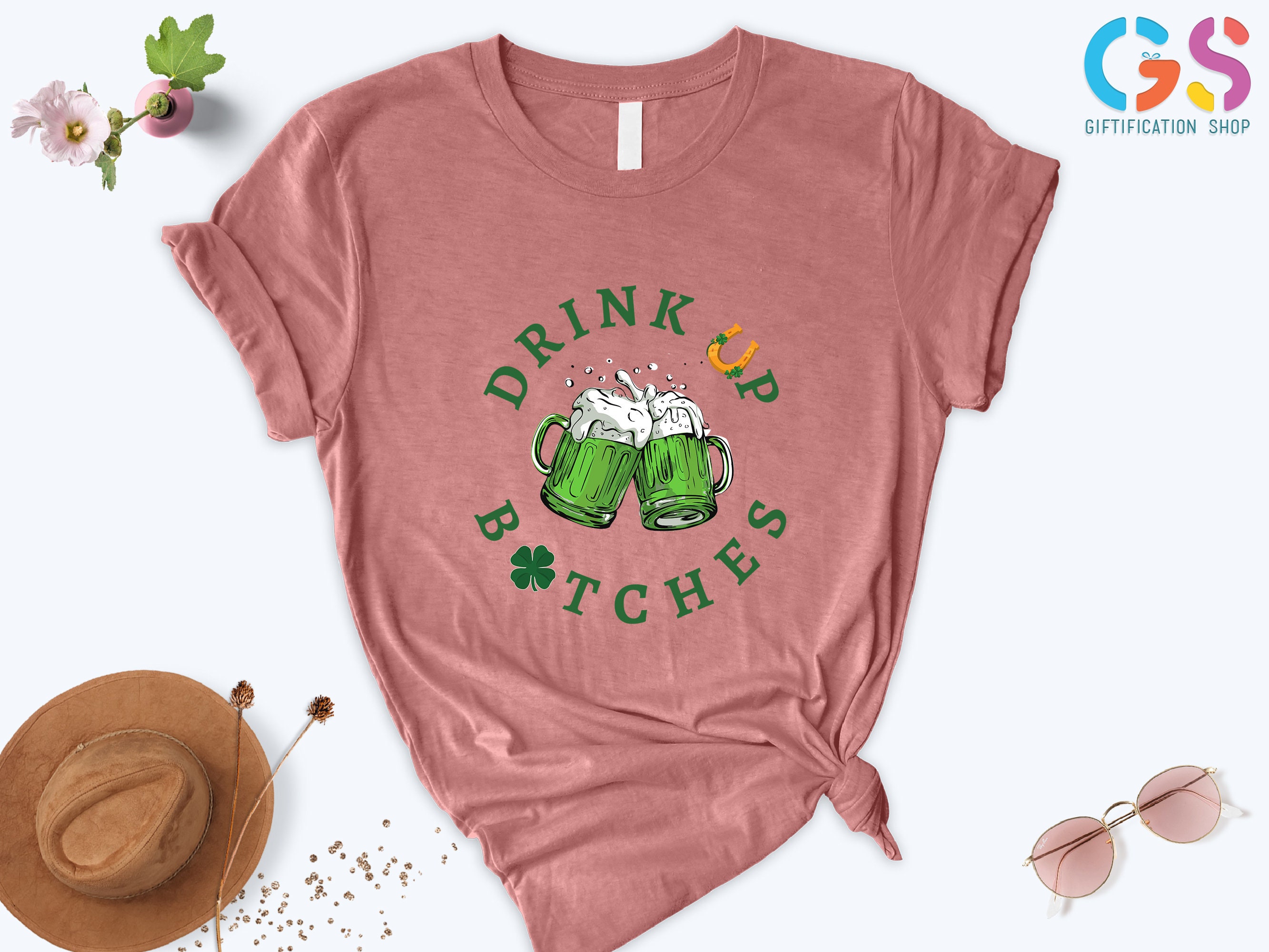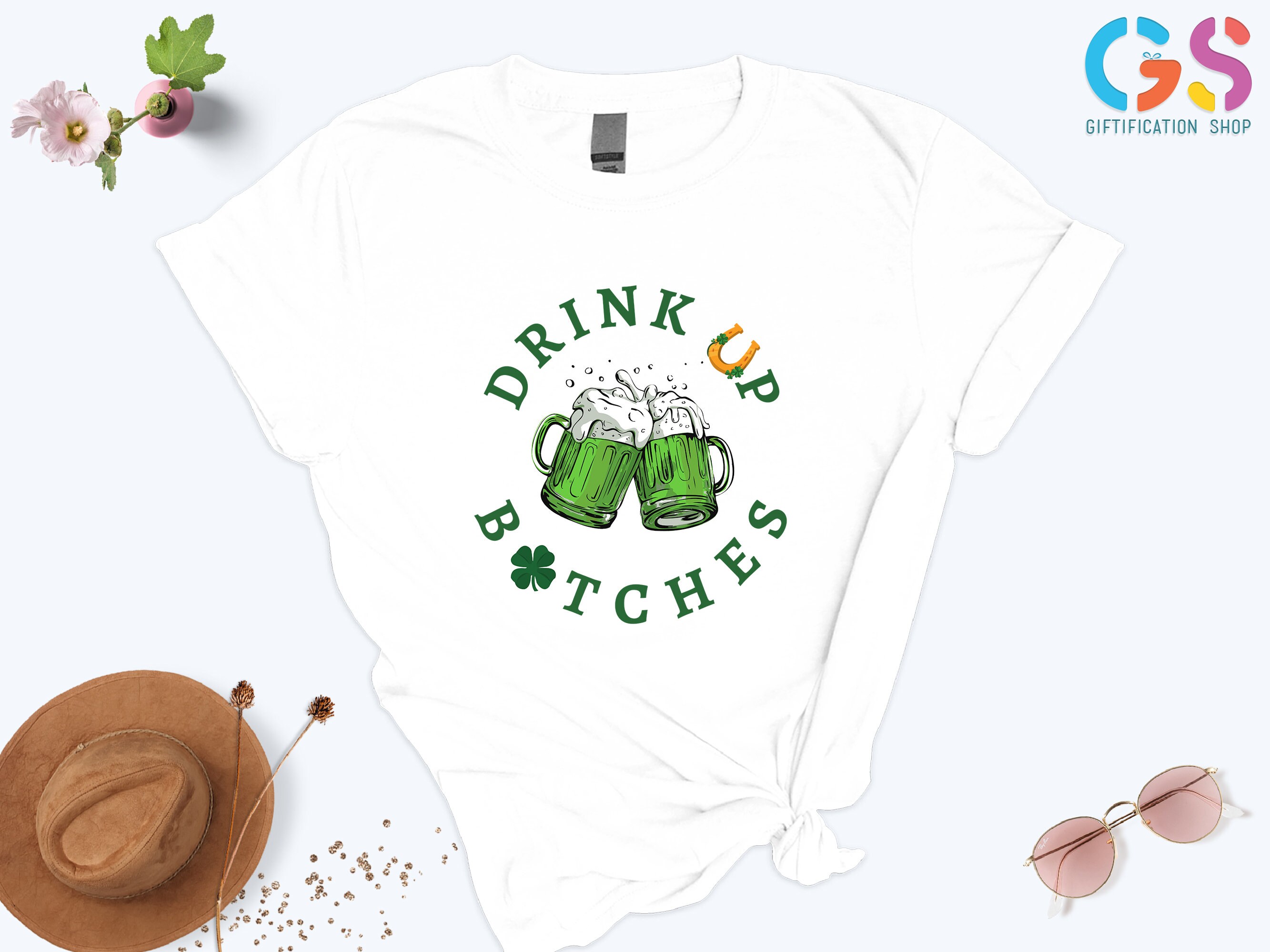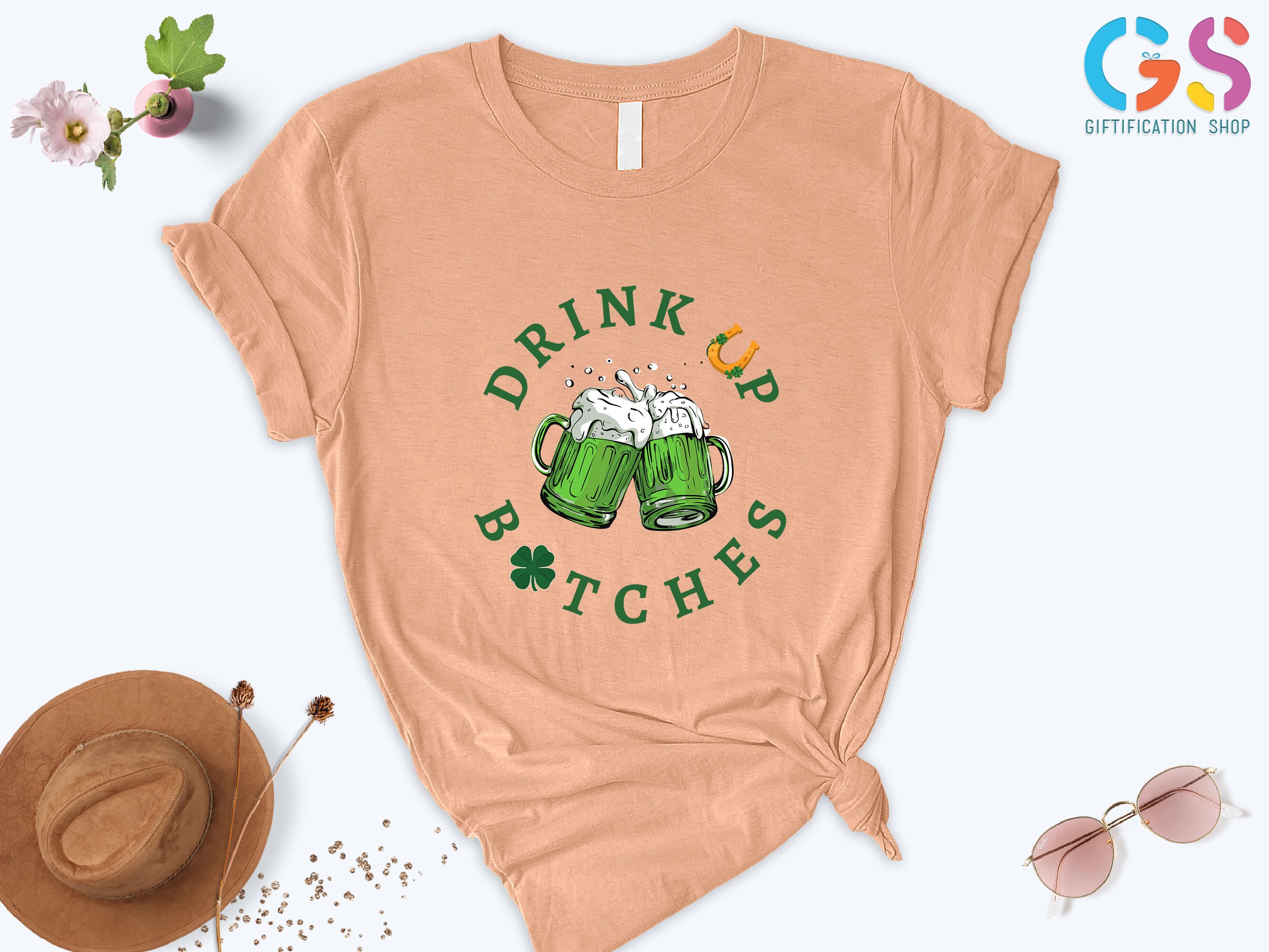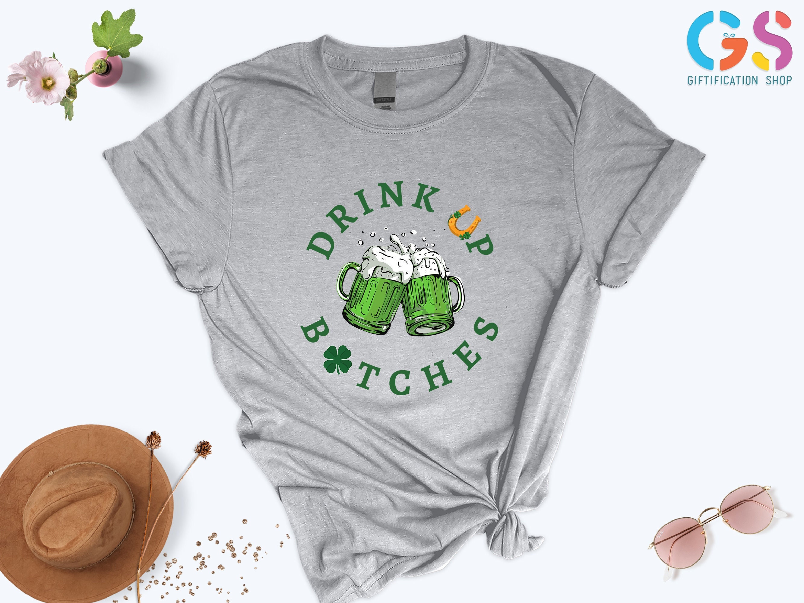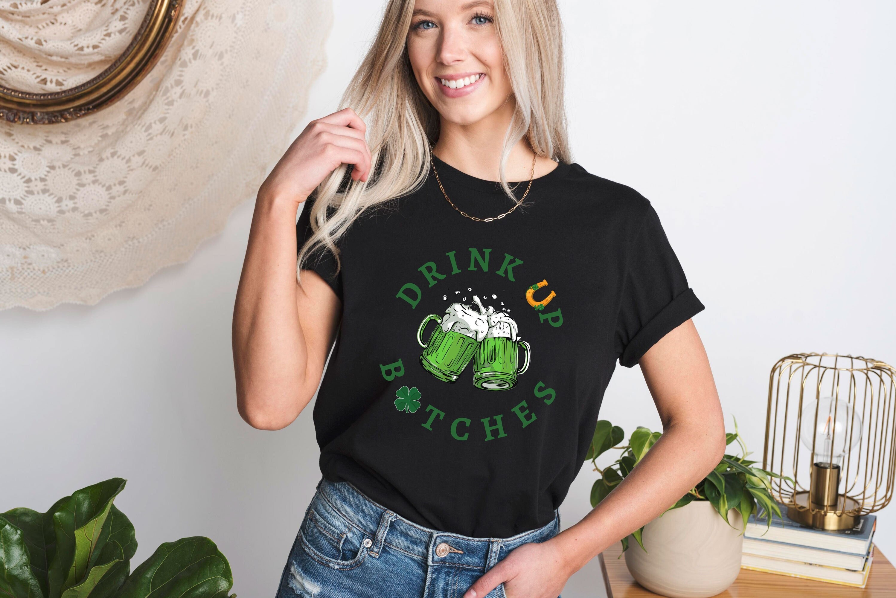 ** KEY FEATURES Drink Up Bitches T-Shirt, Black St Patricks Day Shirt, St Patricks Shirt Women, Women T-Shirt, Gift for Women, Irish Shamrock Fest Beer