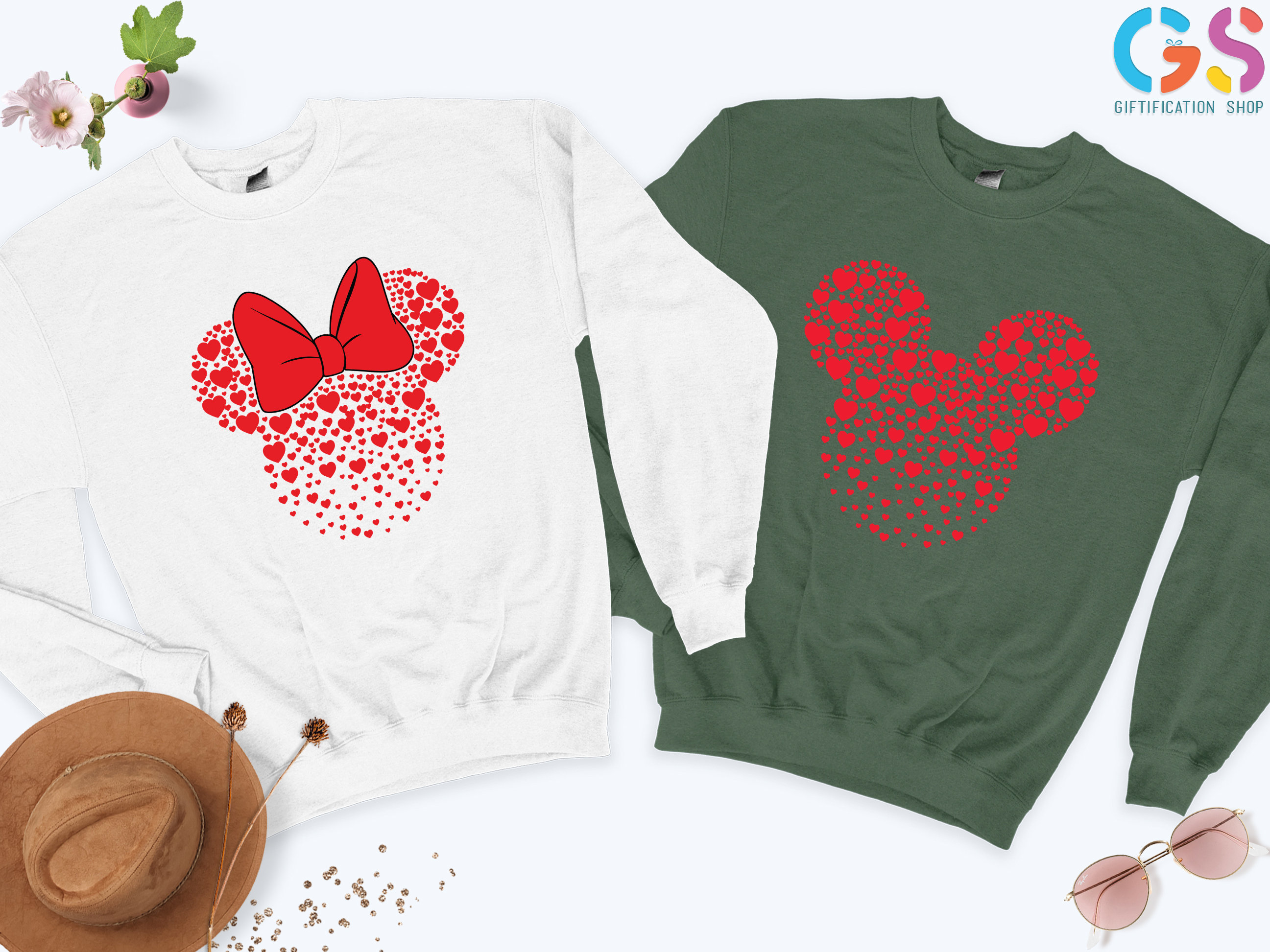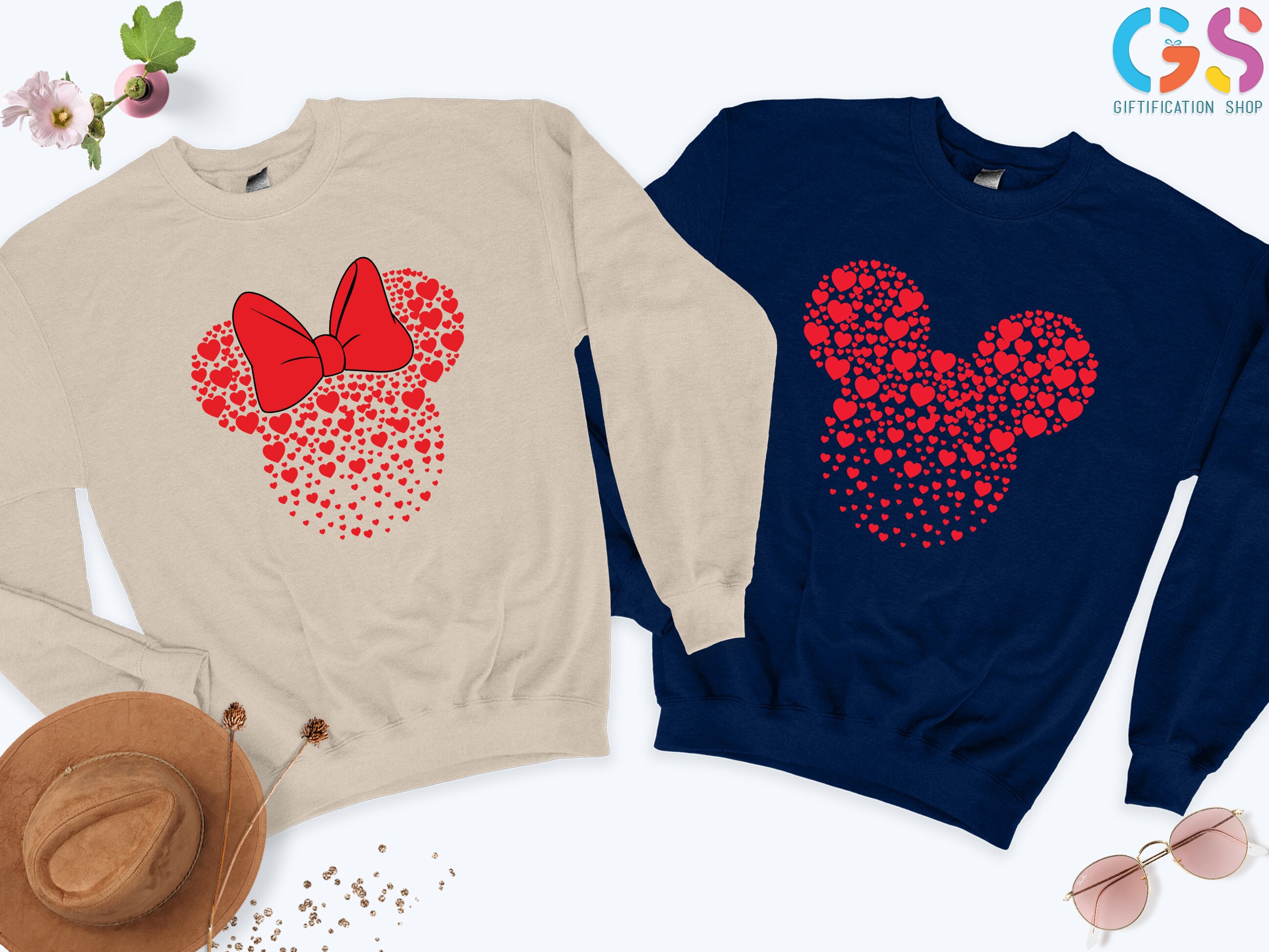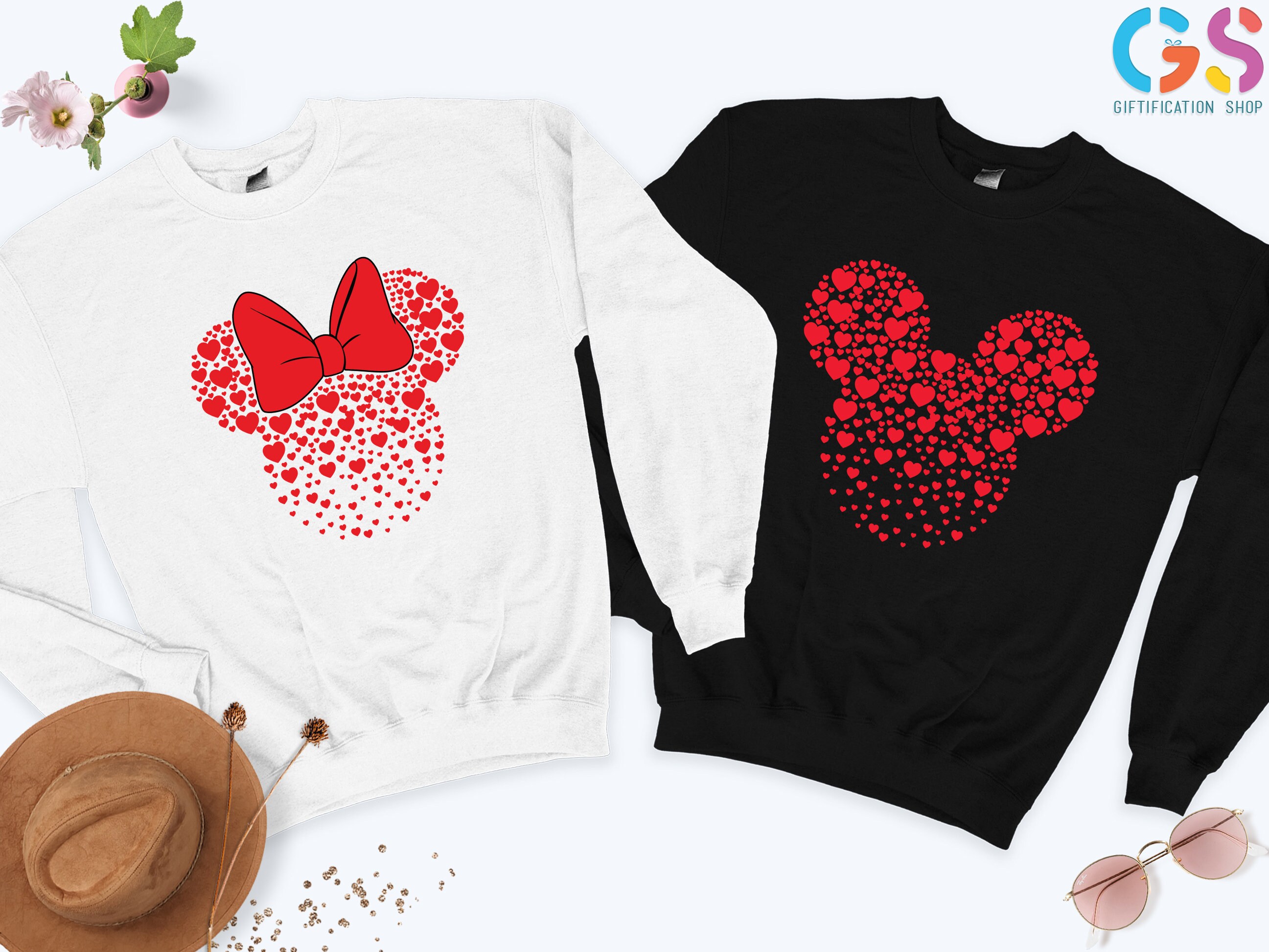 Mickey and Minnie Valentine Sweatshirt, Disneyland Valentine Couple Sweater, Cute Couple Hoodie, Mickey with Hearts, Valntines Day Gifts