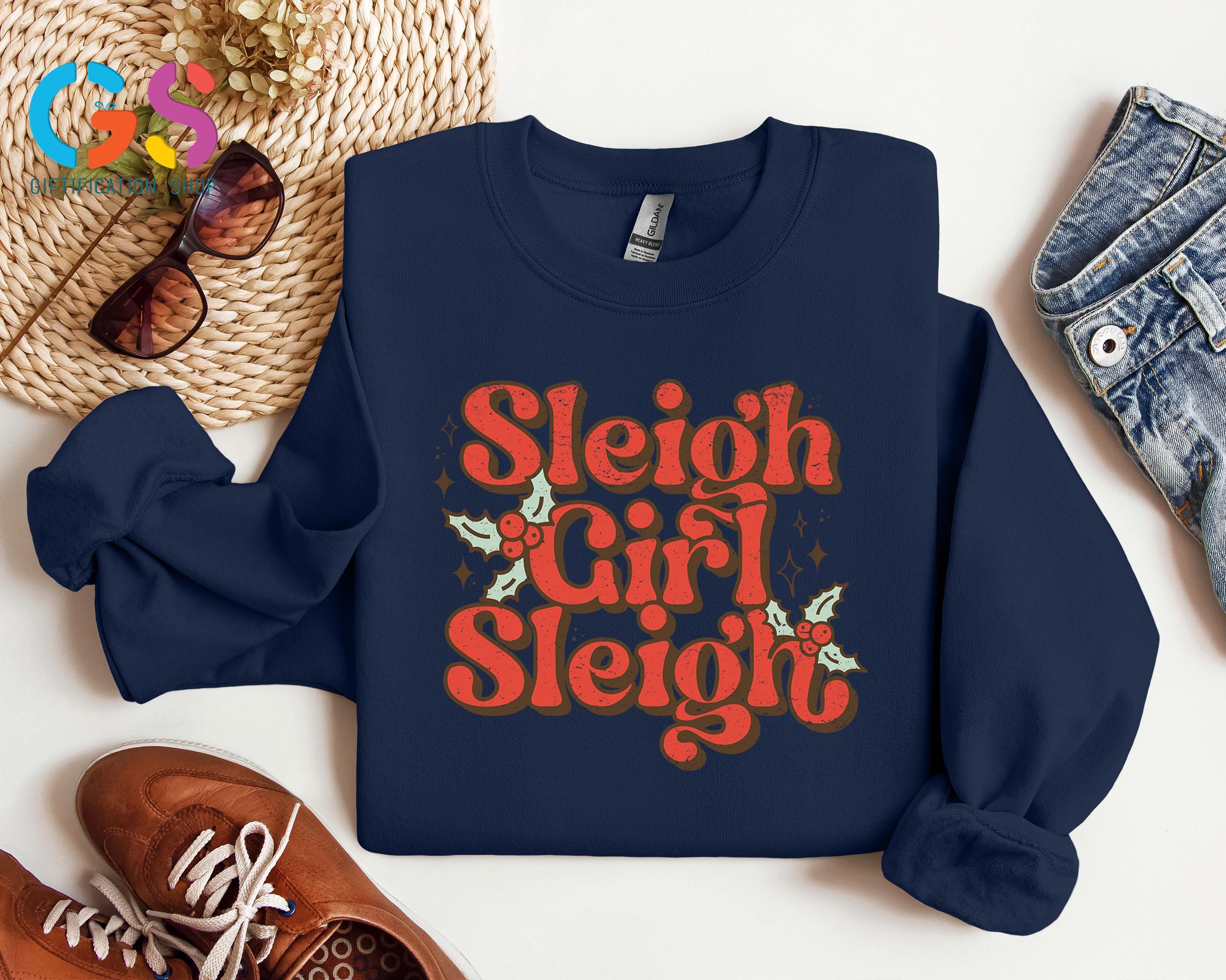 Sleigh Girl Sleigh Sweatshirt, Retro Christmas Sweater, Merry Christmas Hoodie, Vintage Holiday Hoodie, Christmas Gift For Her, Xmas Gifts