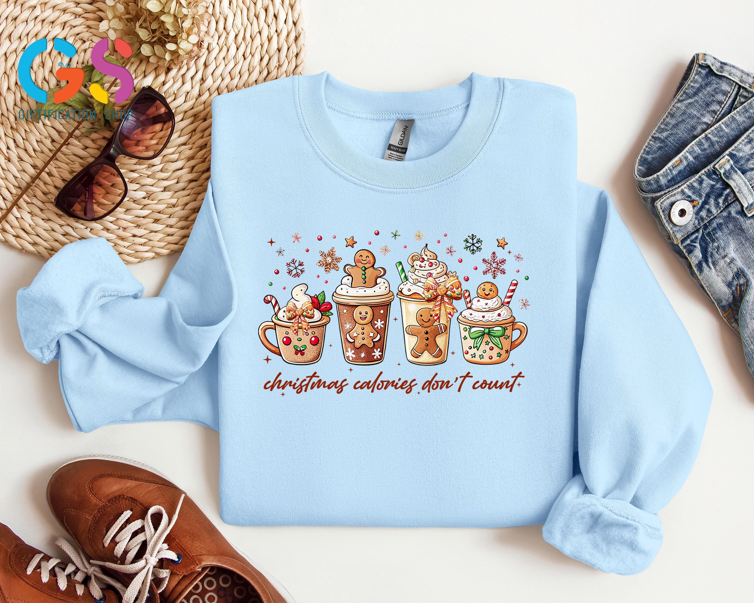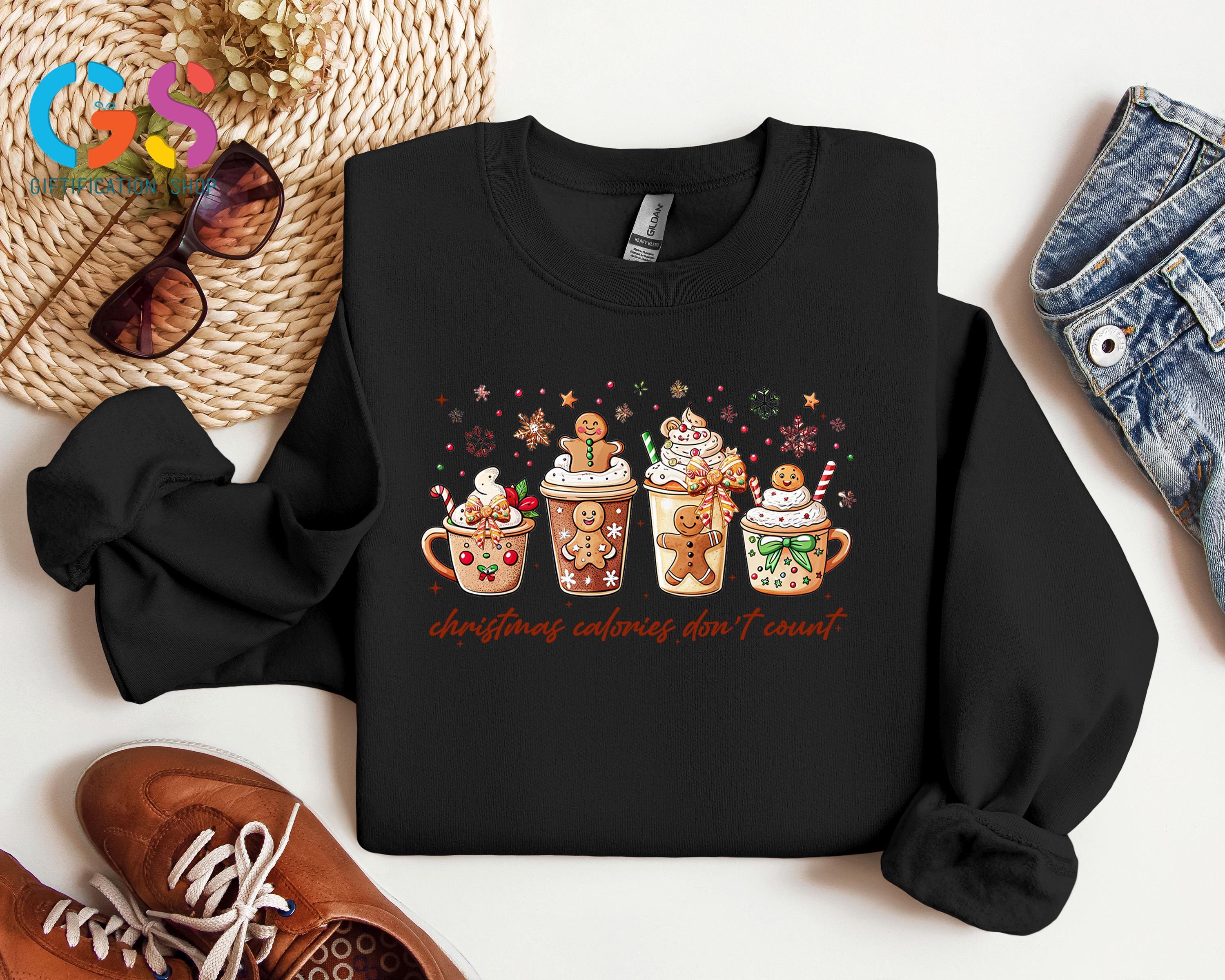 Christmas Calories Don't Count Sweater, Christmas Coffee Cream Sweatshirt, Gingerbread Coffee Hoodie,Christmas Coffee Lover Gift,Xmas Hoodie