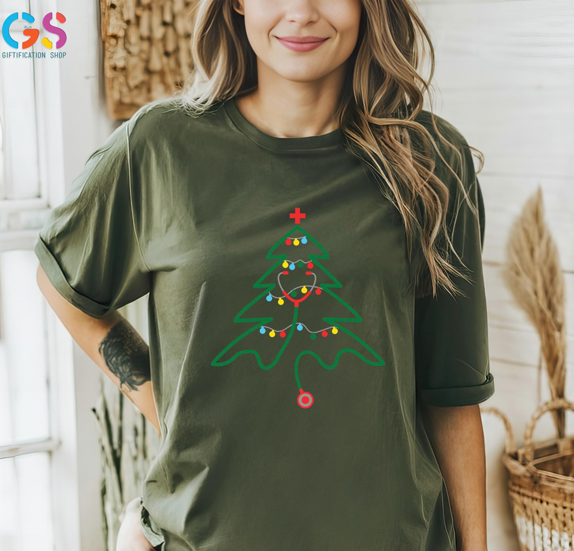 Stethoscope Christmas Tree T-shirt, Christmas Medical shirt, Christmas Doctor Shirt, Christmas Nurse Shirt,Christmas Clinic Shirt,Xmas Gifts