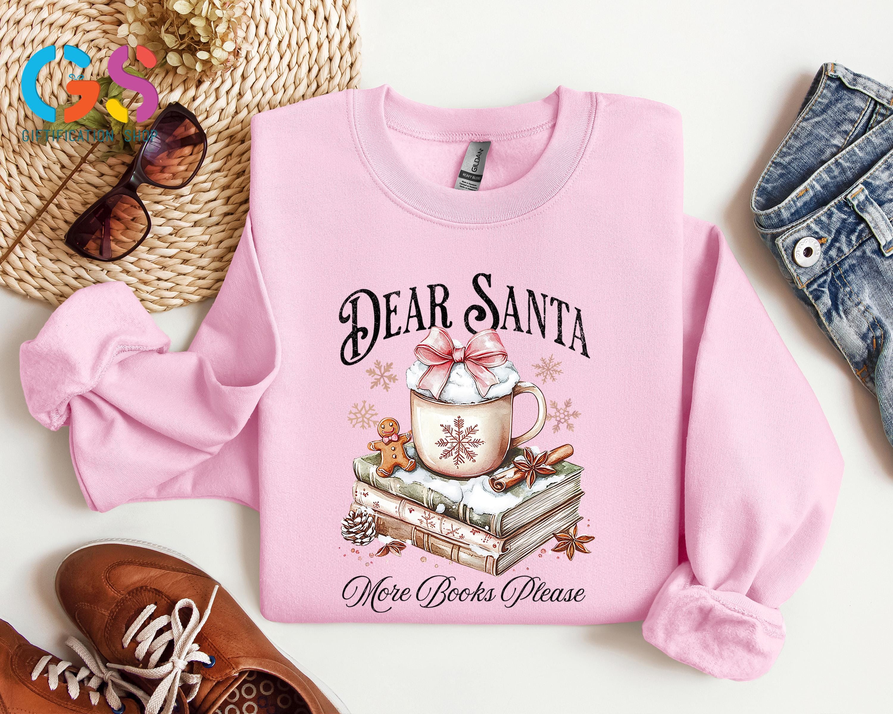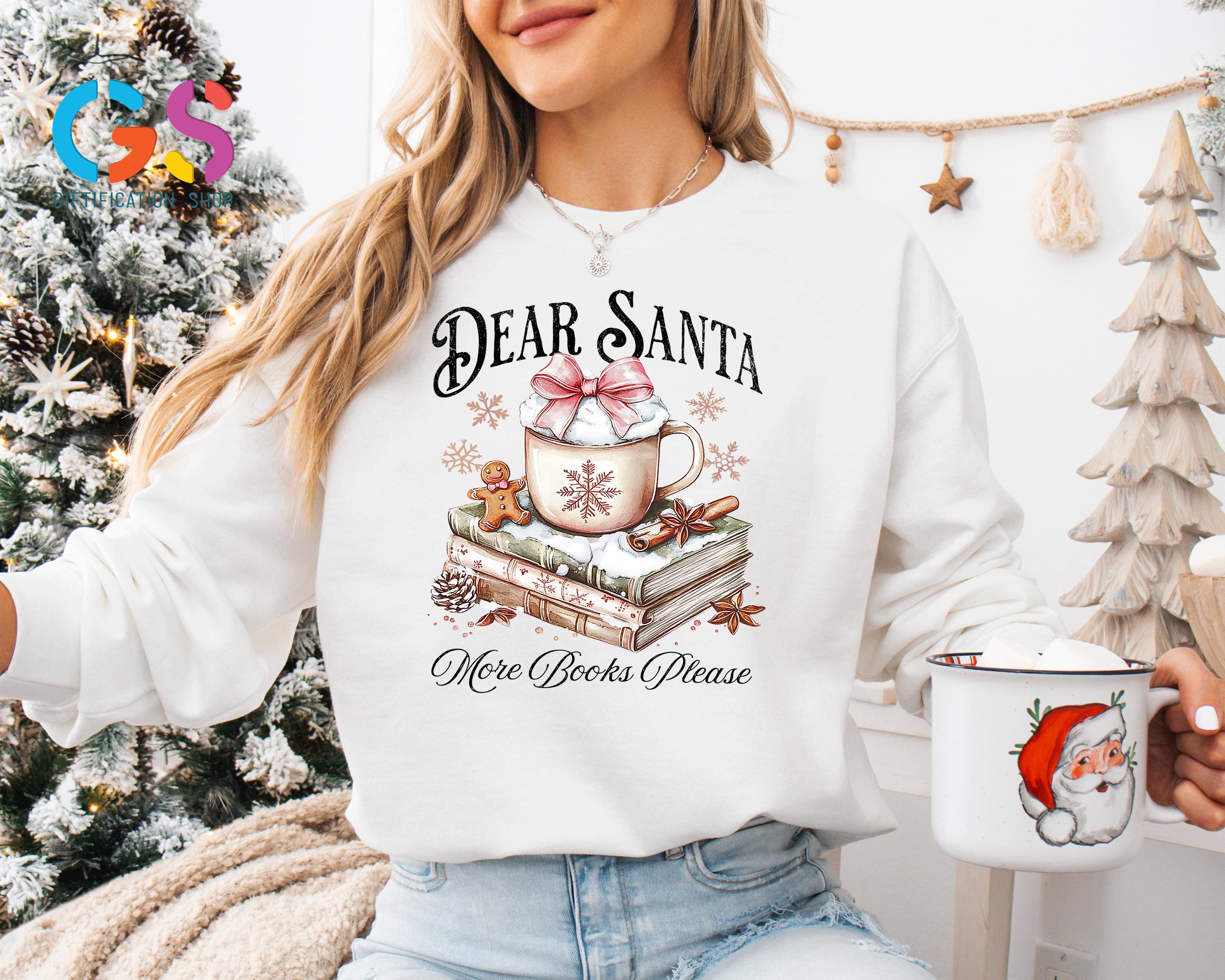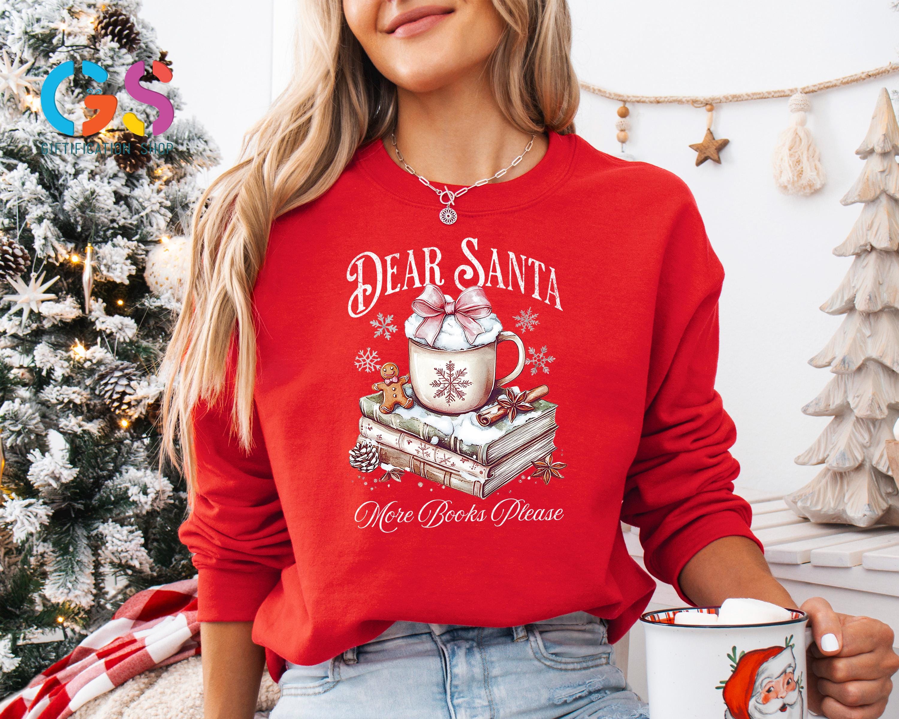 Dear Santa More Books Please Sweater, Christmas Bookish sweatshirt, Cute Books and coffee Hoodie, Cozy Sweatshirt for Book Lovers
