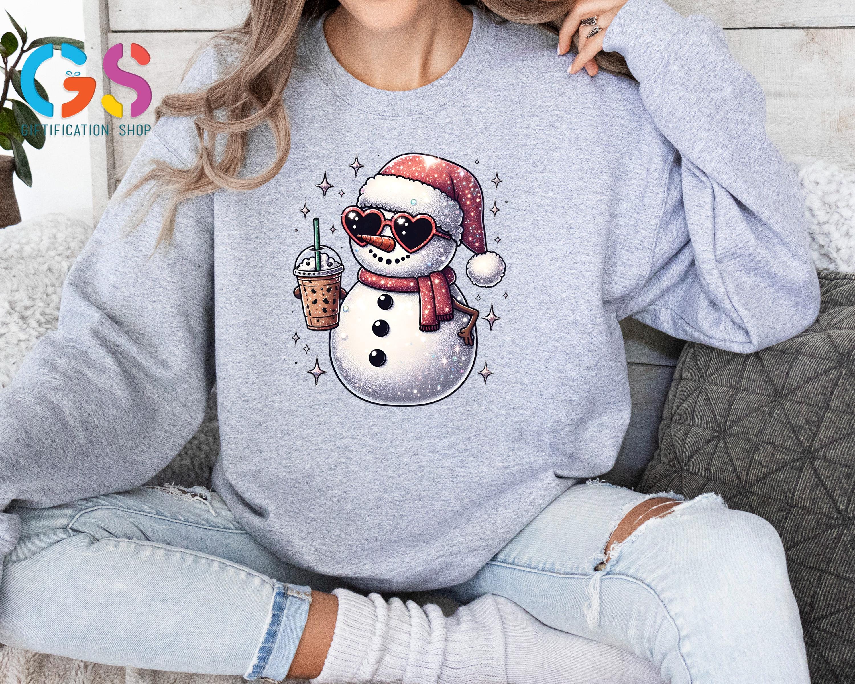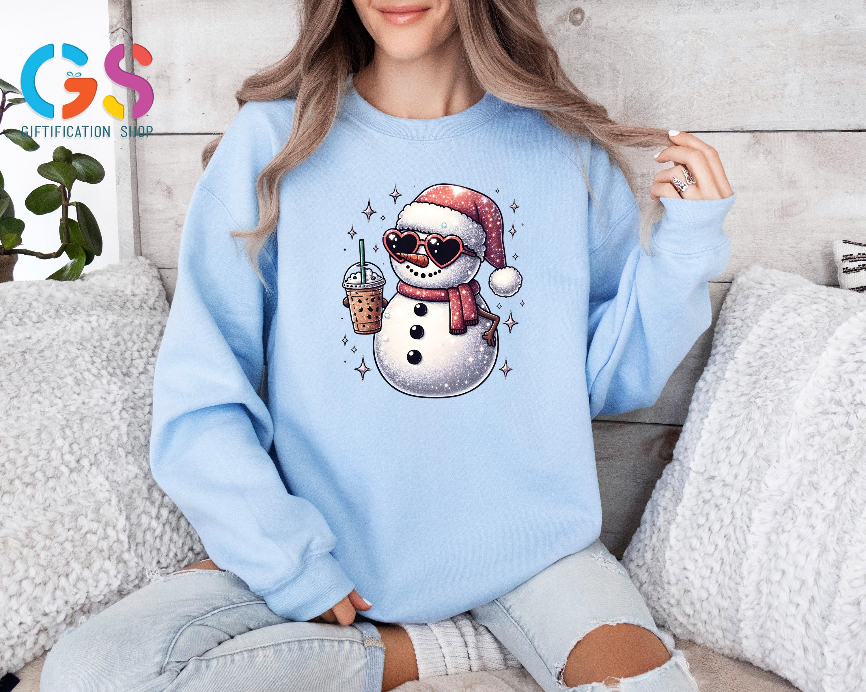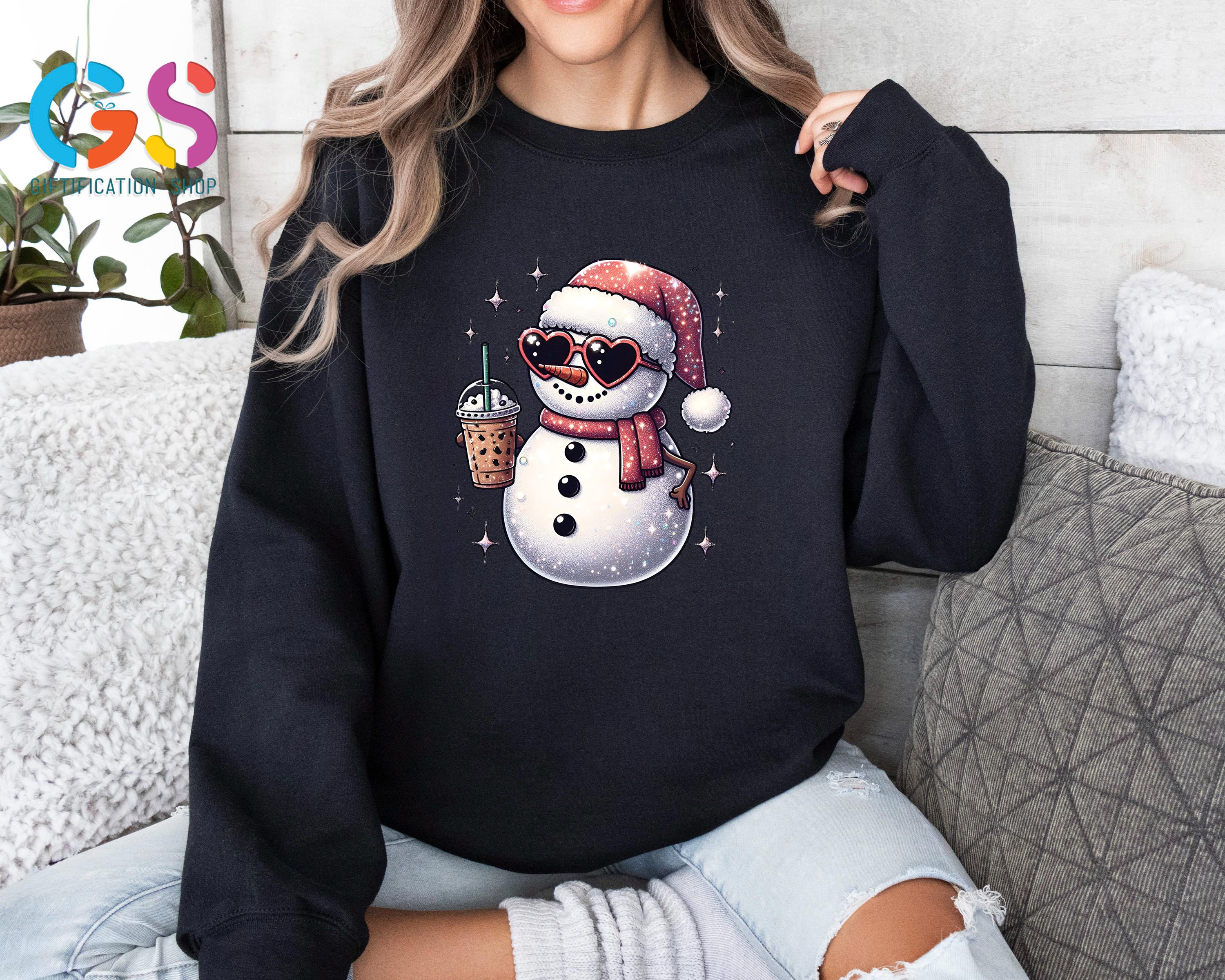 Cute Snowman Sweatshirt, Christmas snowman Sweater, Snowman Coffee Hoodie, Winter Sweatshirt for Girls, Holiday Sweater Women, Gift for Her