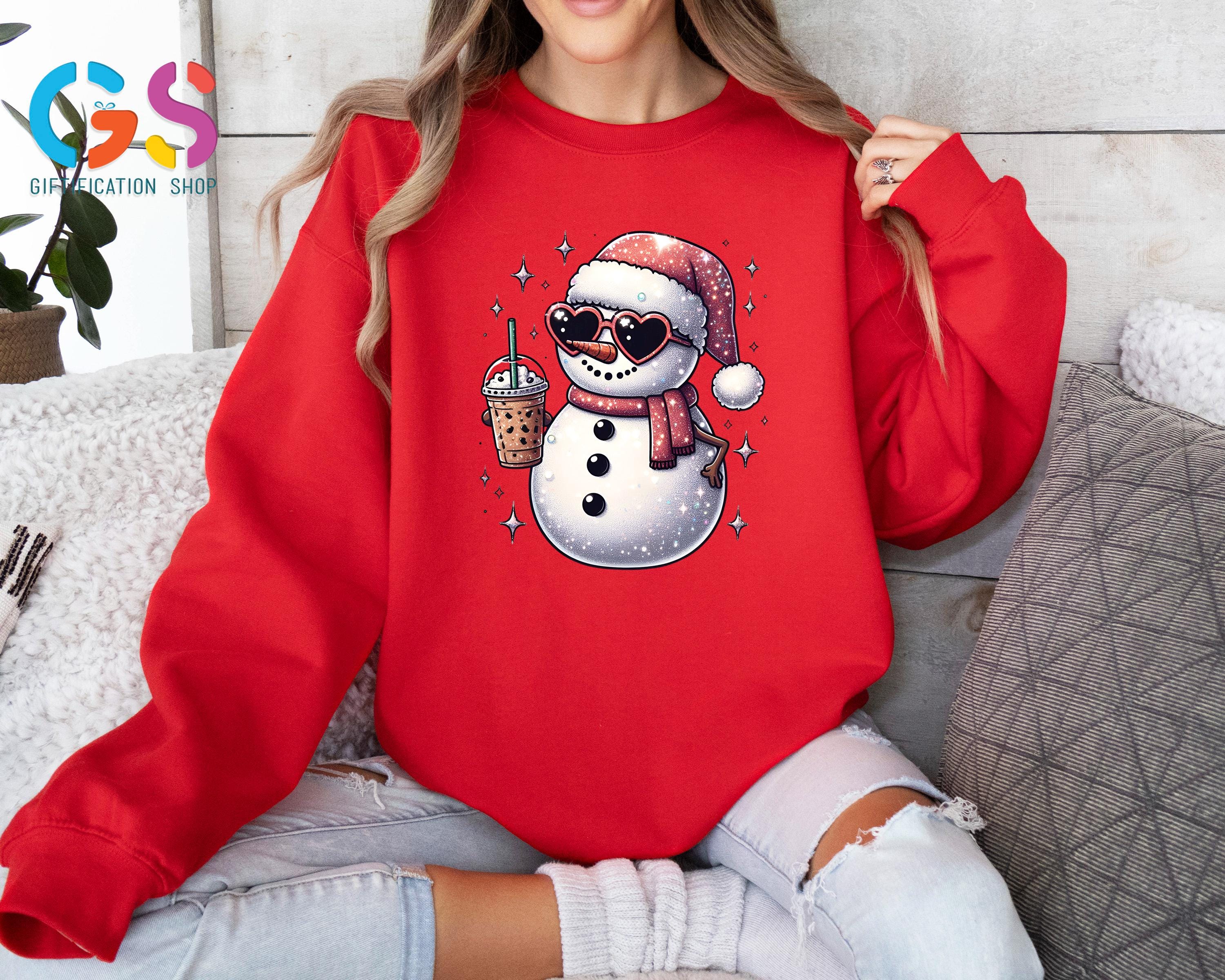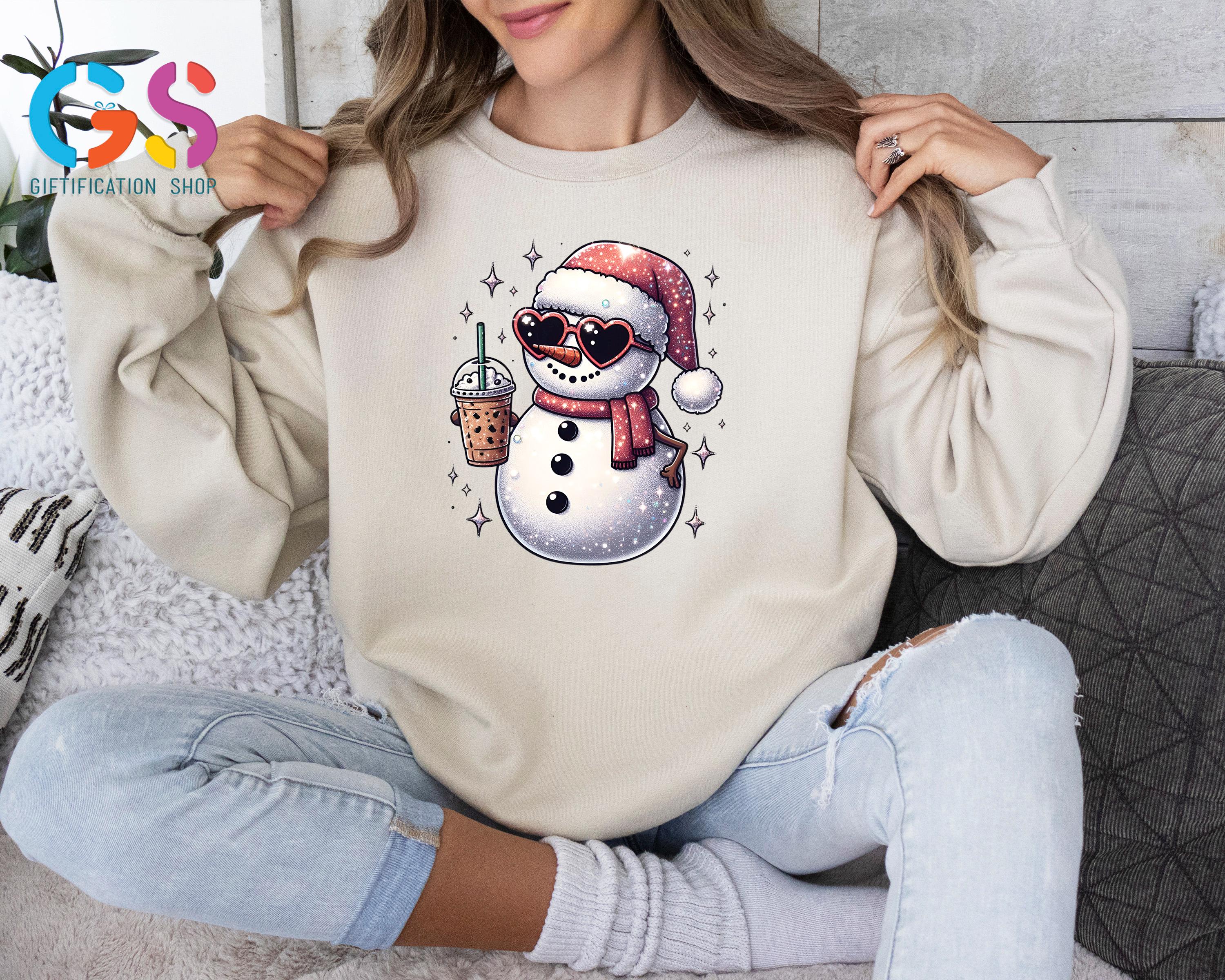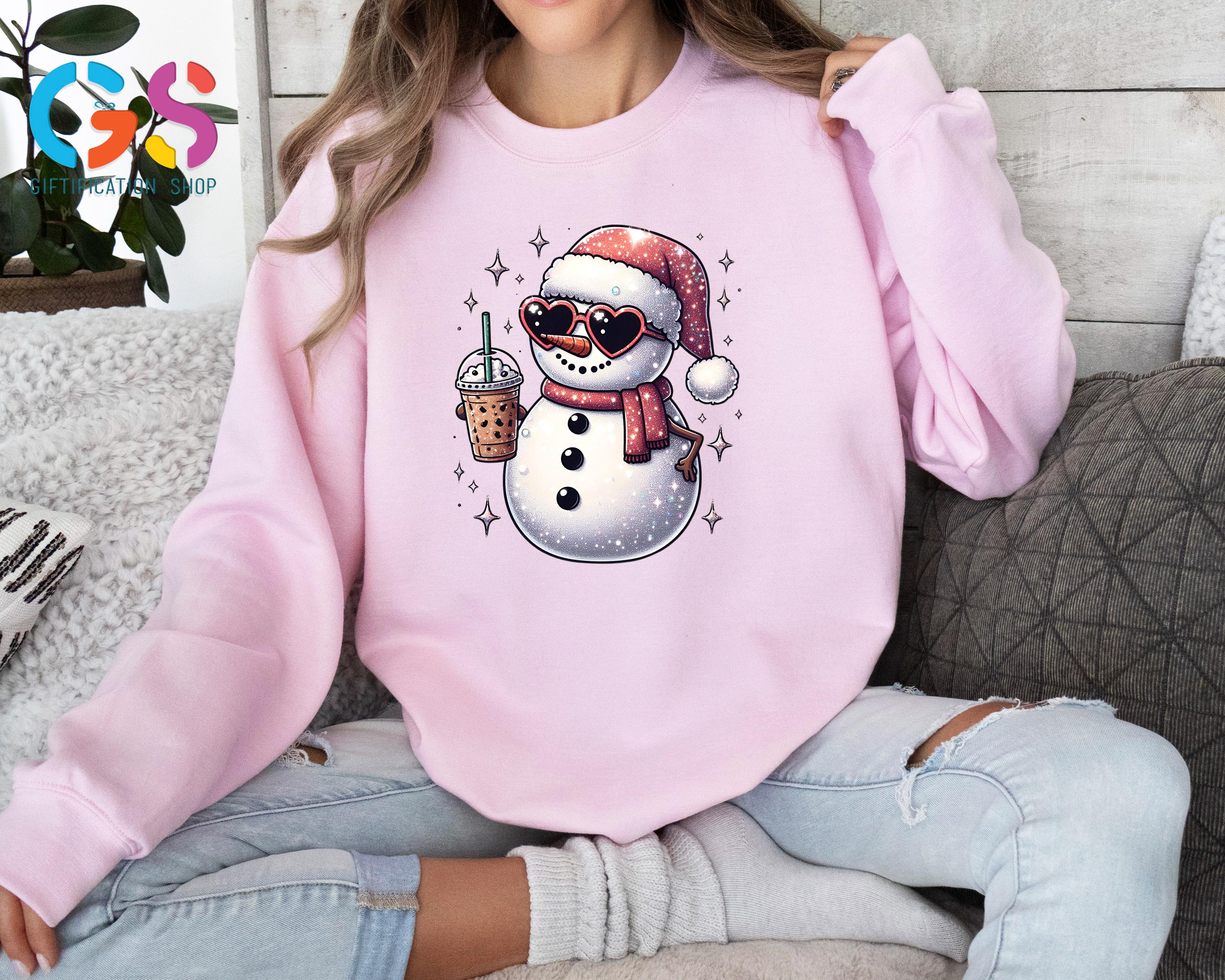 Cute Snowman Sweatshirt, Christmas snowman Sweater, Snowman Coffee Hoodie, Winter Sweatshirt for Girls, Holiday Sweater Women, Gift for Her