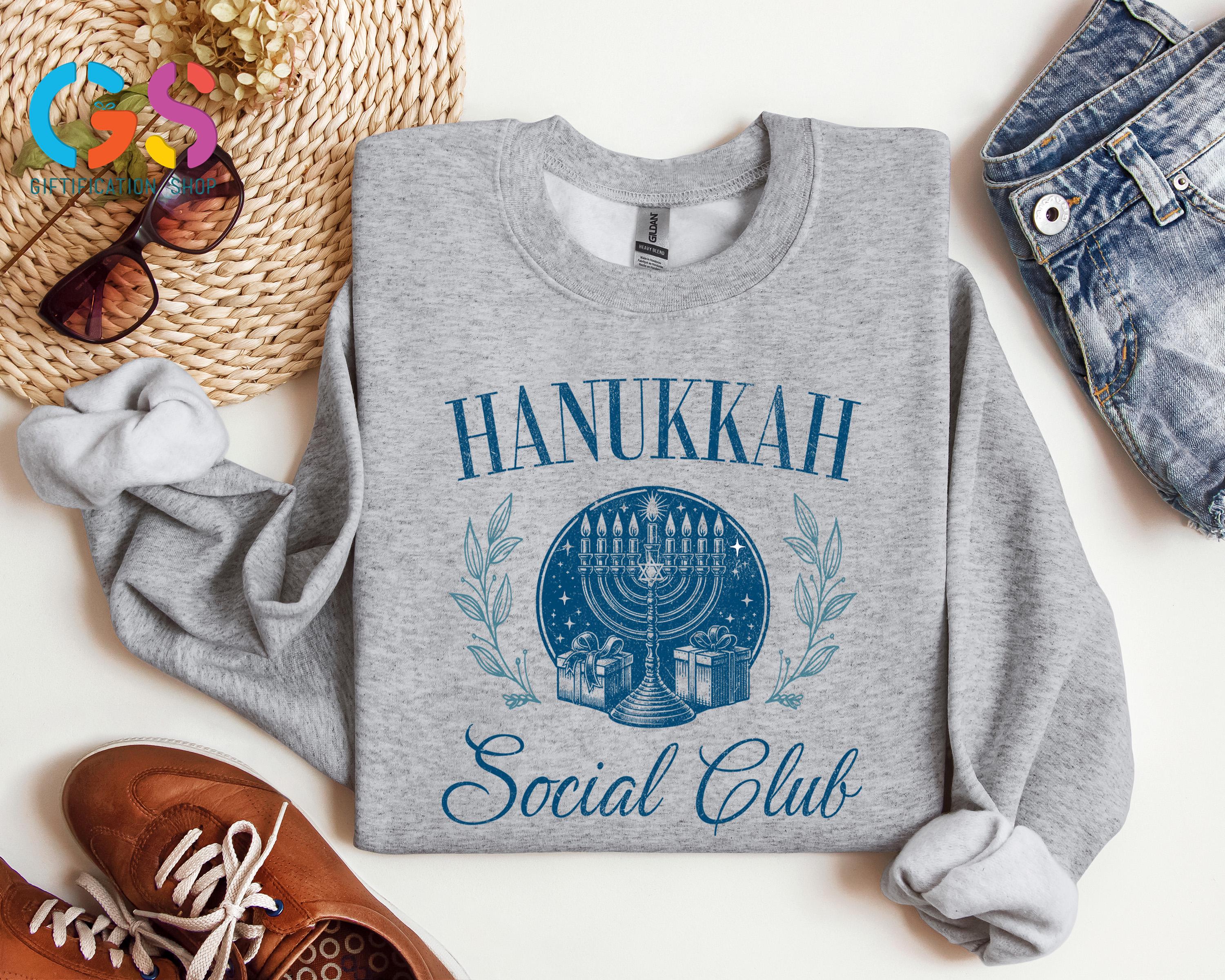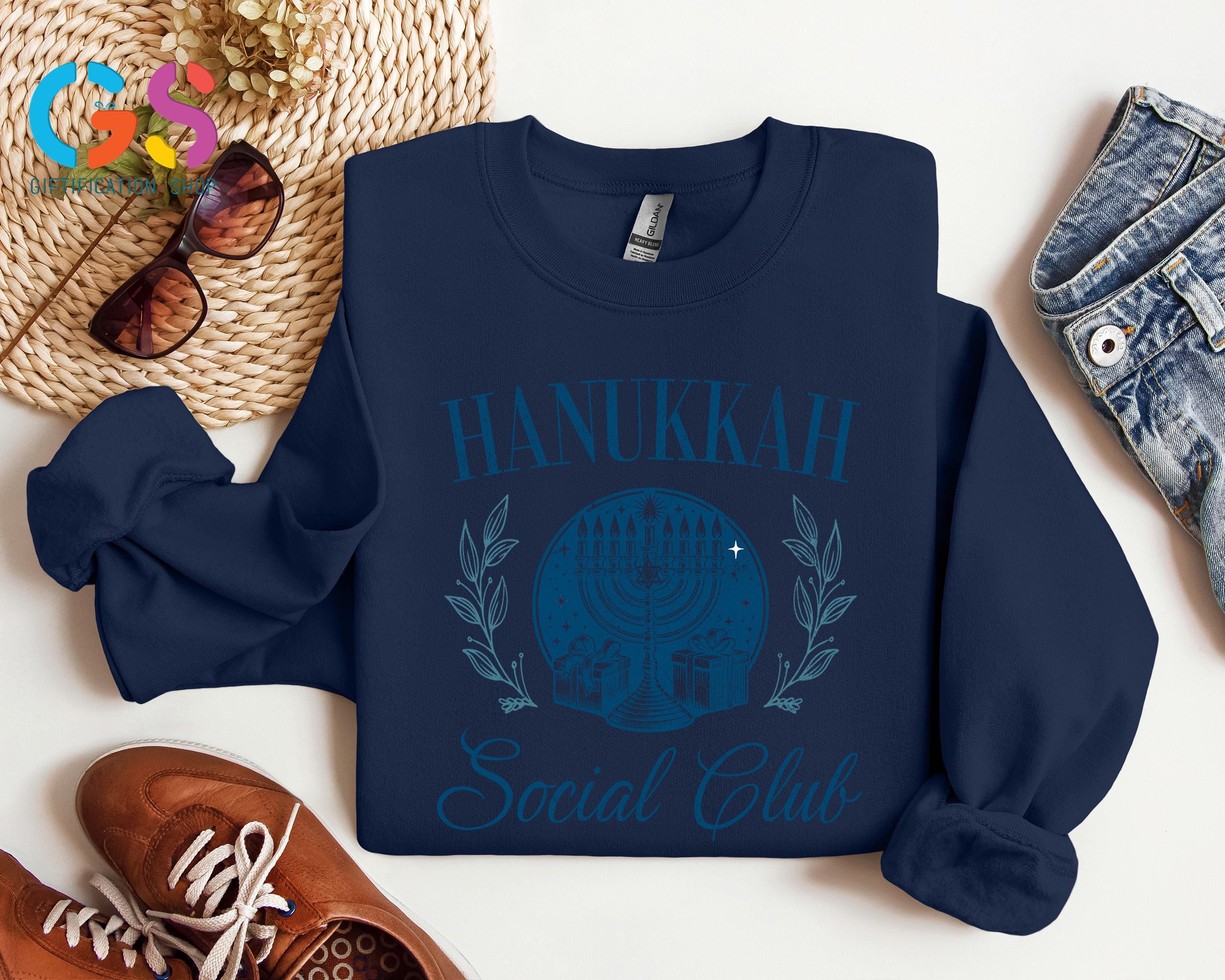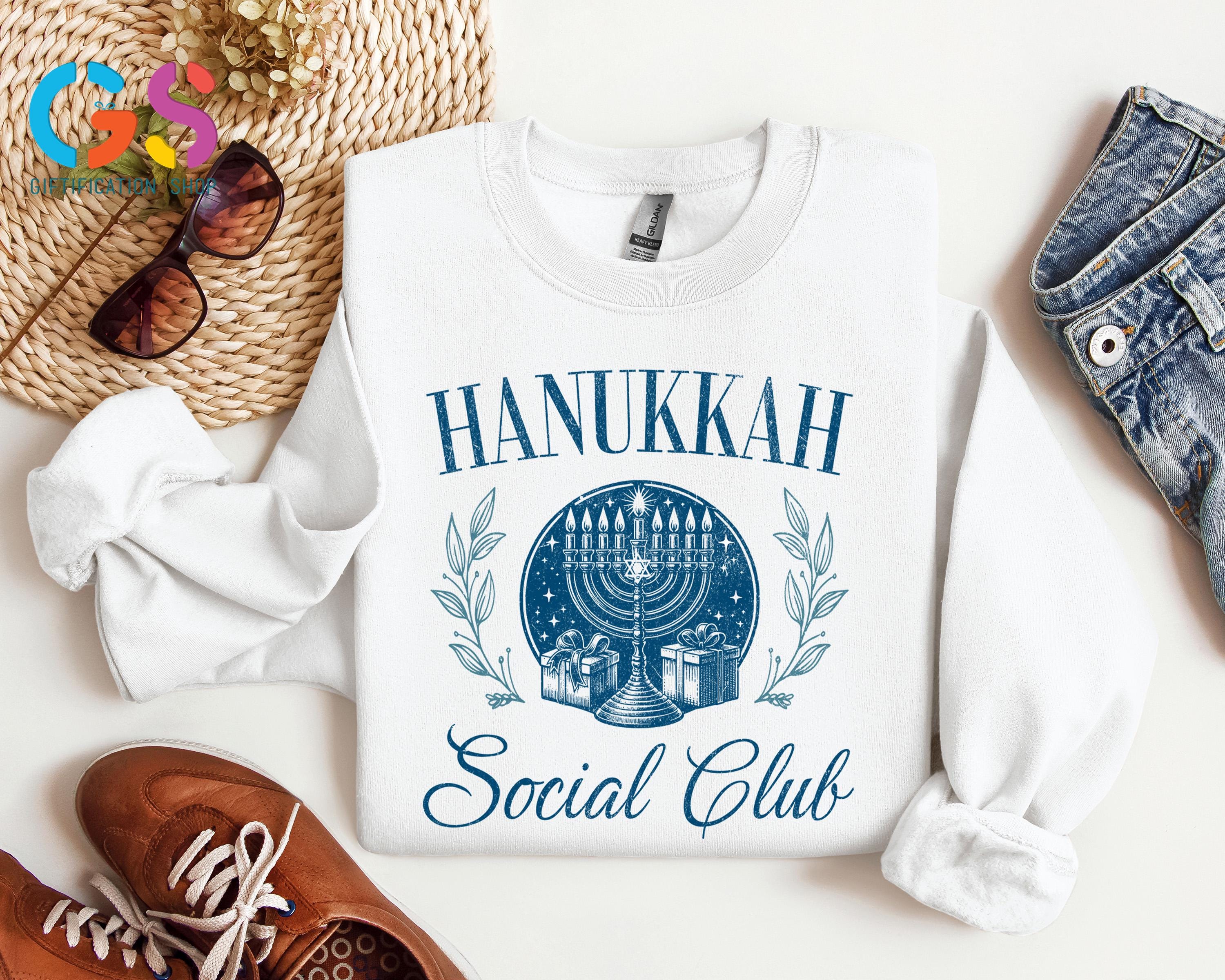 Hanukkah Social Club Sweater, Hanukkah Sweatshirt, Jewish Holiday Gift, Menorah Jumper, Chanukah Apparel, Festival of Lights Sweatshirt