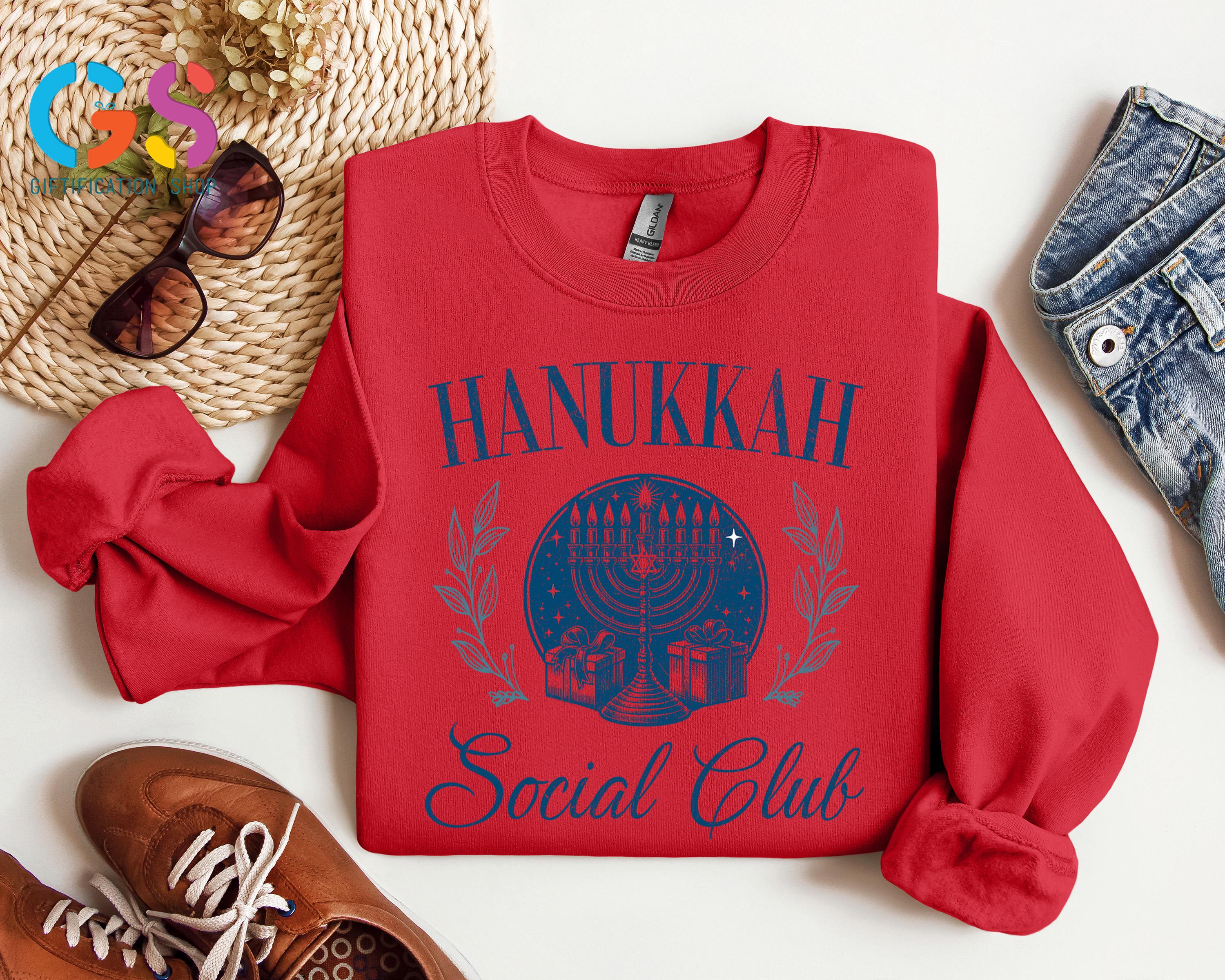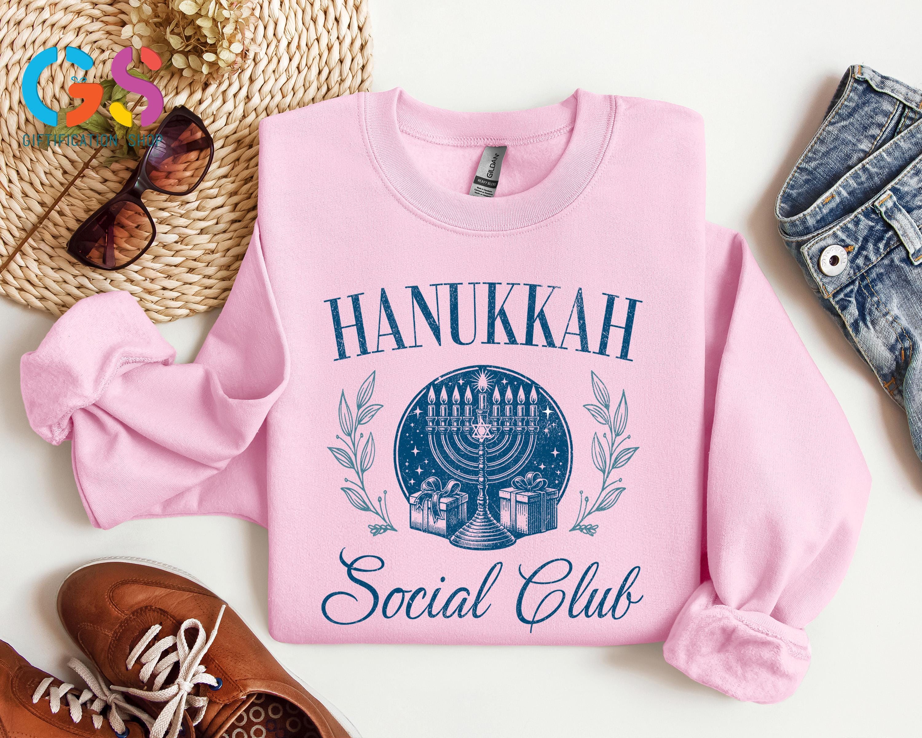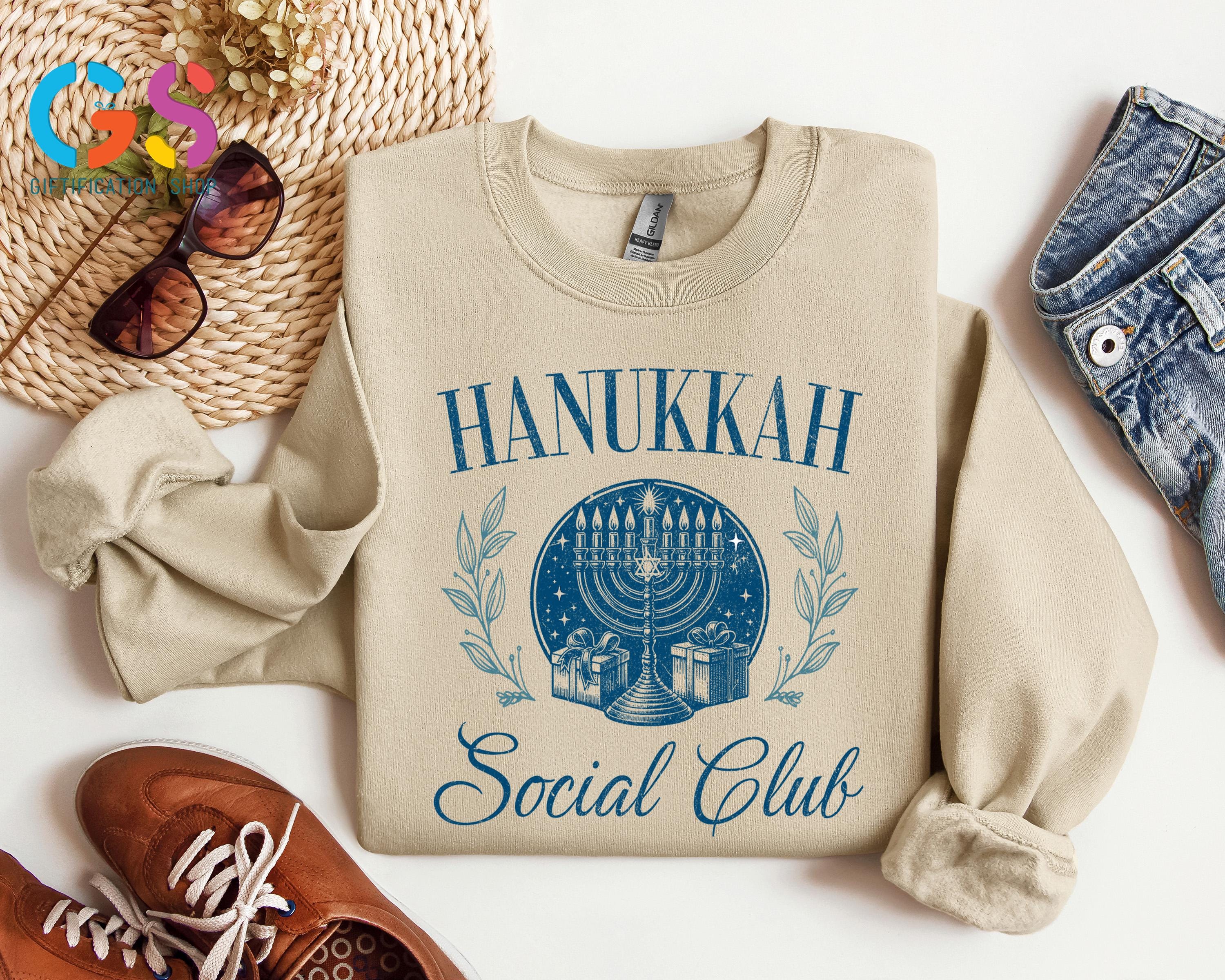 Hanukkah Social Club Sweater, Hanukkah Sweatshirt, Jewish Holiday Gift, Menorah Jumper, Chanukah Apparel, Festival of Lights Sweatshirt