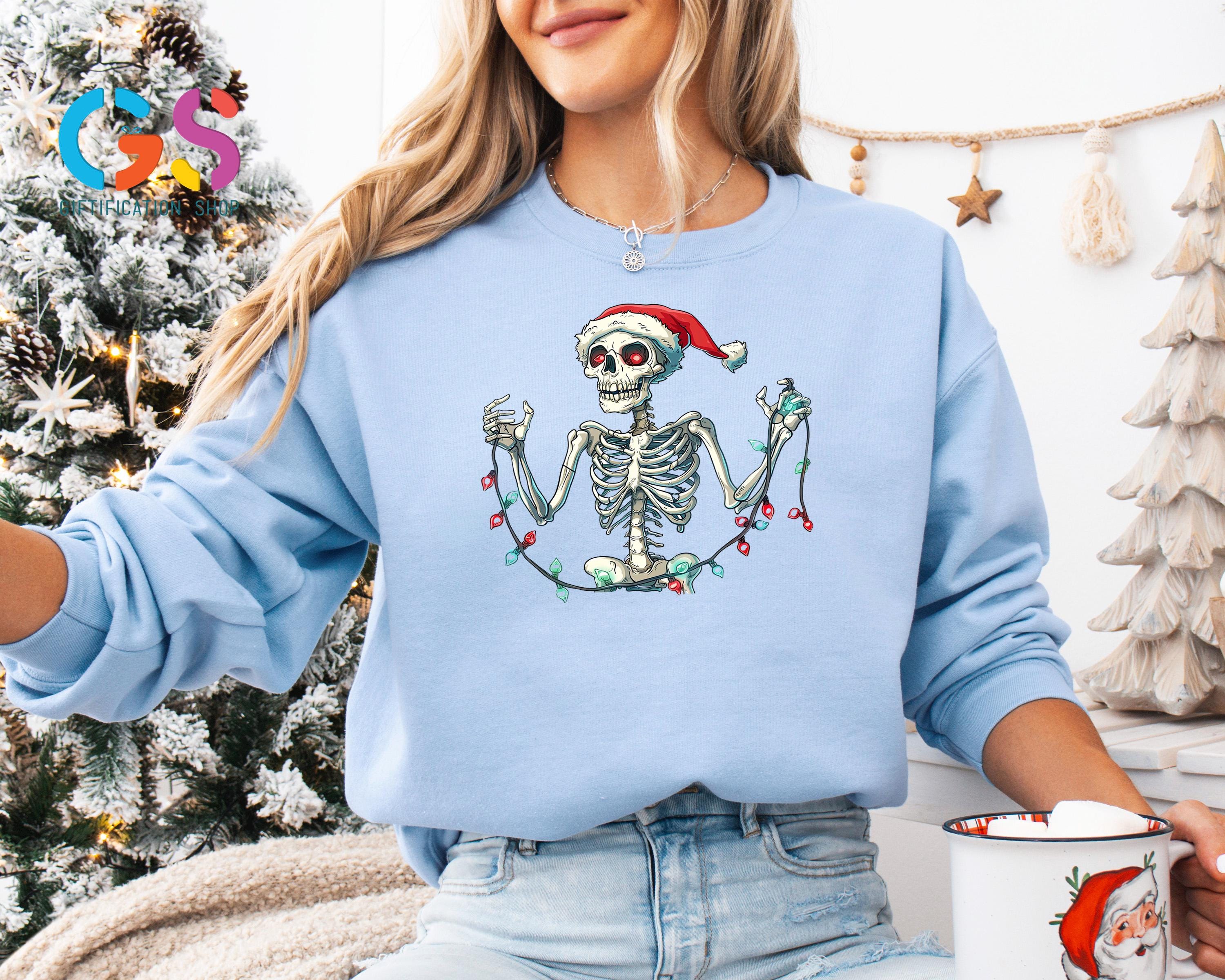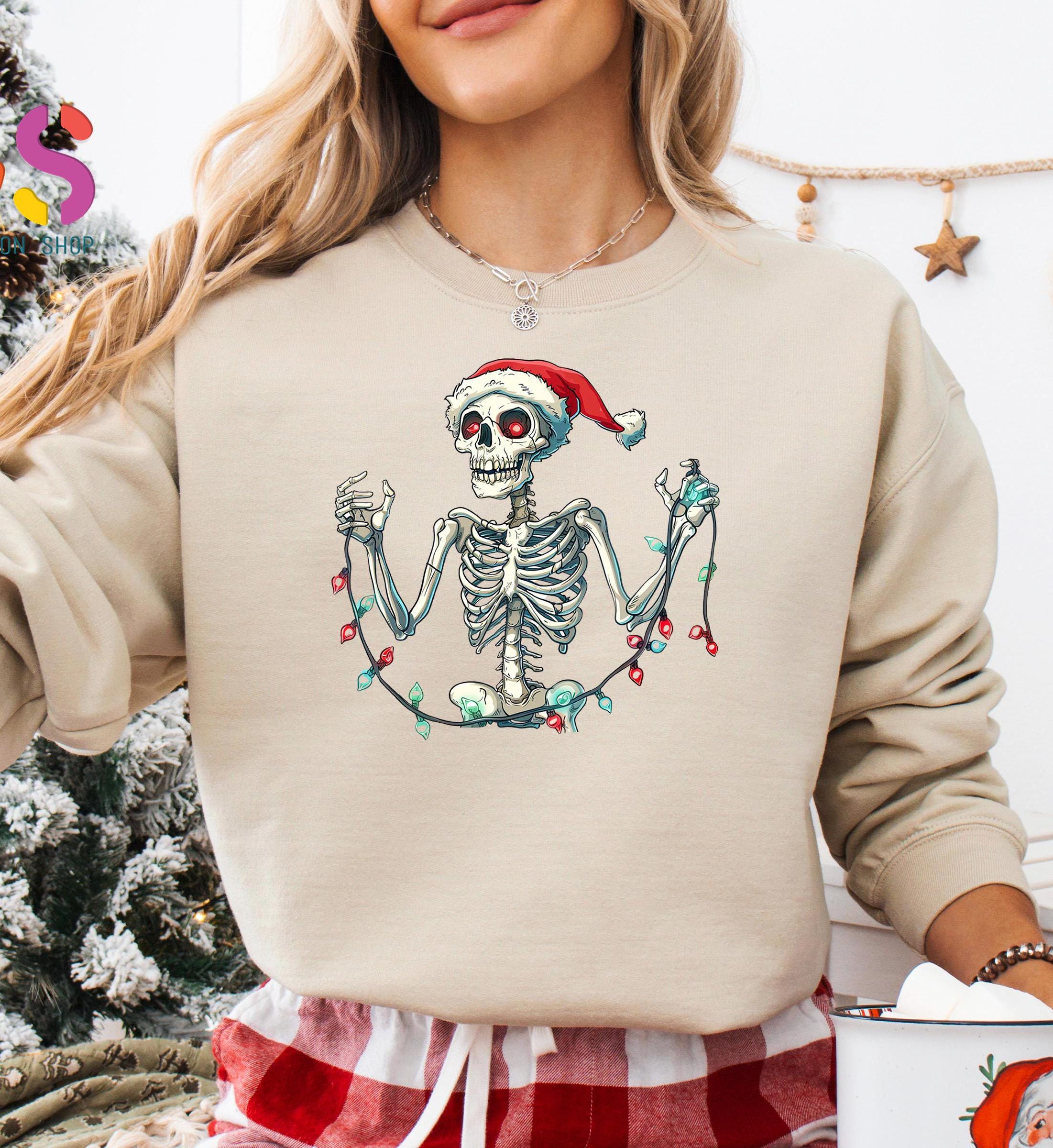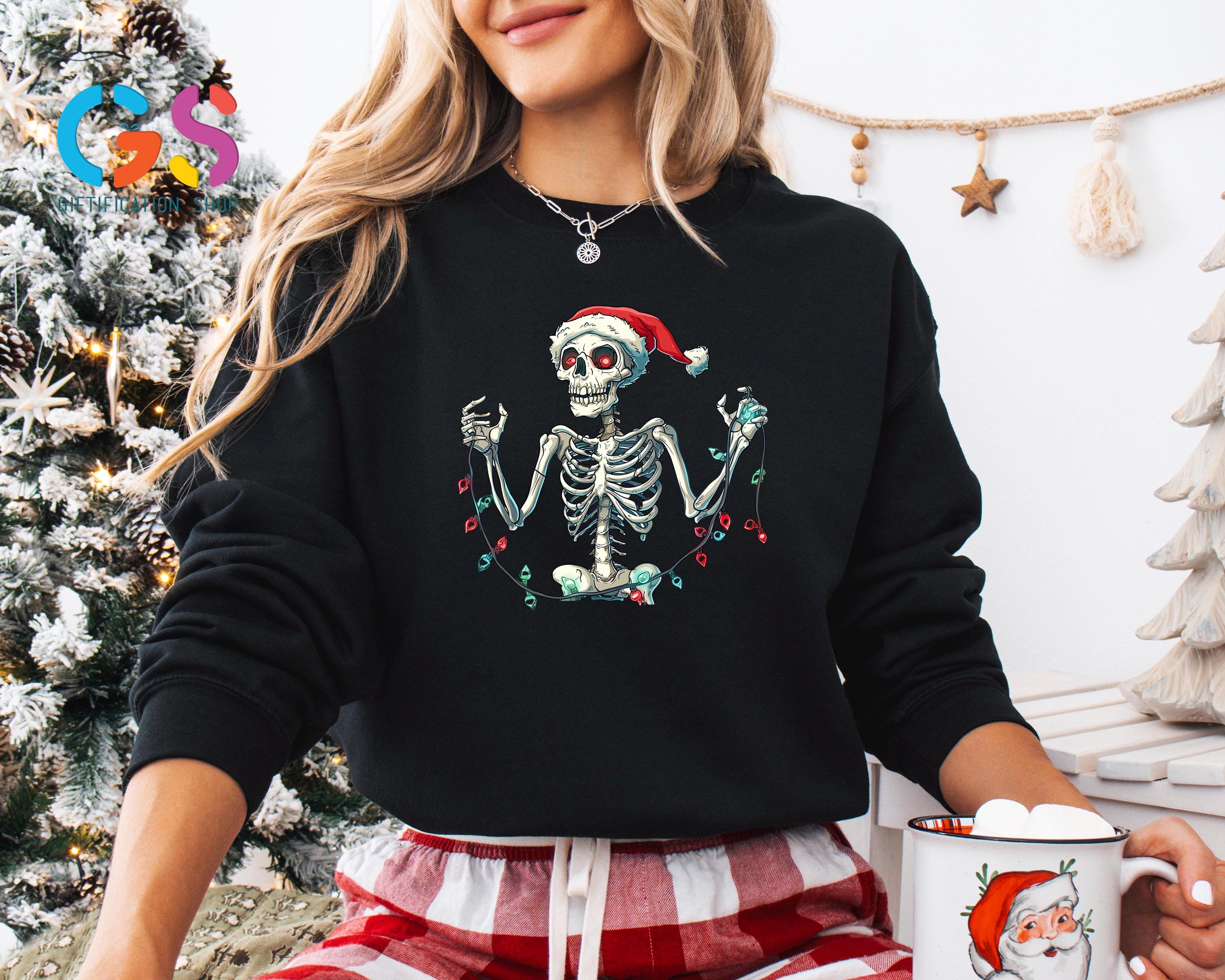 Skeleton Christmas Lights Sweatshirt, Santa Skeleton Sweater, Funny Christmas Sweatshirt, Unisex Christmas Hoodie, Christmas Gifts