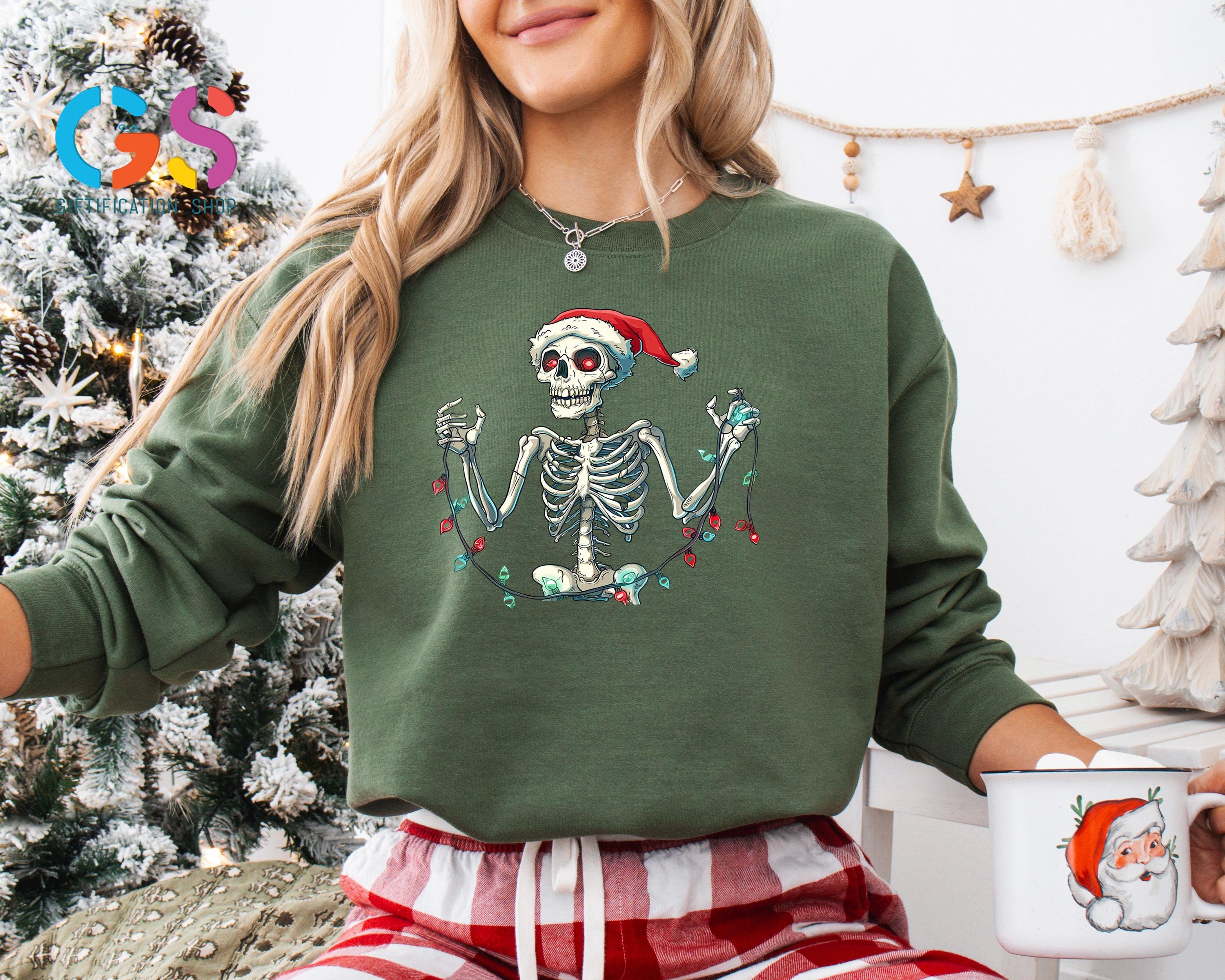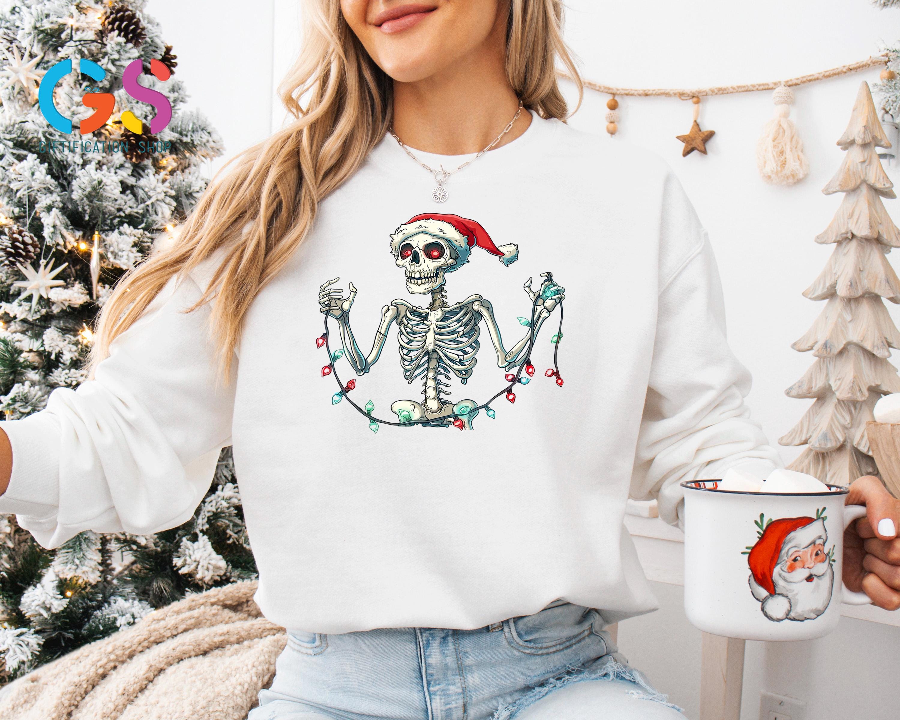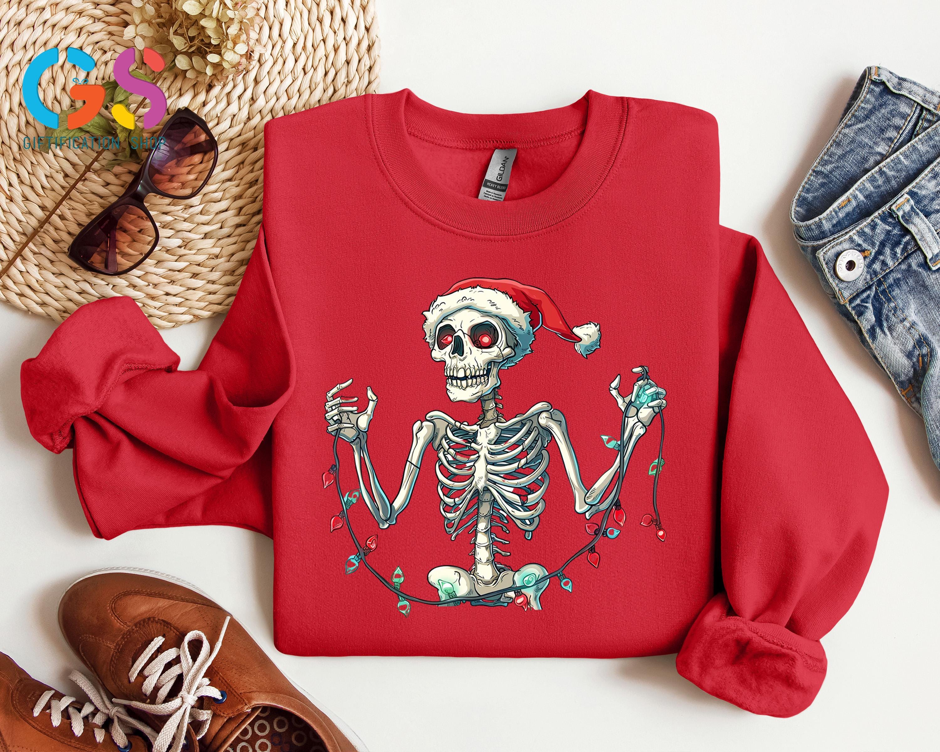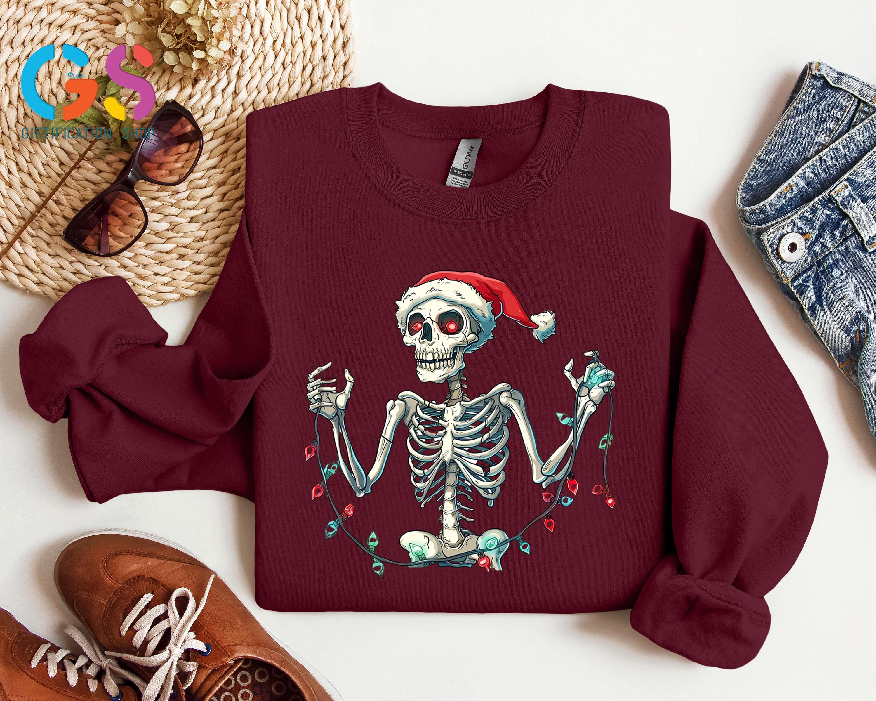 Skeleton Christmas Lights Sweatshirt, Santa Skeleton Sweater, Funny Christmas Sweatshirt, Unisex Christmas Hoodie, Christmas Gifts