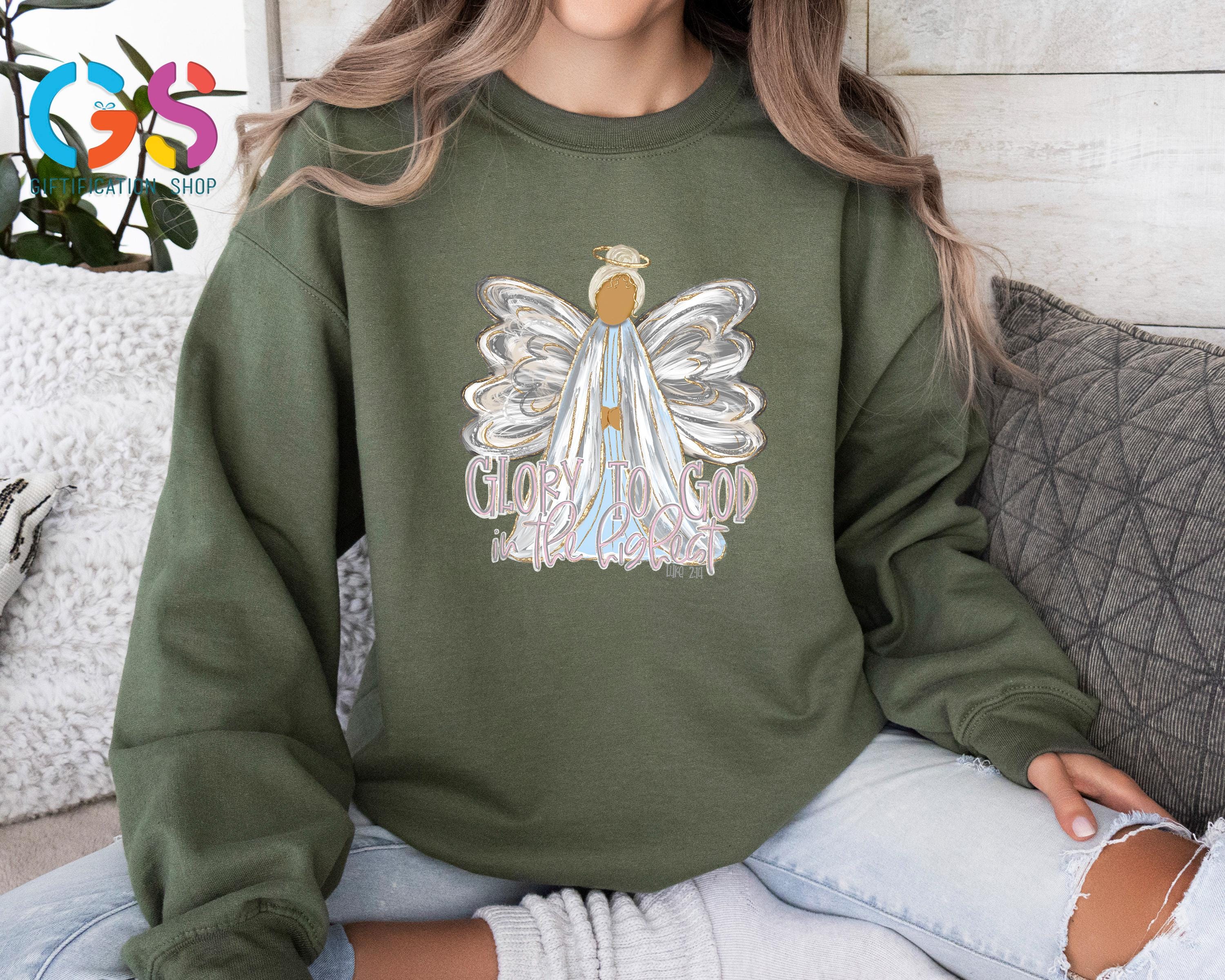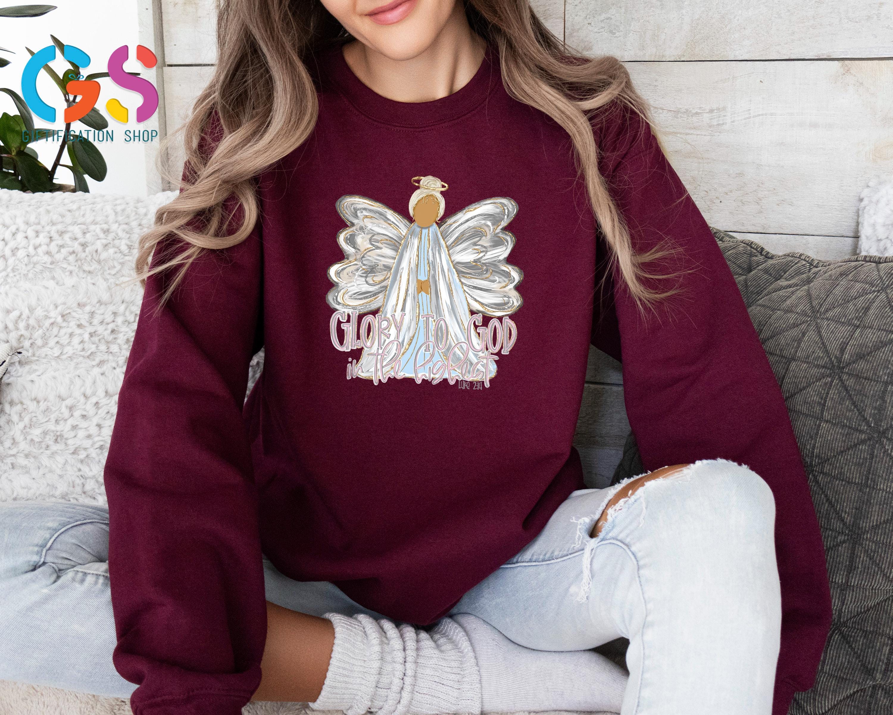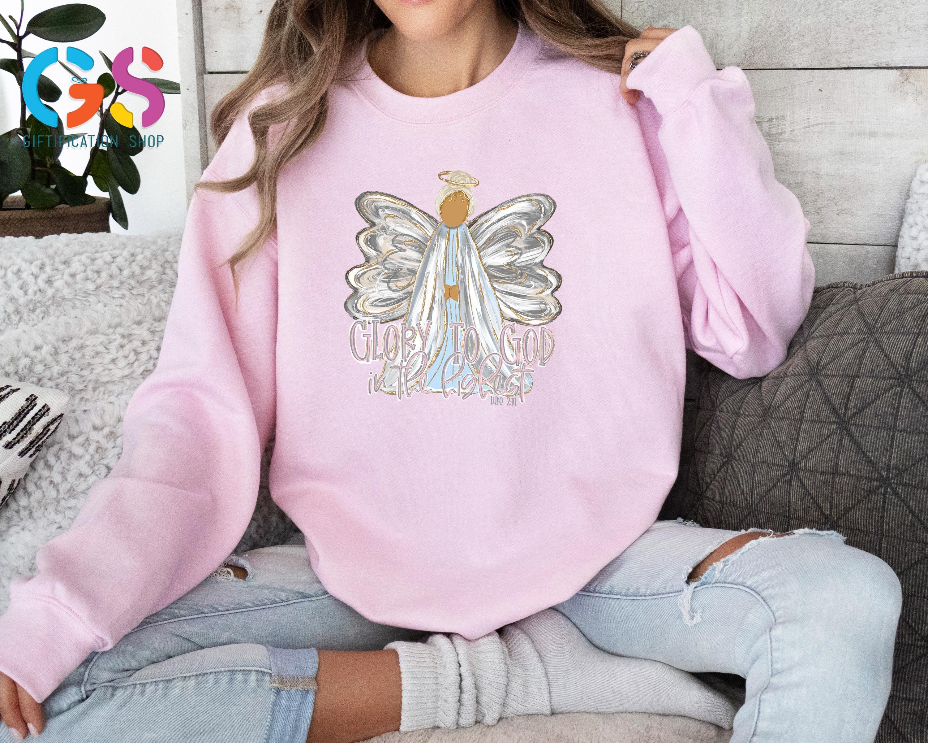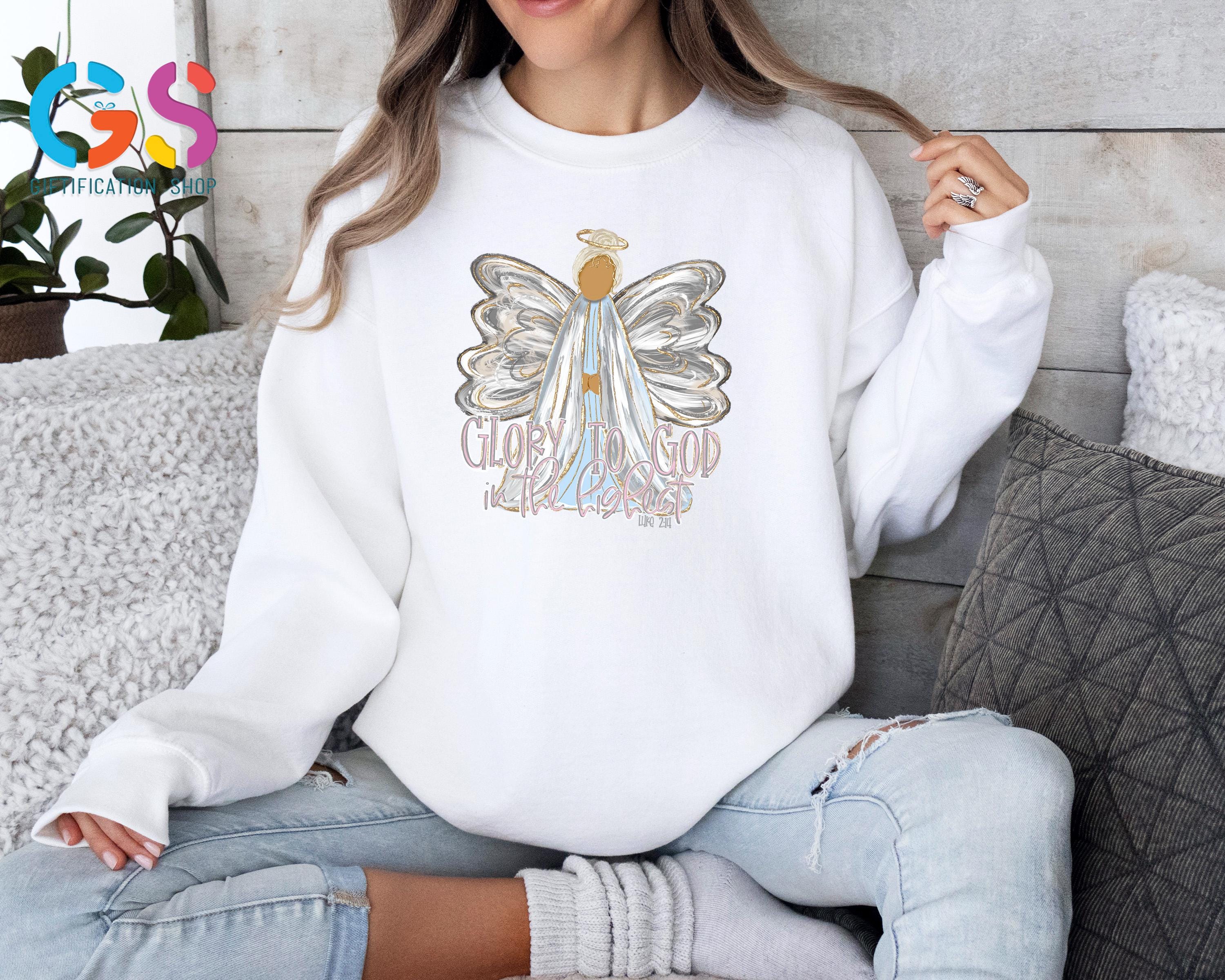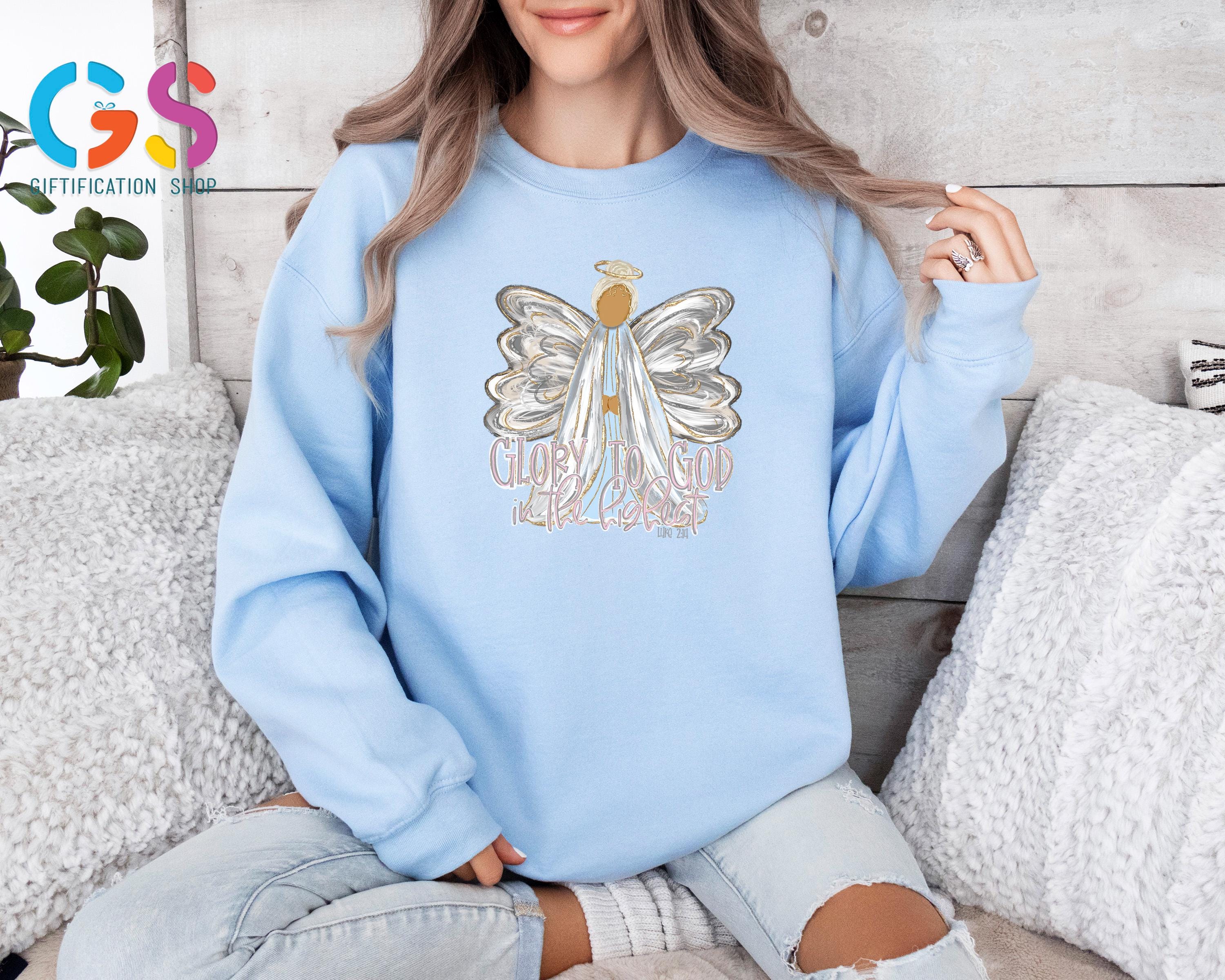 Glory to God Sweatshirt, Angel Sweater For Girls, Cute Christian Hoodie, Church Sweatshirt For Kids Girl, Religious Gift For Women