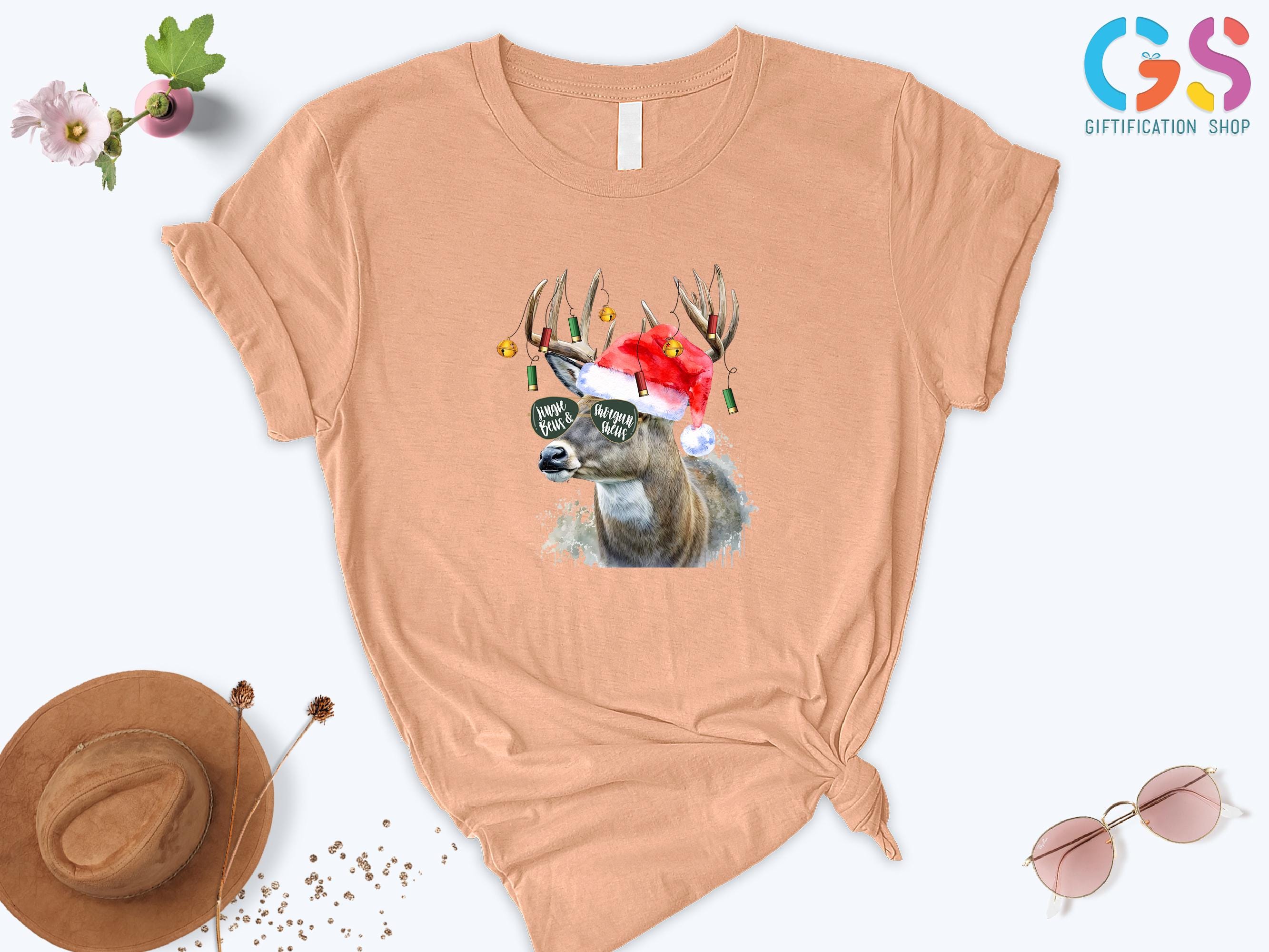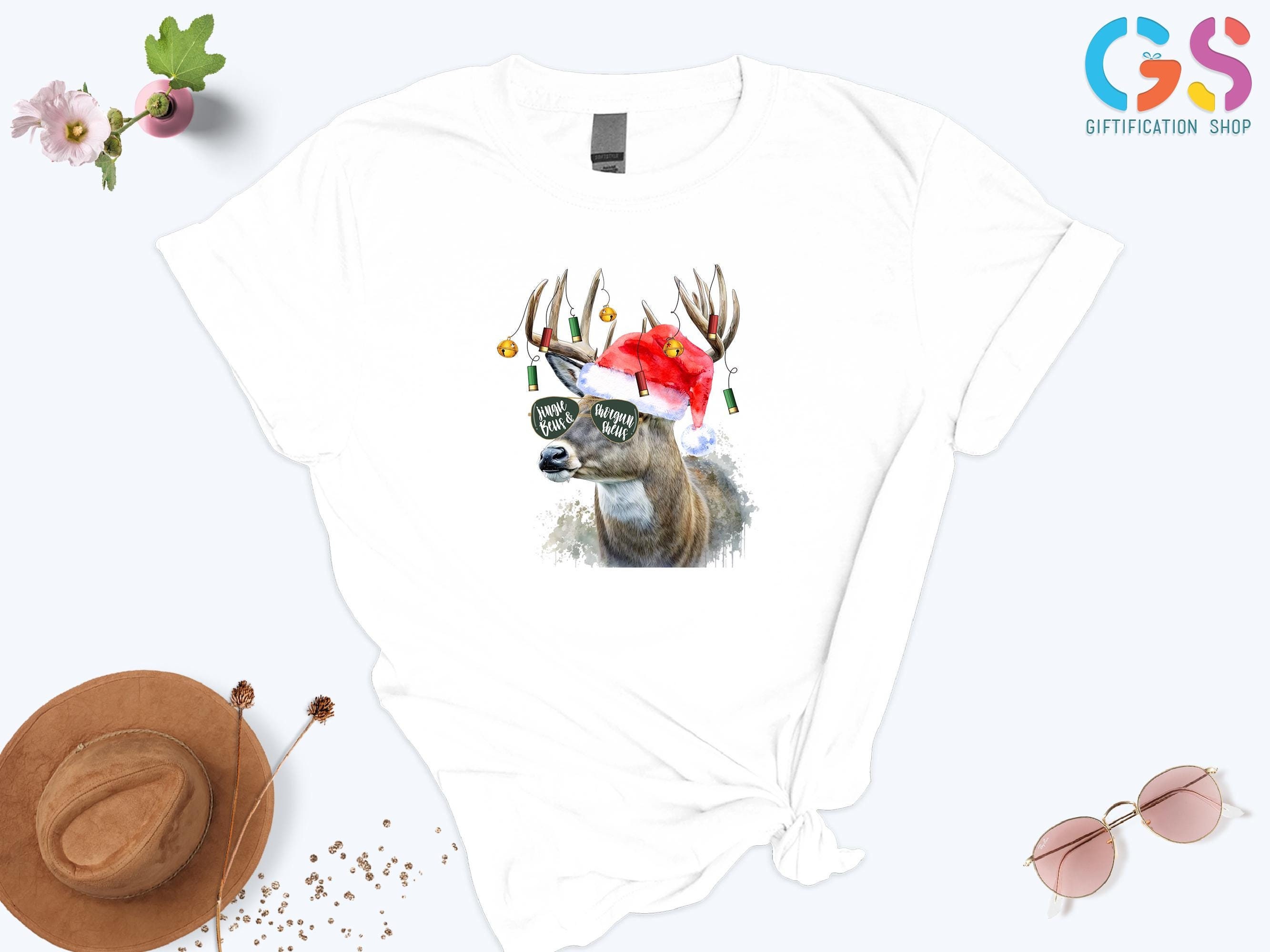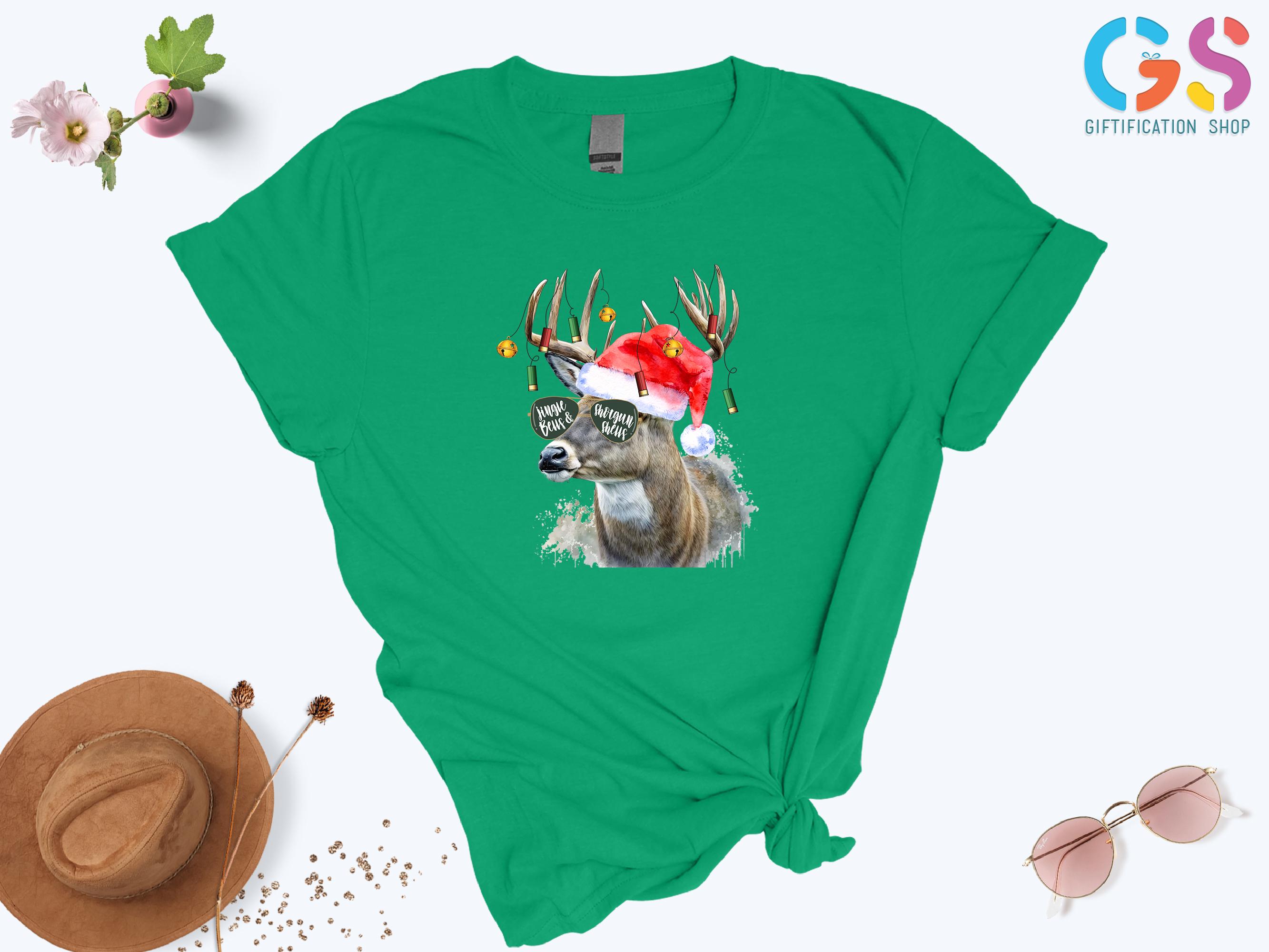 Jingle Bells Shotgun Shells Shirt, Christmas Deer Hunting Shirt, Deer Hunter Gifts, Christmas Hunter Tees, Rudolph Shirt, Gift For Him