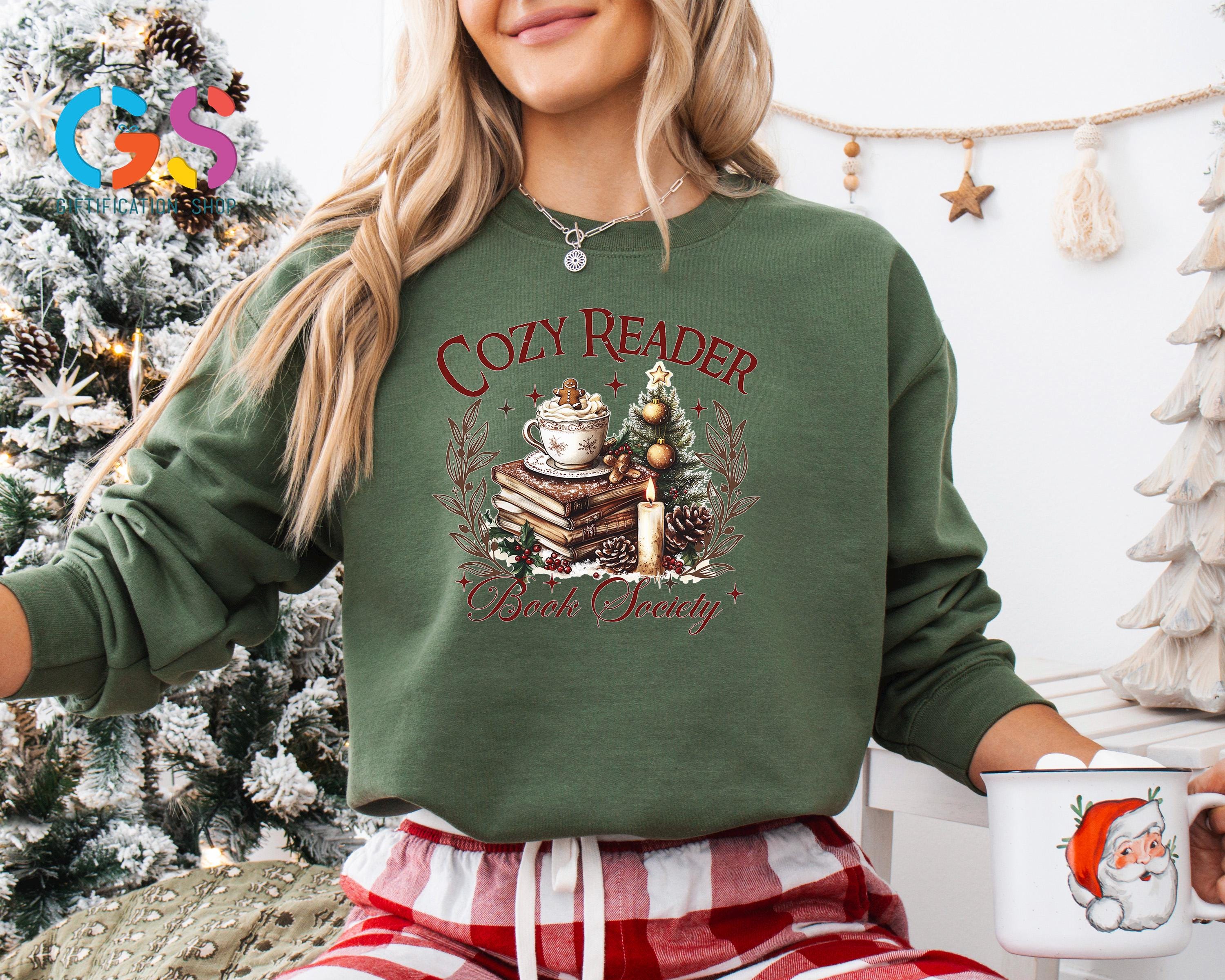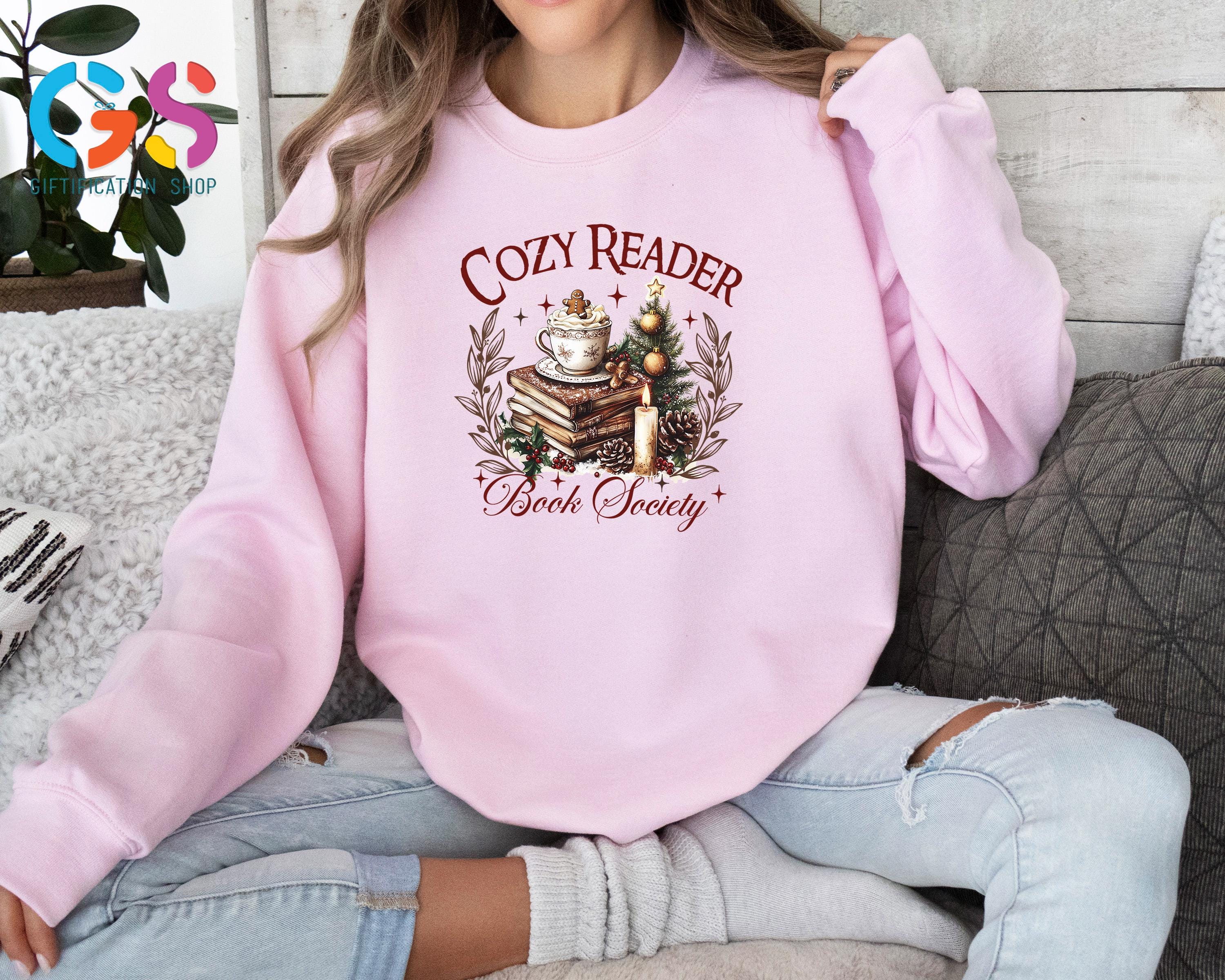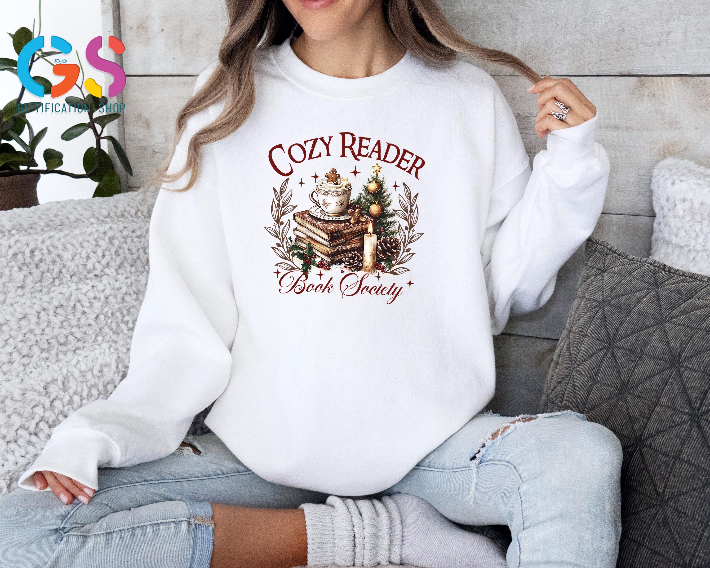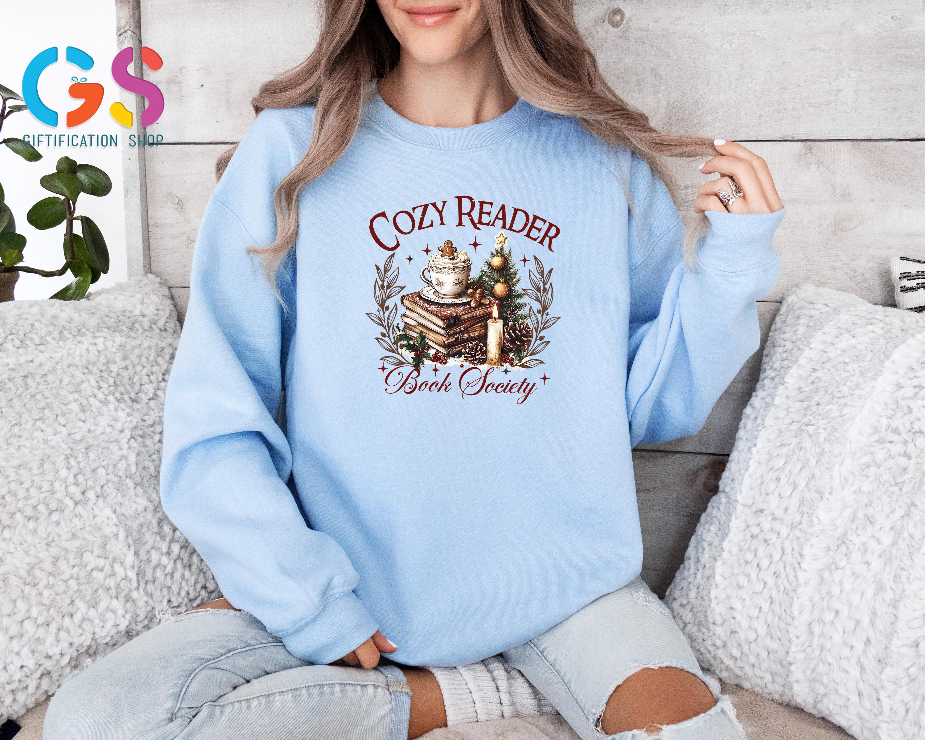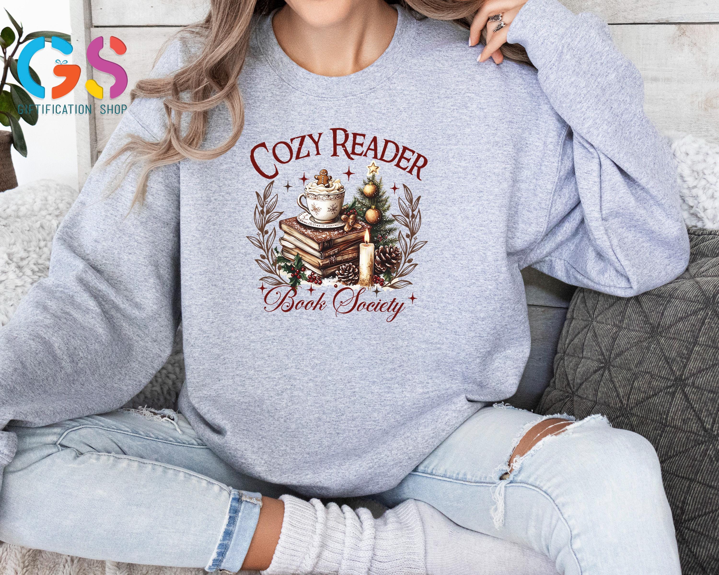 Cozy Reader Book Society Sweater, Christmas Bookish Sweatshirt, Reader Winter Hoodie, Cozy Season Sweatshirt For Book Lovers, Reading Hoodie