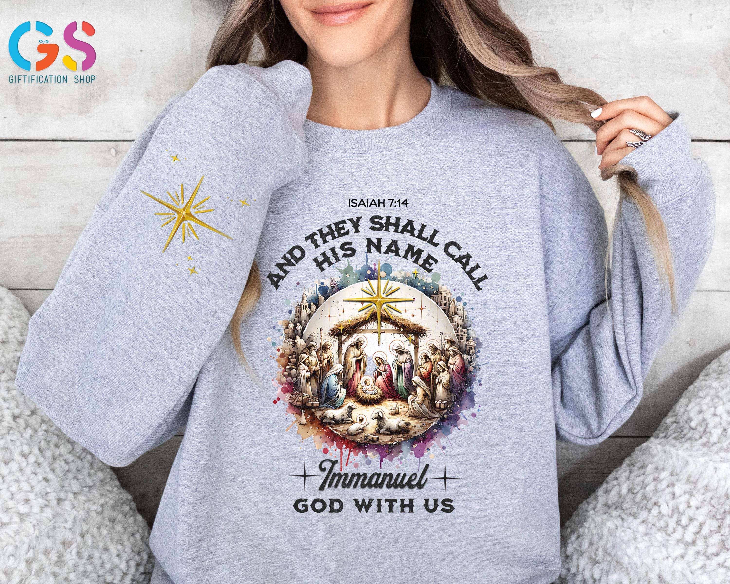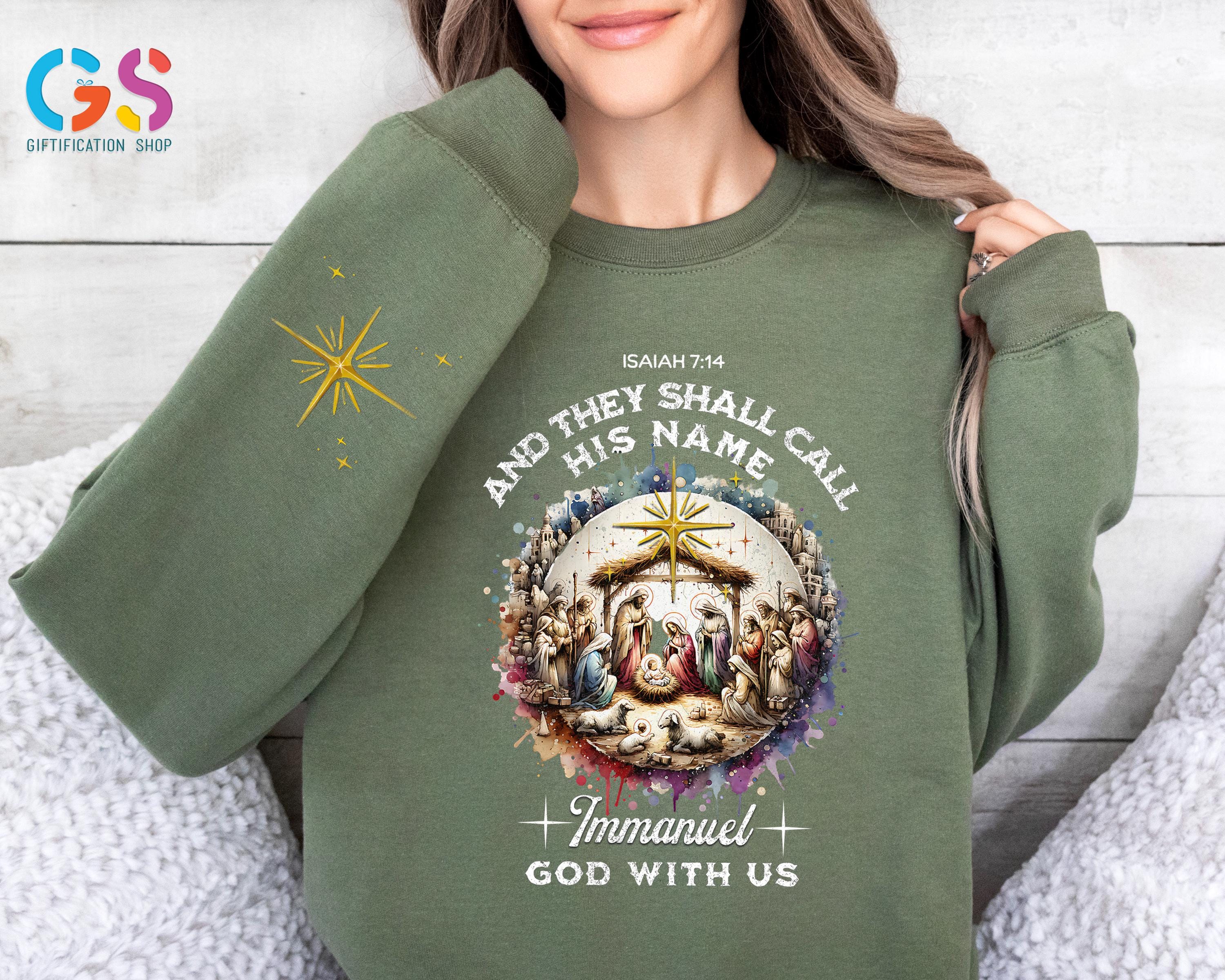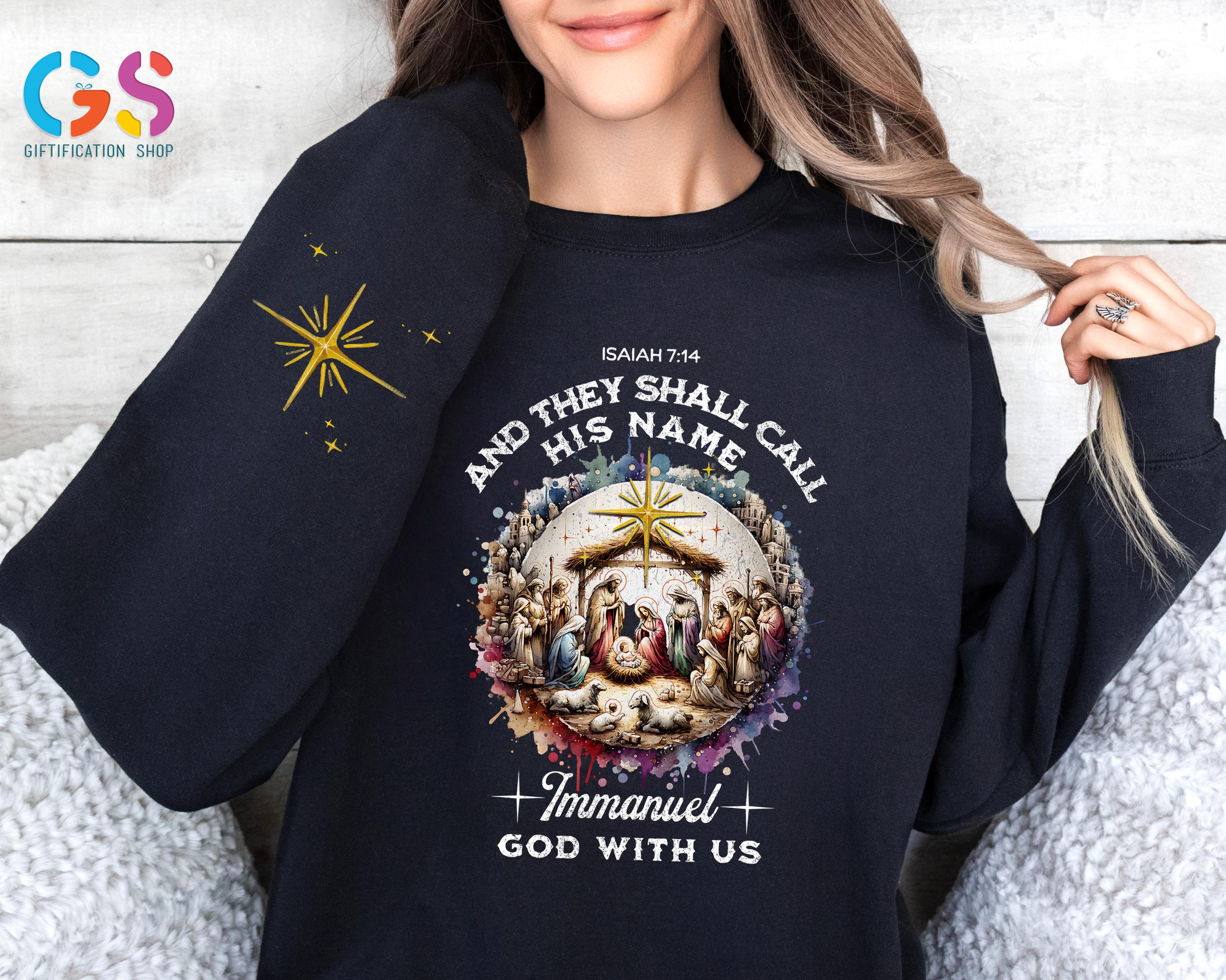 Nativity Scene Sweater, They Shall Call His Name Immanuel, O Come Let Us Adore Him, Christian Easter Gift, God With Us Hoodie