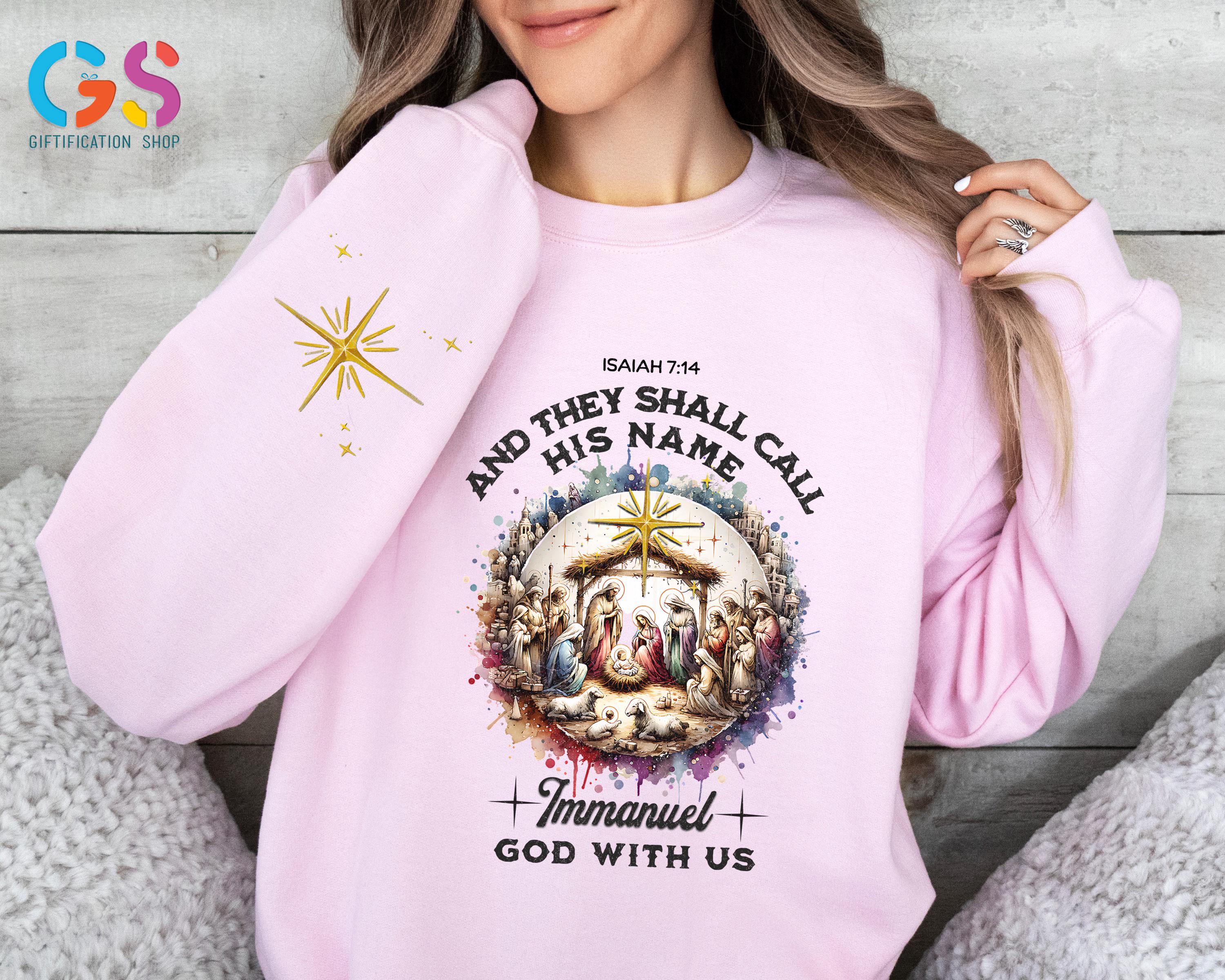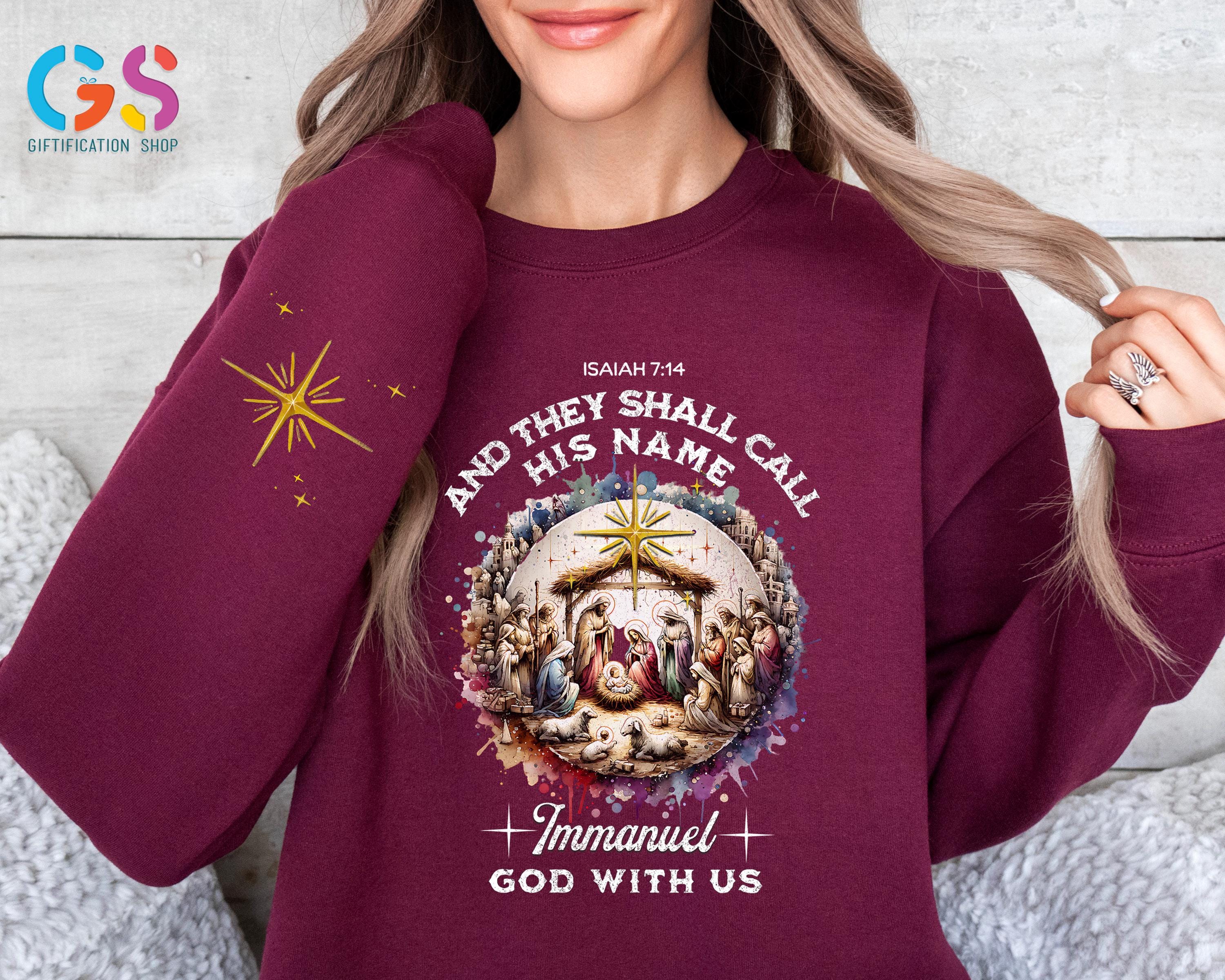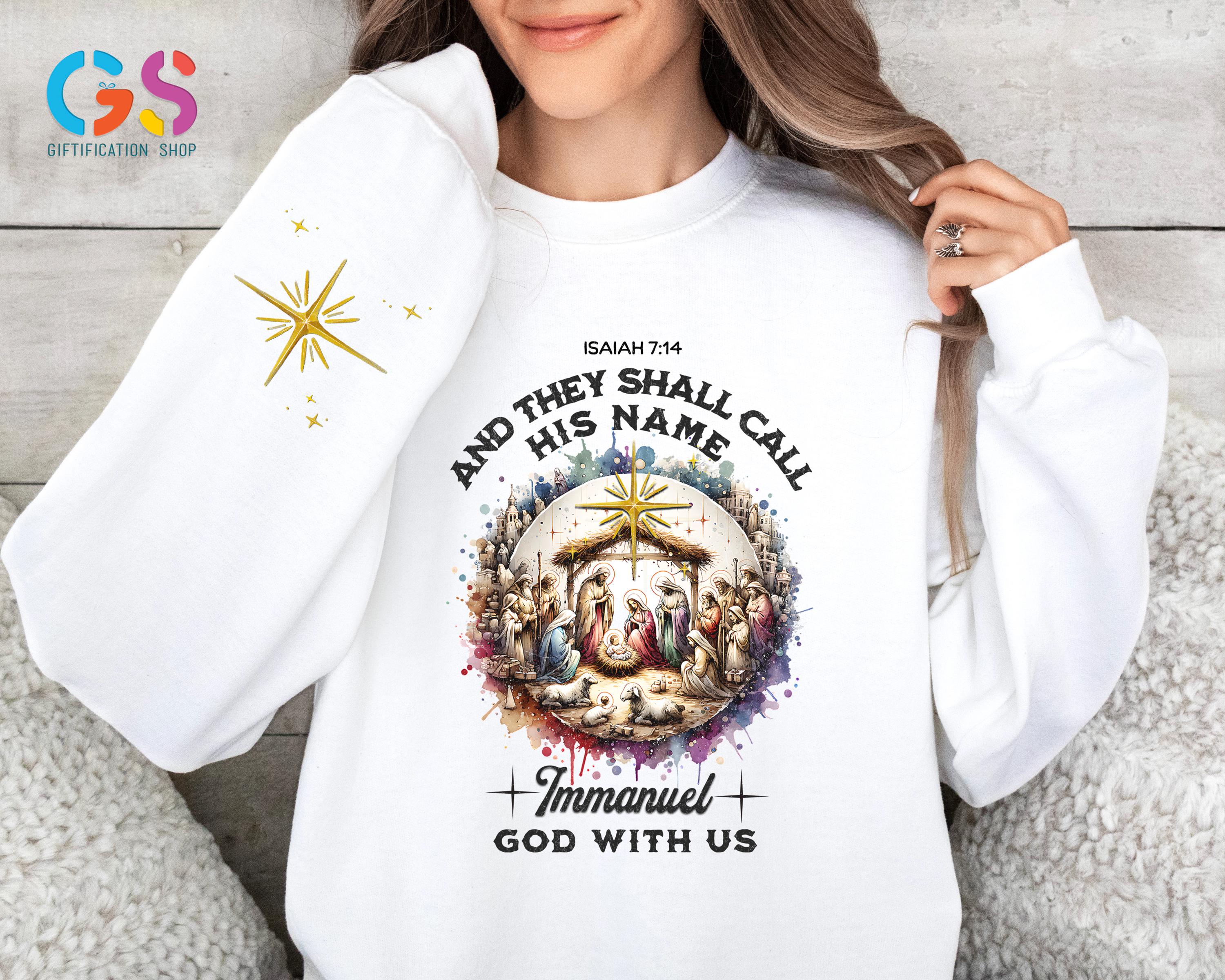 Nativity Scene Sweater, They Shall Call His Name Immanuel, O Come Let Us Adore Him, Christian Easter Gift, God With Us Hoodie
