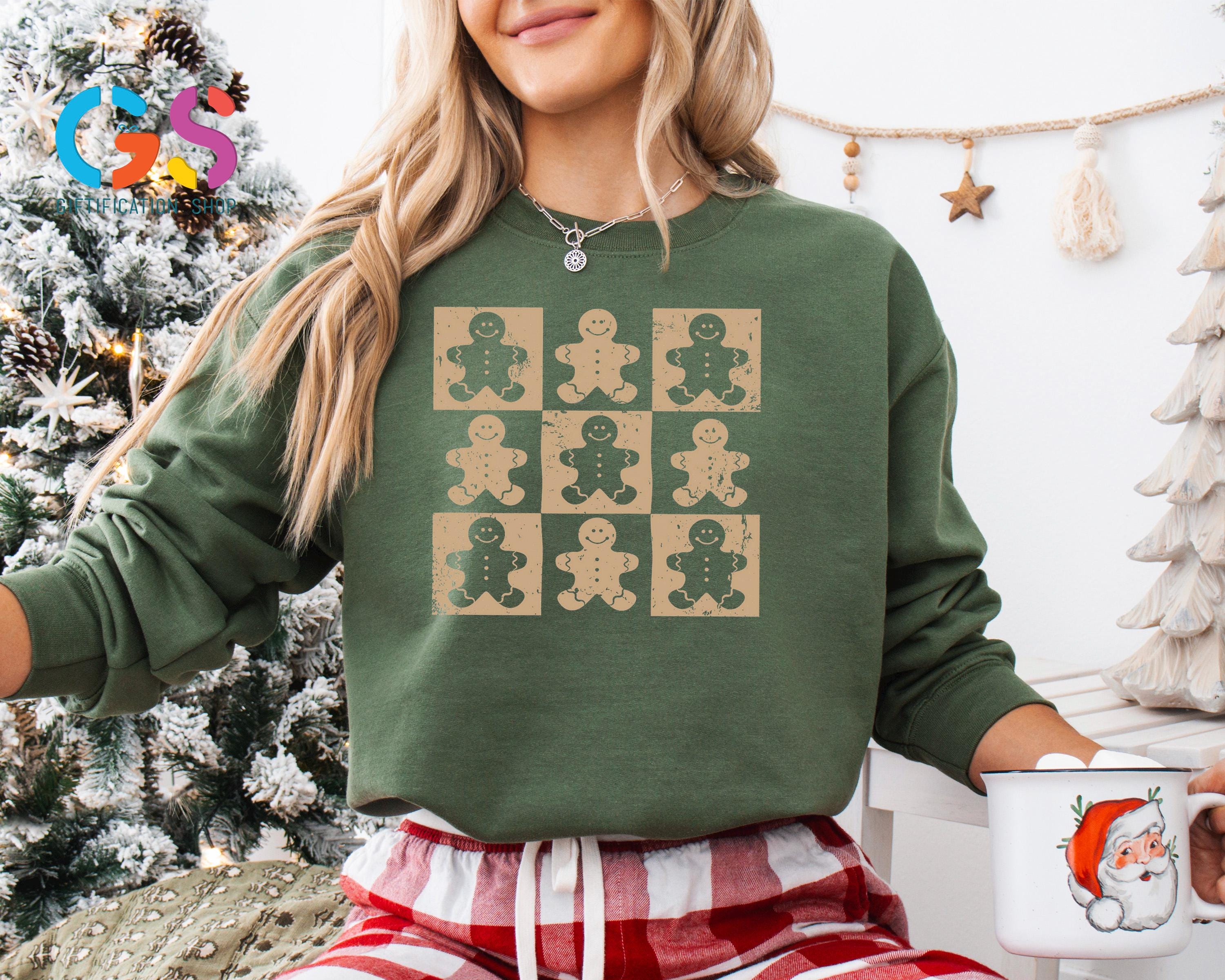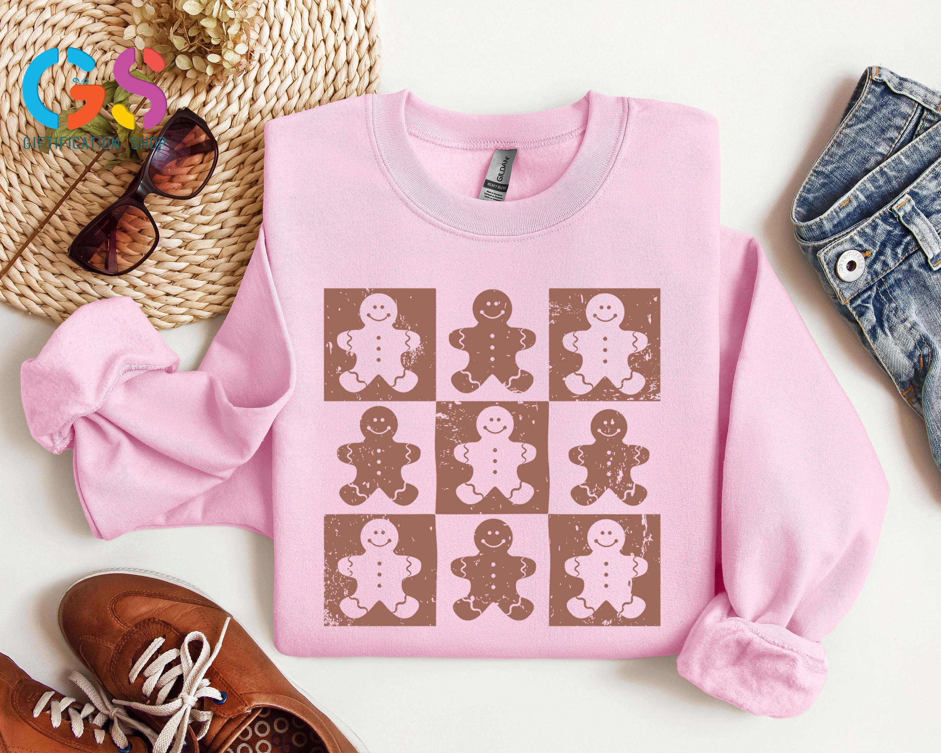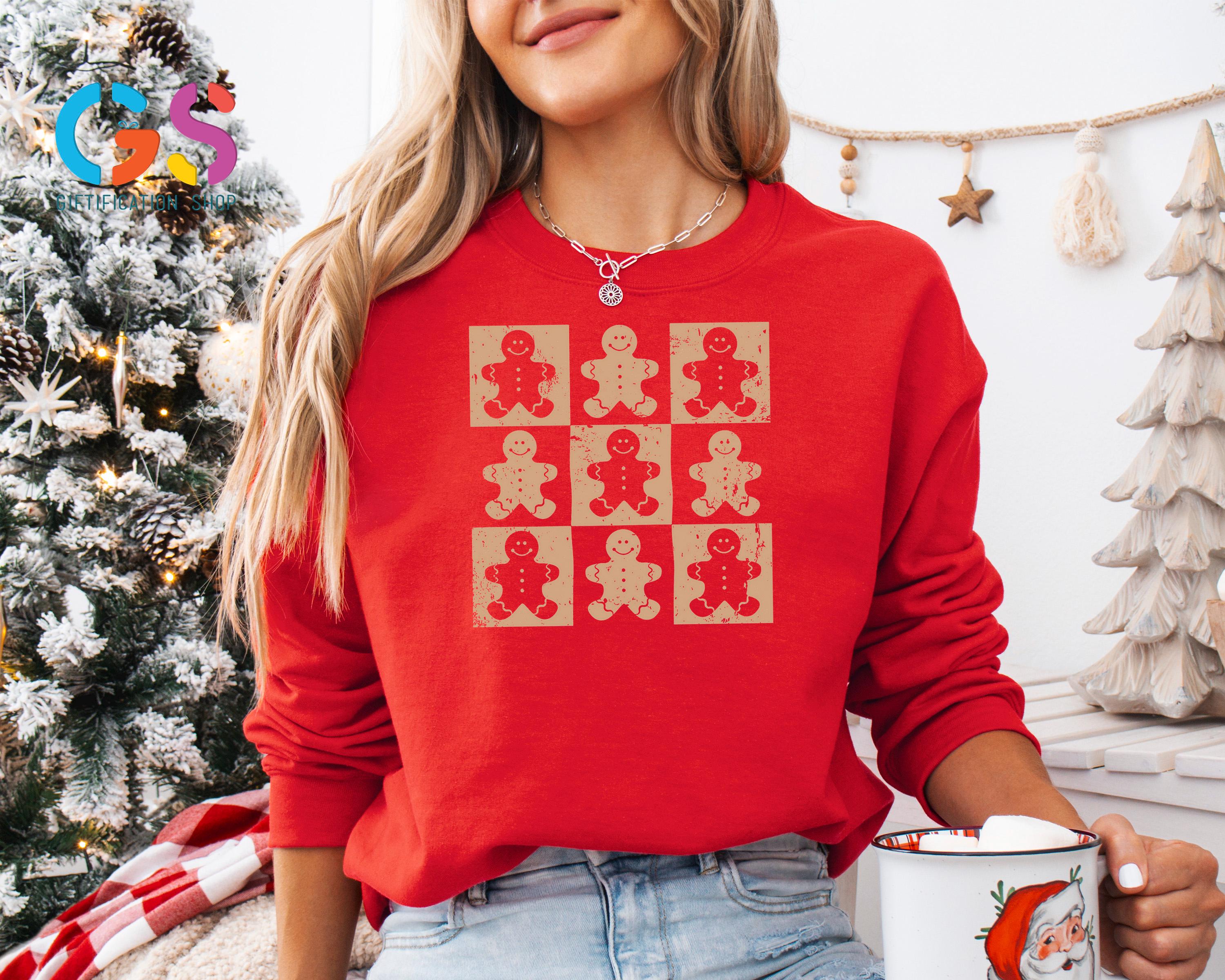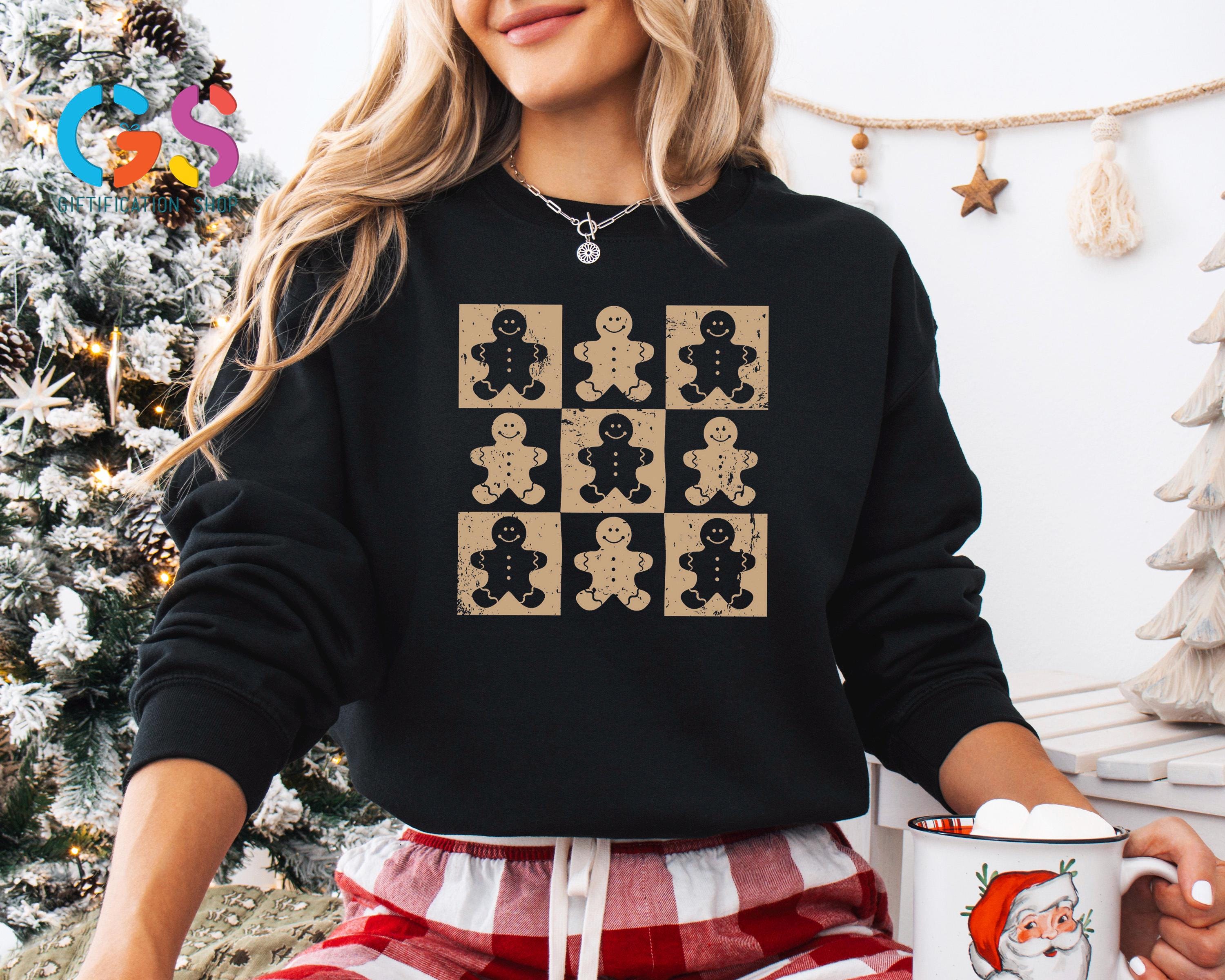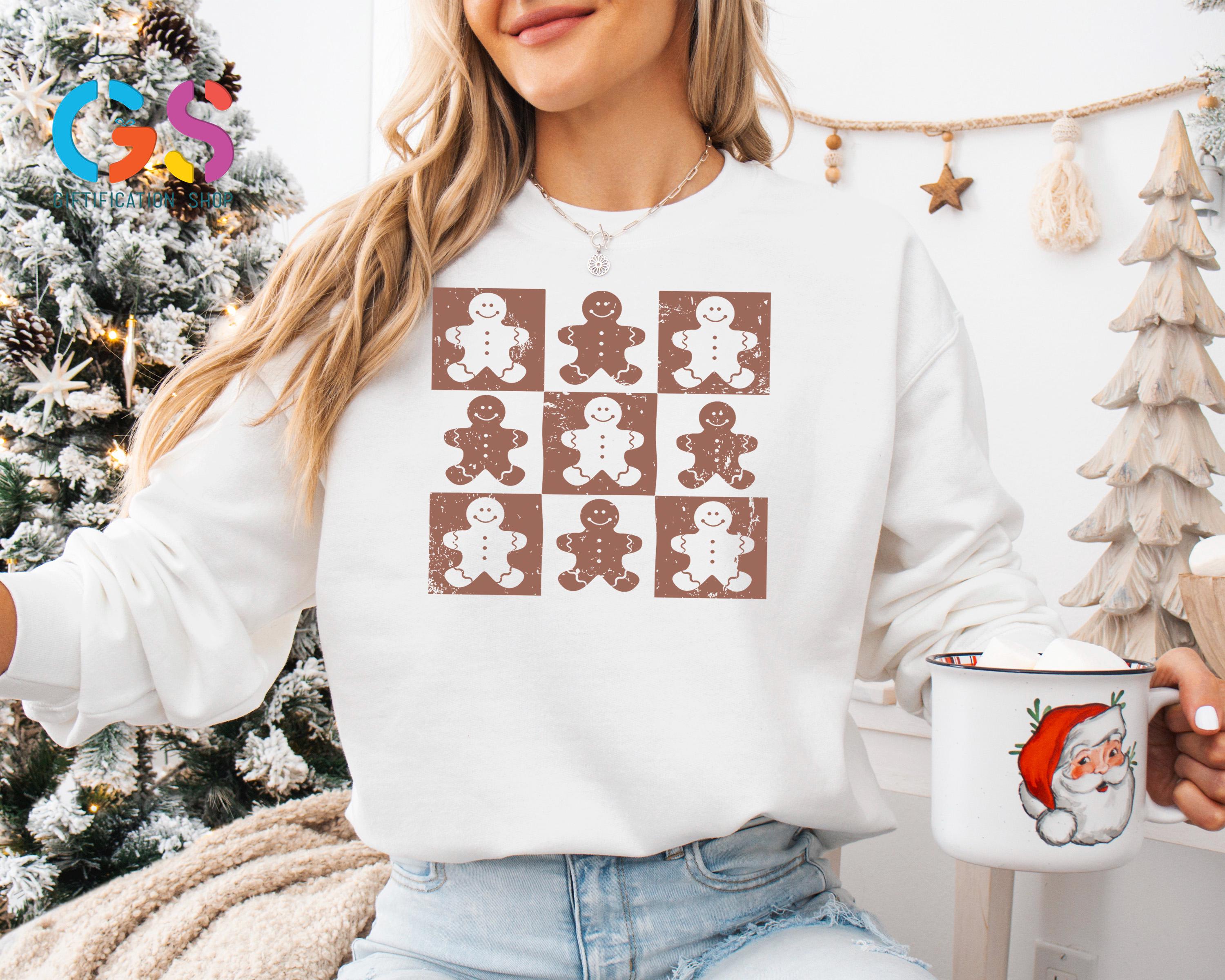 Retro Checkered Gingerbread Man Sweatshirt, Trendy Distressed Christmas Sweater, Retro Christmas Hoodie, Vintage Xmas Holiday Sweater