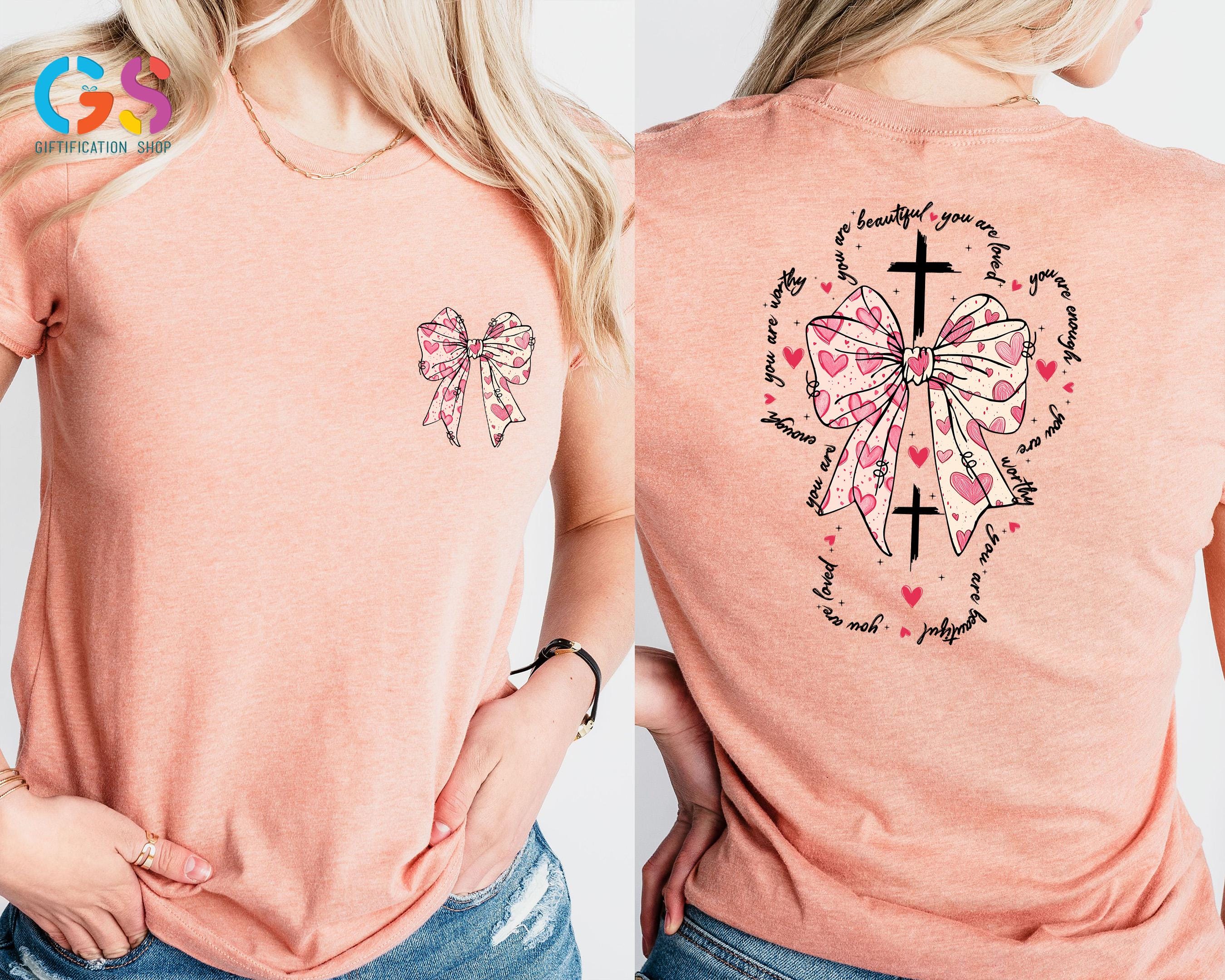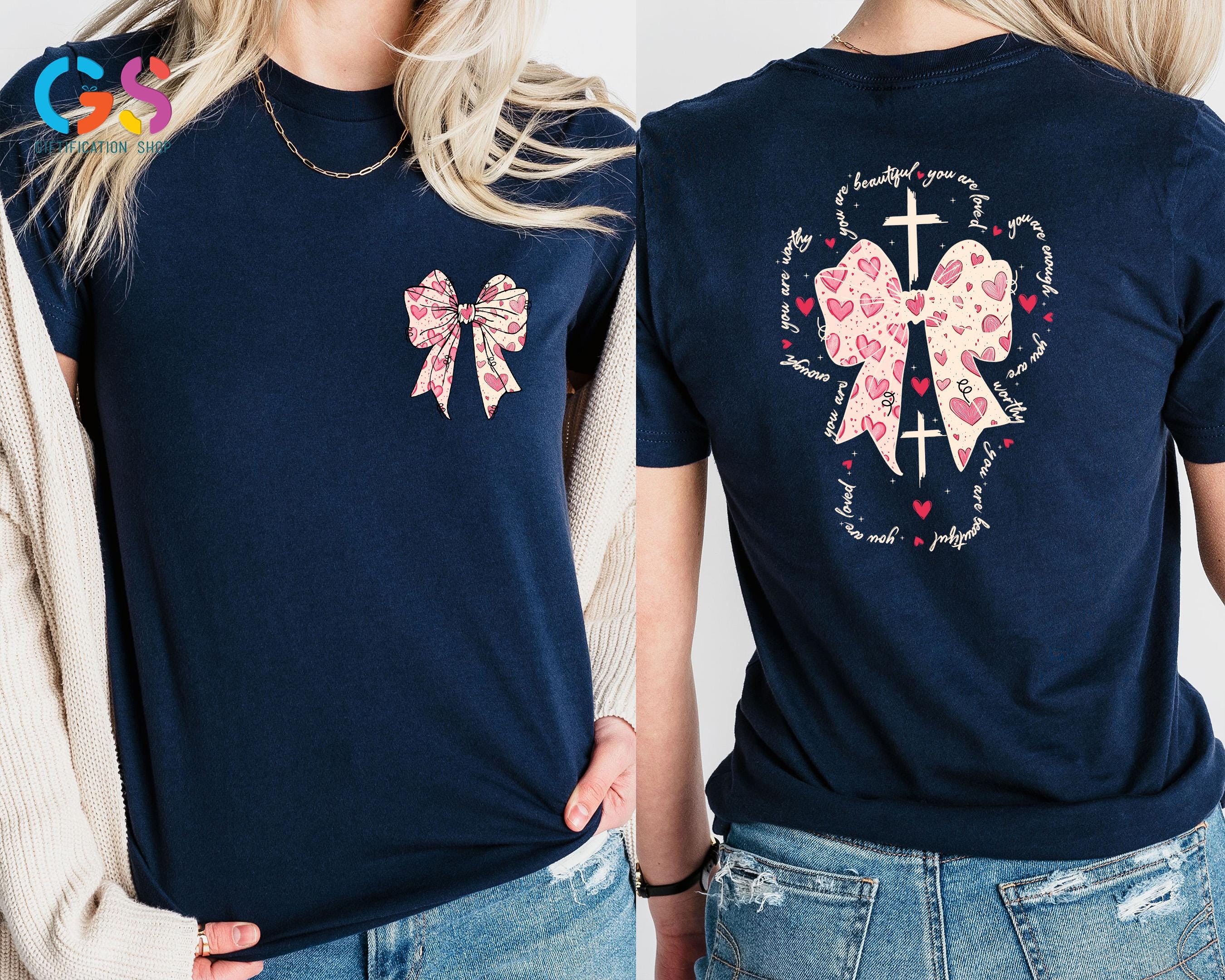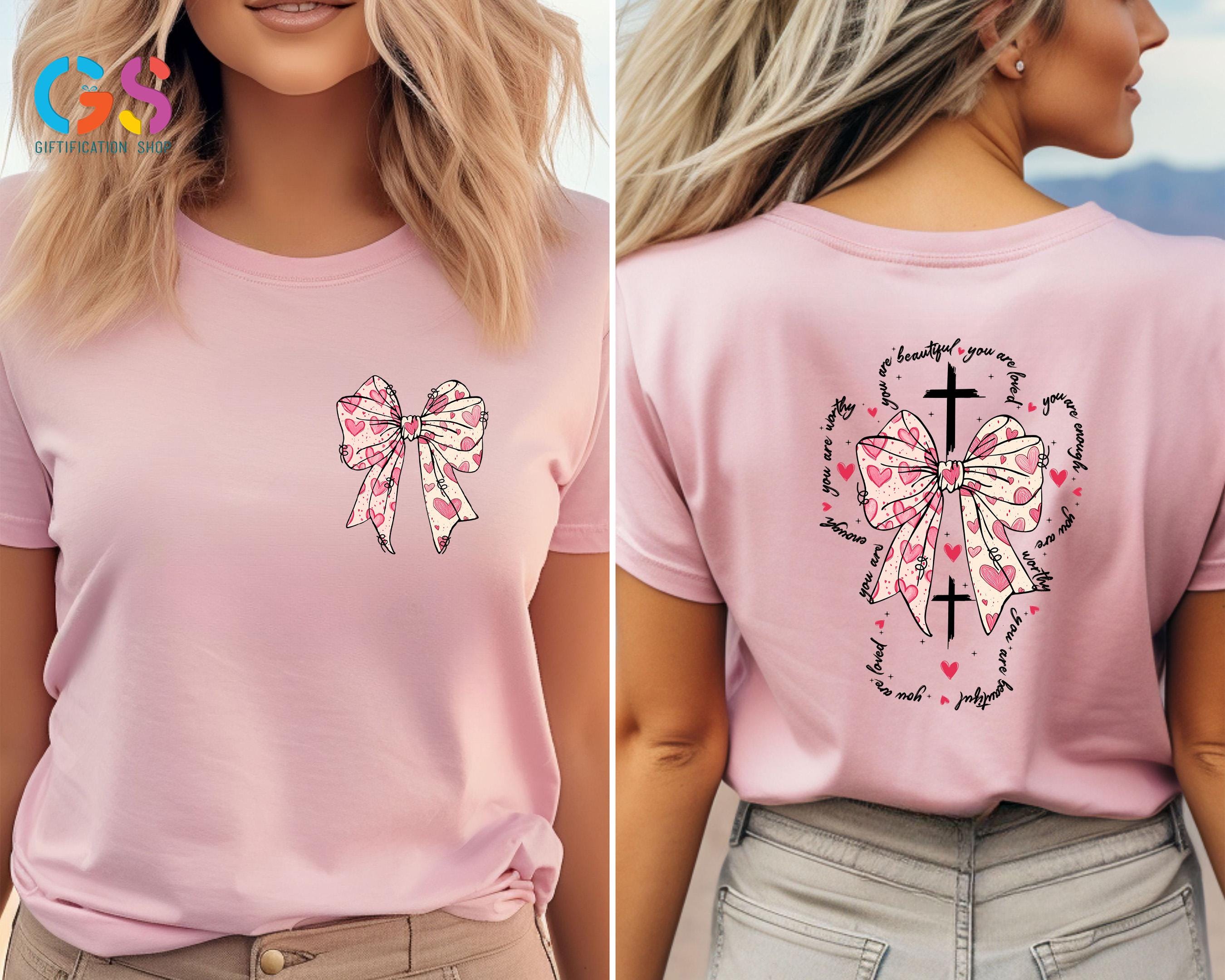 You Are Enough Loved Worthy T-Shirt, Coquette Cross Shirt, Valentines Day Gift, Valentine’s Day Christian Shirt, Coquette Valentine Gift