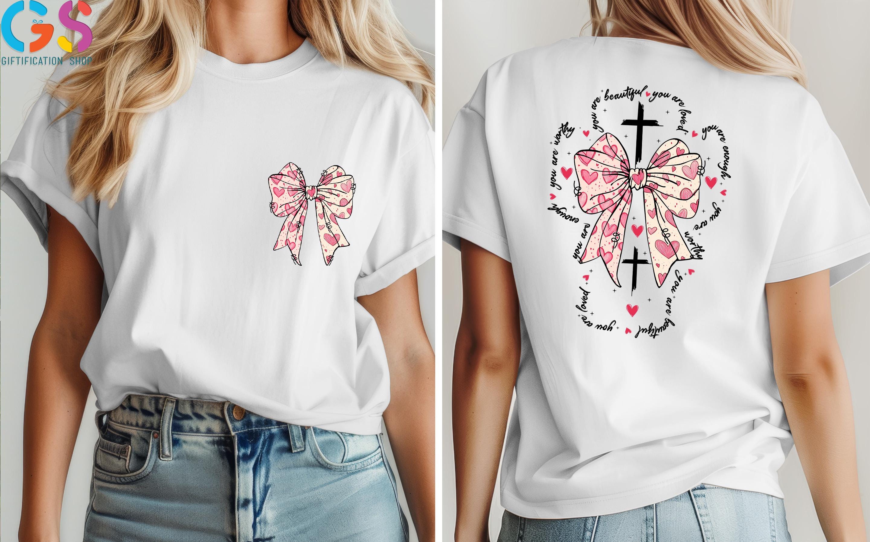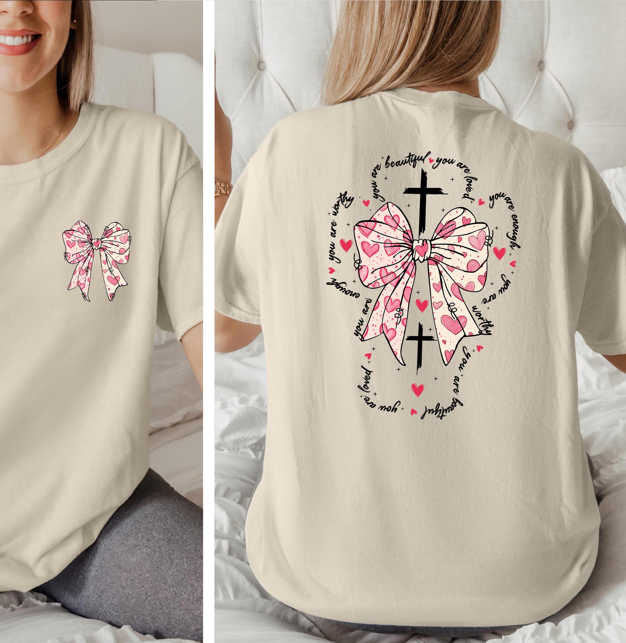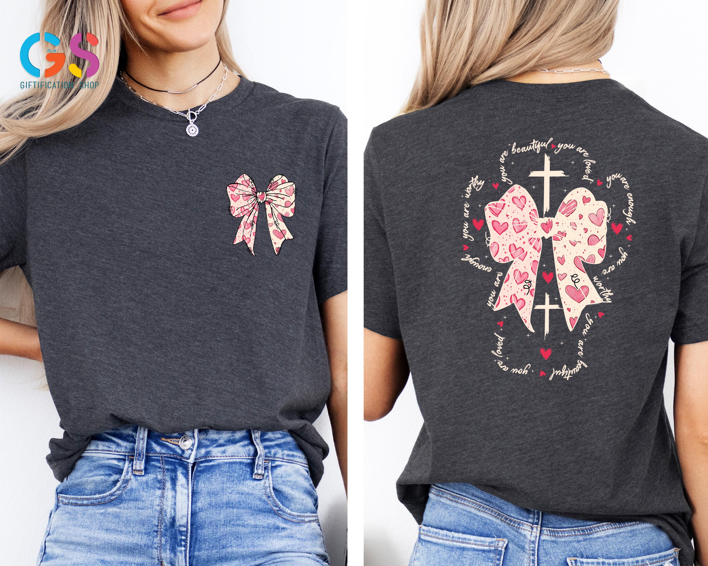 You Are Enough Loved Worthy T-Shirt, Coquette Cross Shirt, Valentines Day Gift, Valentine’s Day Christian Shirt, Coquette Valentine Gift