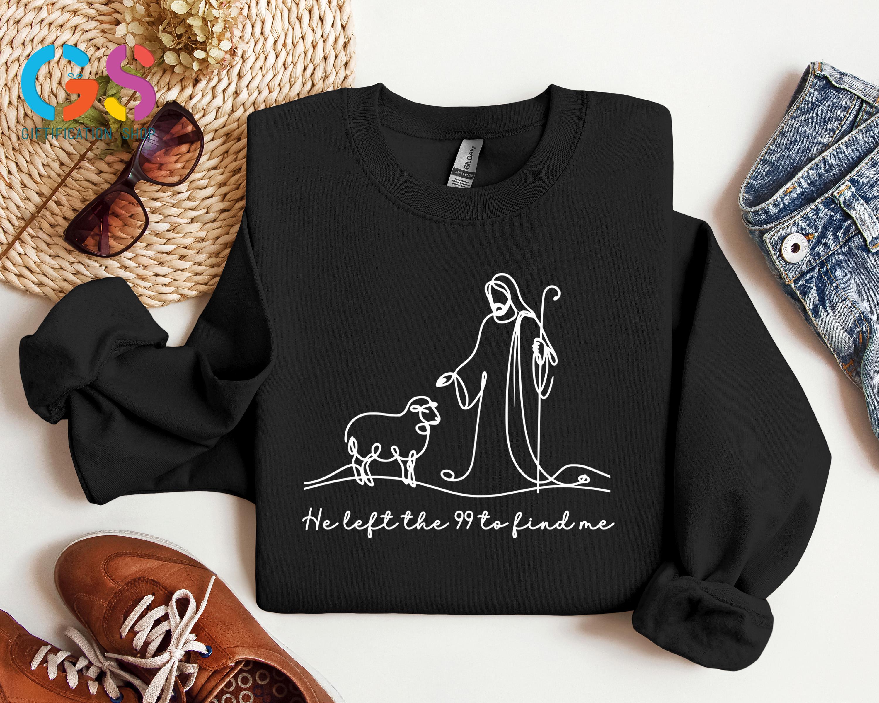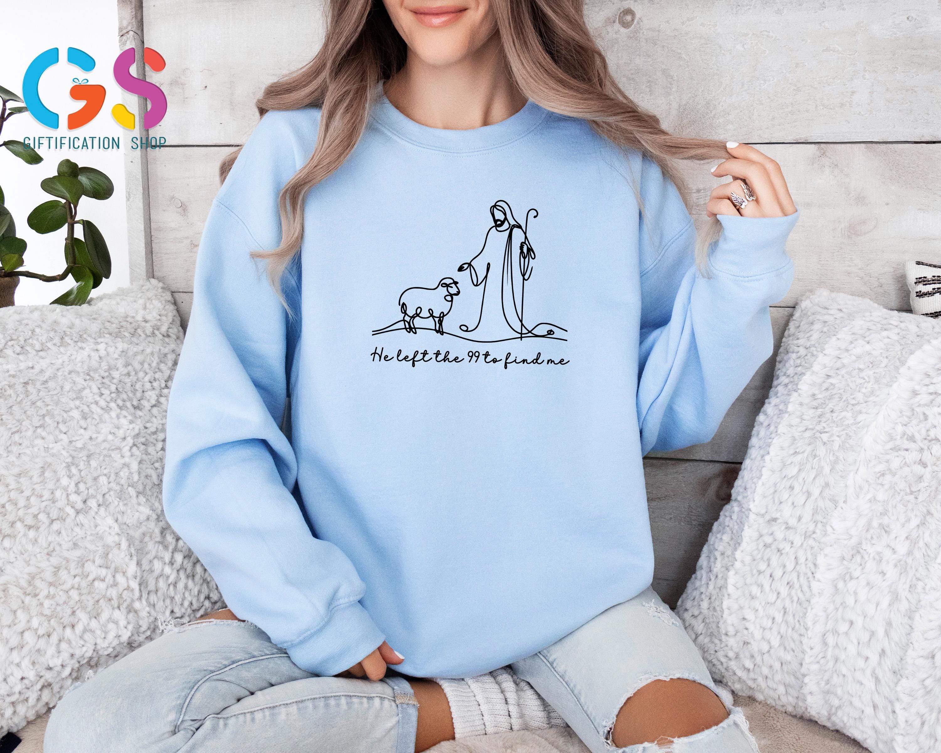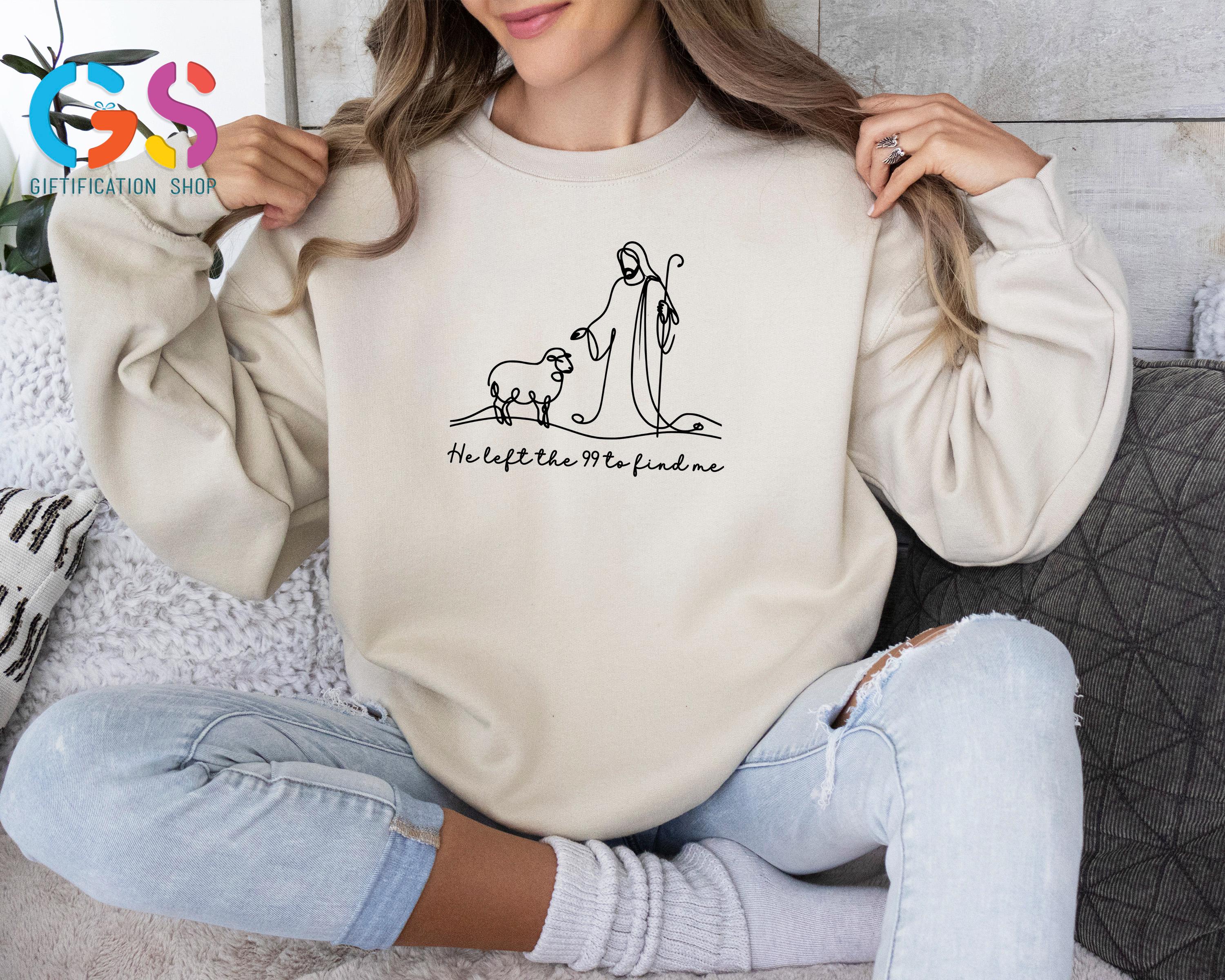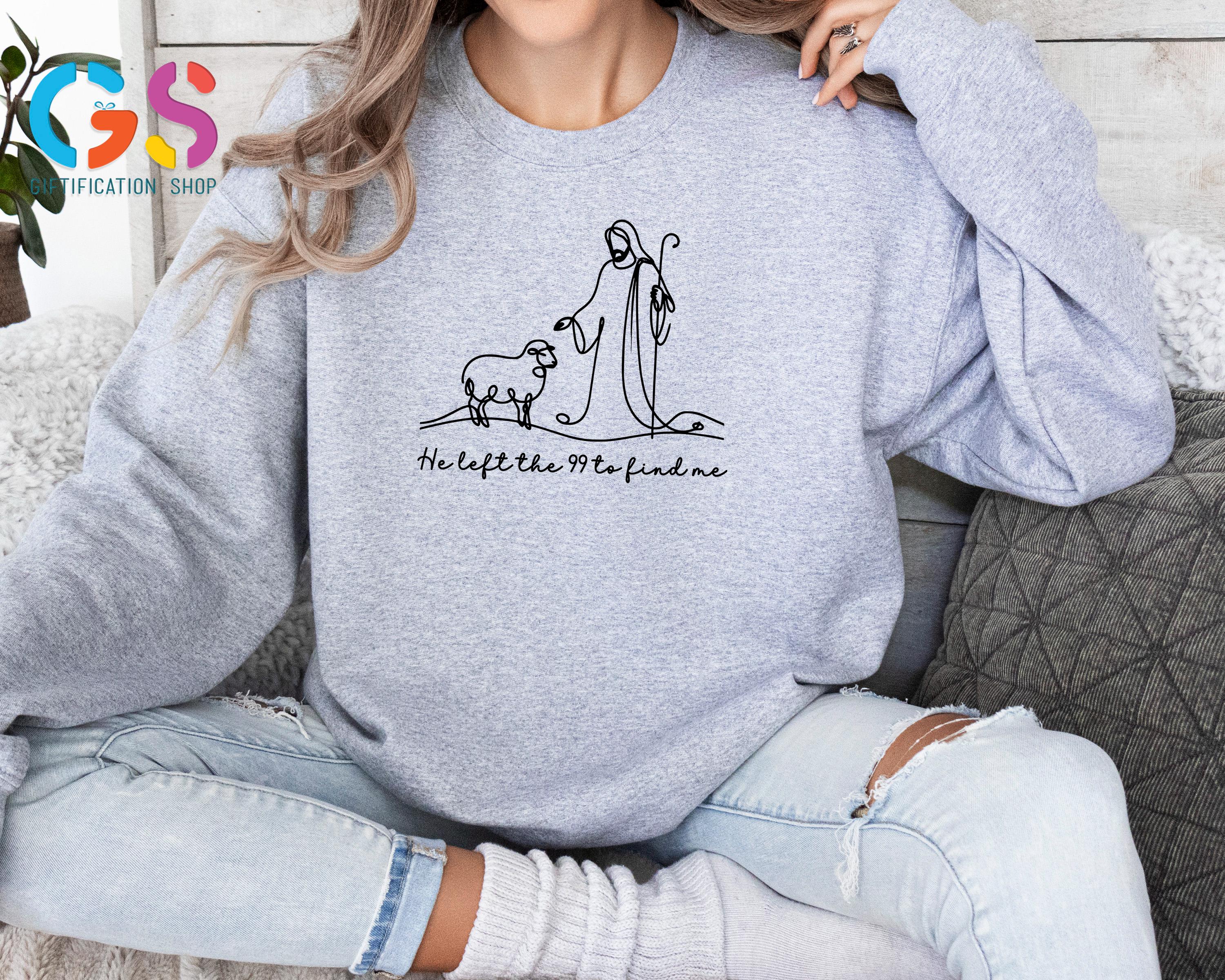 He Left the 99 To Find Me Sweatshirt, Lost Sheep Sweatshirt, Christian Crewneck Sweatshirt, Faith Hoodie,Bible Verse Clothing,Religious Gift