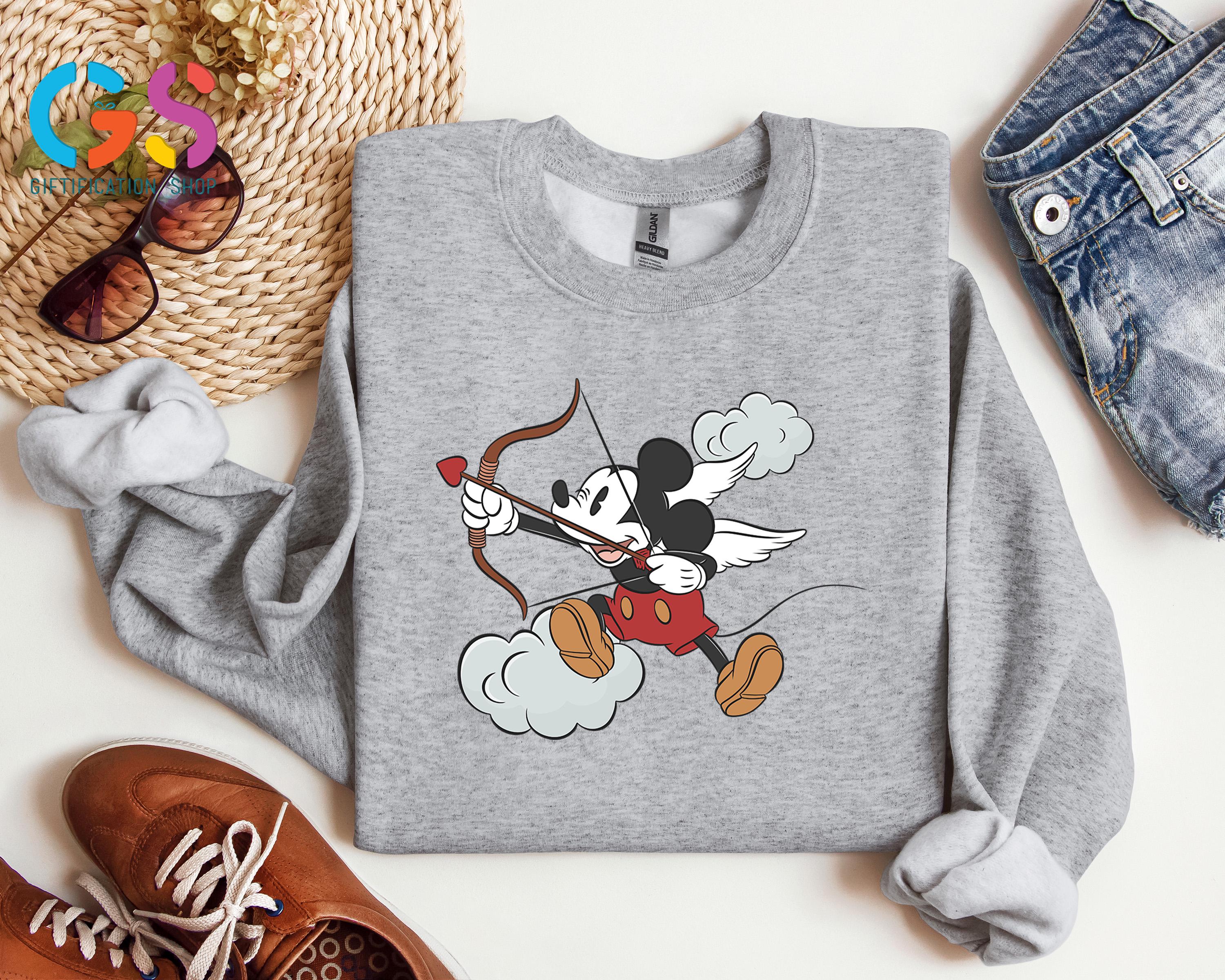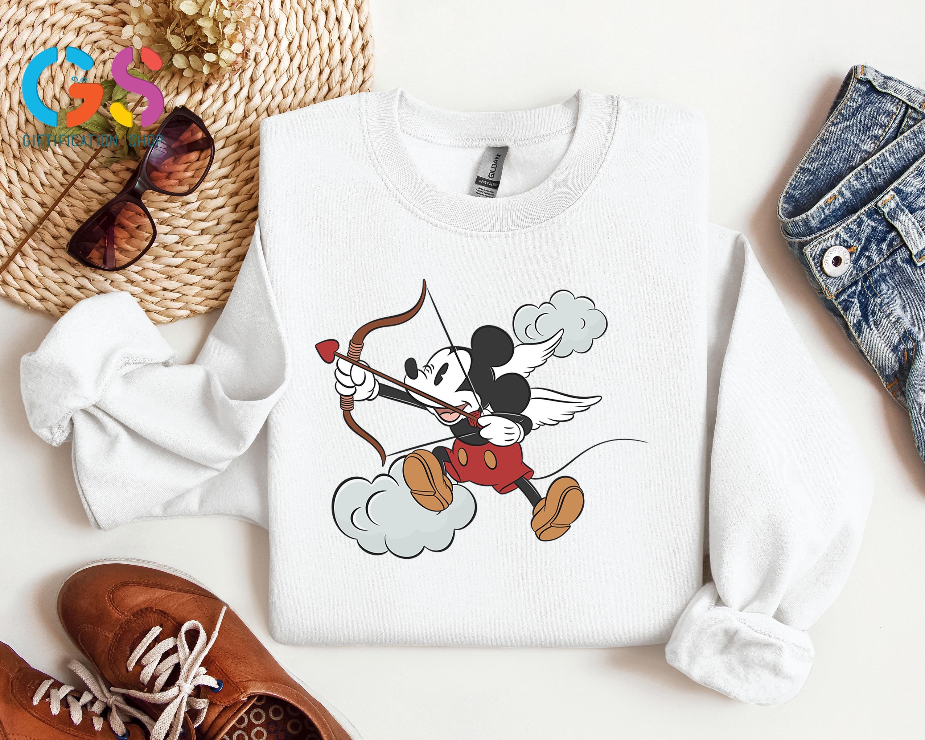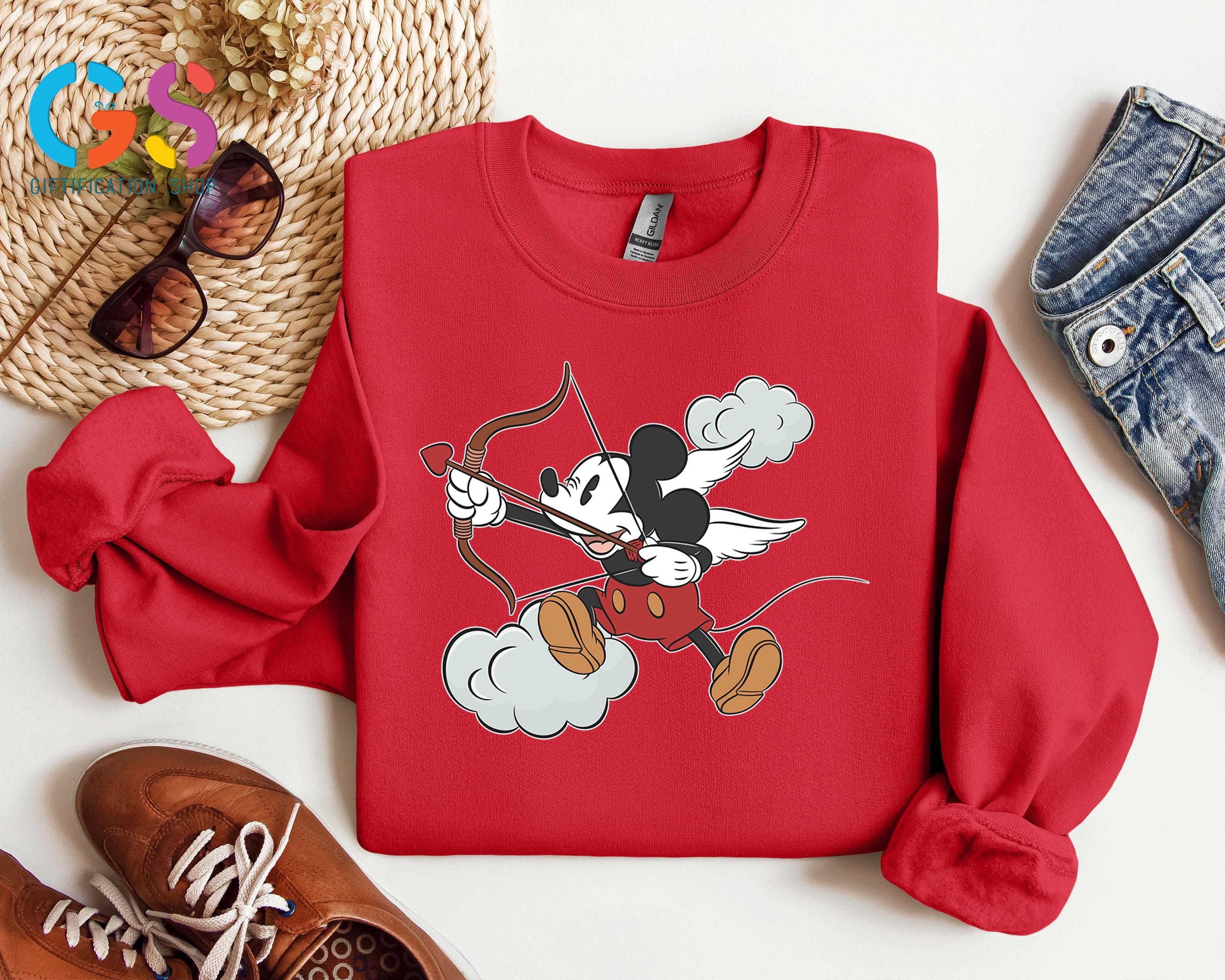 Cupid Mickey Sweatshirt, Valentines Day Mickey Sweater, Valentines Day Gift For Boyfriend, Mickey Sweatshirt For Him, Valentine Day Hoodie