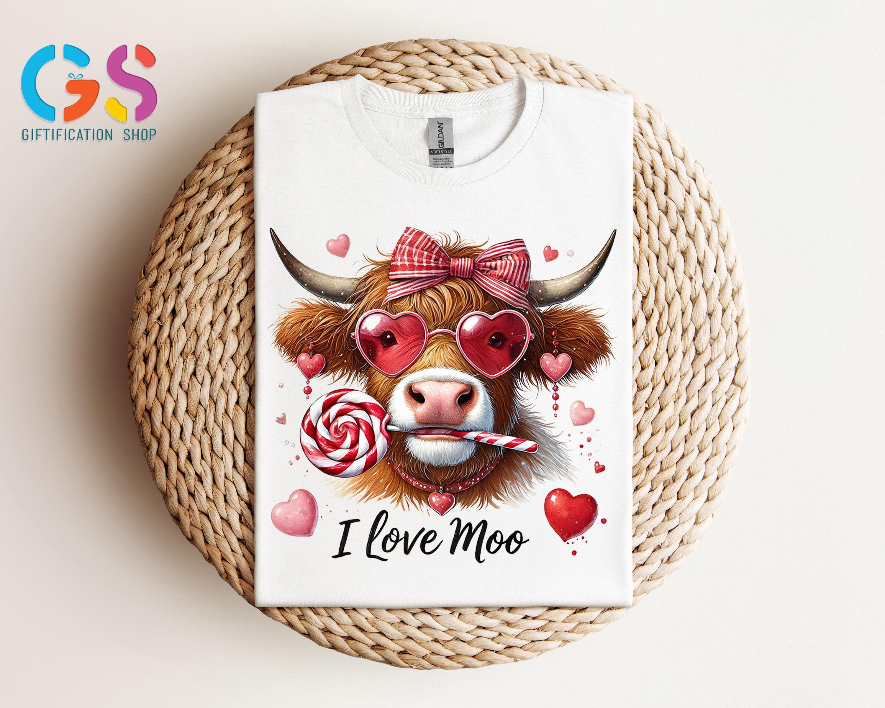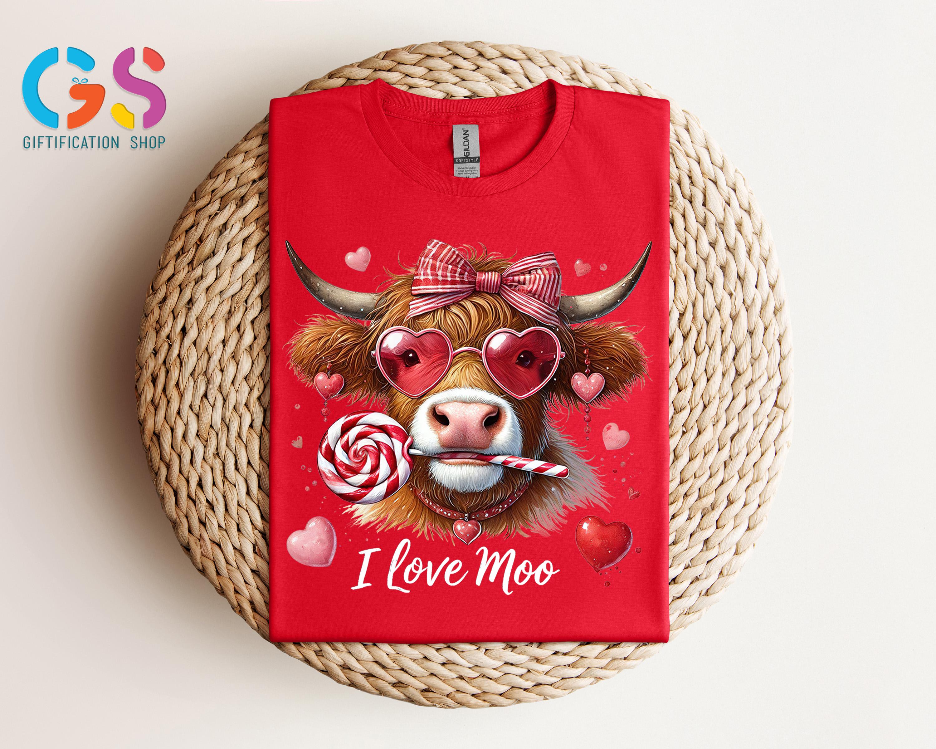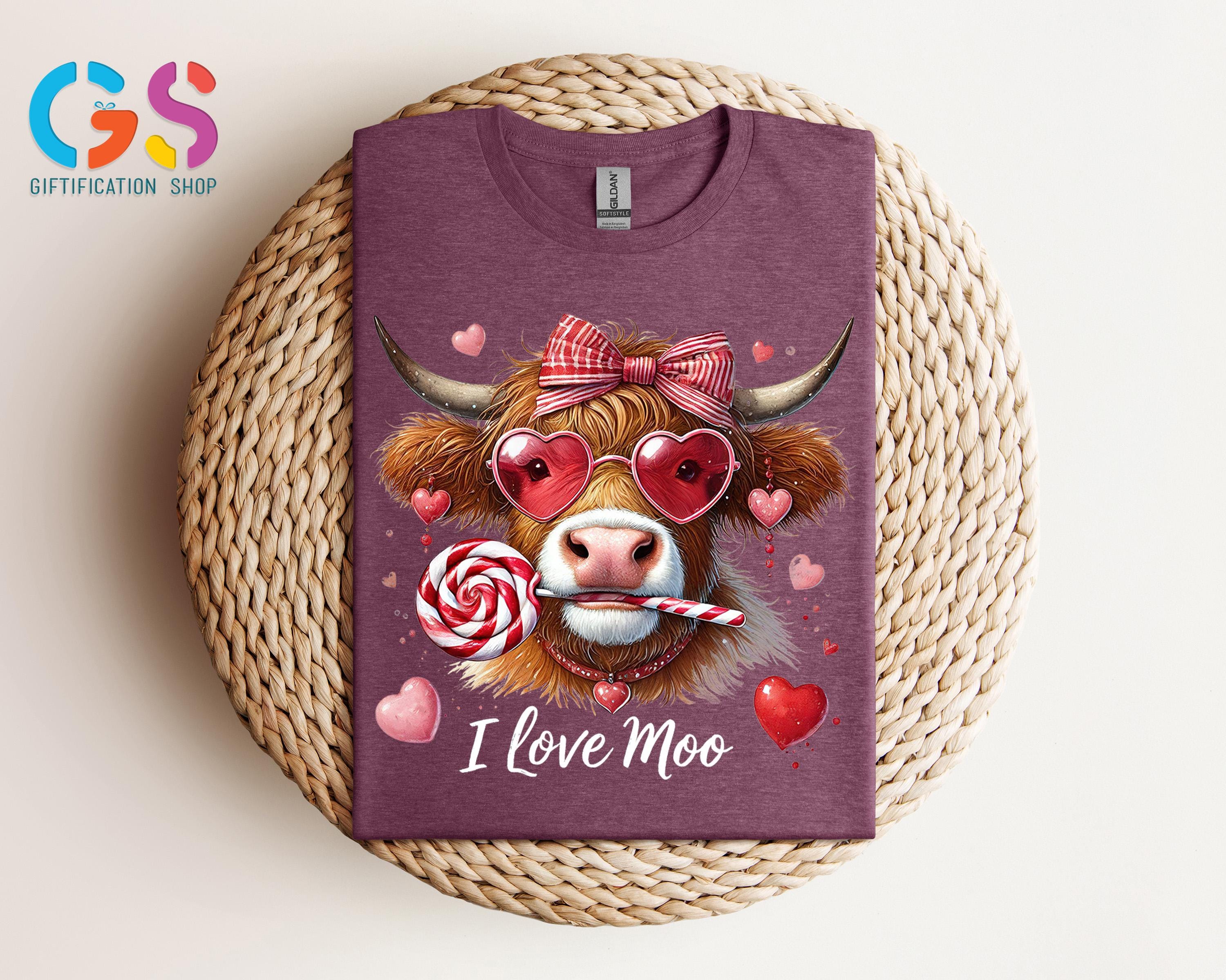 Cute Valentine Cow Shirt, Highland Cow Love Shirt, I Love Moo Shirt, Valentine Heart Cow Tee, Love Moo Shirt, Funny Valentine Day Cow Tee
