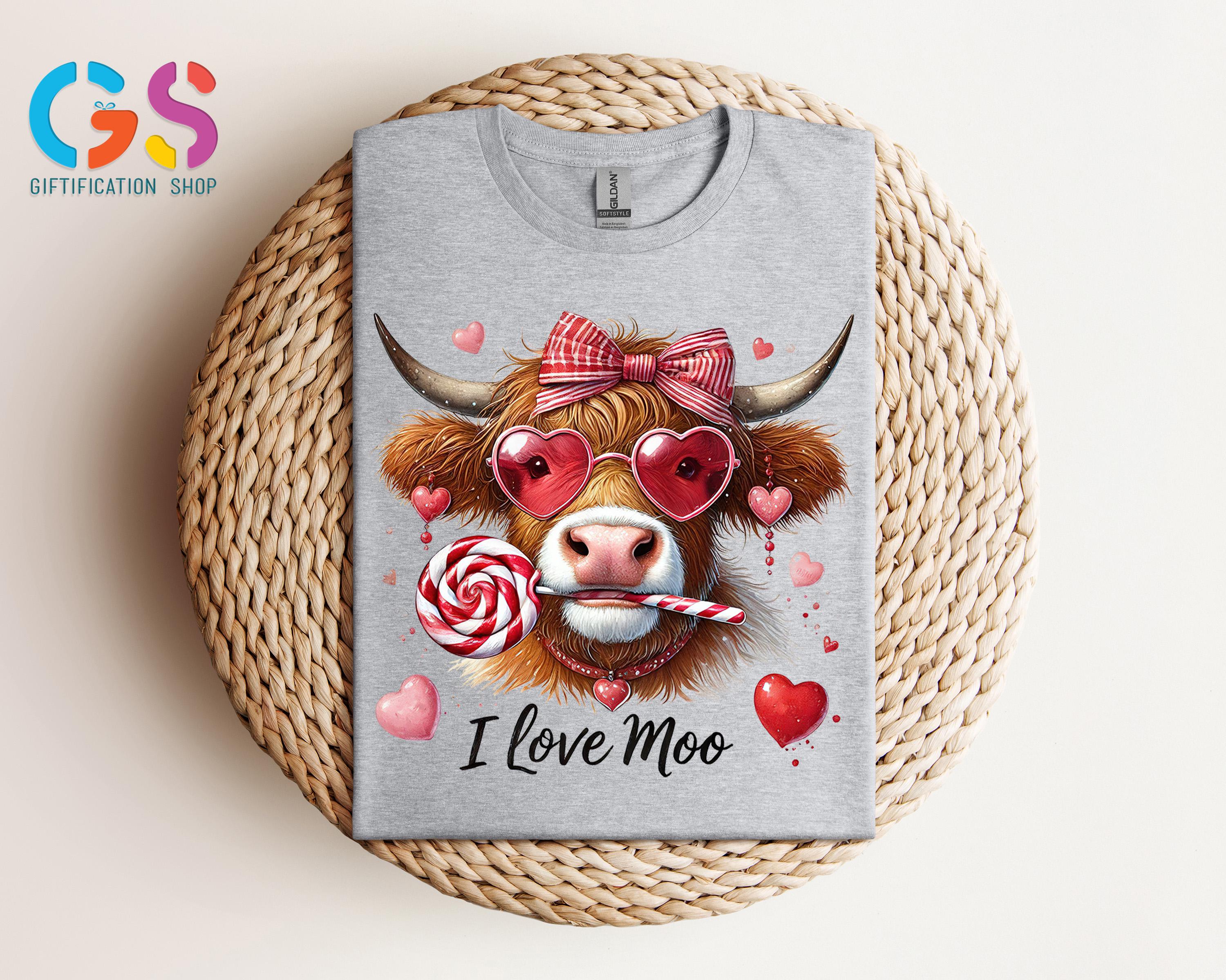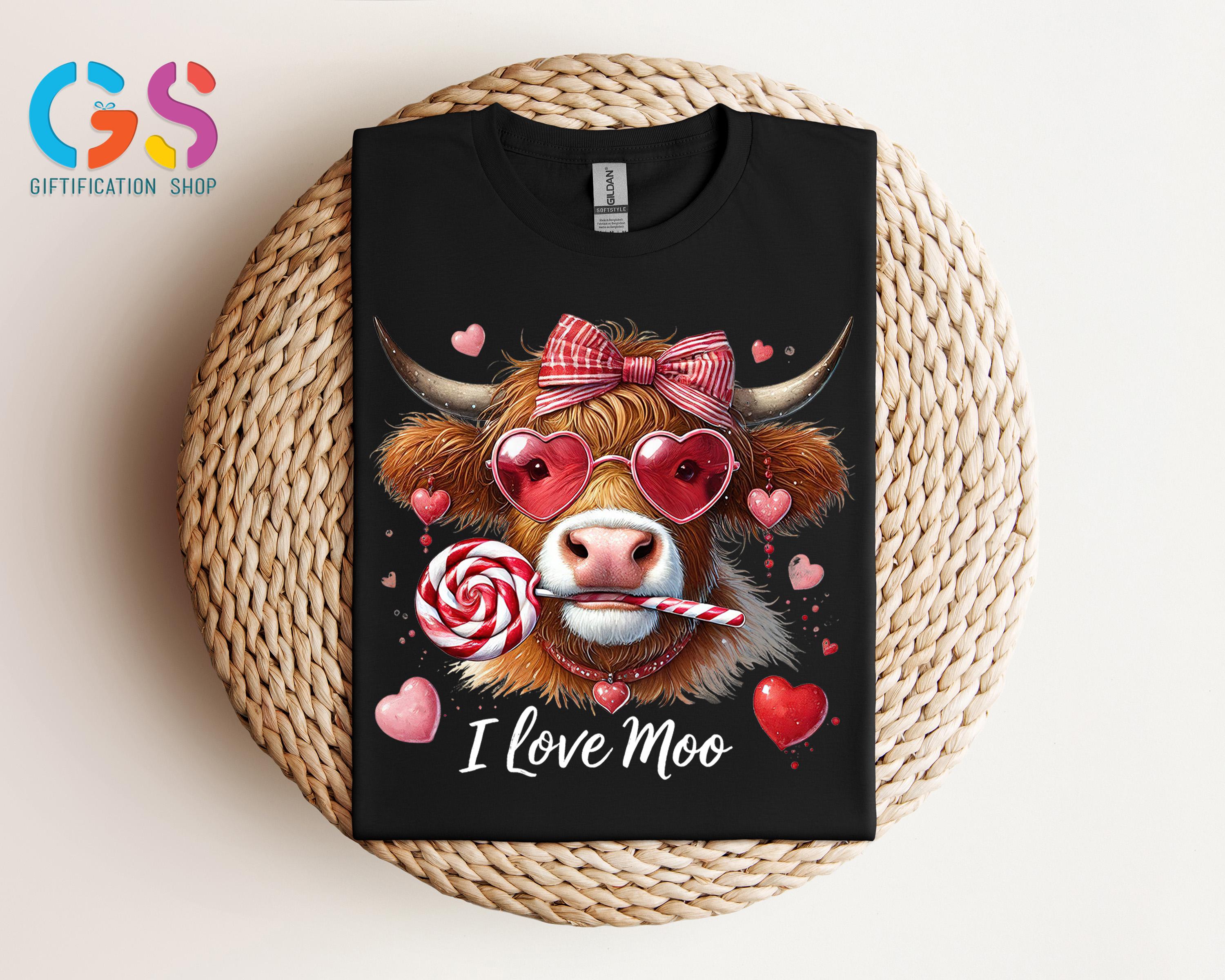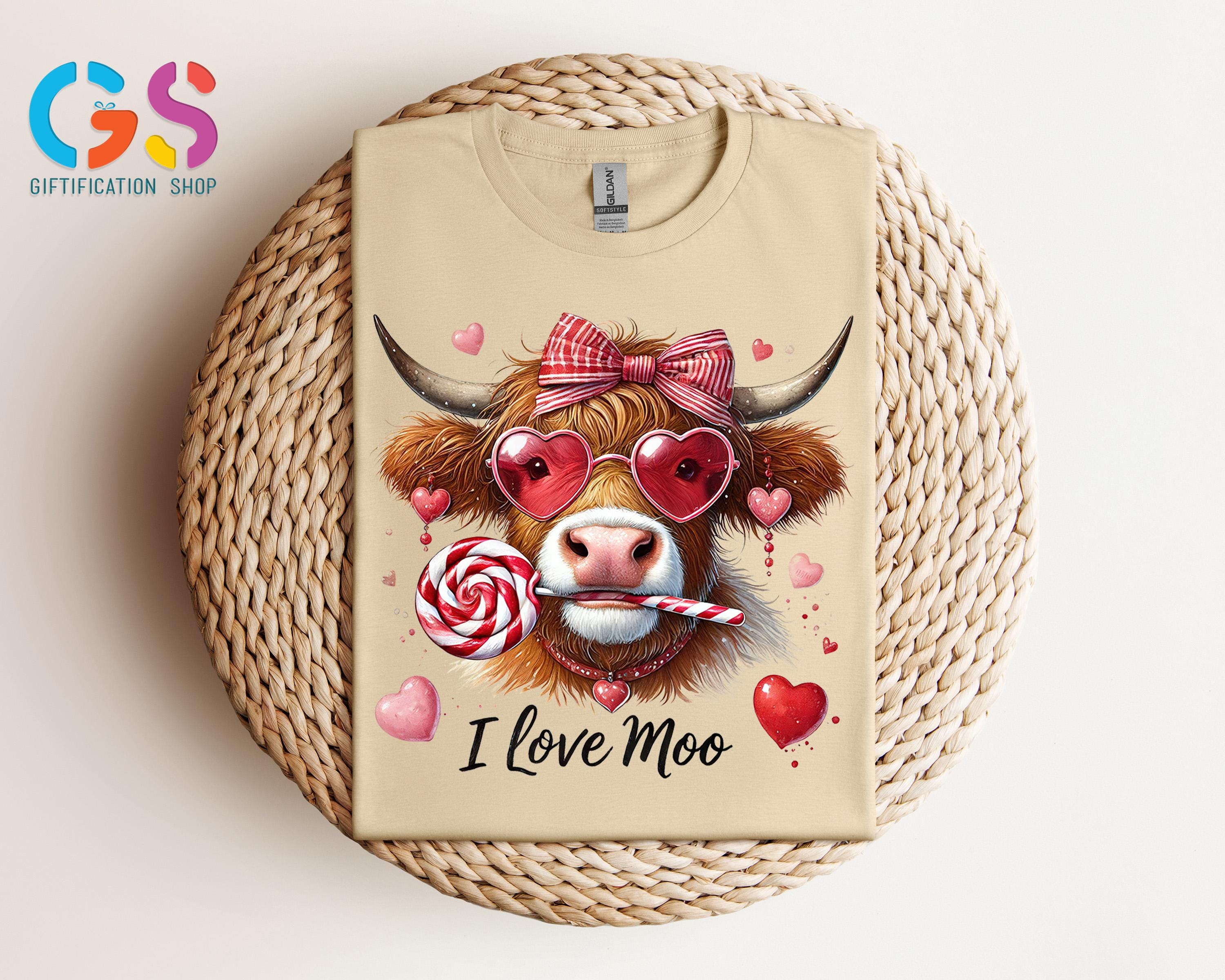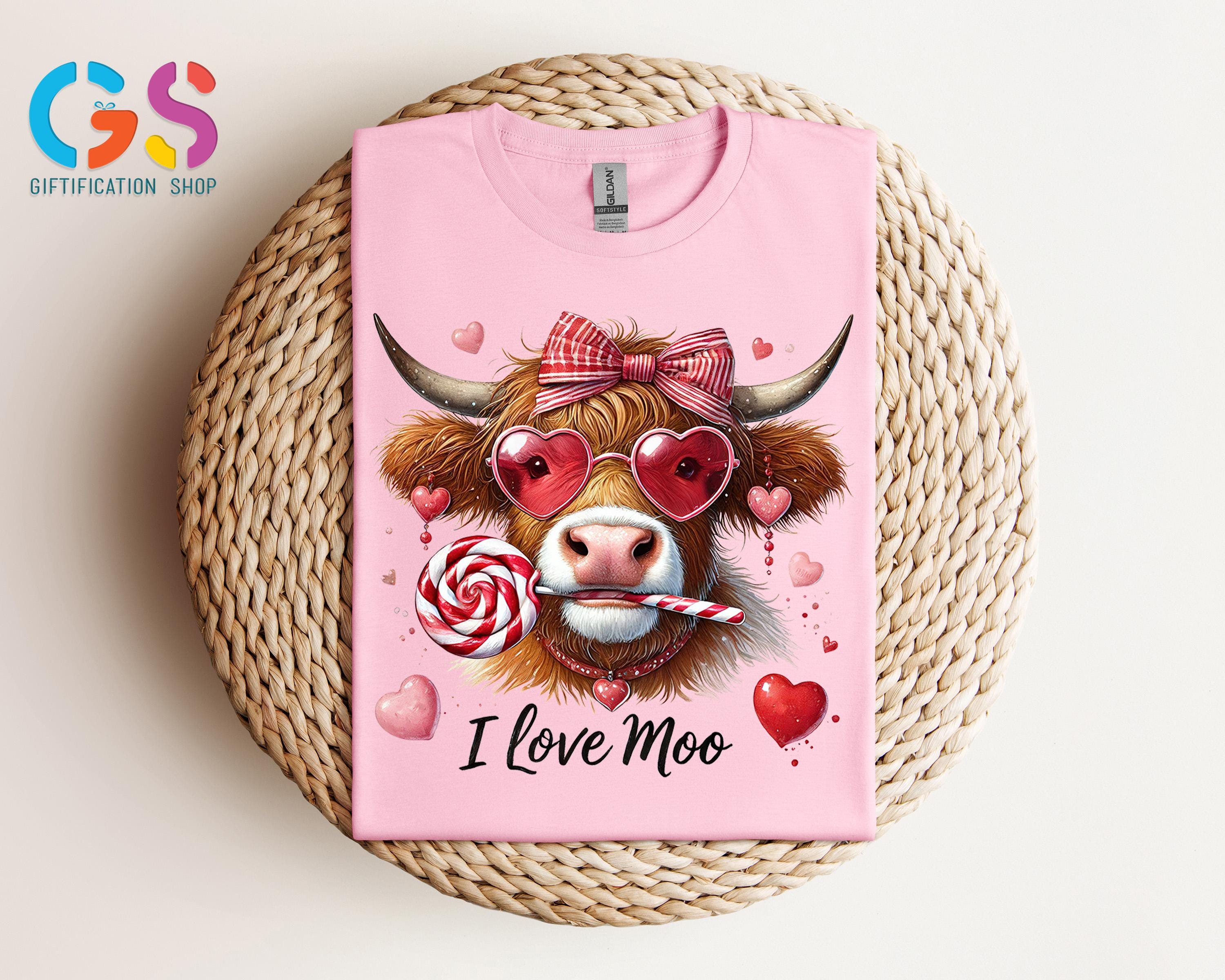 Cute Valentine Cow Shirt, Highland Cow Love Shirt, I Love Moo Shirt, Valentine Heart Cow Tee, Love Moo Shirt, Funny Valentine Day Cow Tee