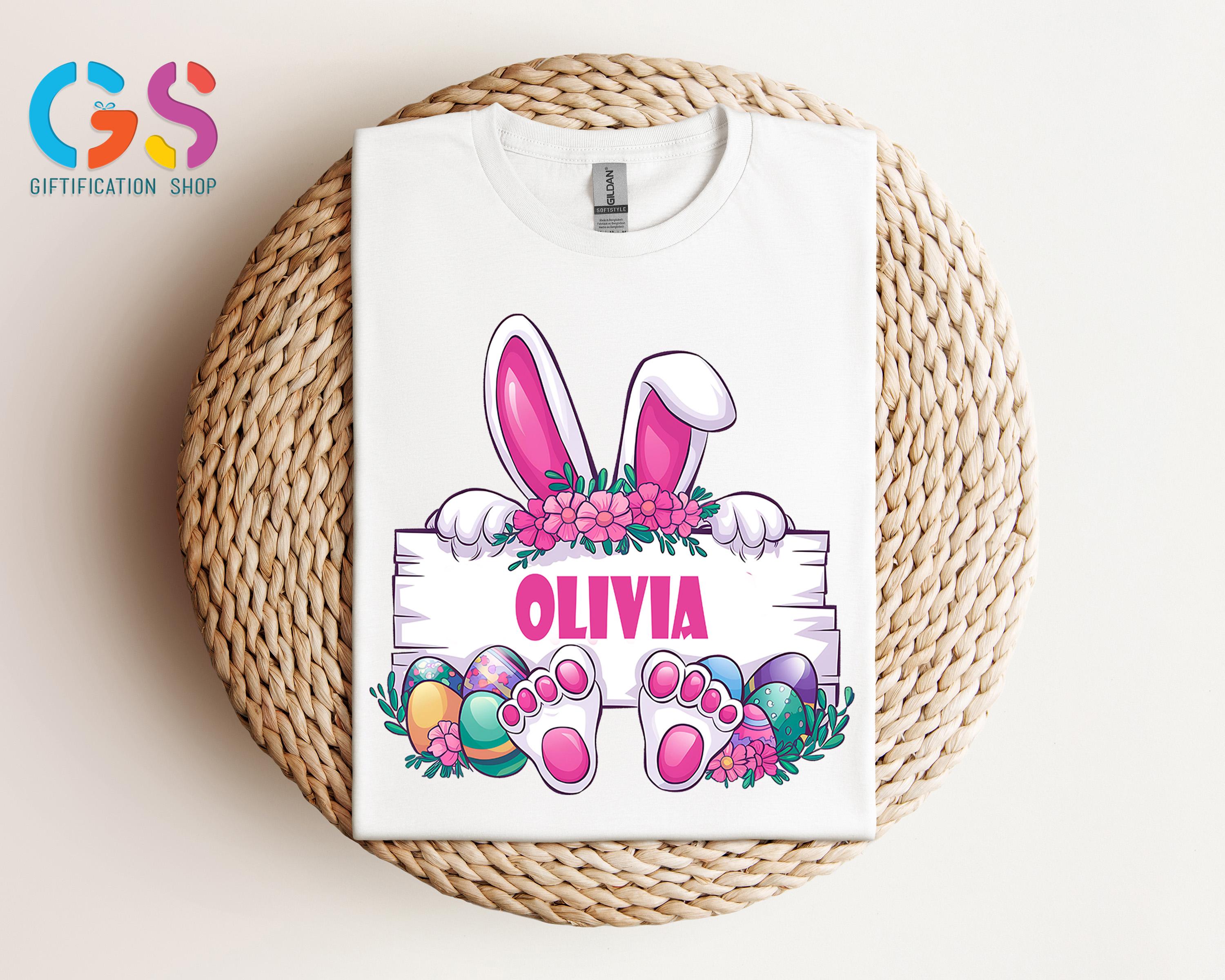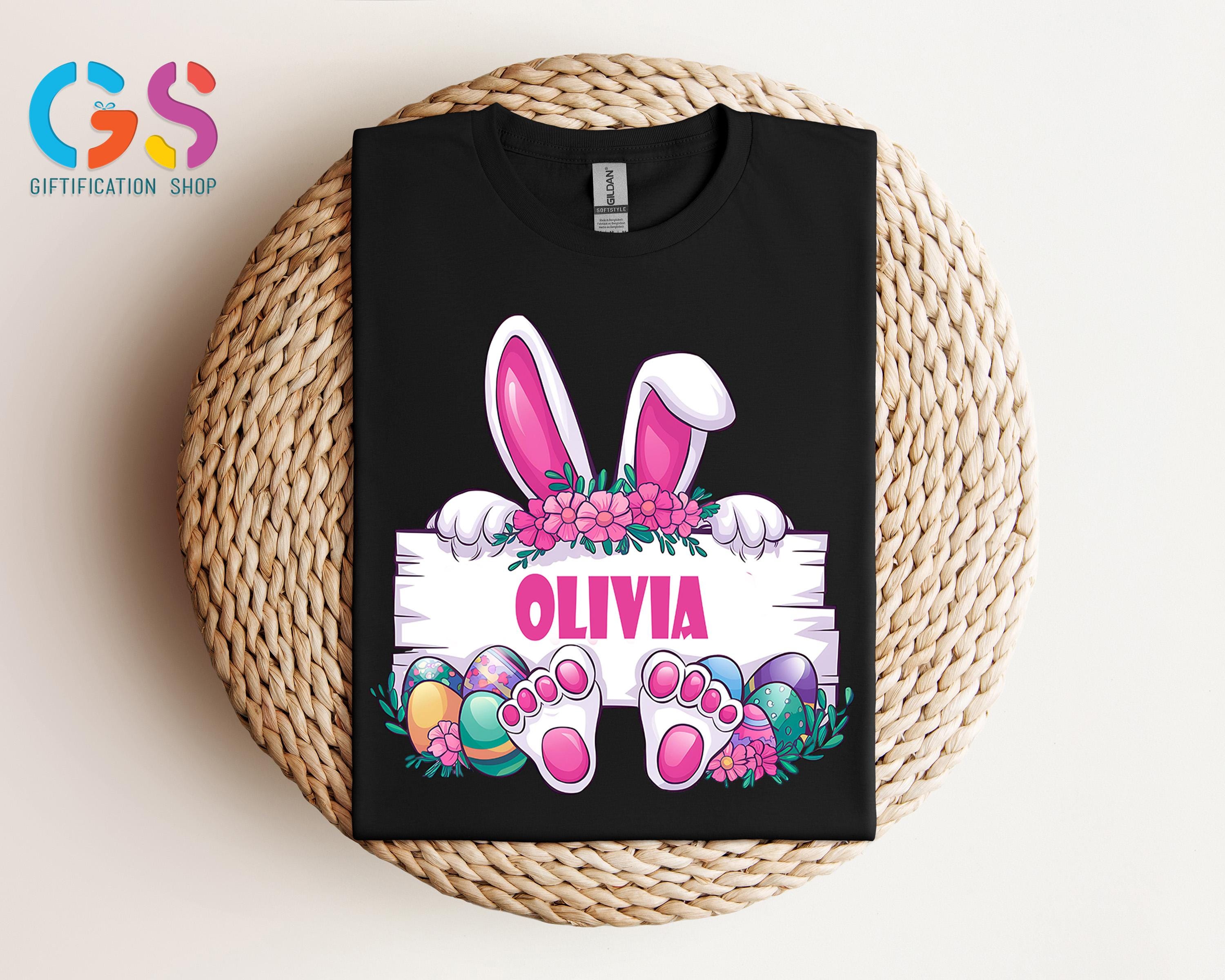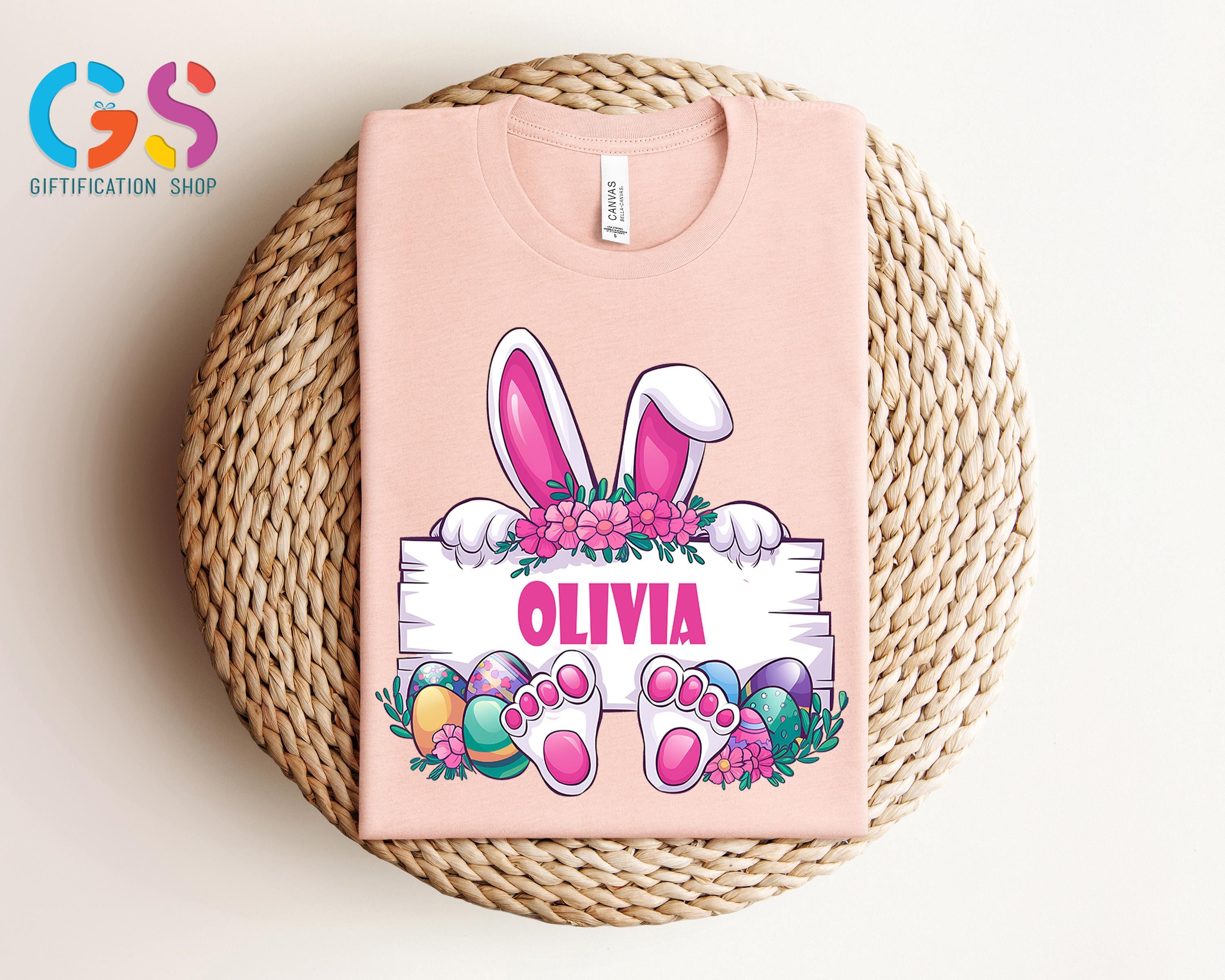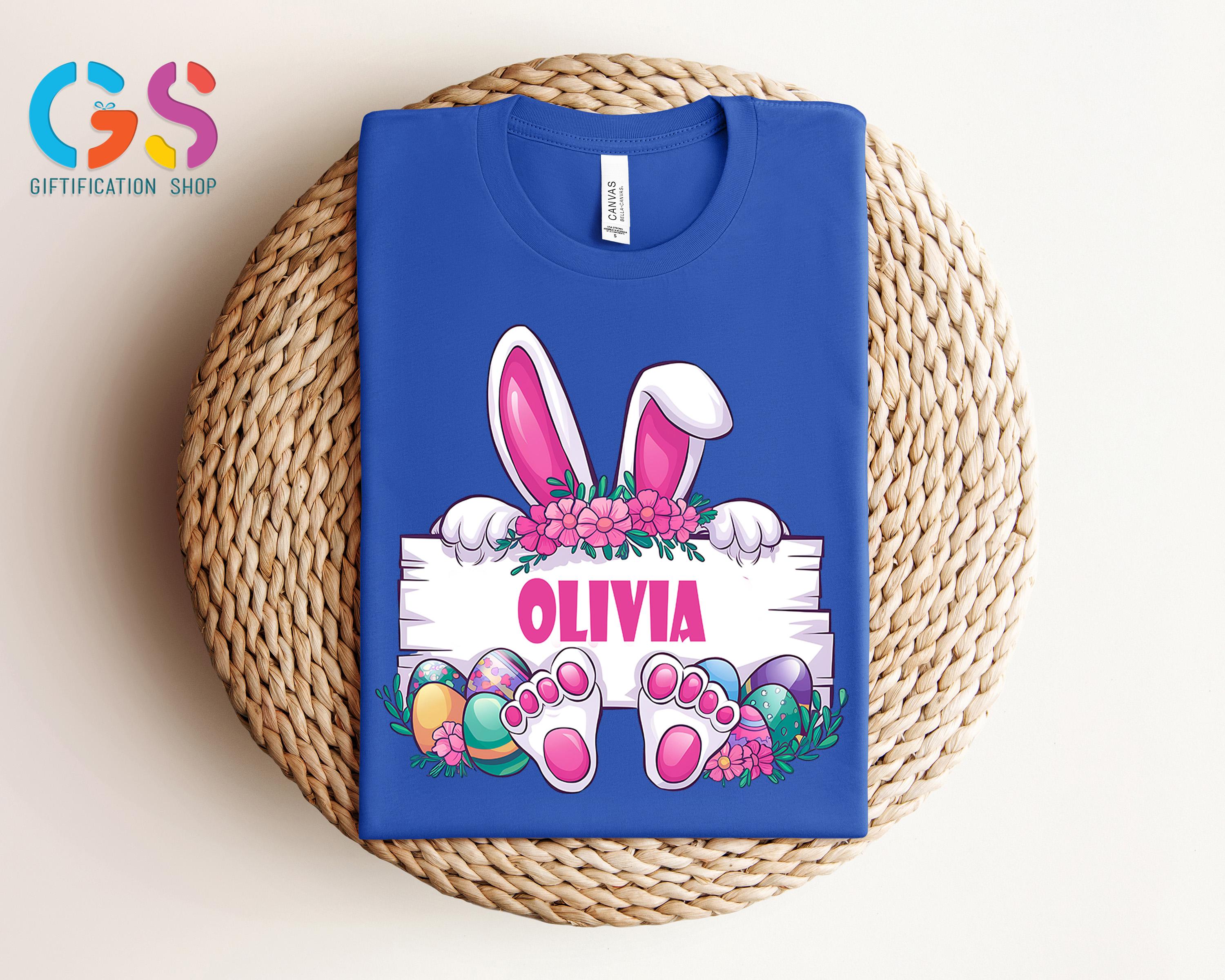 Custom Easter Bunny Name Frame Shirt, Personalized Easter Monogram Shirt, Spring Rabbit, Easter Bunny Shirt, Cute Rabbit Paw Easter Shirt