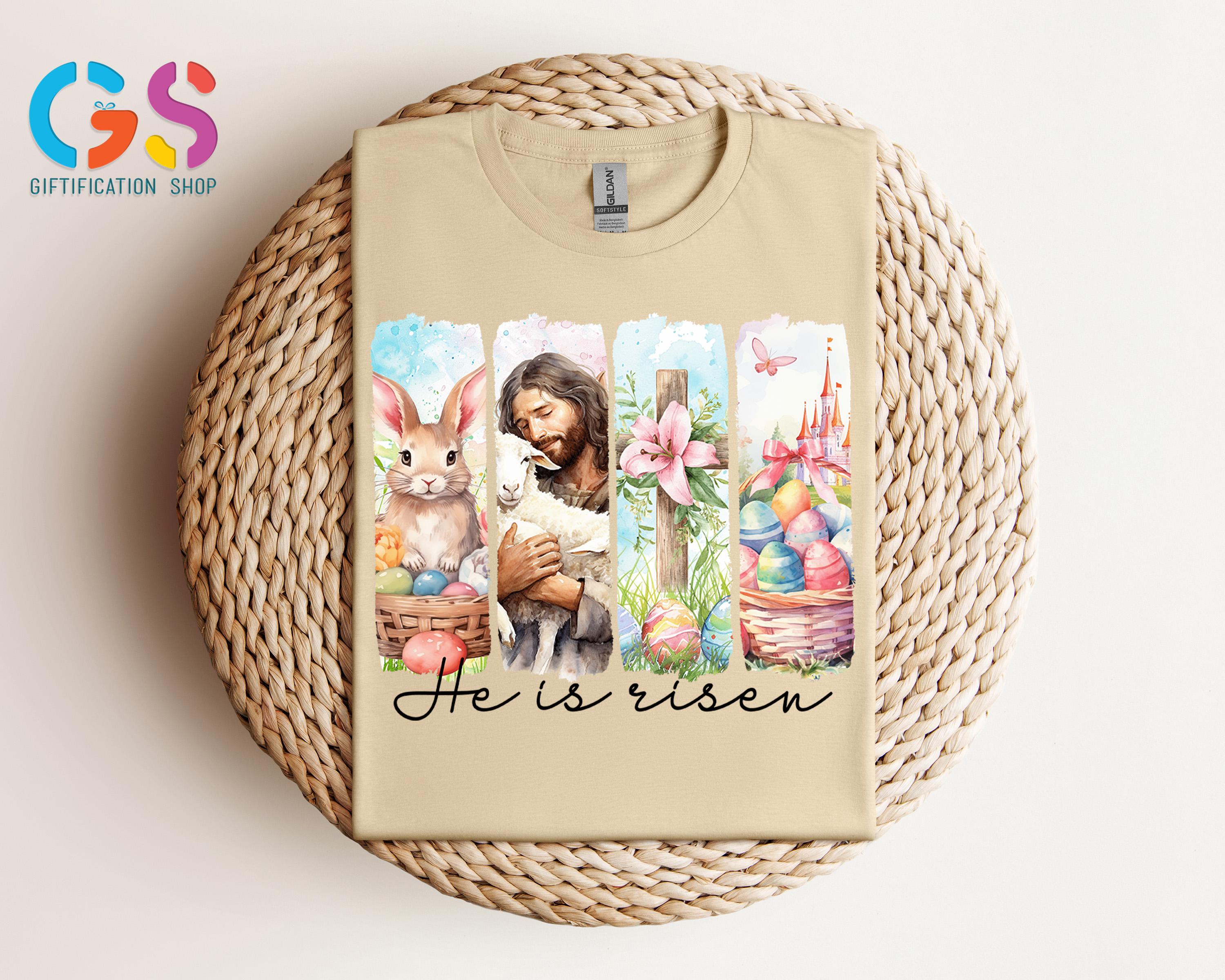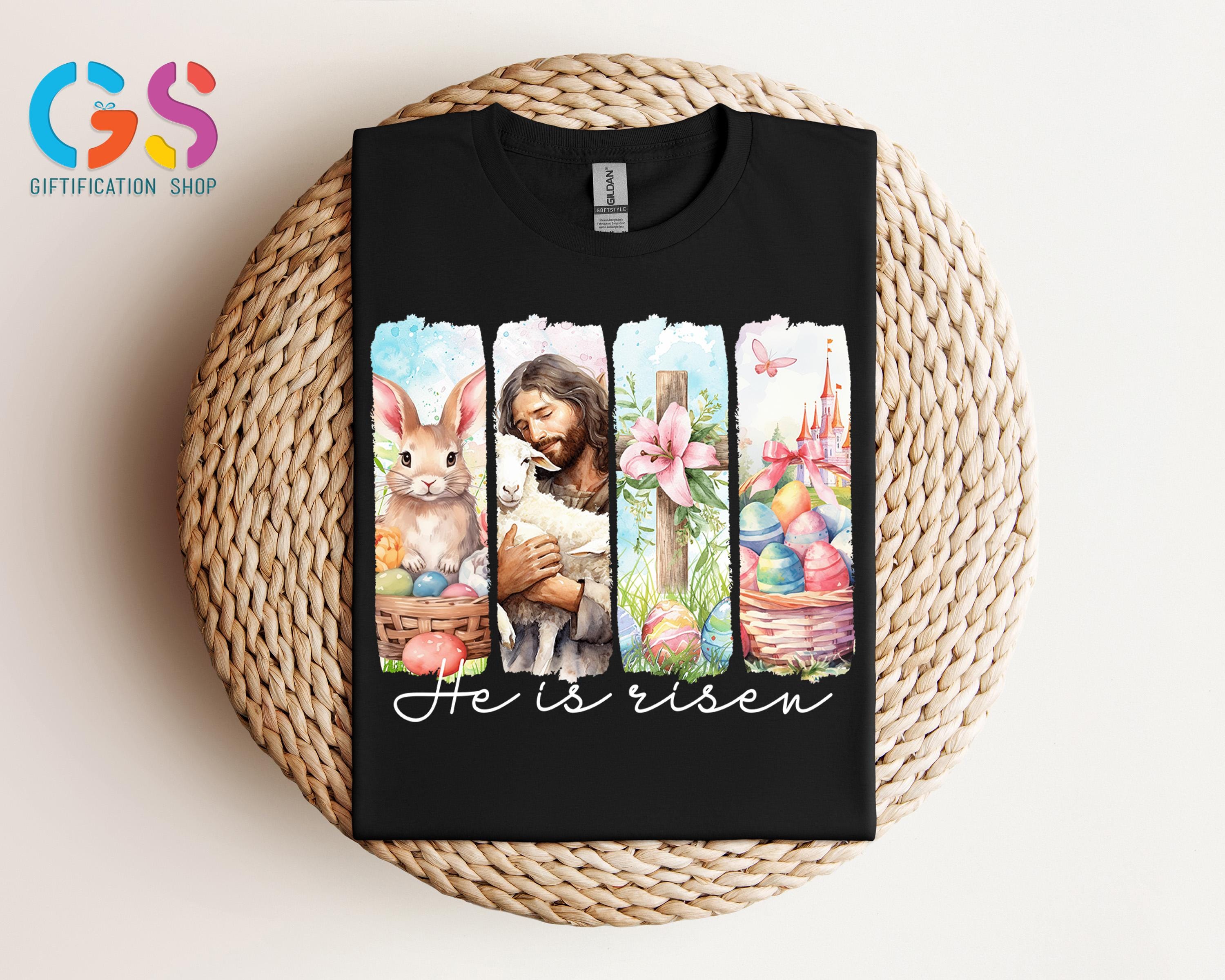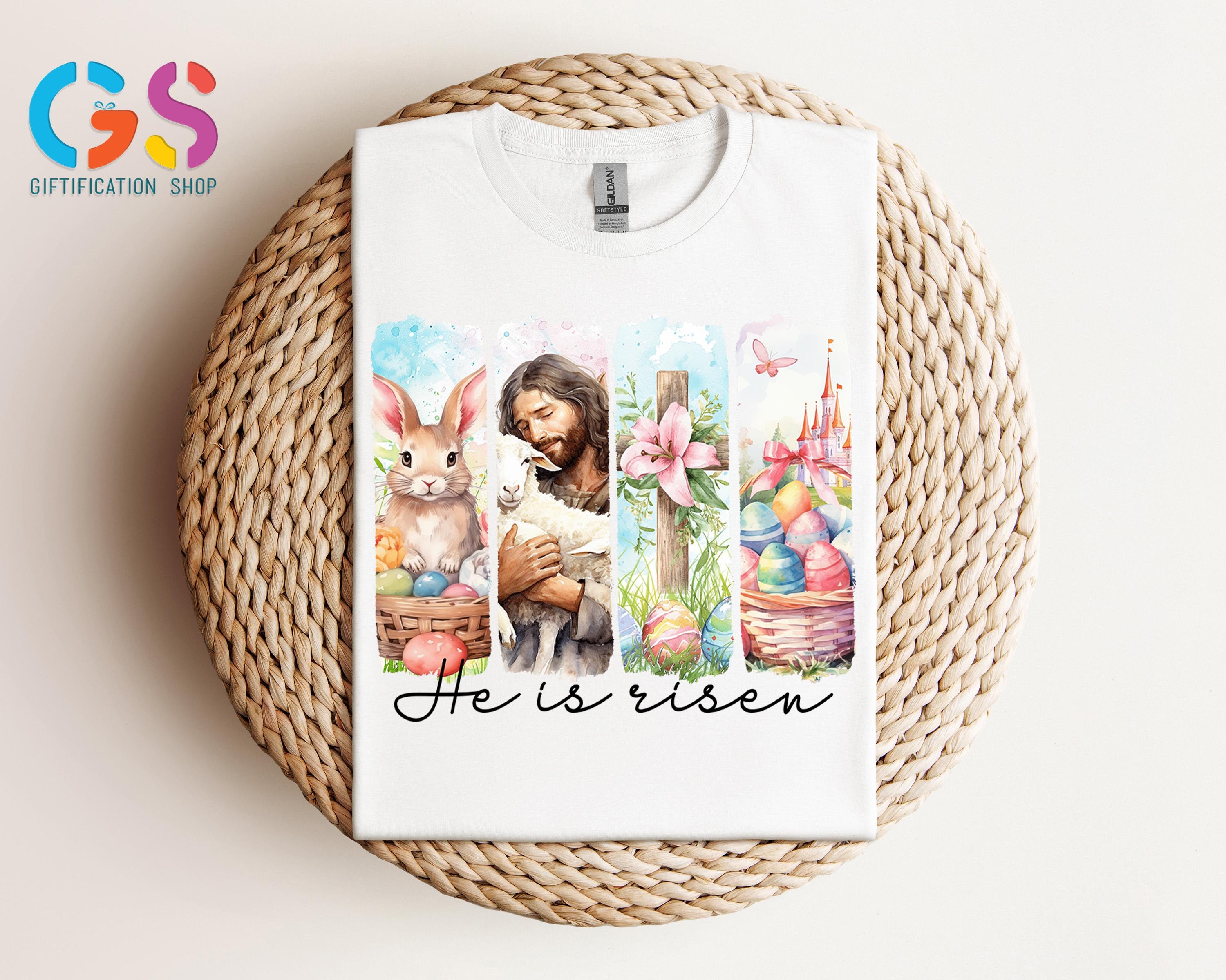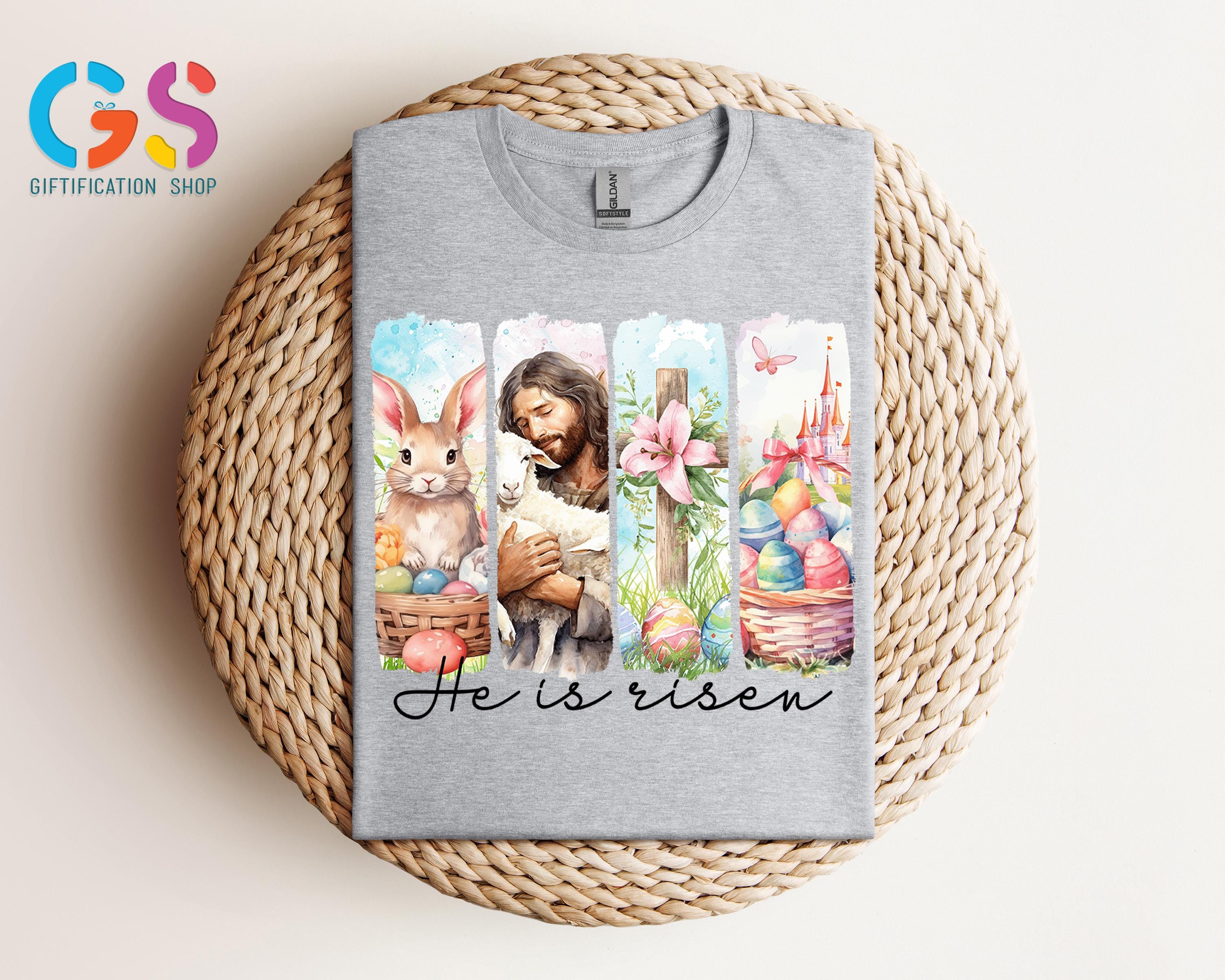 Retro He Is Risen Shirt, Vintage Easter Shirt, Retro Style Easter Shirt, Floral Easter T-Shirt, Easter Bunny Tee Shirt, Easter Cross Shirt