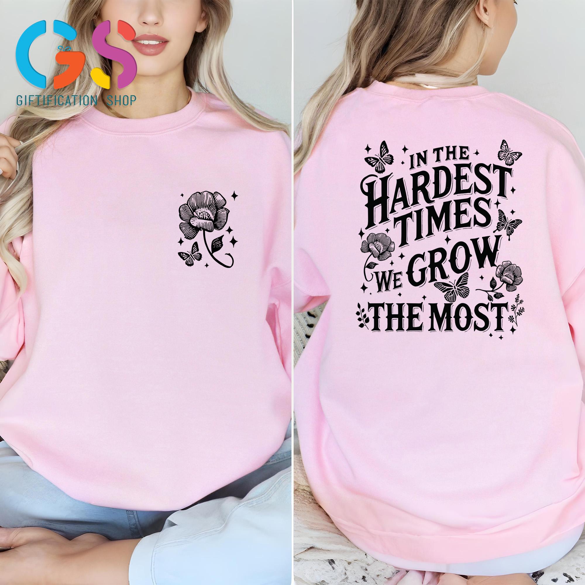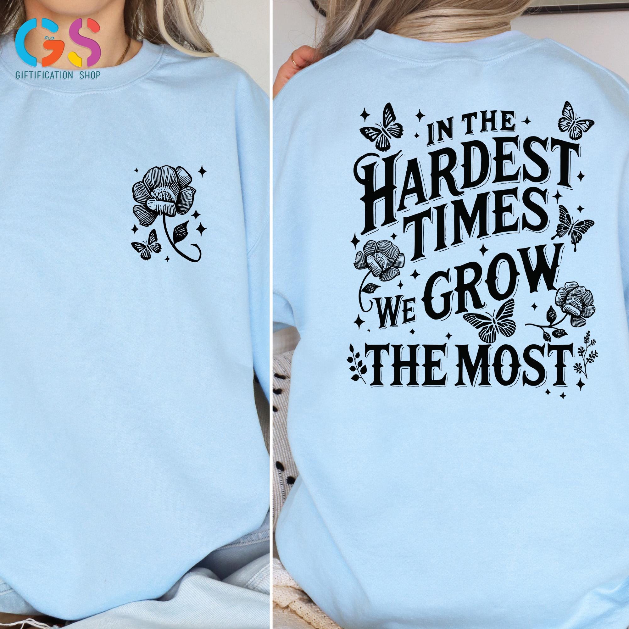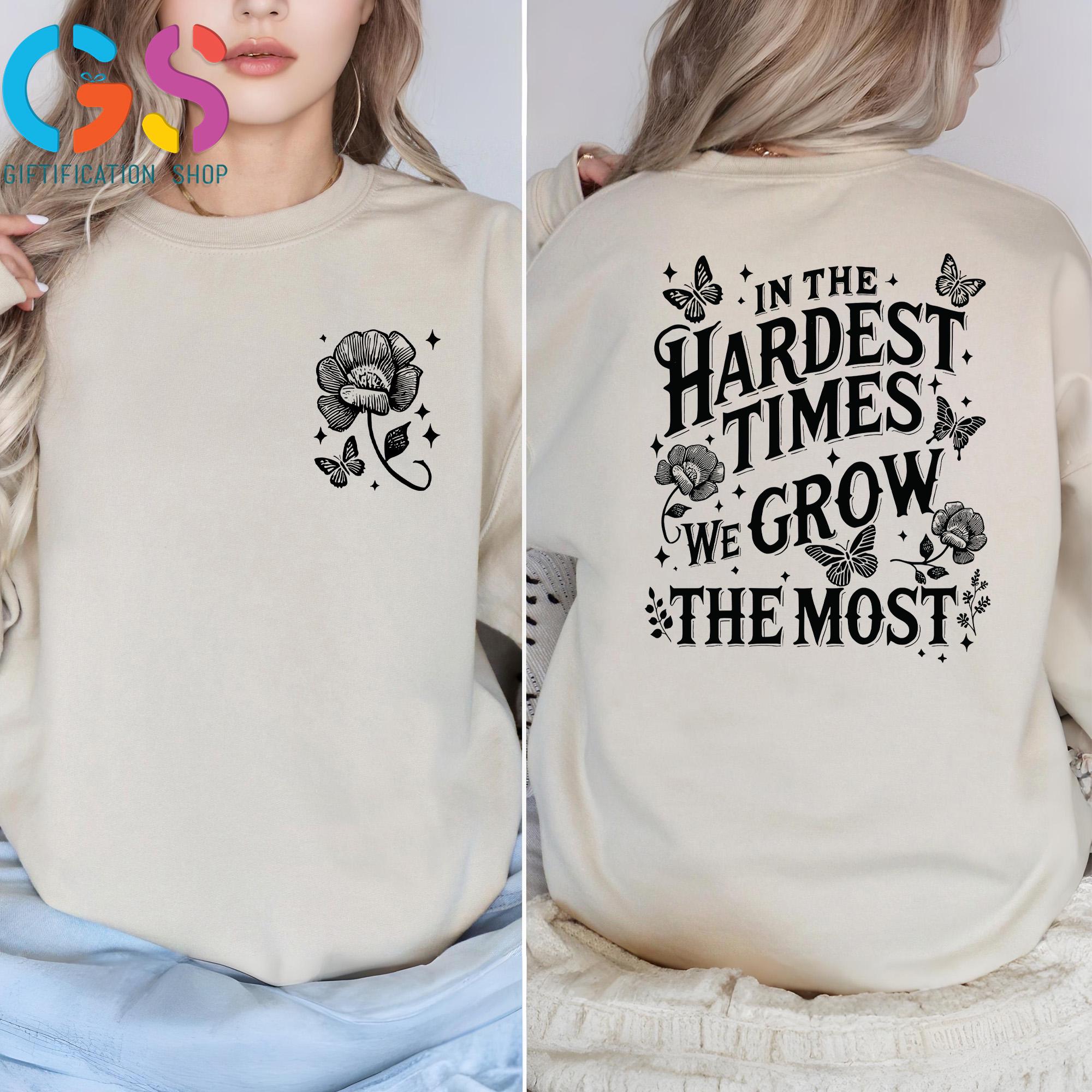 Motivational Woman Sweatshirt, In The Hardest Times We Grow The Most, Floral Positive Sweater, Mental Health Hoodie