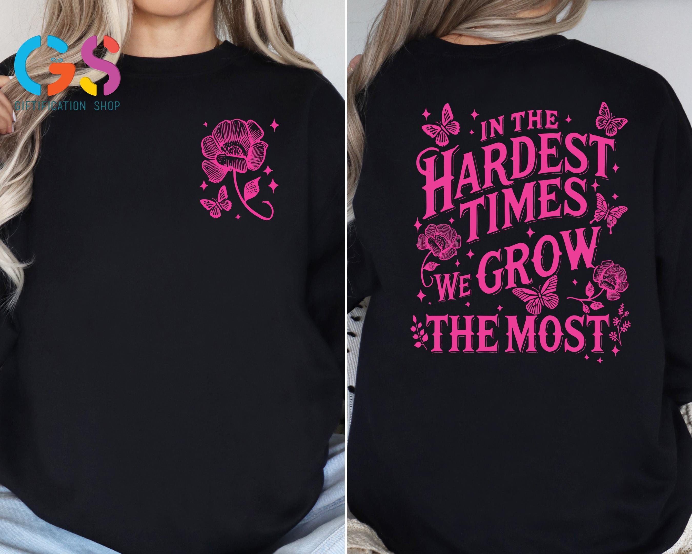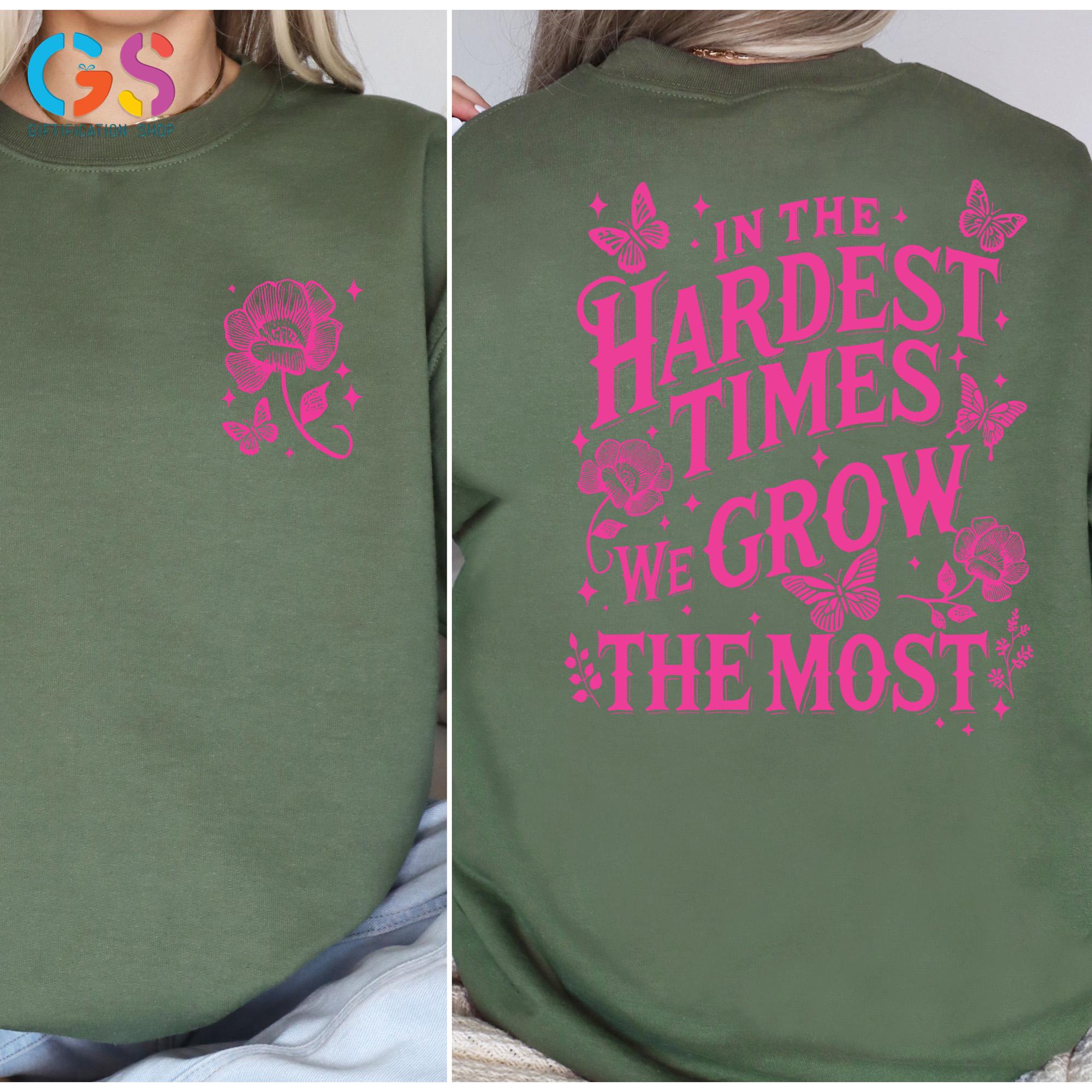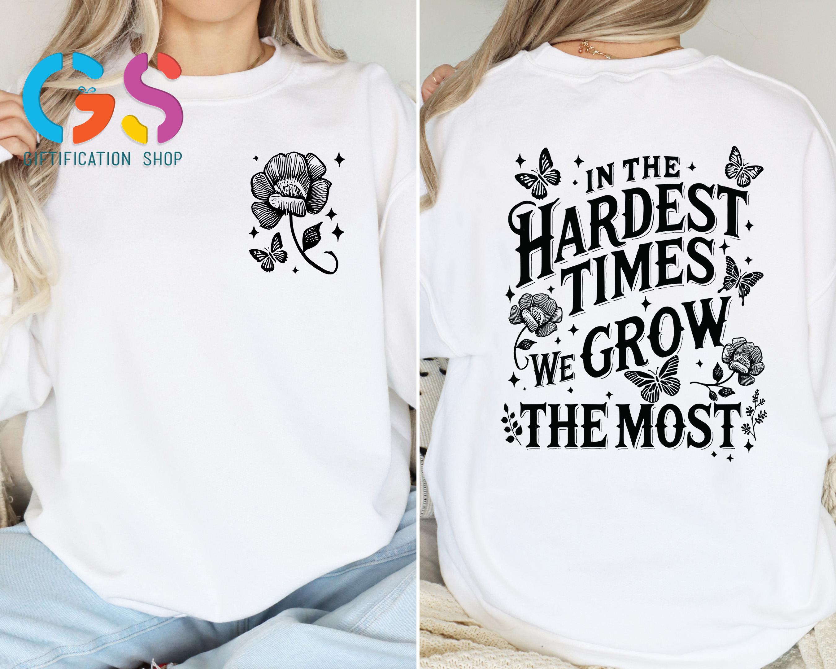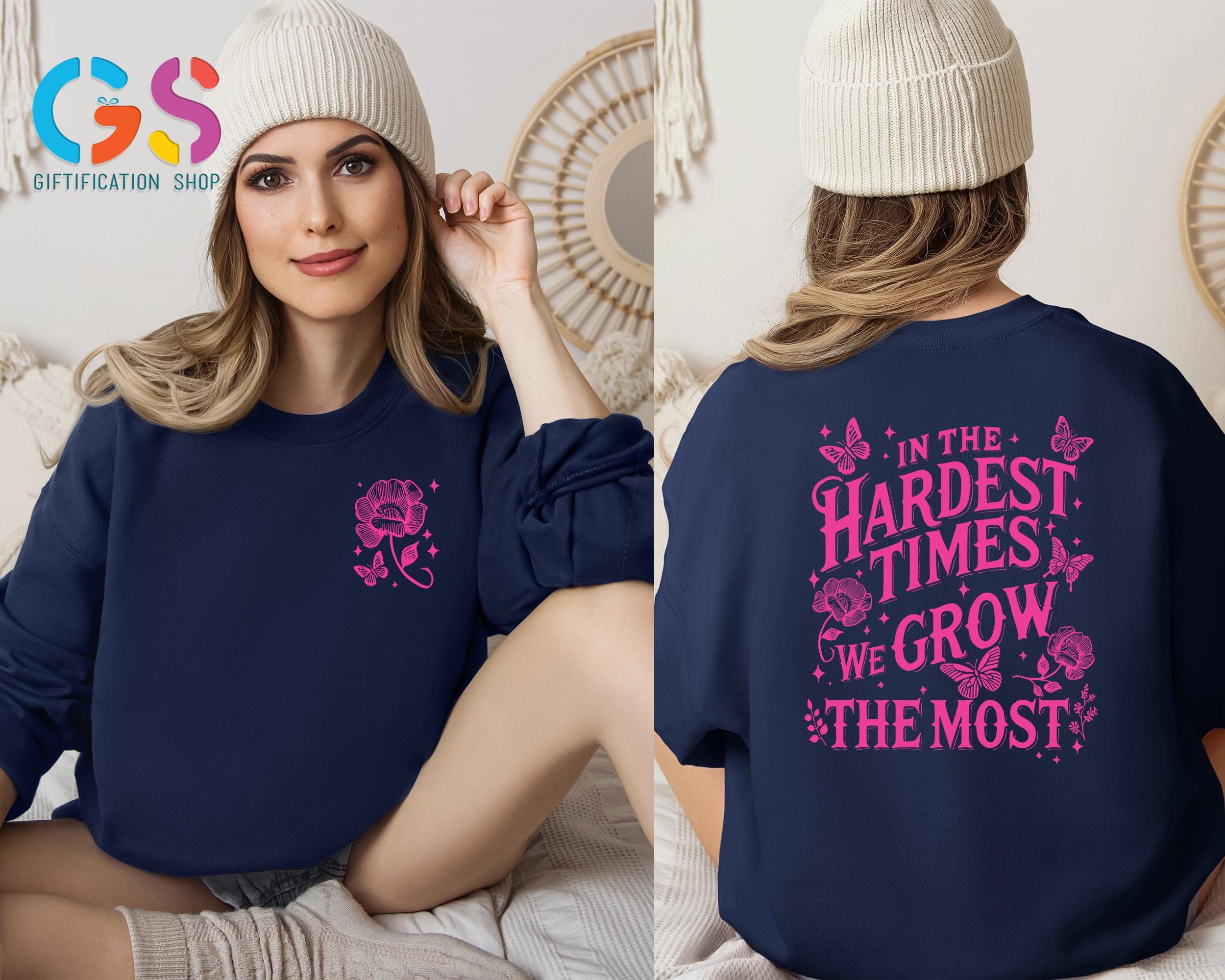 Motivational Woman Sweatshirt, In The Hardest Times We Grow The Most, Floral Positive Sweater, Mental Health Hoodie