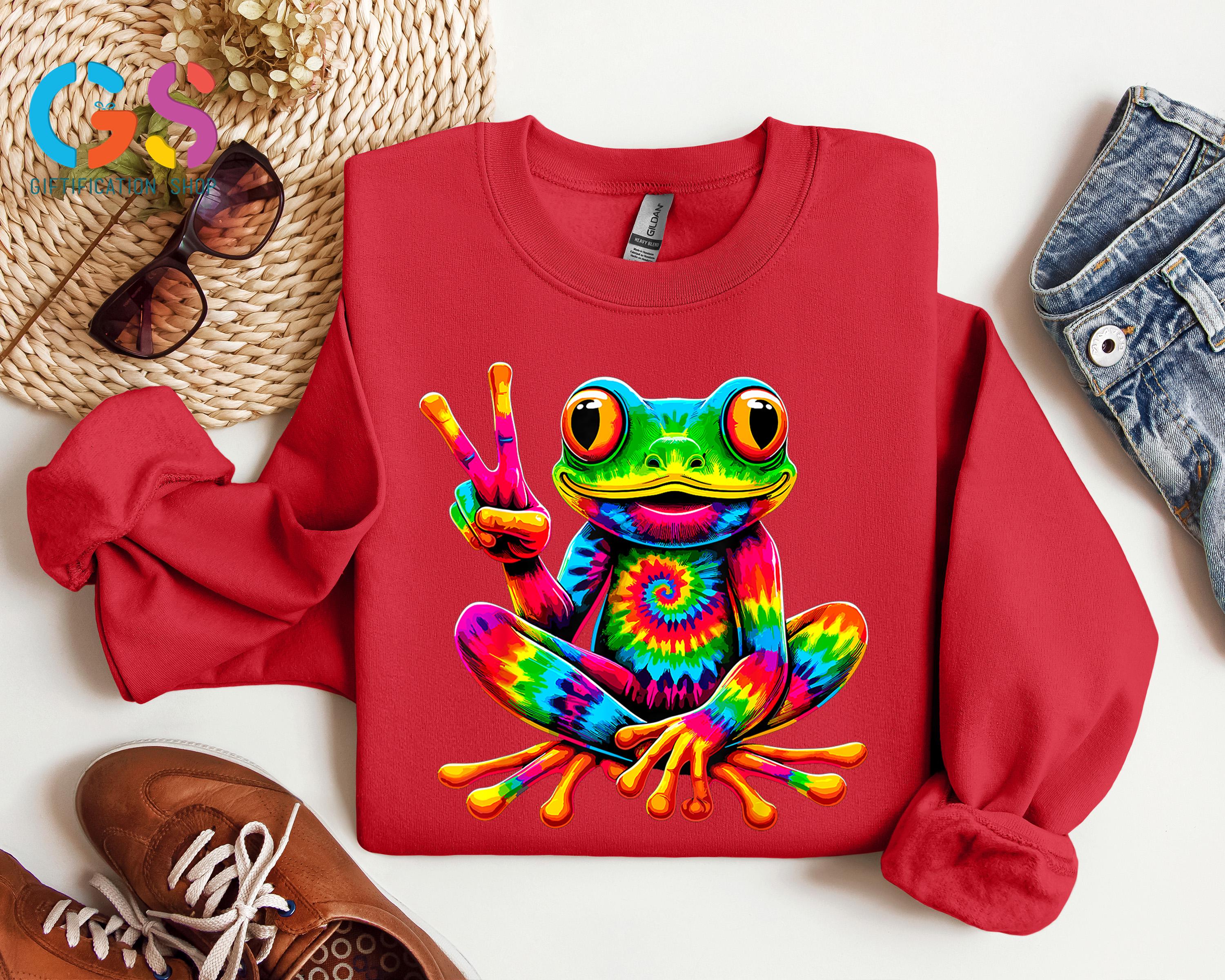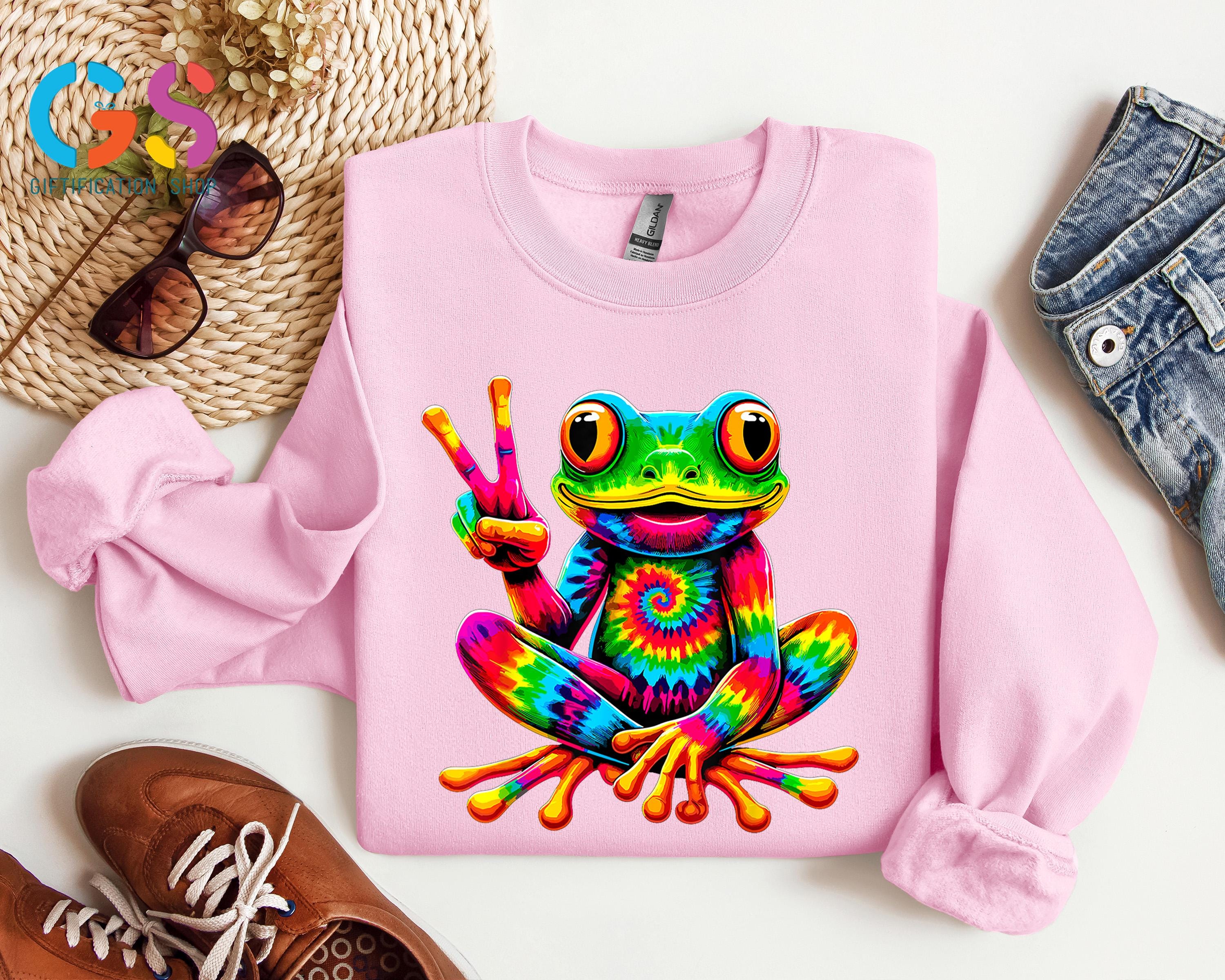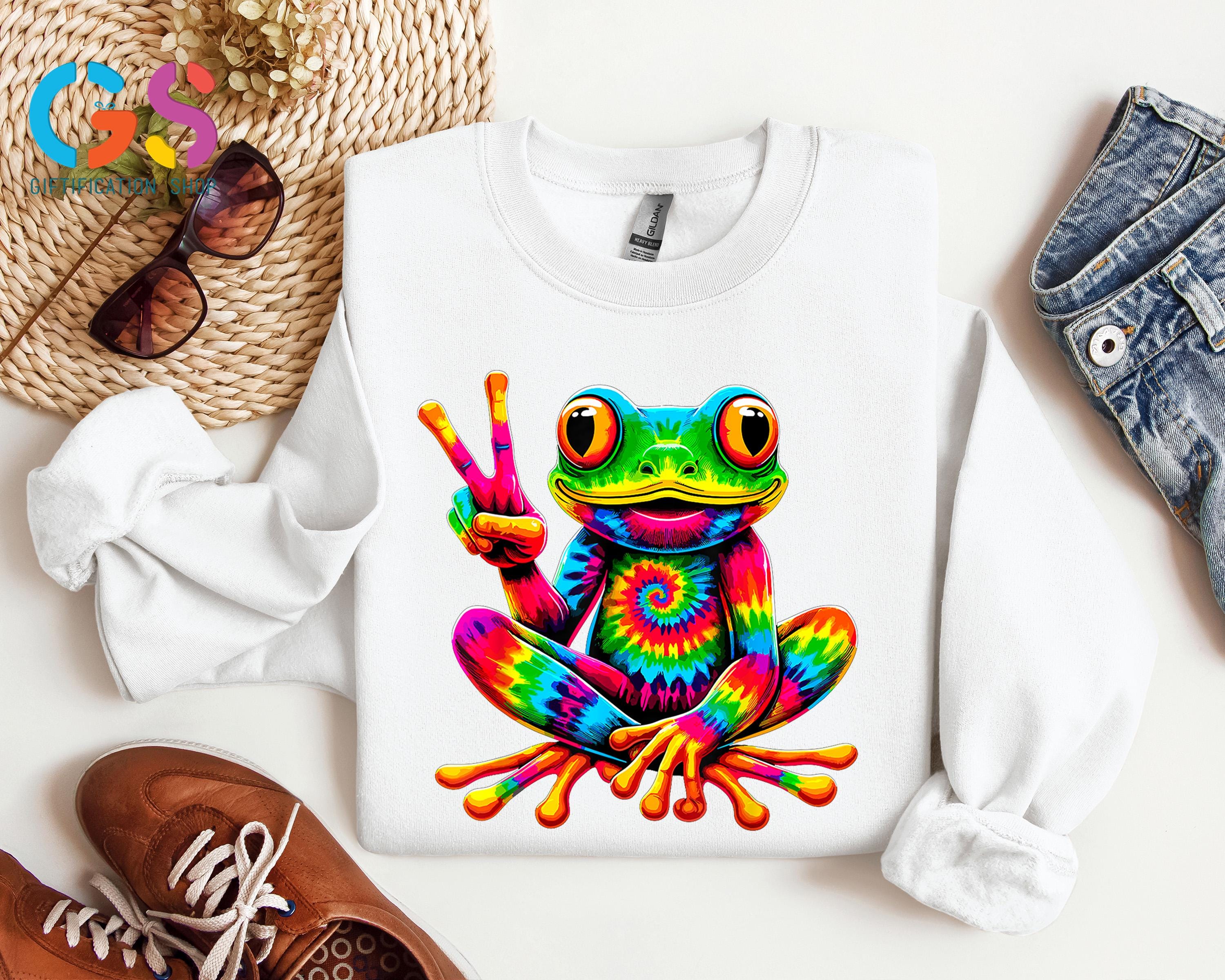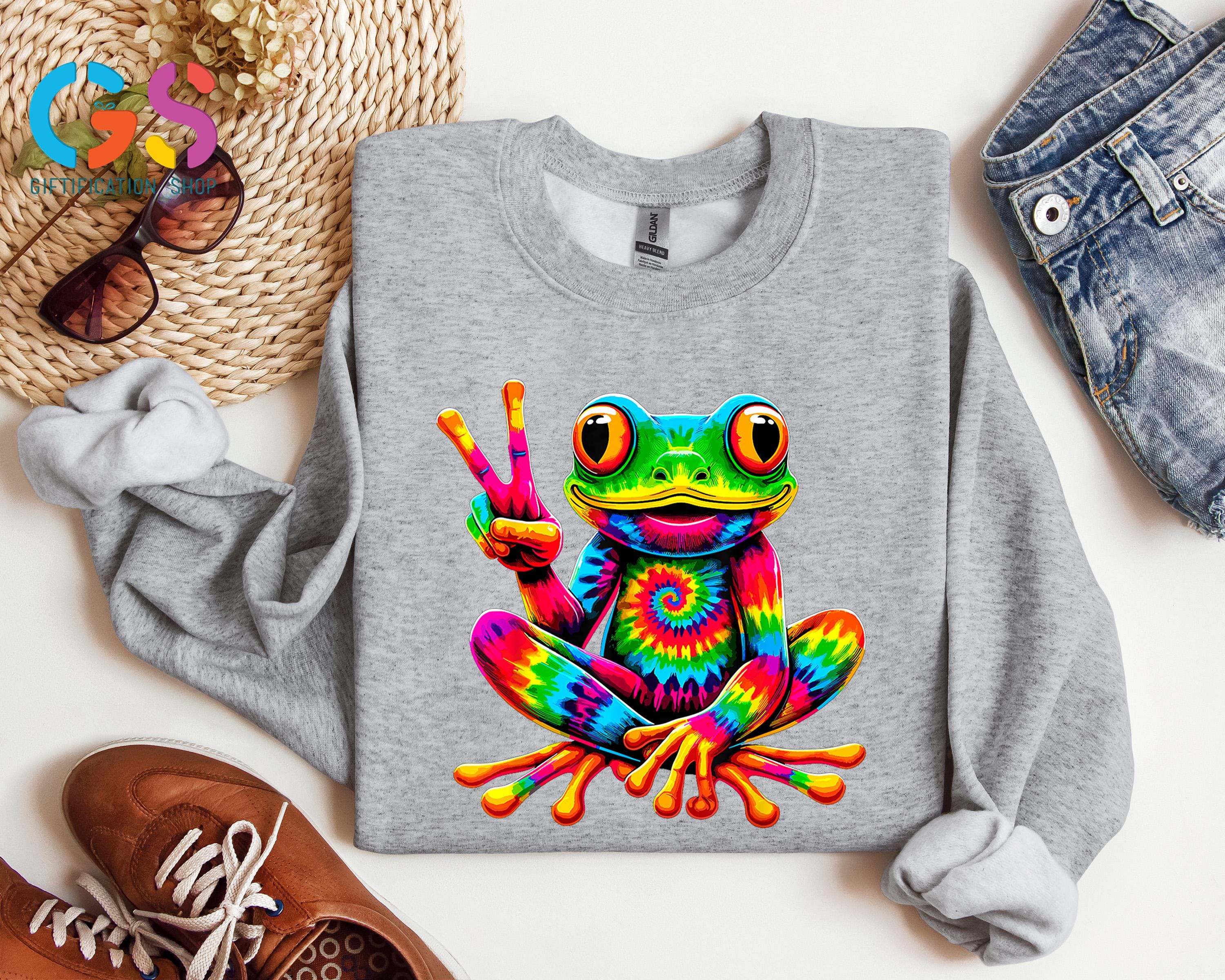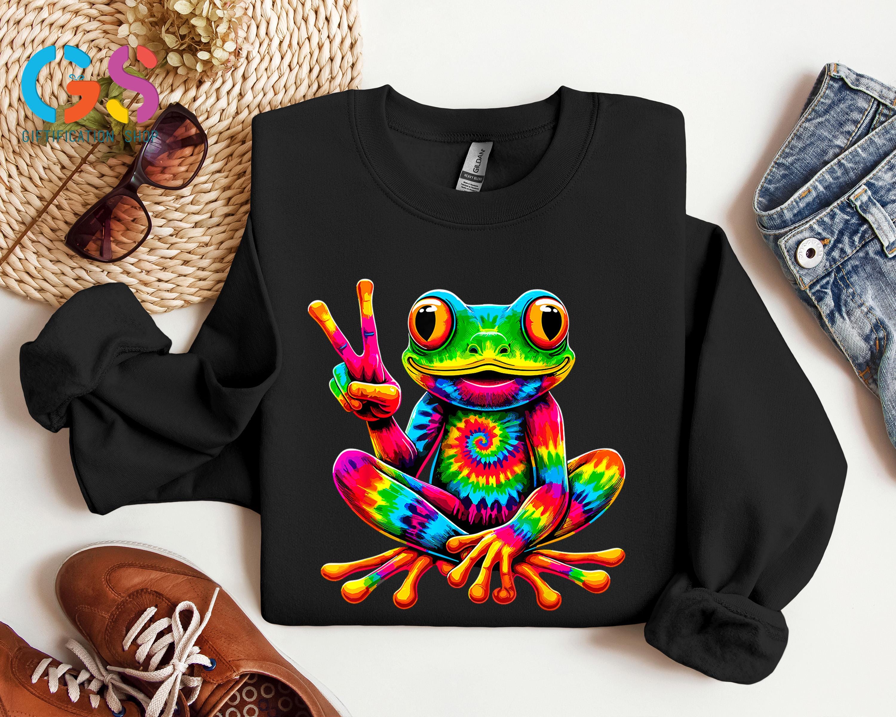 Tie-Dye Peace Frog Sweatshirt, Peace Supporter Hoodie, Psychedelic Frog Sweater, Funny Sweater, Hippie Sweatshirt