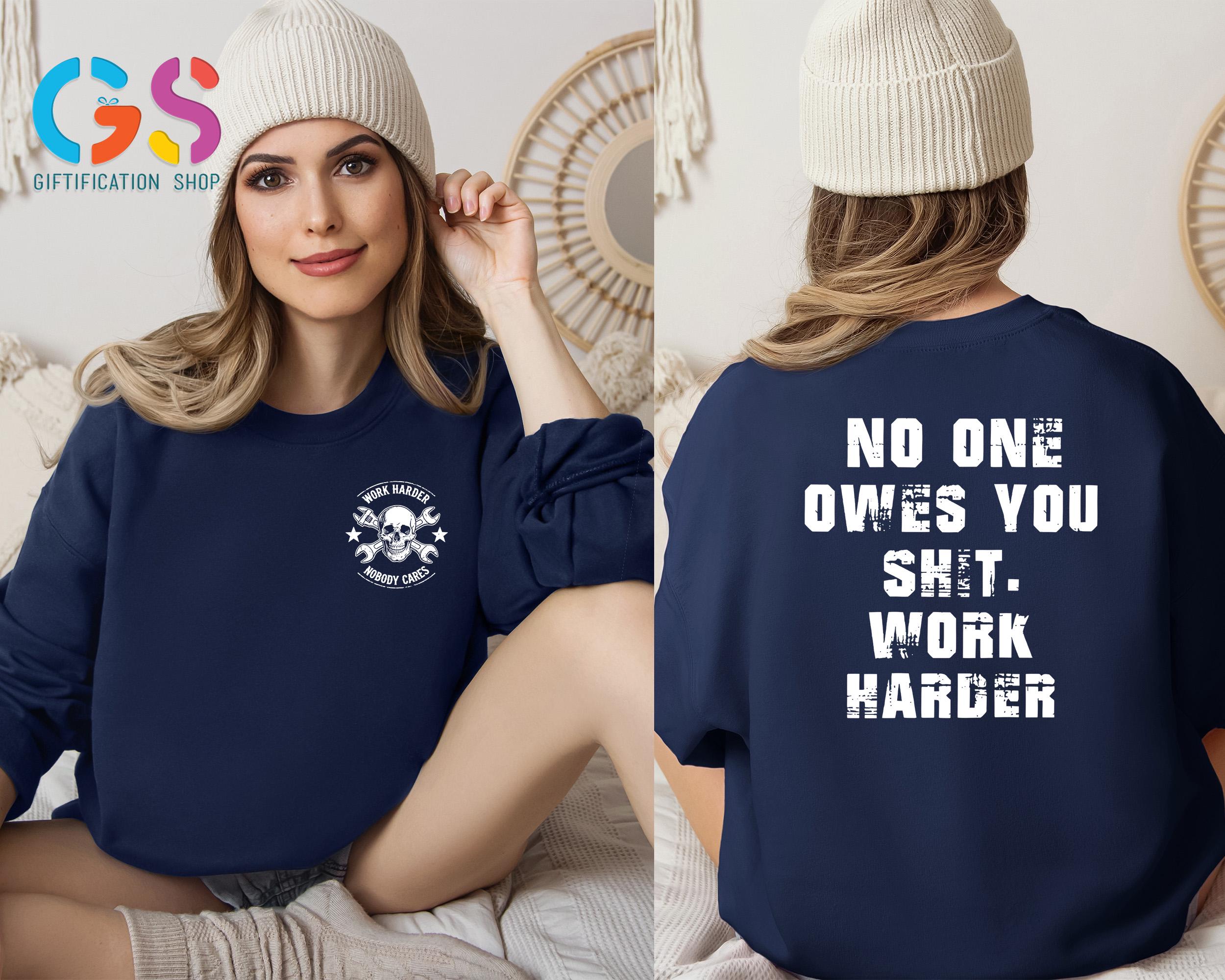 Motivational Work Harder Mens Sweater, Skull Sarcastic Quote Sweatshirt, Skeleton Gym Hoodie, Gift for Friends