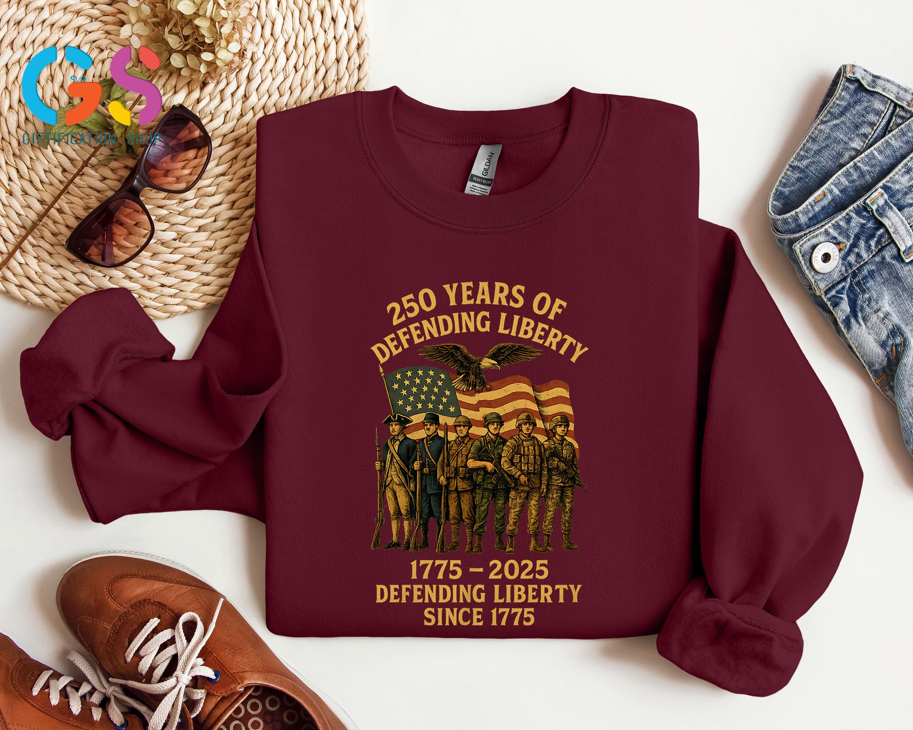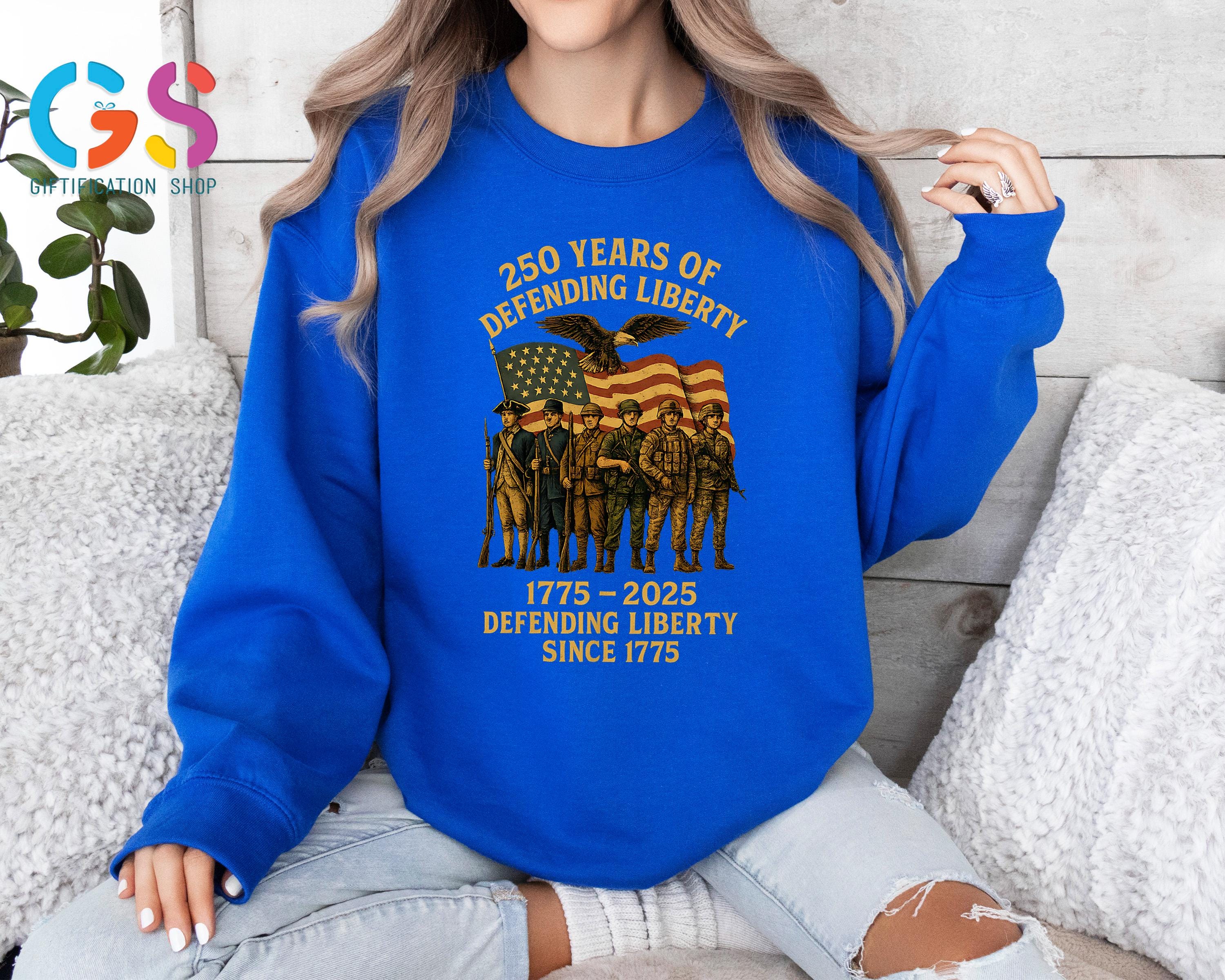 Show your American pride with our 250 Years Of Defending Liberty Sweatshirt! ๐บ๐ธ๐ฆ