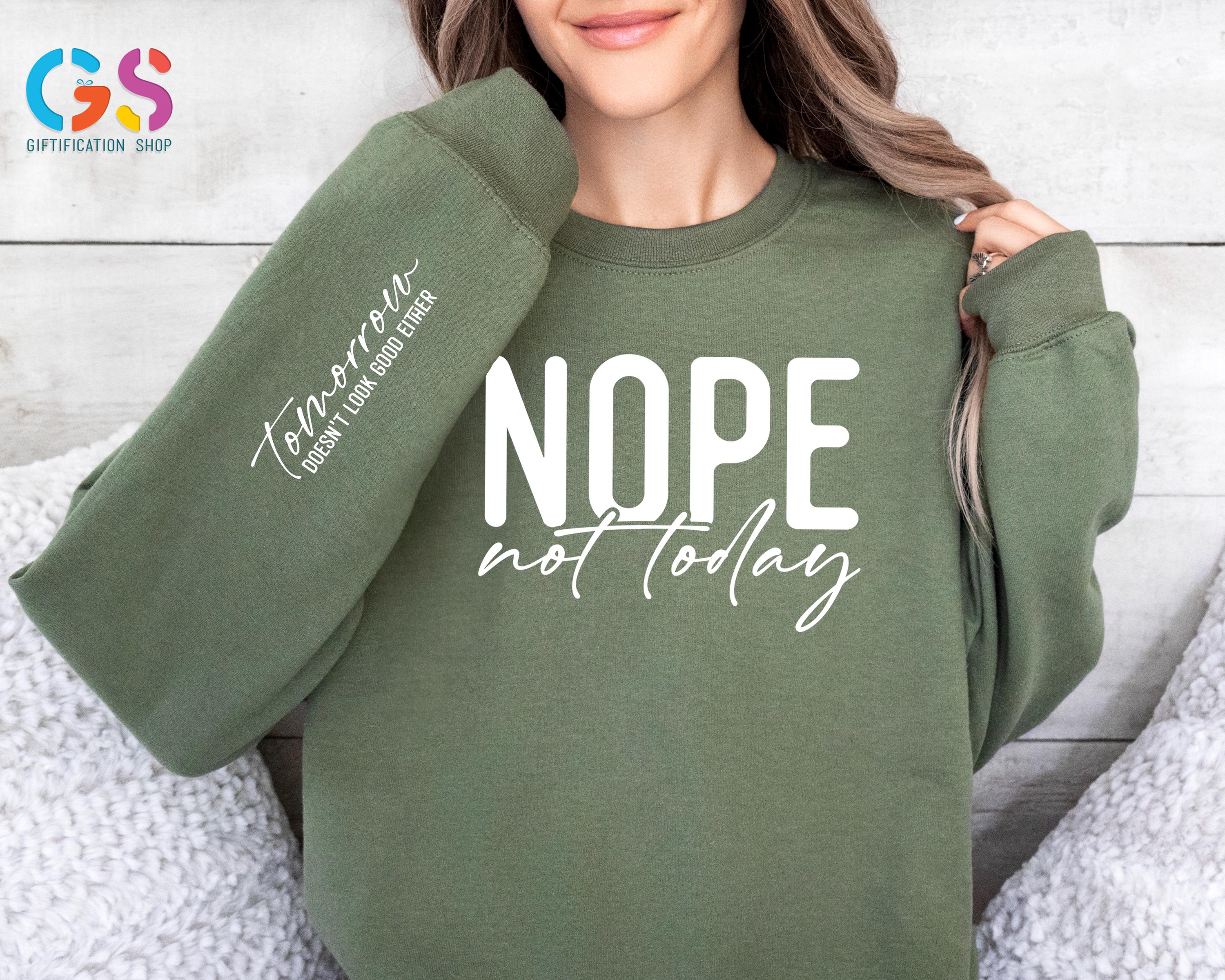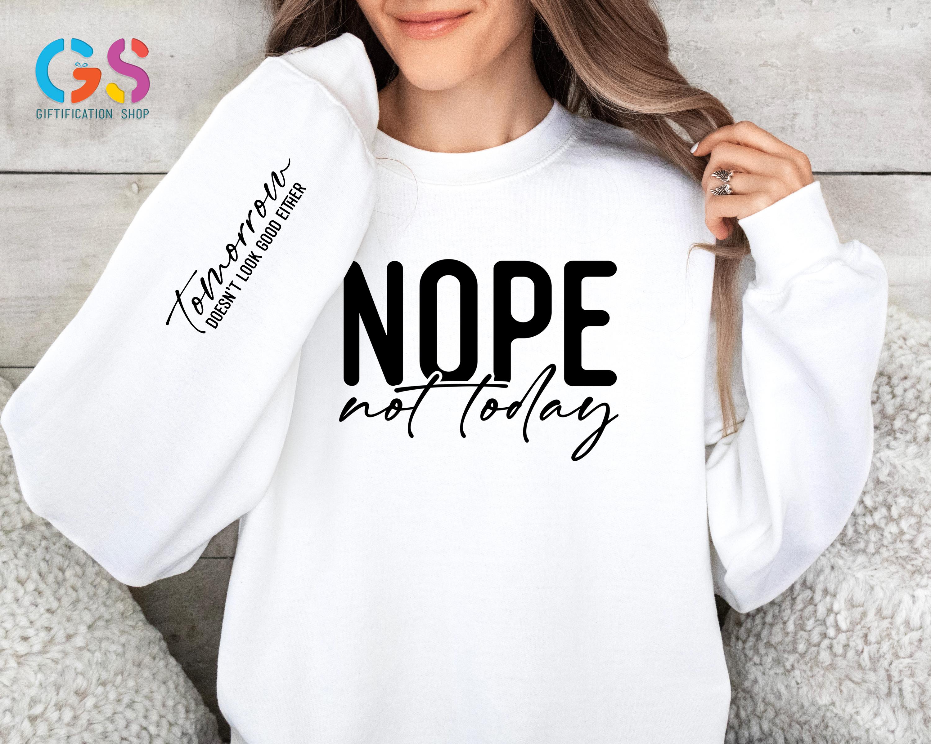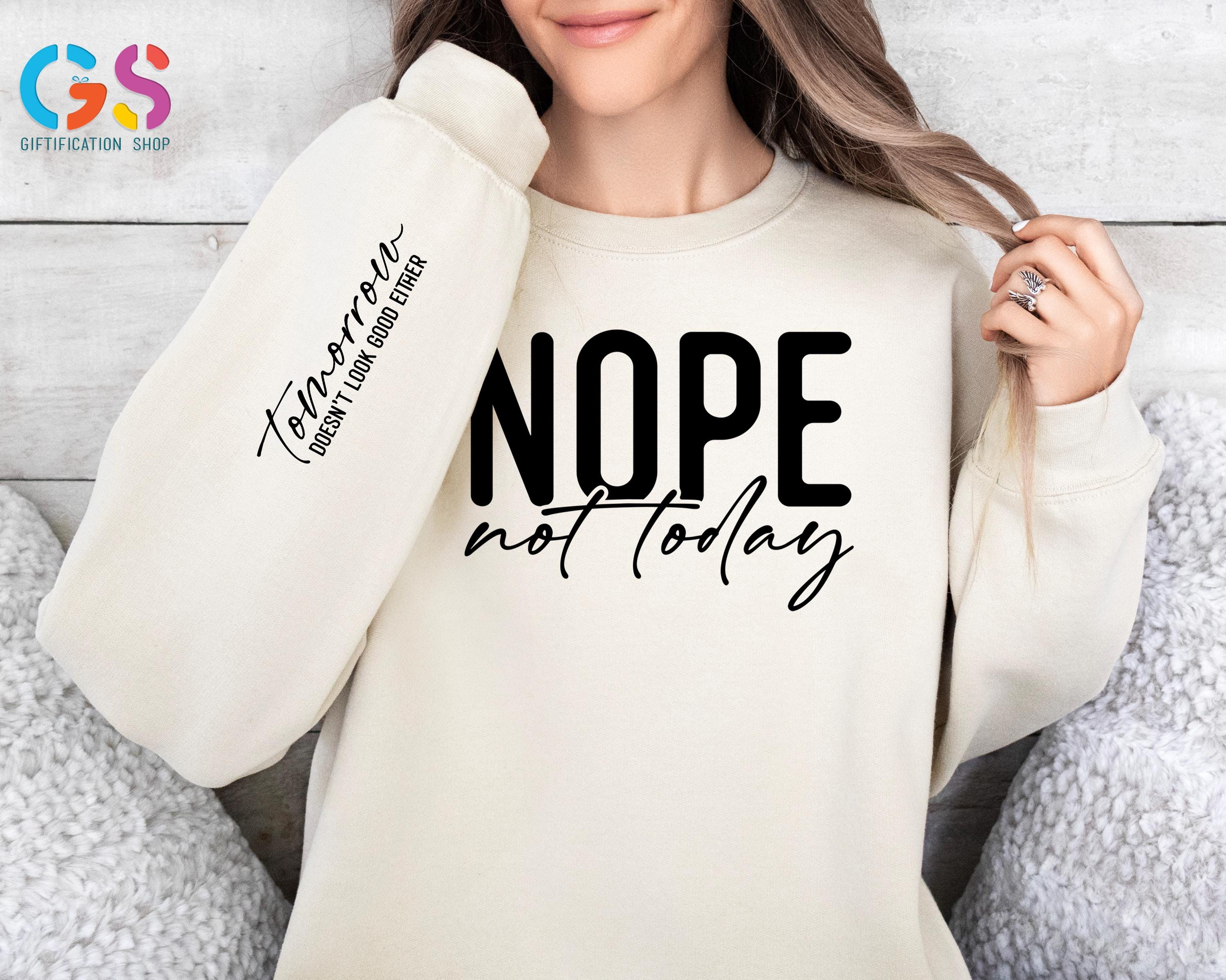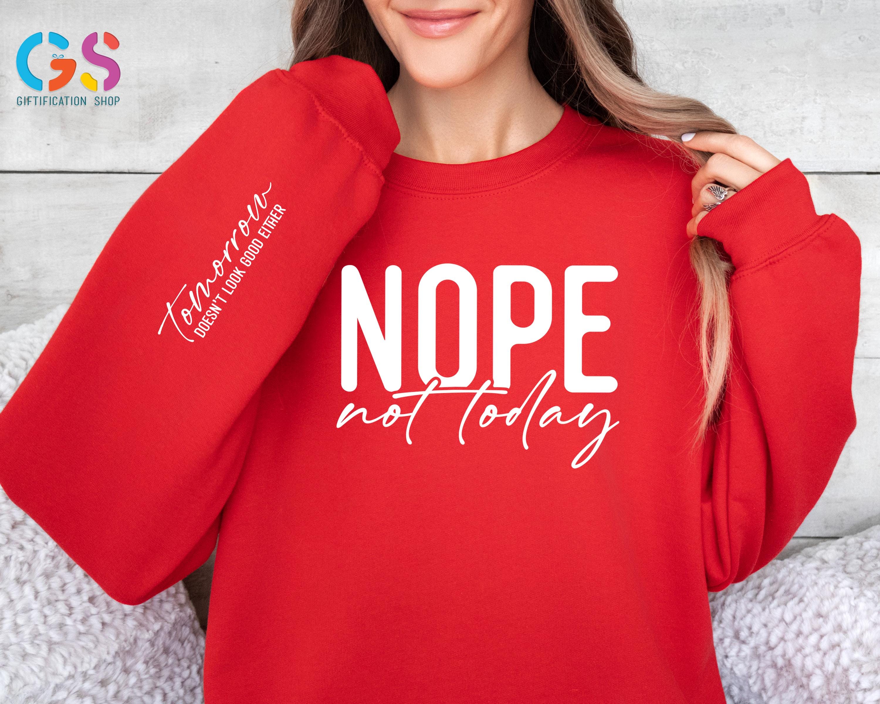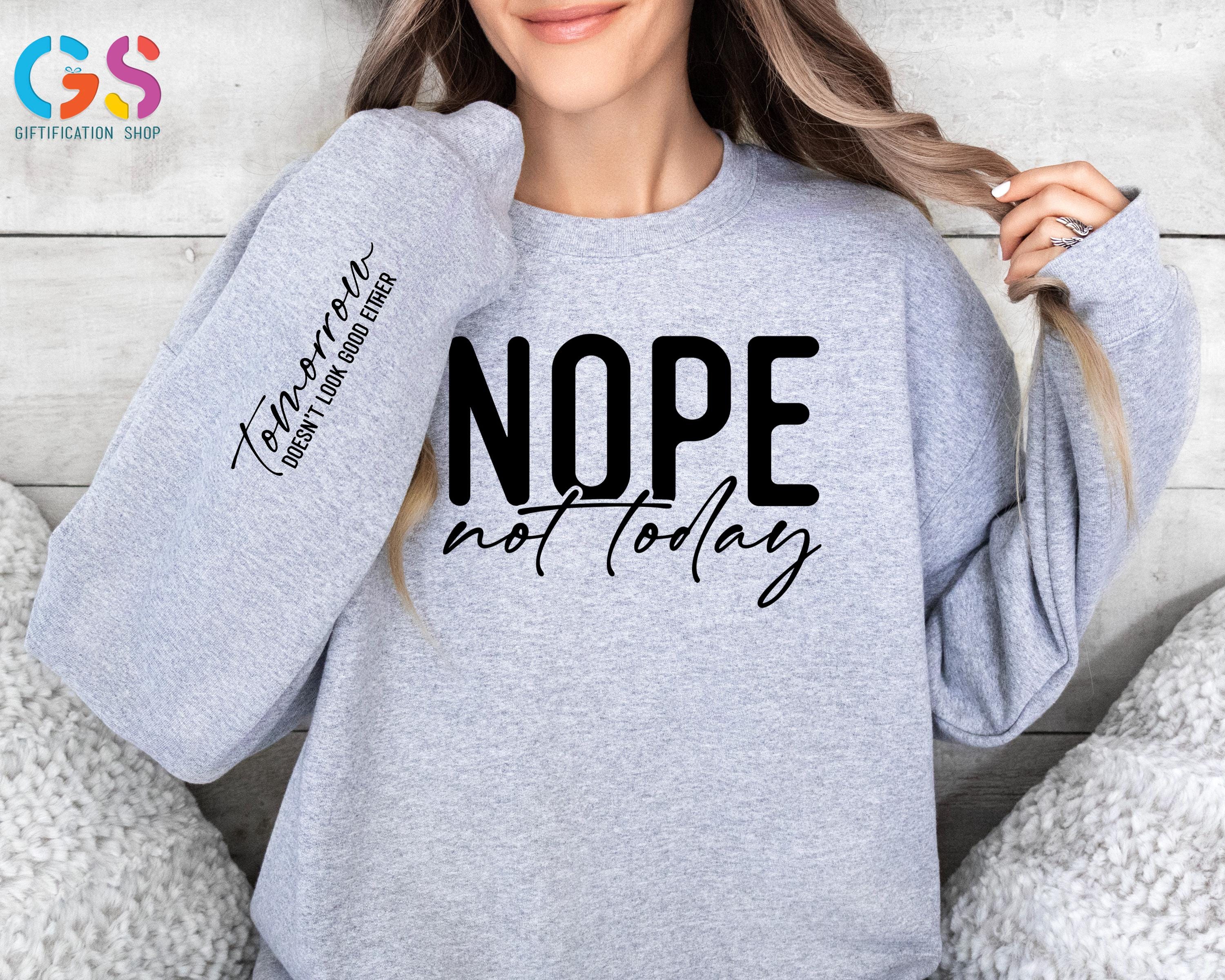 Nope Not Today Sweatshirt, Sarcastic Sweater, Funny Sarcastic Gift, Trendy Adult Hoodie, Gift For Lazy Friend, Humorous Sweater, Ironic Tee