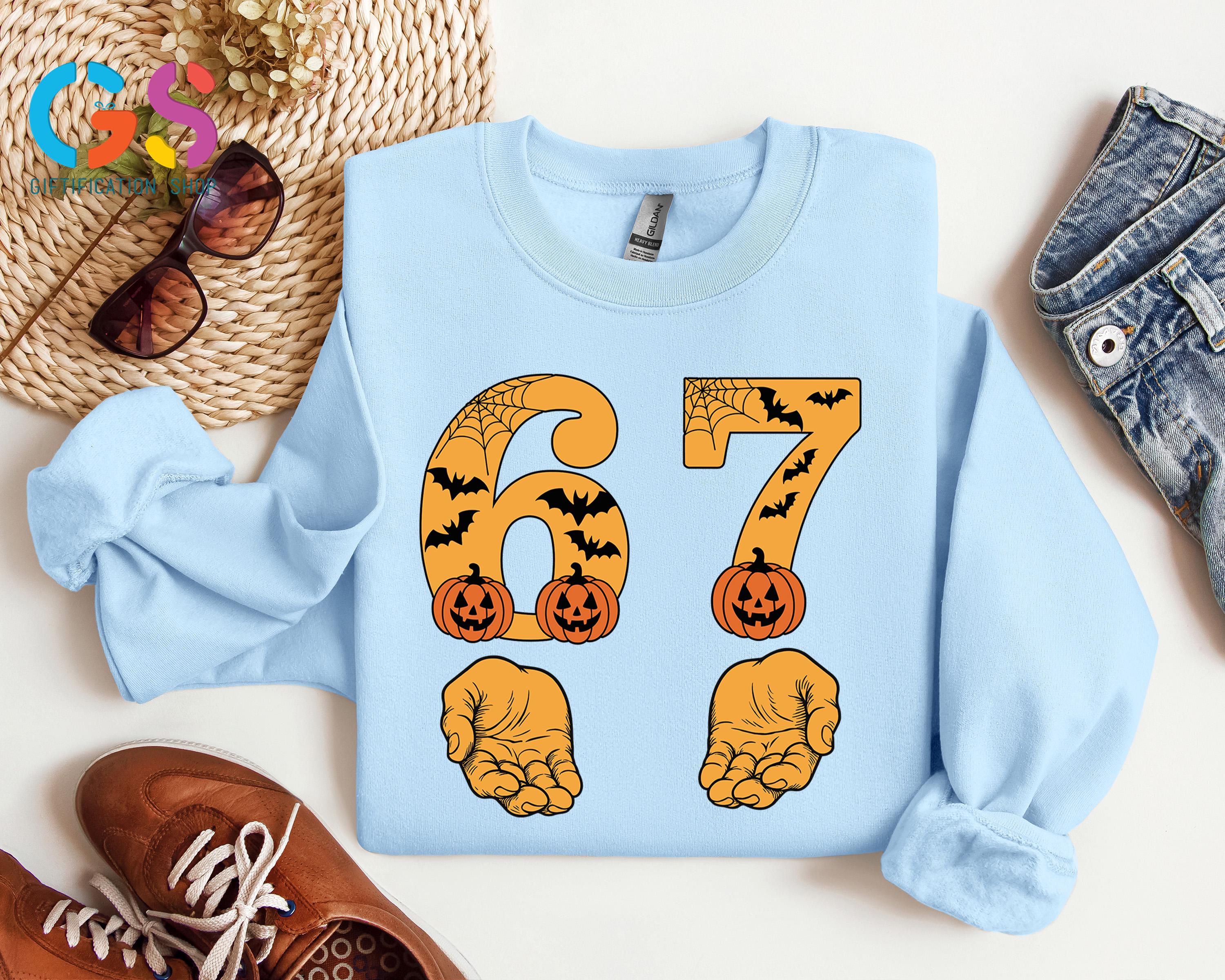 Stay spooky, stay comfy, and stay viral with this 6 7 Halloween meme sweatshirt — the perfect mix of humor, style, and seasonal spirit. 🕸️