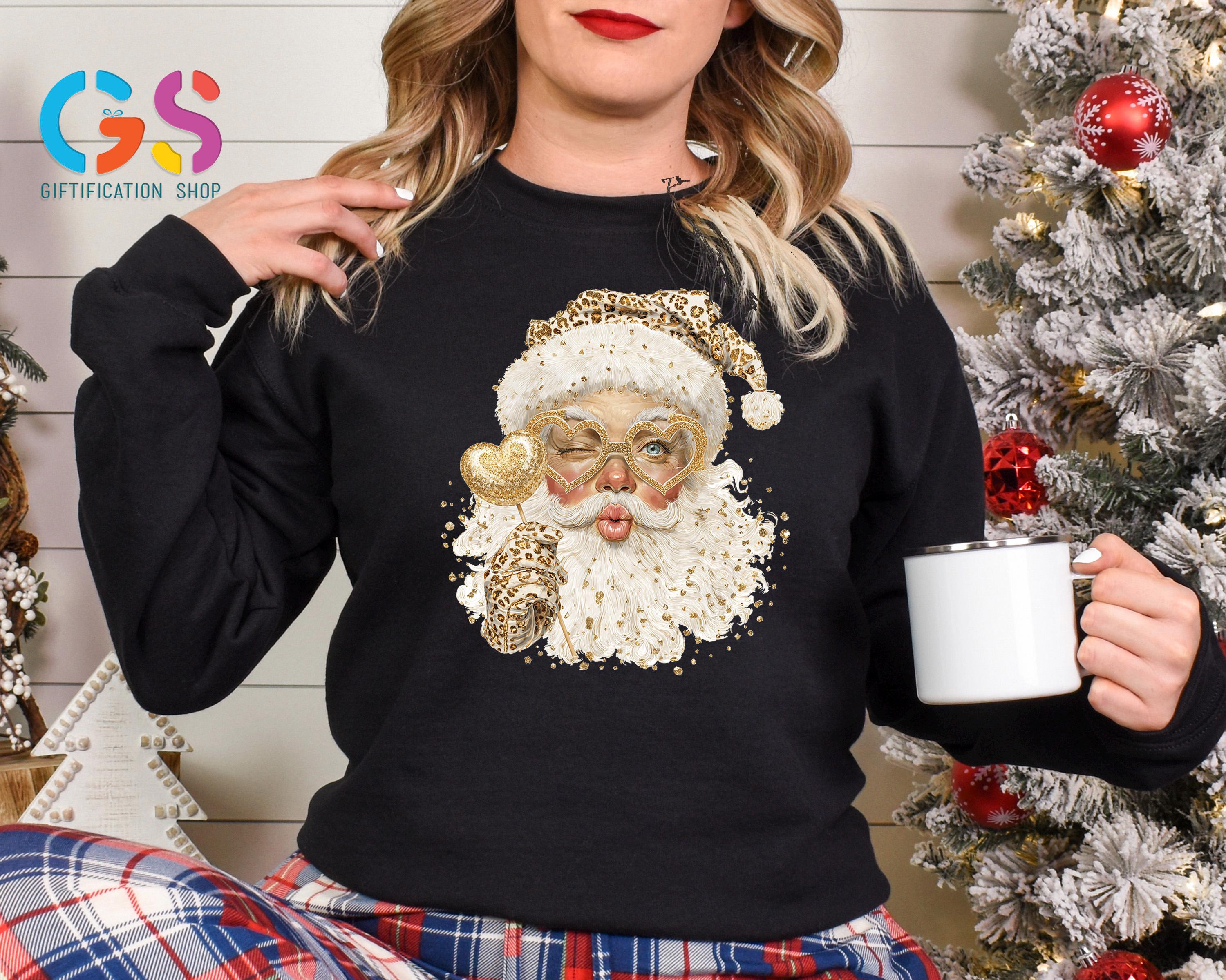 Leopard Santa Claus Sweatshirt, Merry Christmas Sanata Sweater, Christmas Preppy Santa Hoodie, Funny Christmas Sweatshirt, Holiday Gift