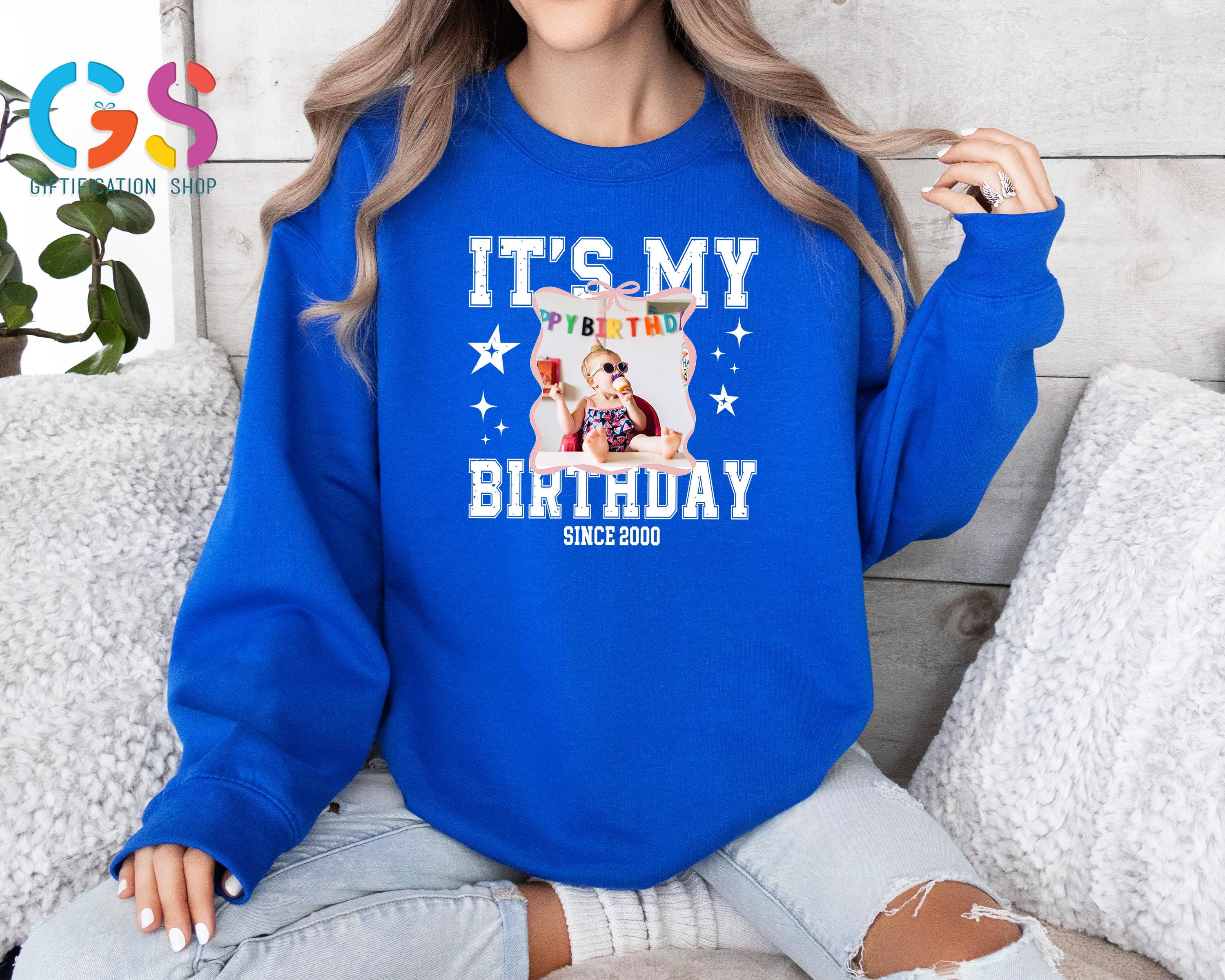 Custom Birthday Photo Sweatshirt, Funny Birthday Sweater for Youths, Its My Birthday Photo Sweatshirt, Photo Birthday Gift for Family