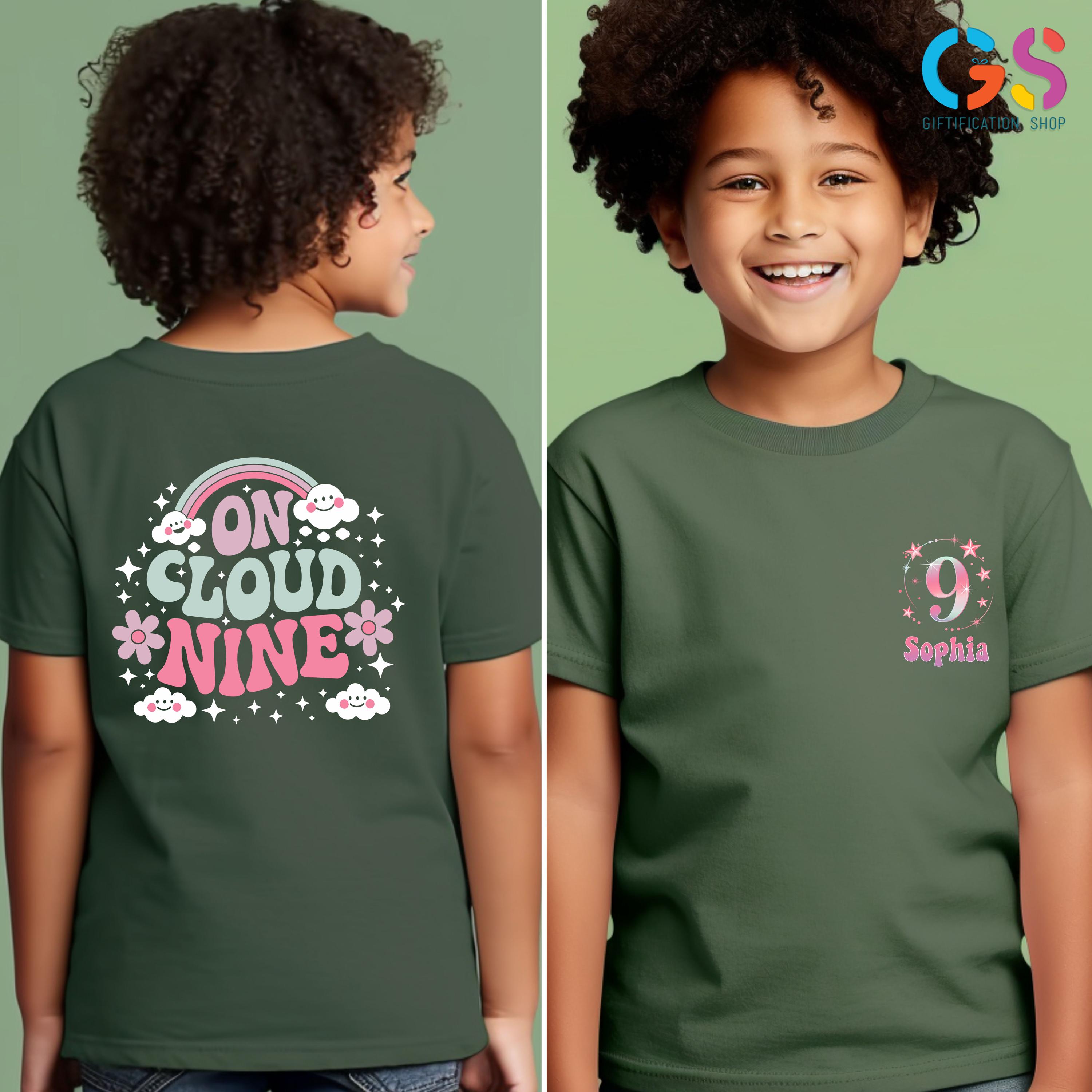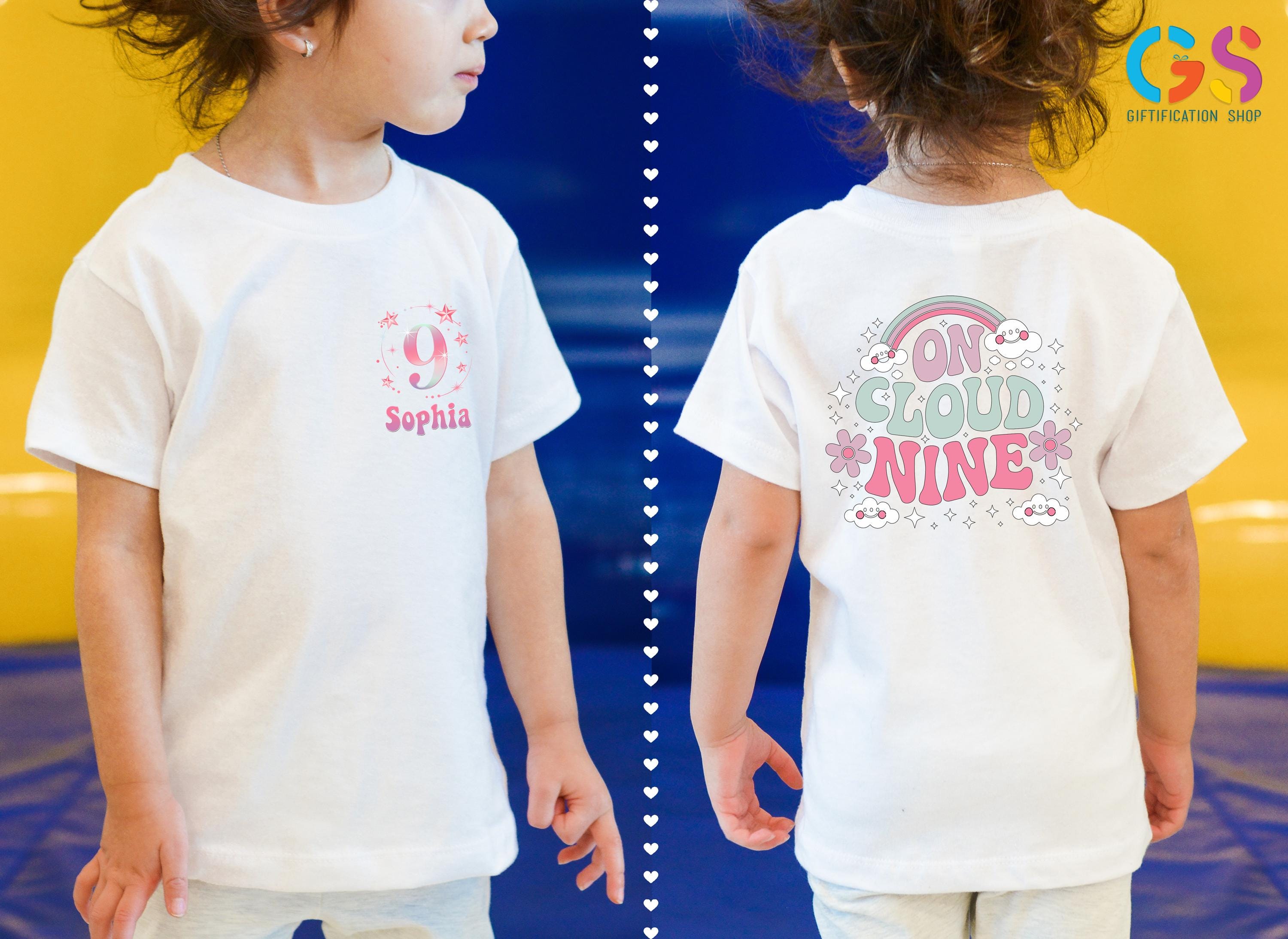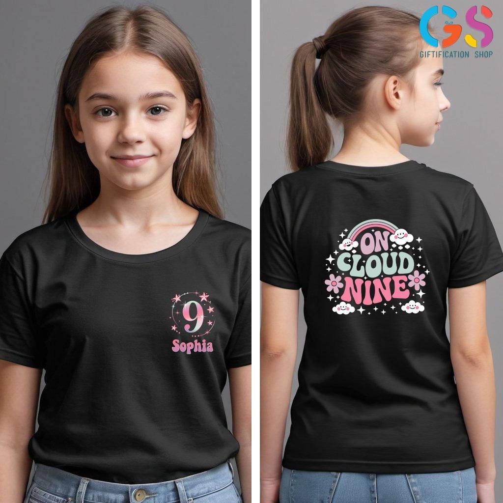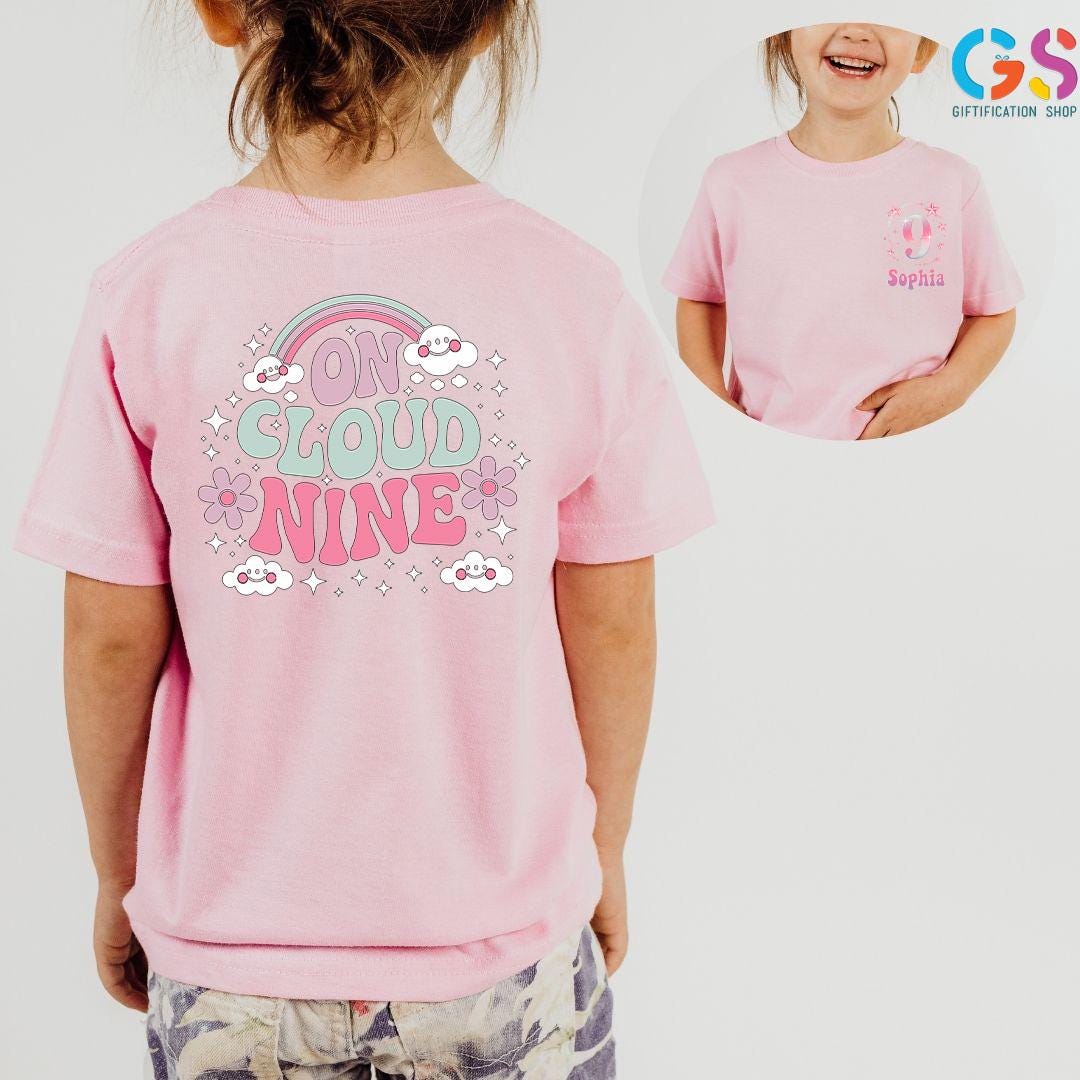 Custom Name 9th Birthday Shirt, On Cloud Nine Birthday Tee, 9th Birthday Girl Shirt, Birthday 9 Years Old Gift, Youth Birthday Shirt