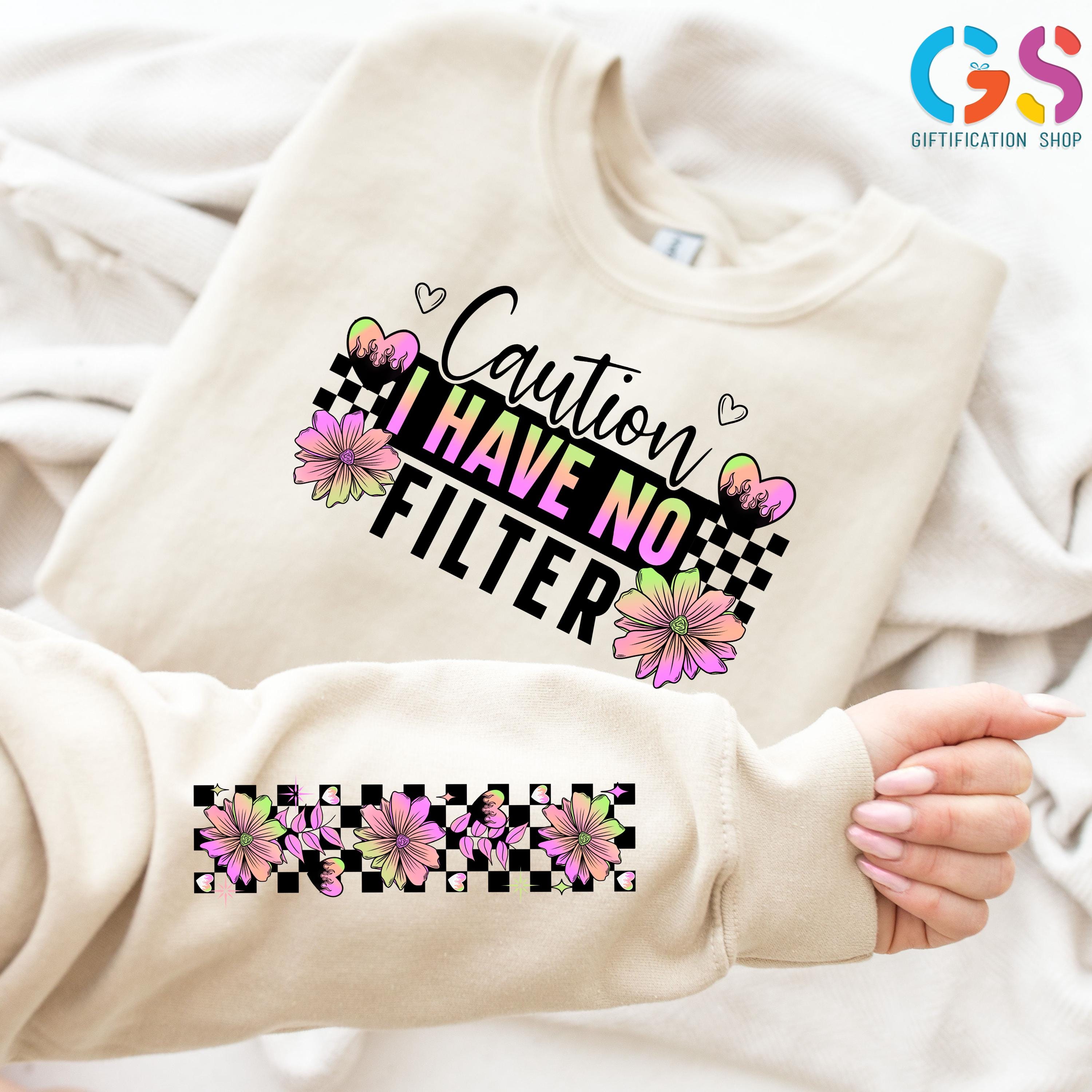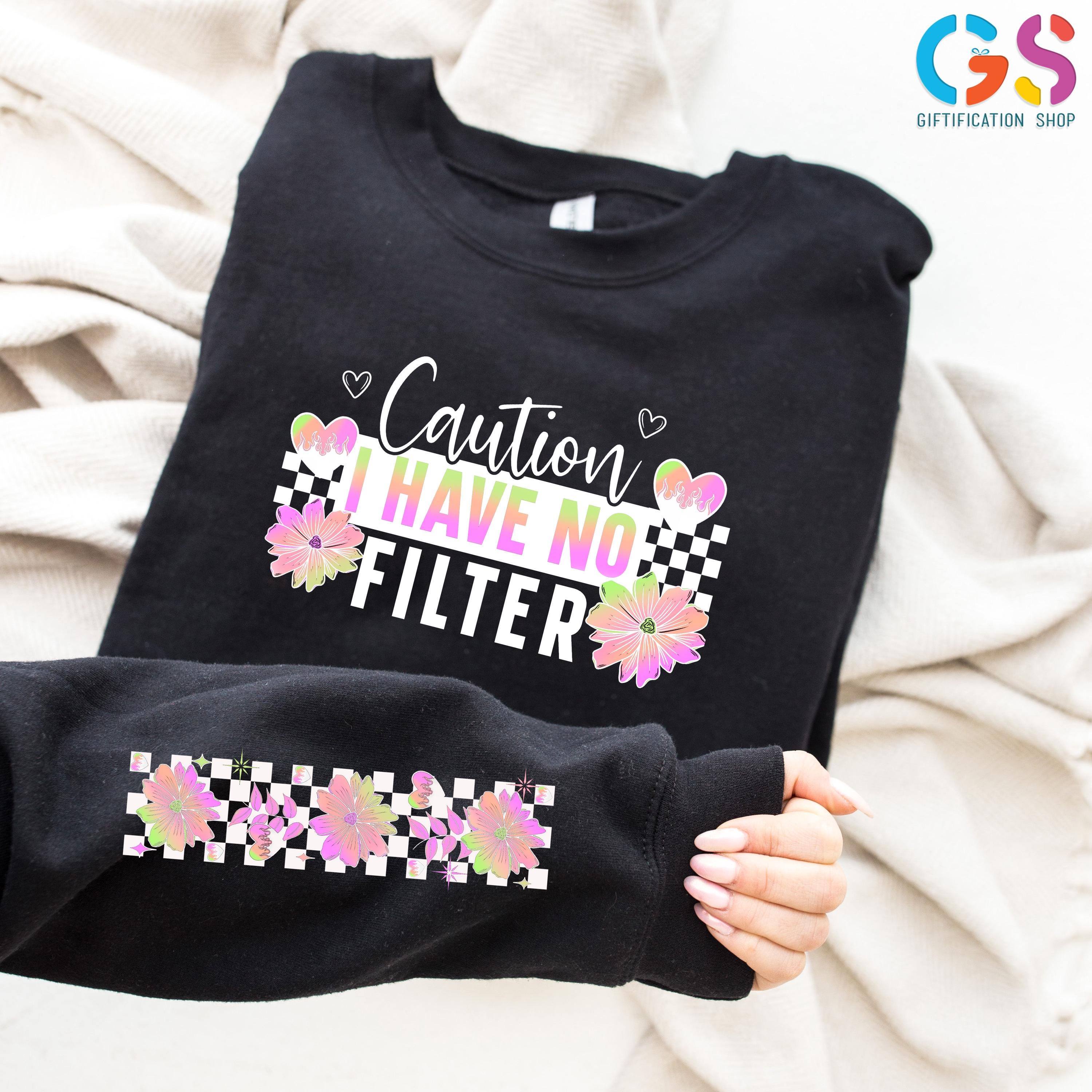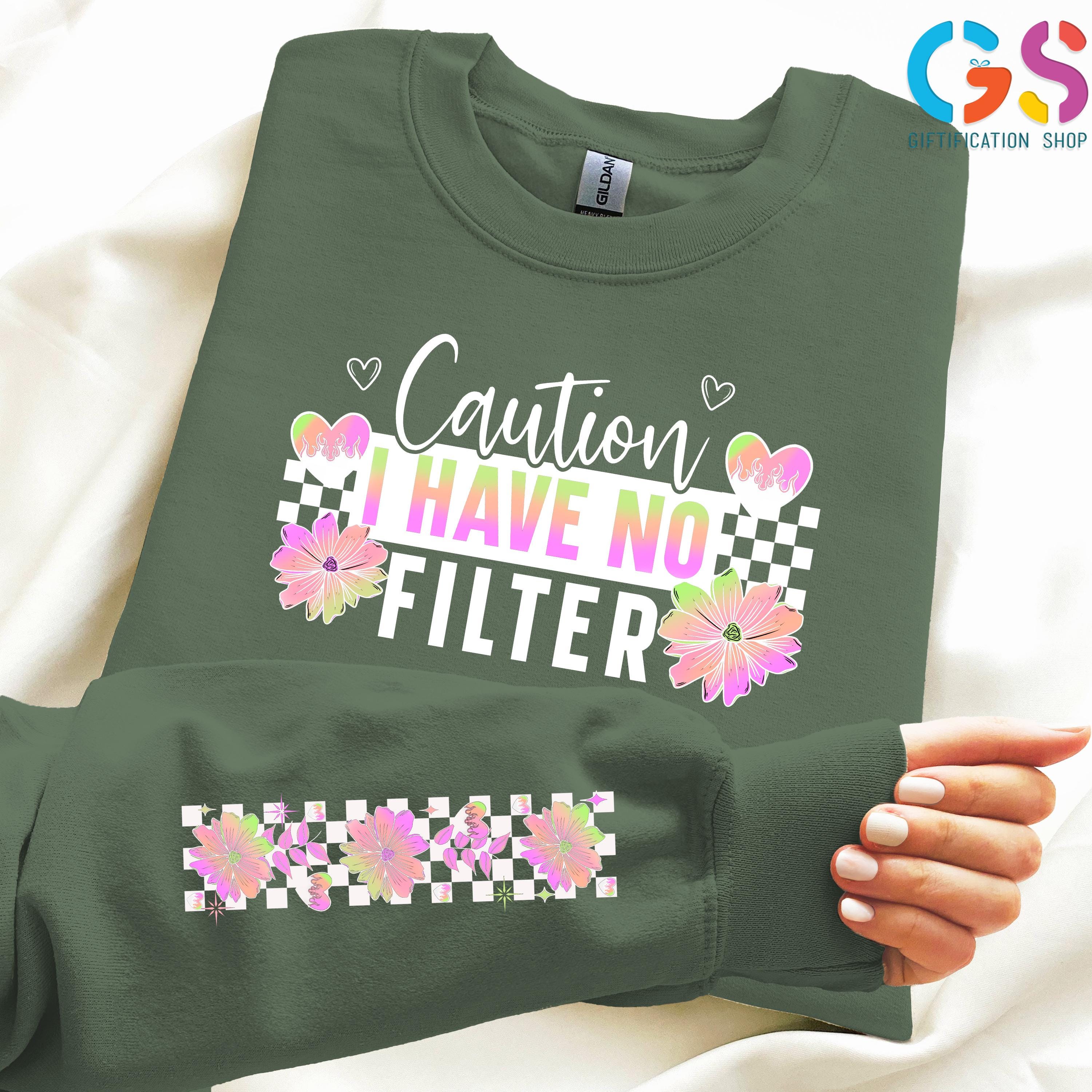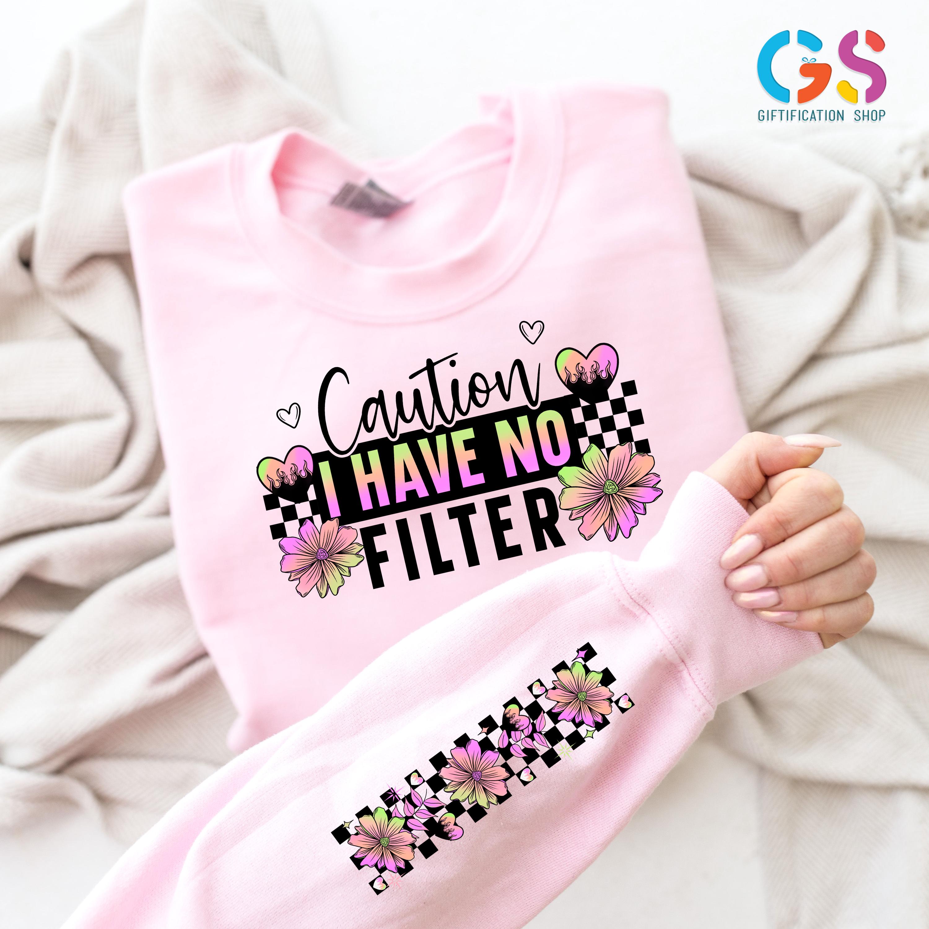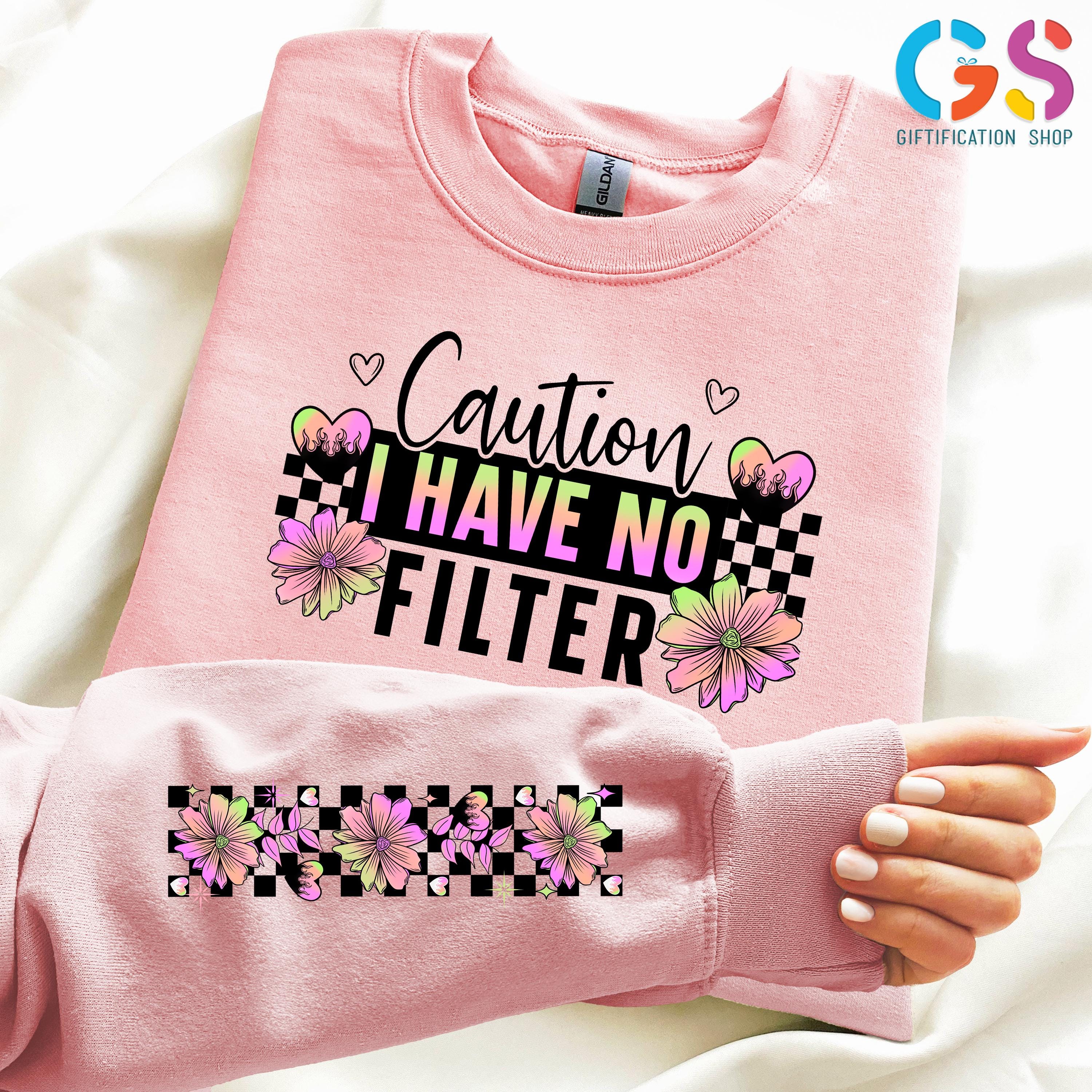Funny Sarcastic Sweatshirt, Caution I Have No Filter, Sarcasm Gift, Funny Attitude Hoodie, Snarky Saying Sweater, Ironic Sweatshirt