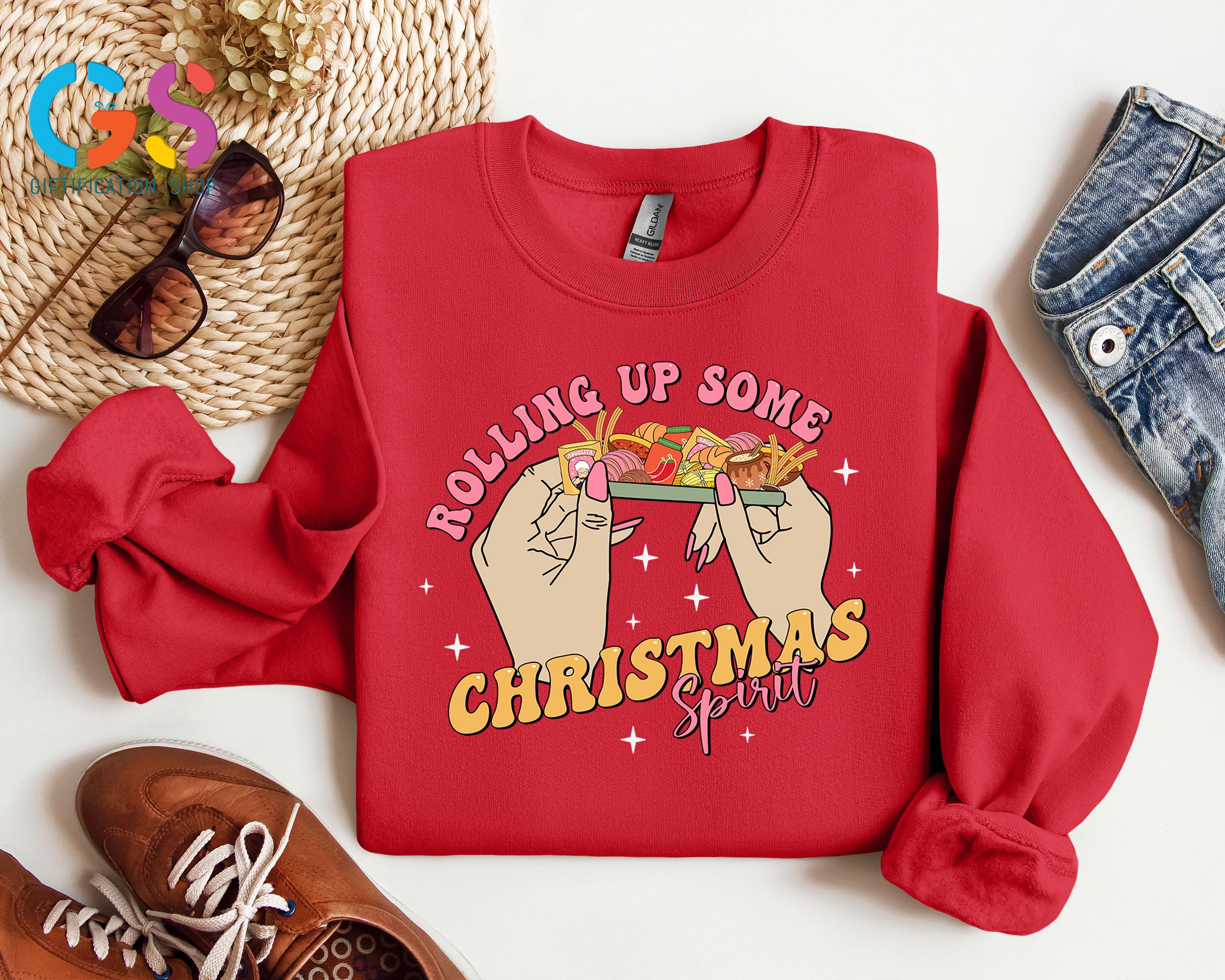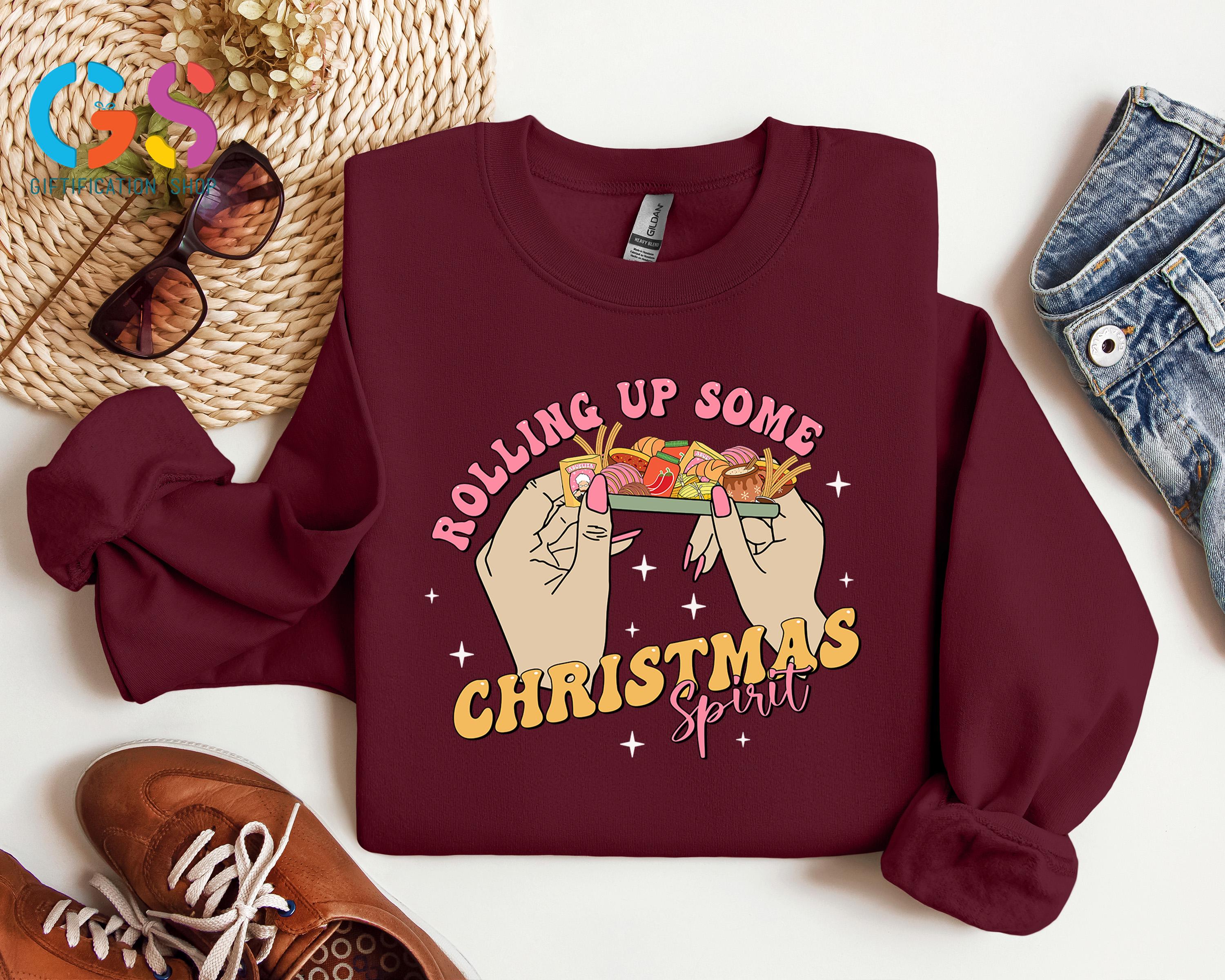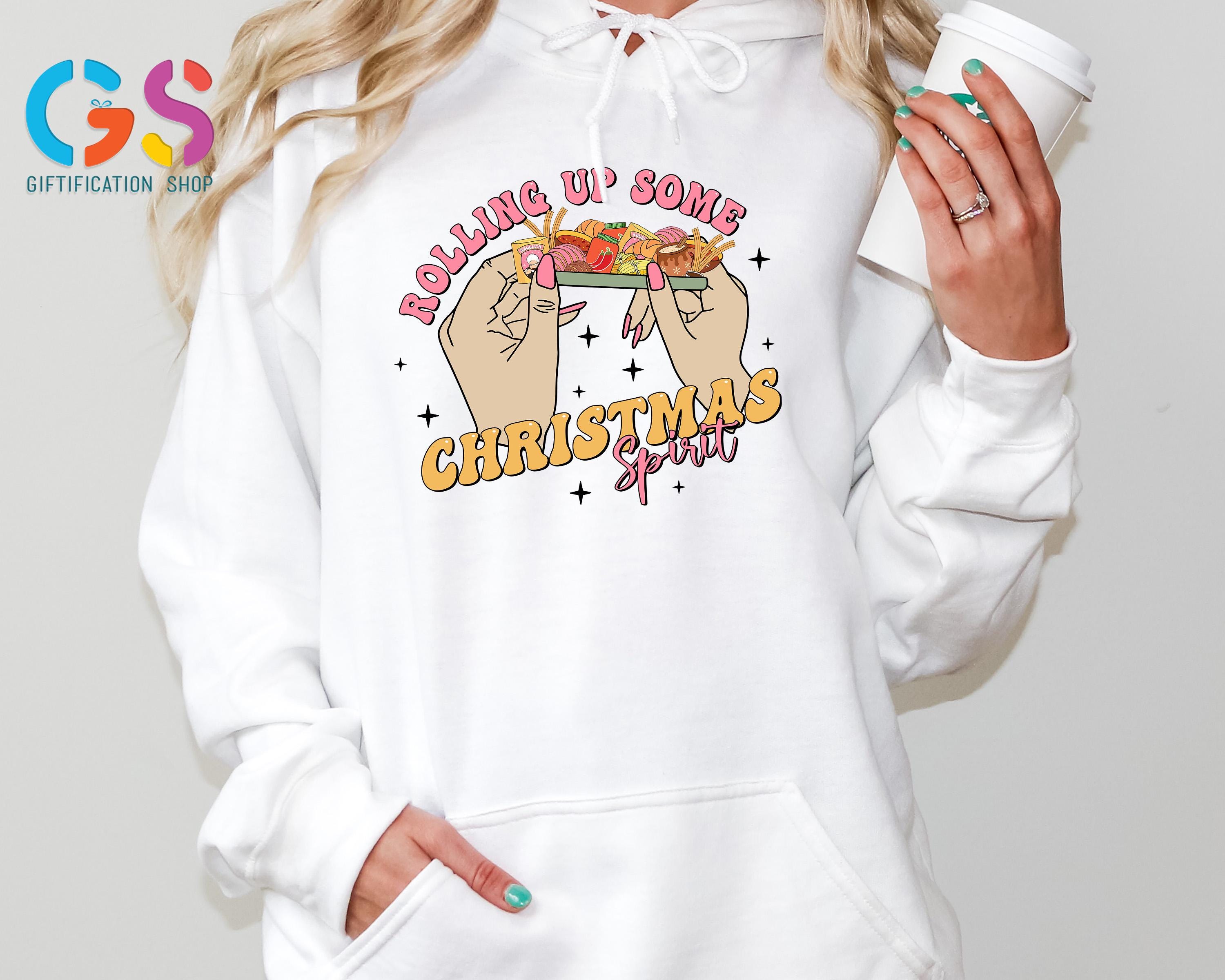 Funny Christmas Mexican Food Sweatshirt, Rolling Up Some Christmas Spirit, Christmas Eating Hoodie, Mexican Holiday Gift, Latino Christmas
