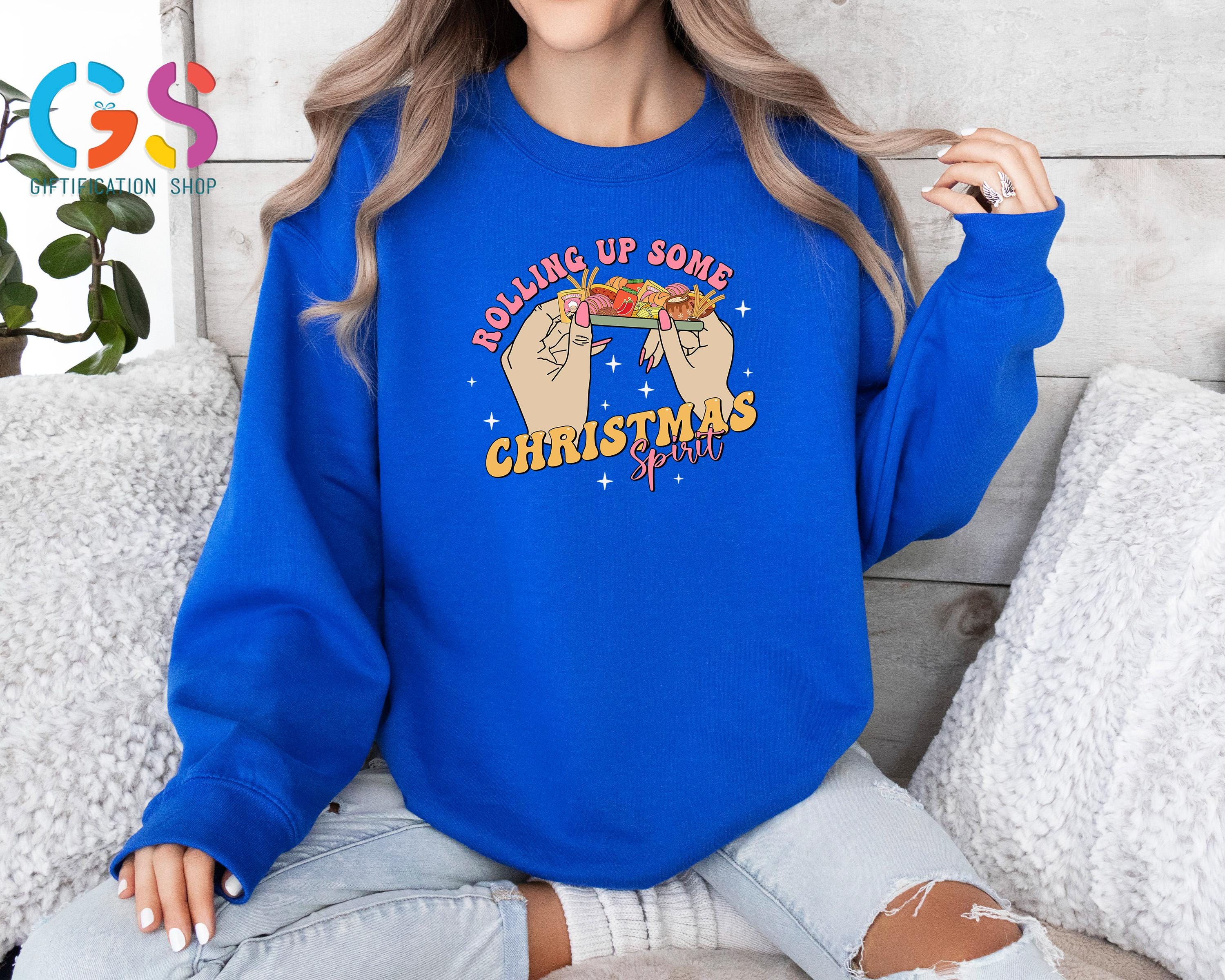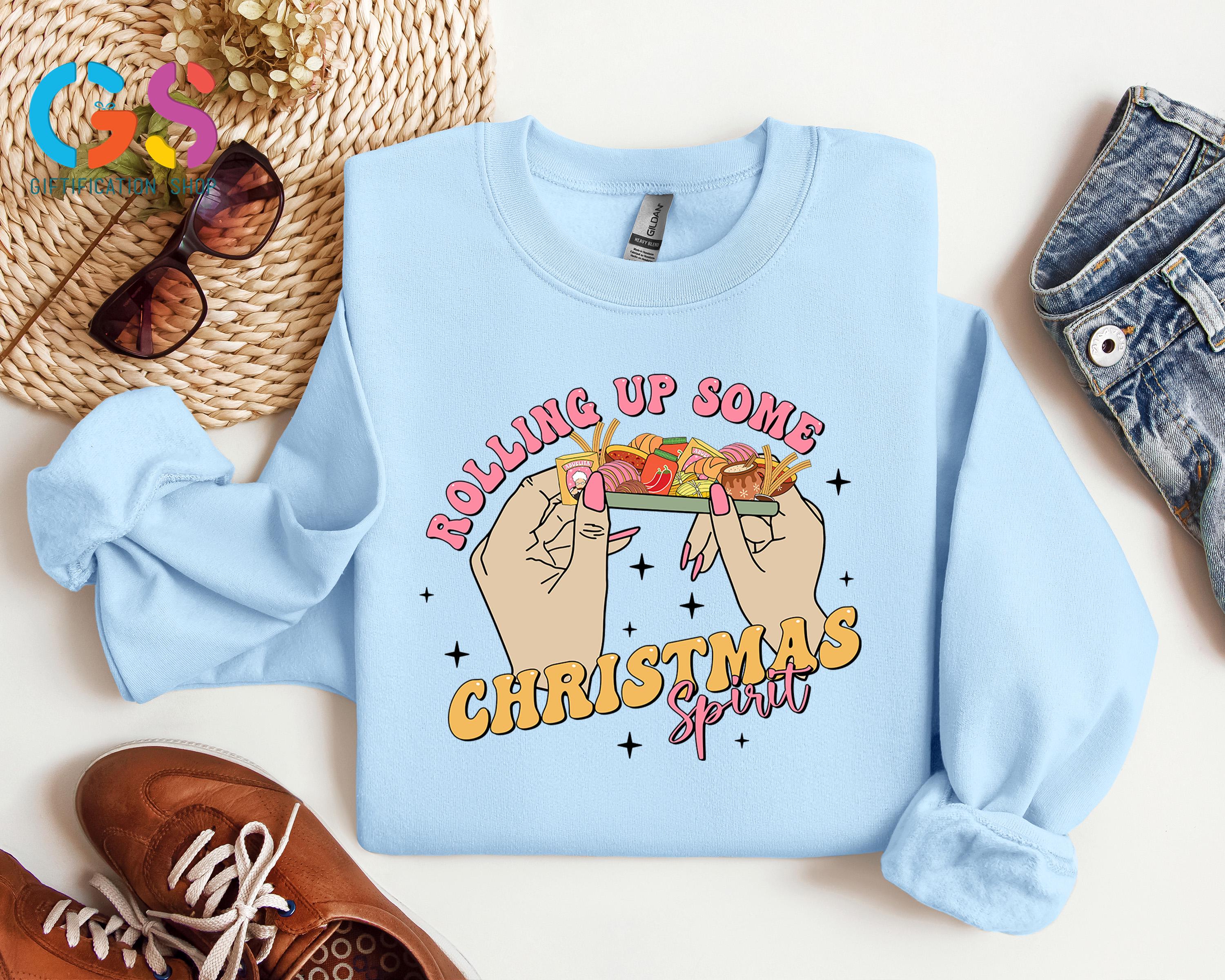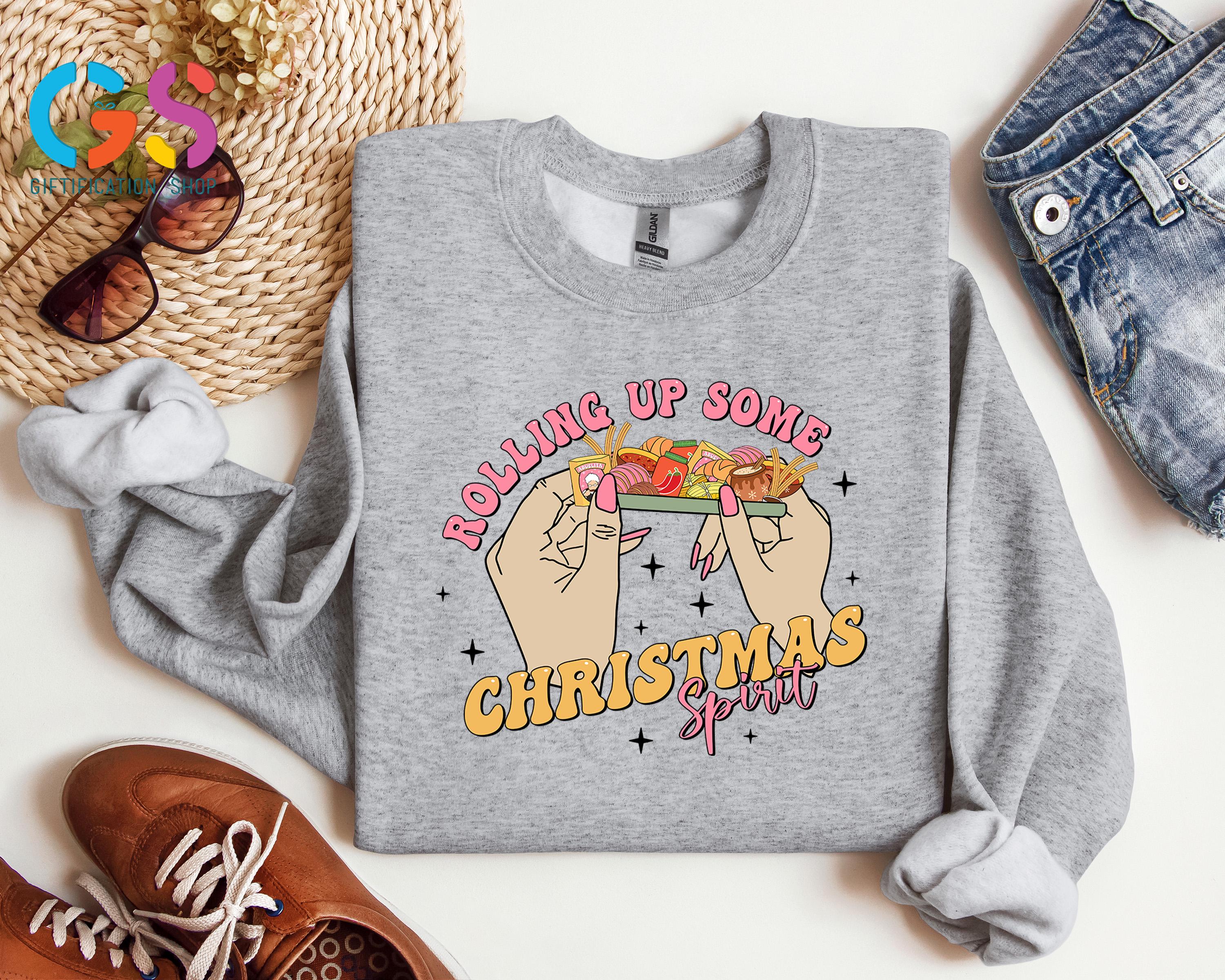 Funny Christmas Mexican Food Sweatshirt, Rolling Up Some Christmas Spirit, Christmas Eating Hoodie, Mexican Holiday Gift, Latino Christmas