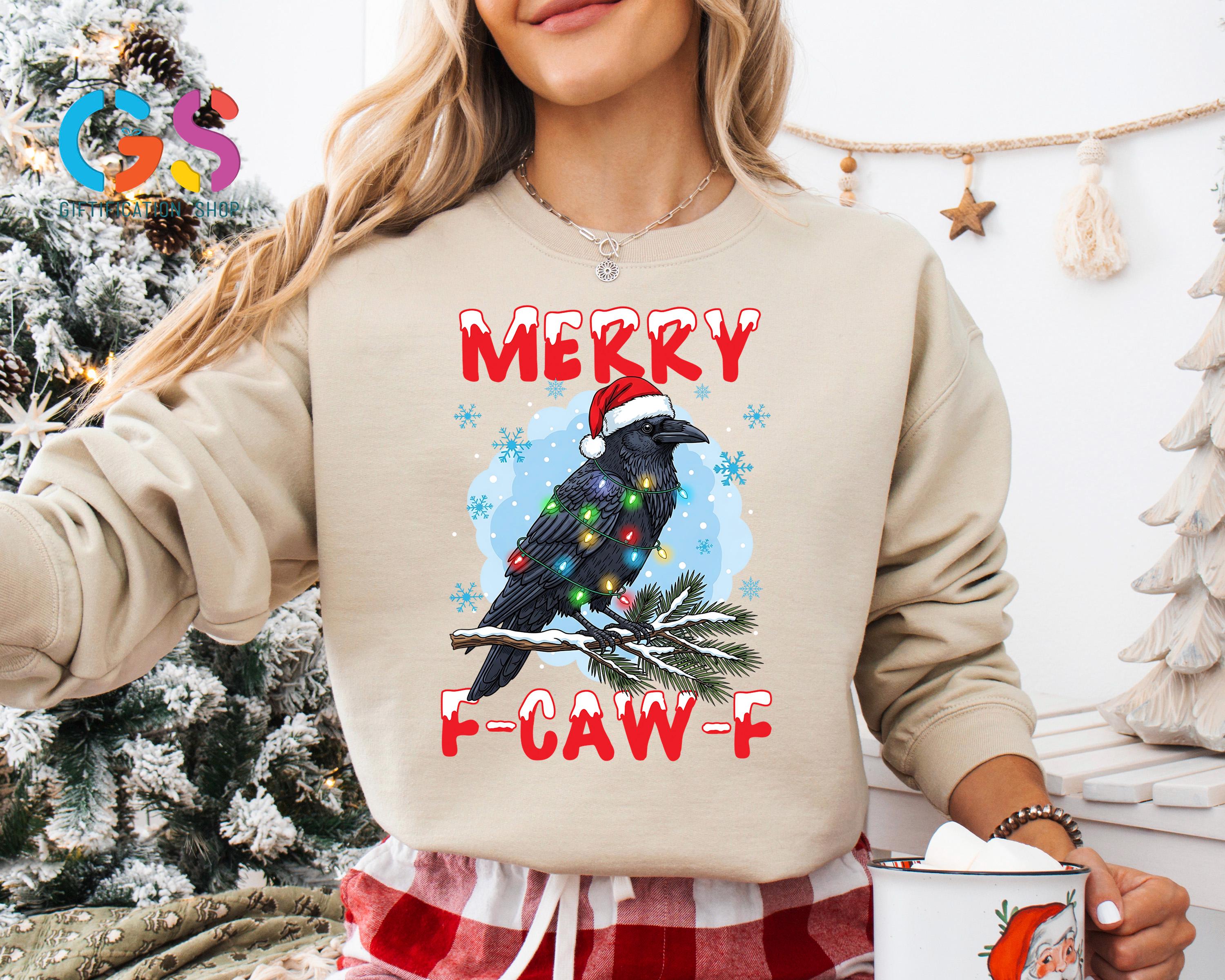 Add a bit of humor and attitude to your holiday wardrobe with this Merry Christmas F-Caw-F Crow Sweatshirt! Featuring a festive Santa black bird design wrapped in Christmas lights, this cozy sweater is perfect for raven lovers, bird enthusiasts, or anyone with a quirky holiday spirit.