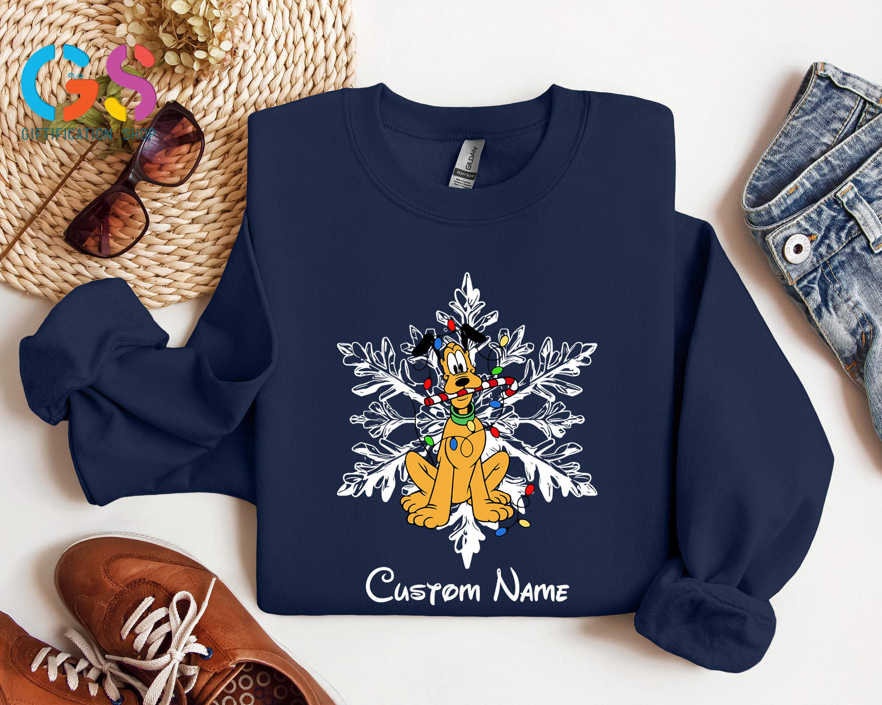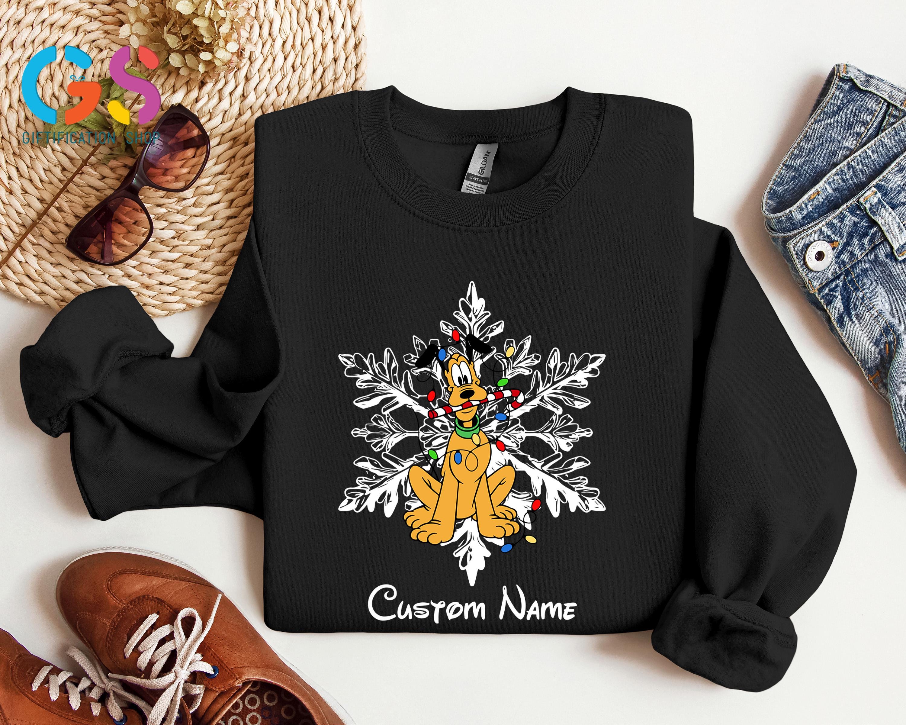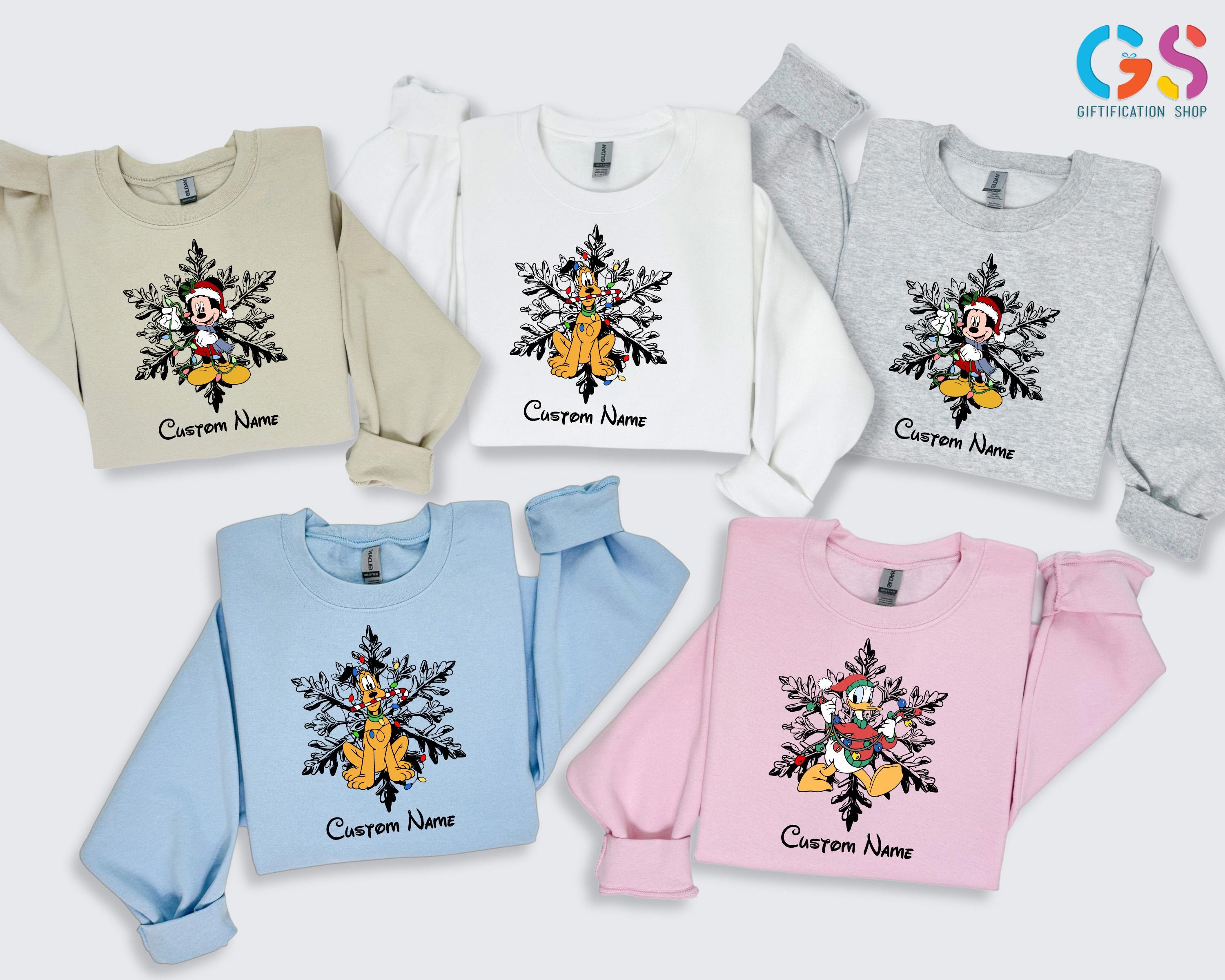 Celebrate the magic of the season with this Custom Name Mickey and Friends Christmas Sweatshirt, the perfect choice for your winter Disney vacation or cozy family gatherings! Featuring adorable Mickey and Friends with festive snowflakes, this Disney Christmas sweater can be personalized with your family name or individual names for a special holiday touch.