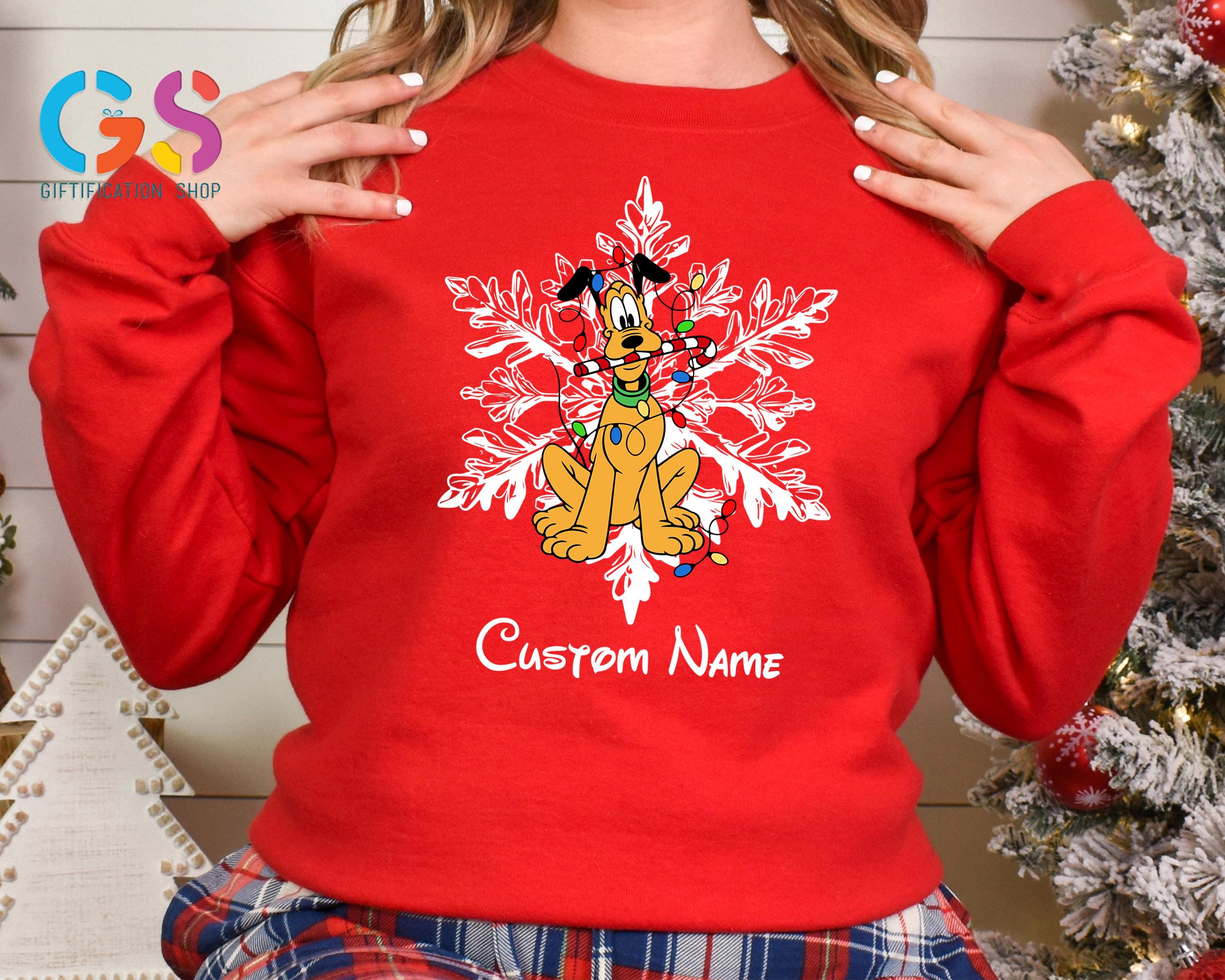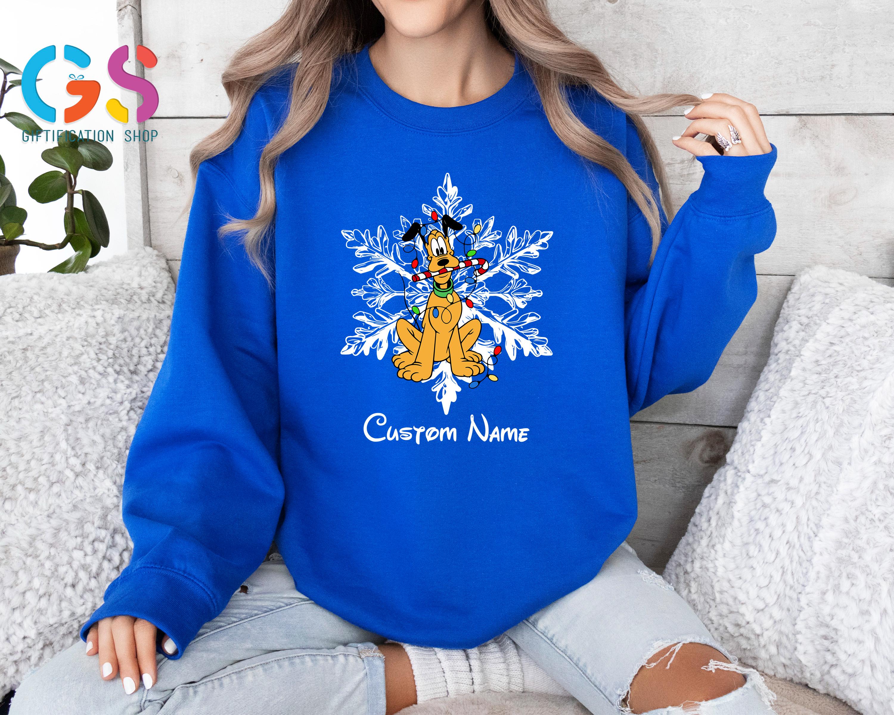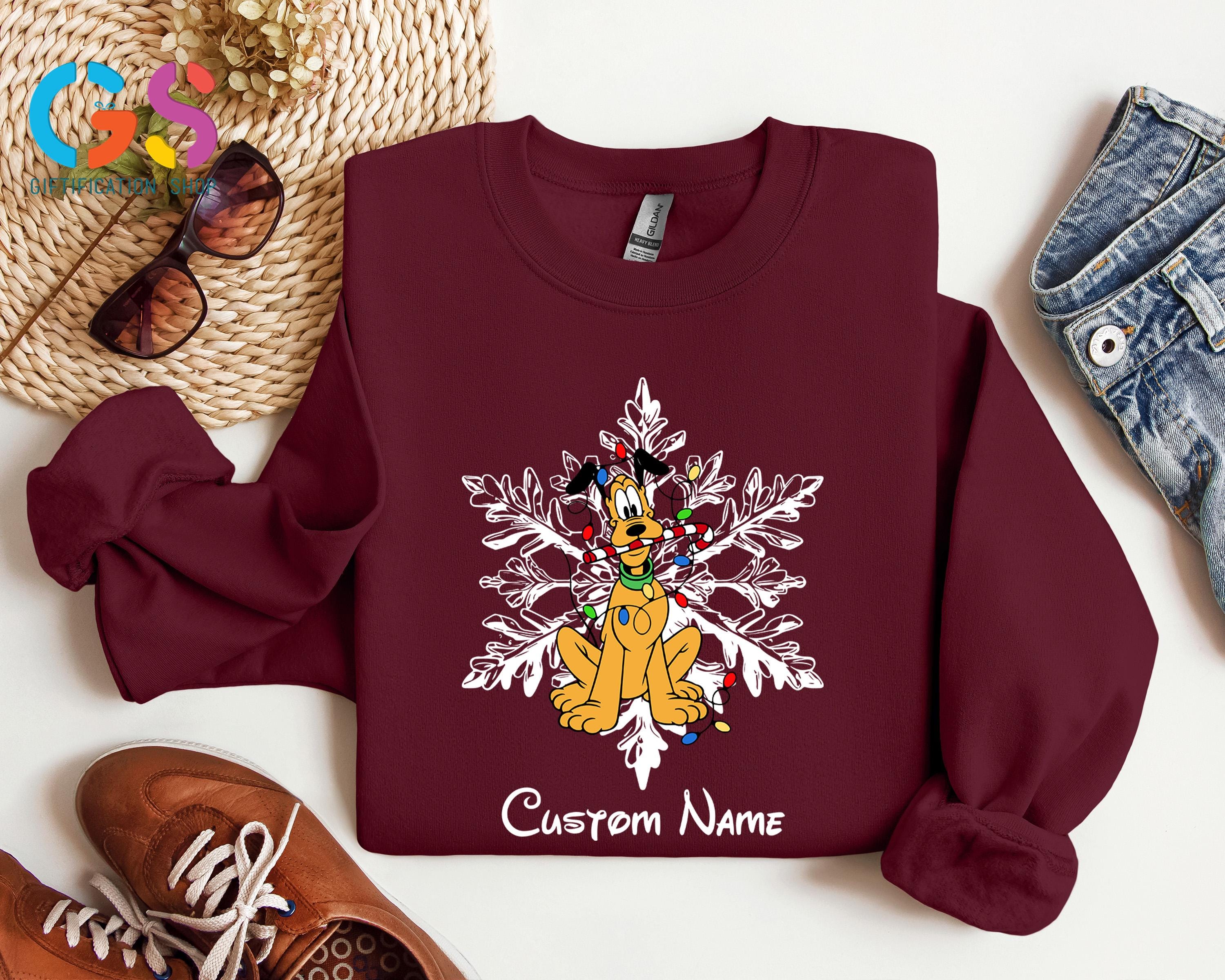 Celebrate the magic of the season with this Custom Name Mickey and Friends Christmas Sweatshirt, the perfect choice for your winter Disney vacation or cozy family gatherings! Featuring adorable Mickey and Friends with festive snowflakes, this Disney Christmas sweater can be personalized with your family name or individual names for a special holiday touch.