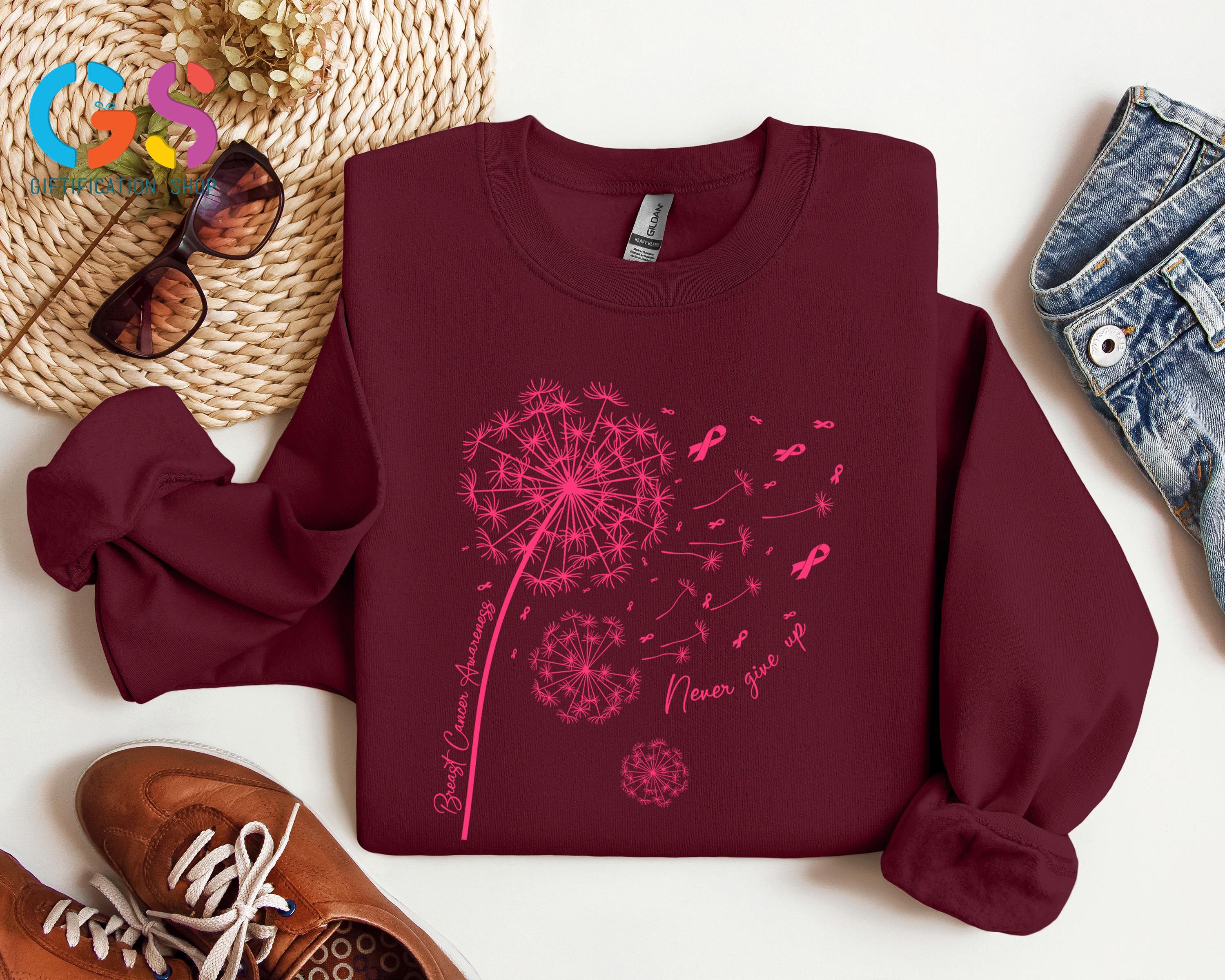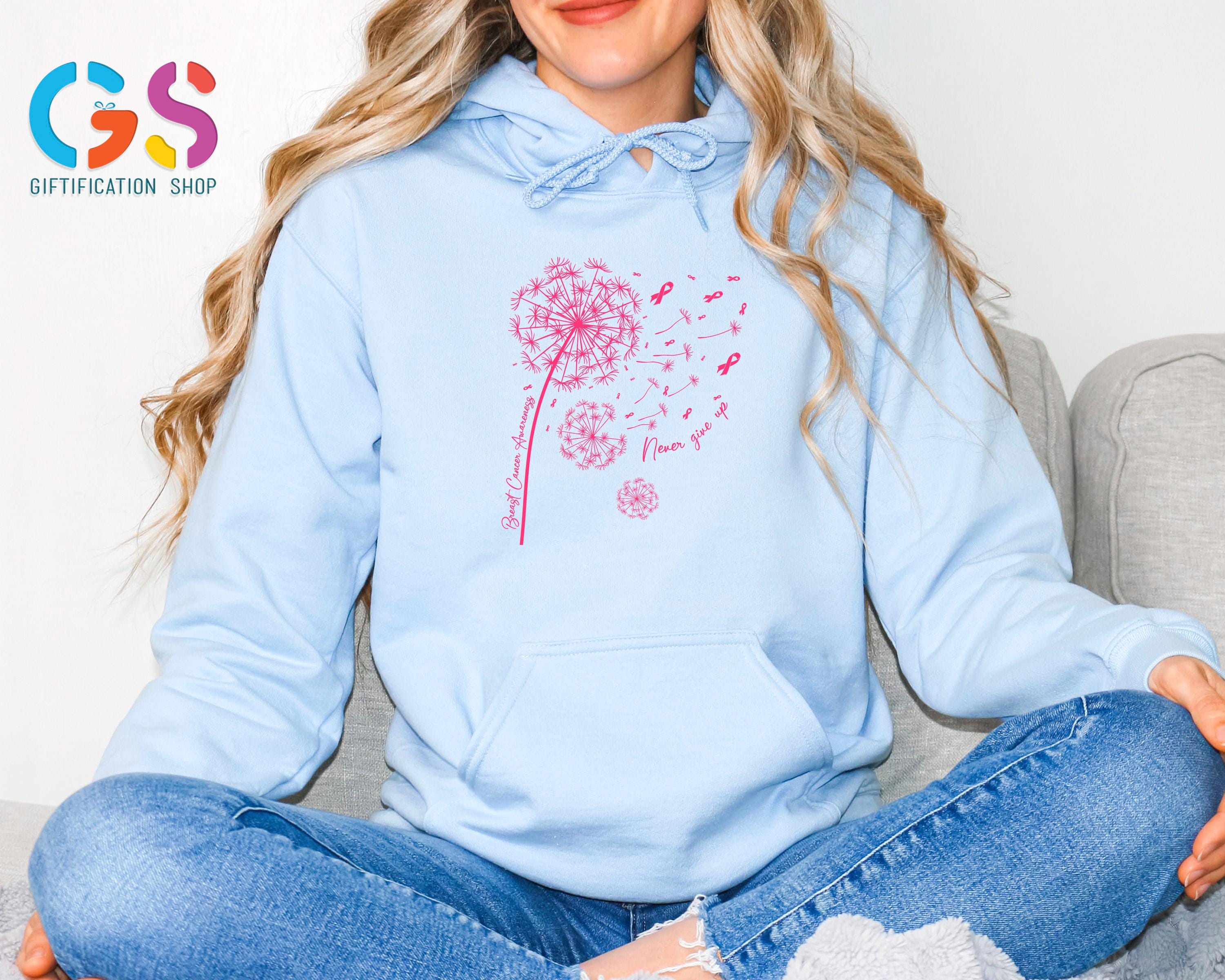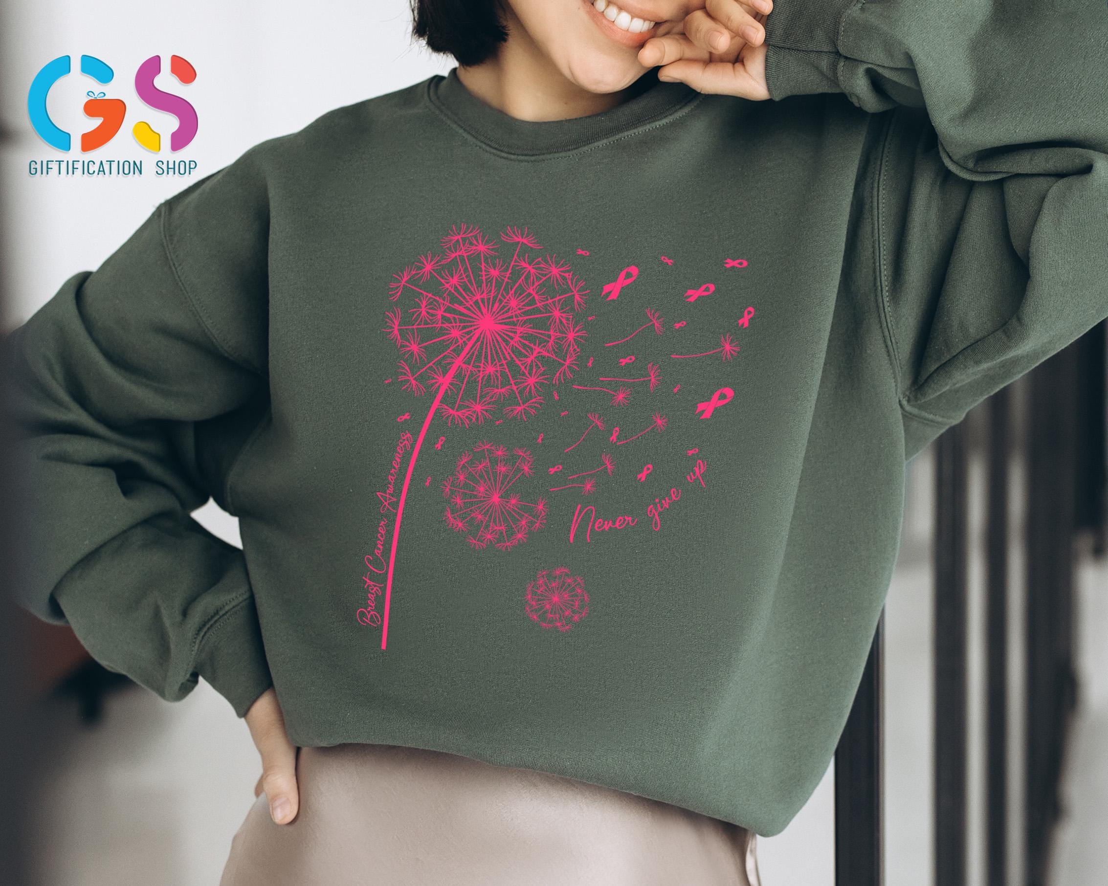 Dandelion Breast Cancer Sweatshirt,Breast Cancer Awareness Sweater, Never Giver Up Hoodie, Pink Ribbon Sweatshirt, Cancer Fighter Gift