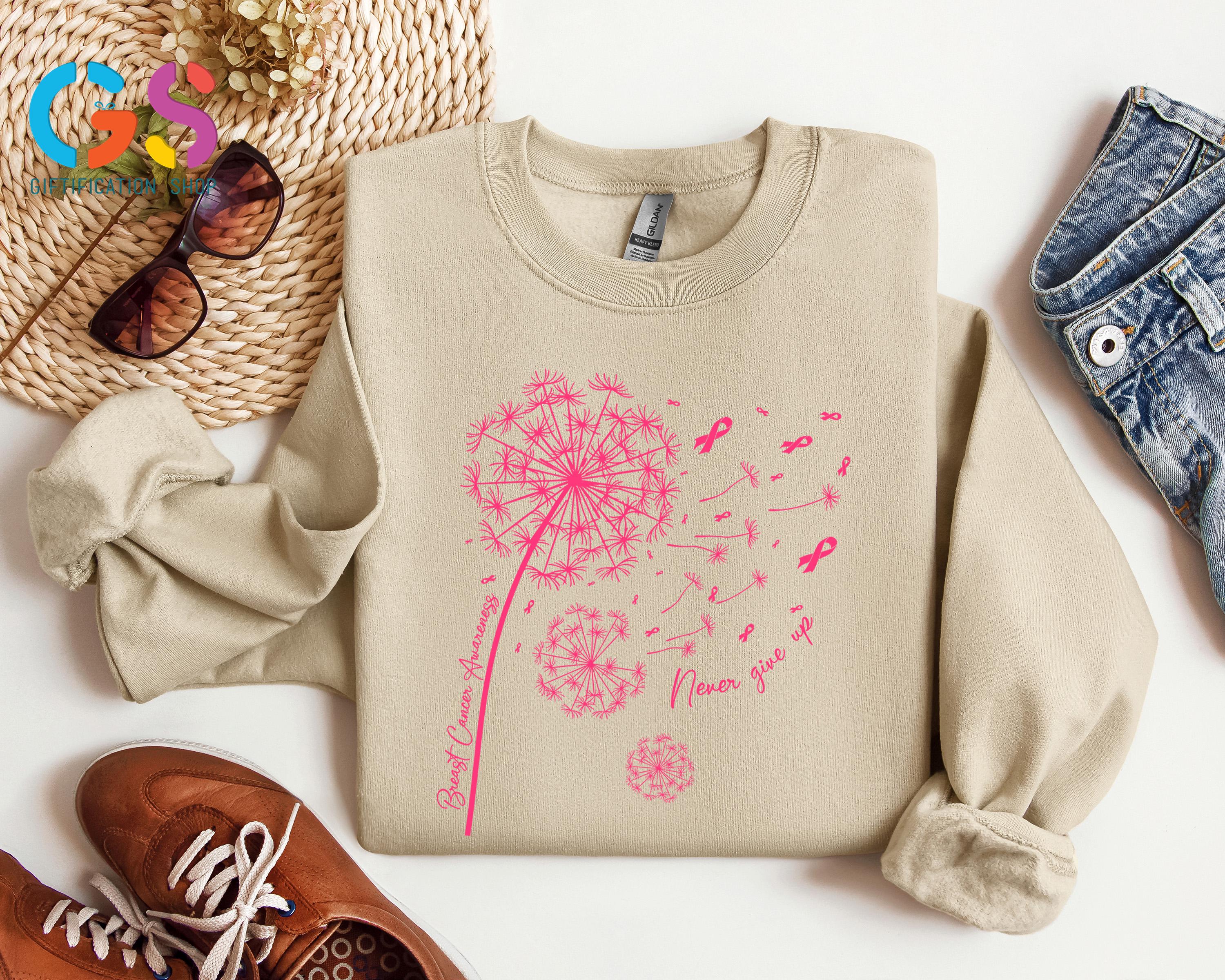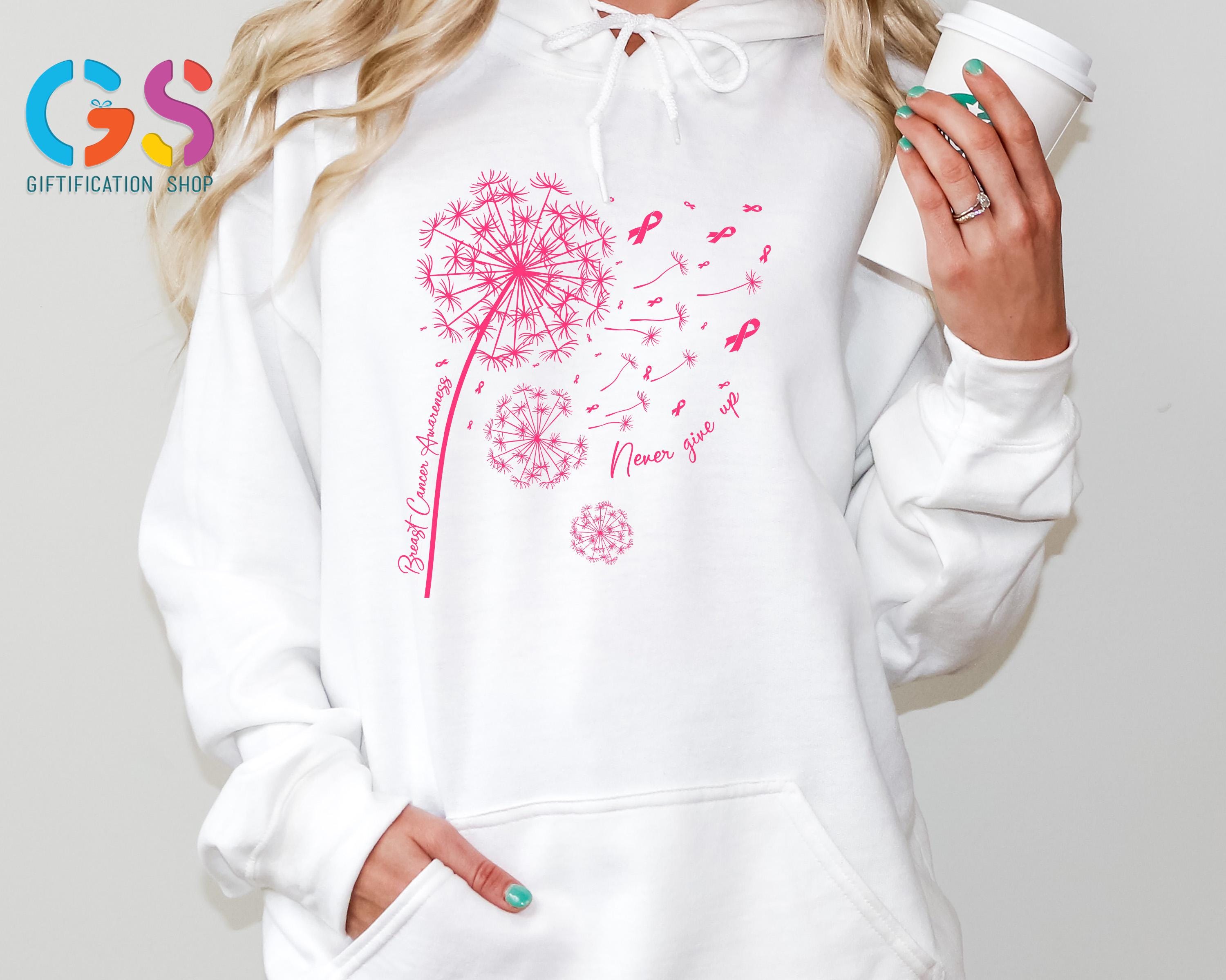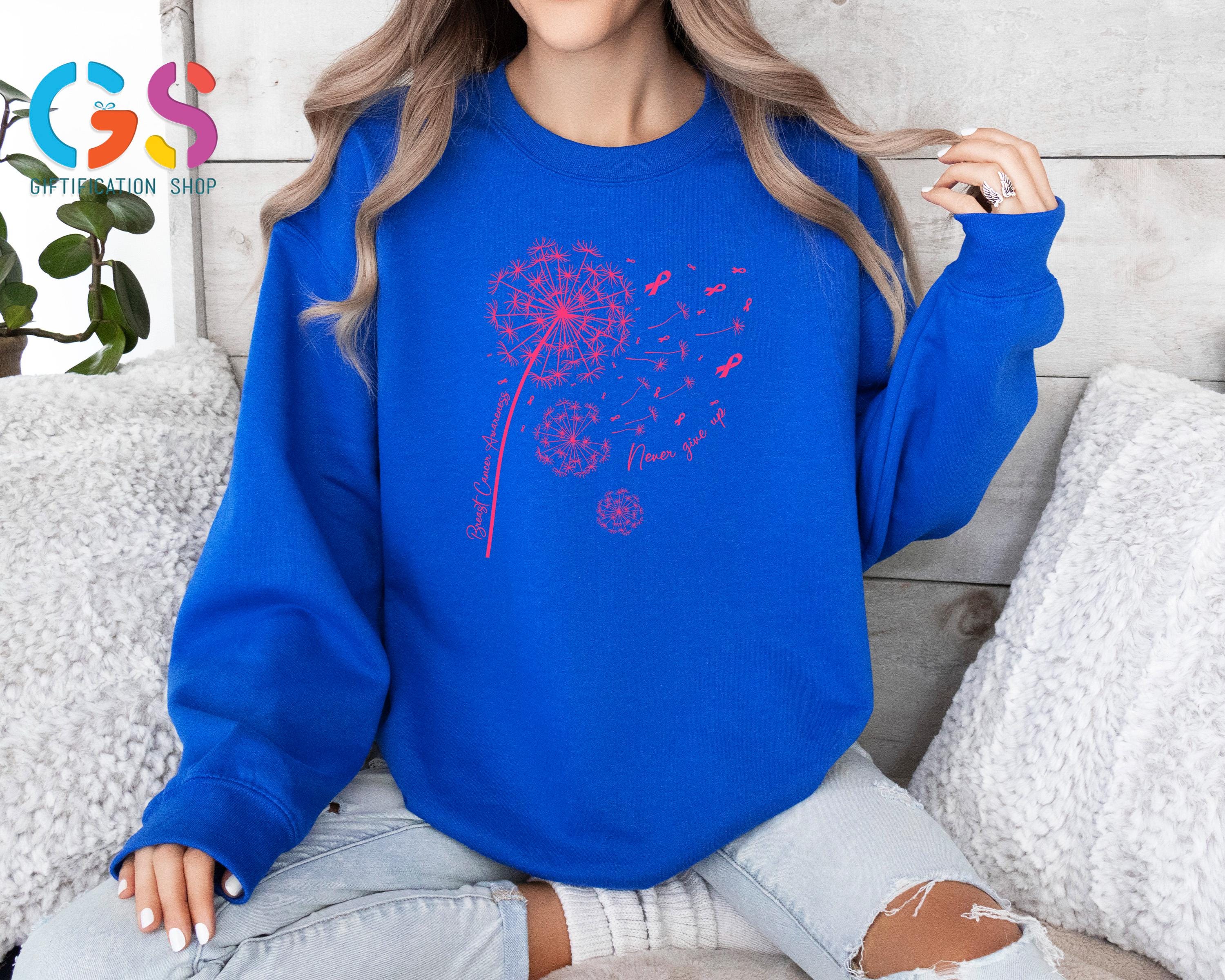 Dandelion Breast Cancer Sweatshirt,Breast Cancer Awareness Sweater, Never Giver Up Hoodie, Pink Ribbon Sweatshirt, Cancer Fighter Gift