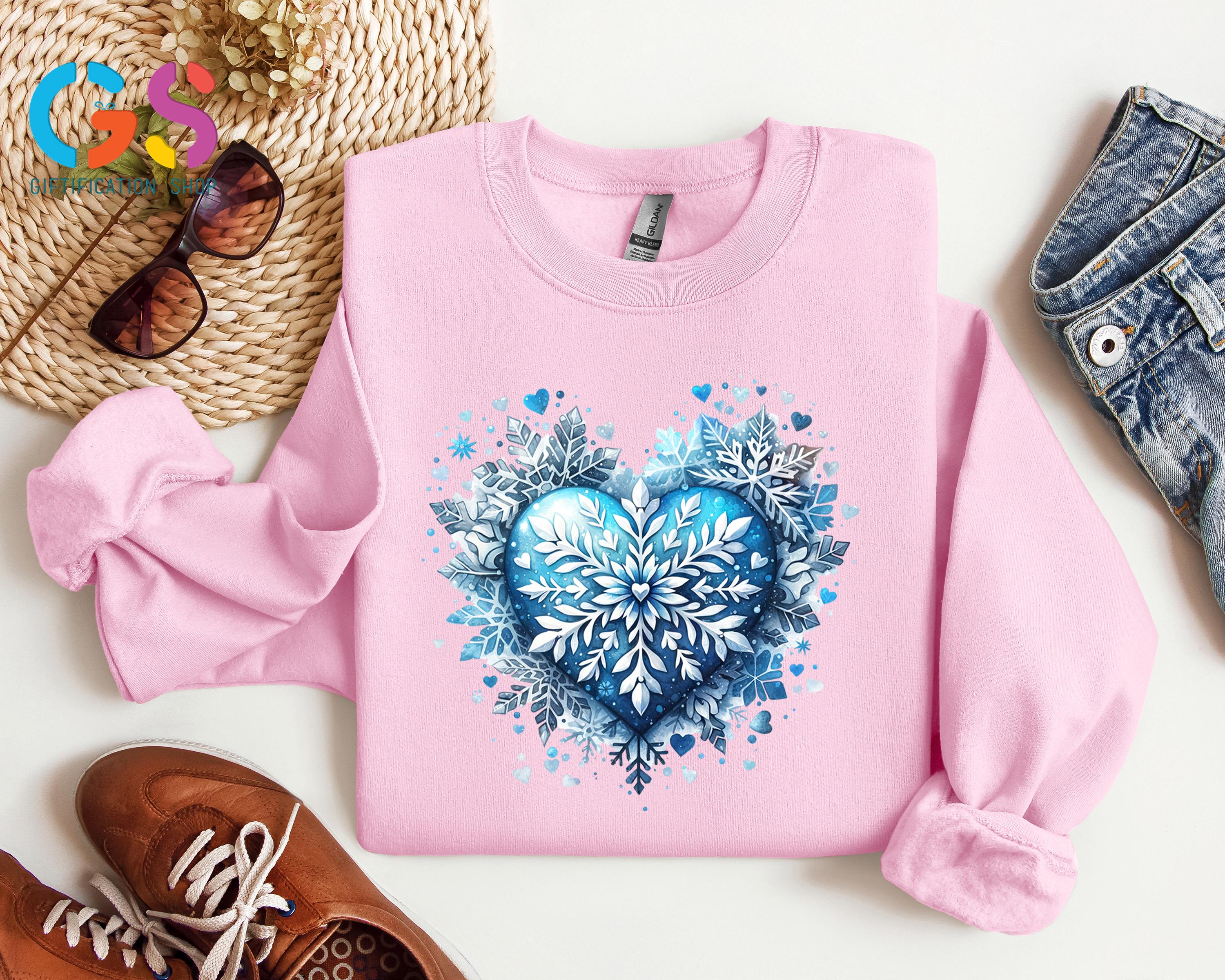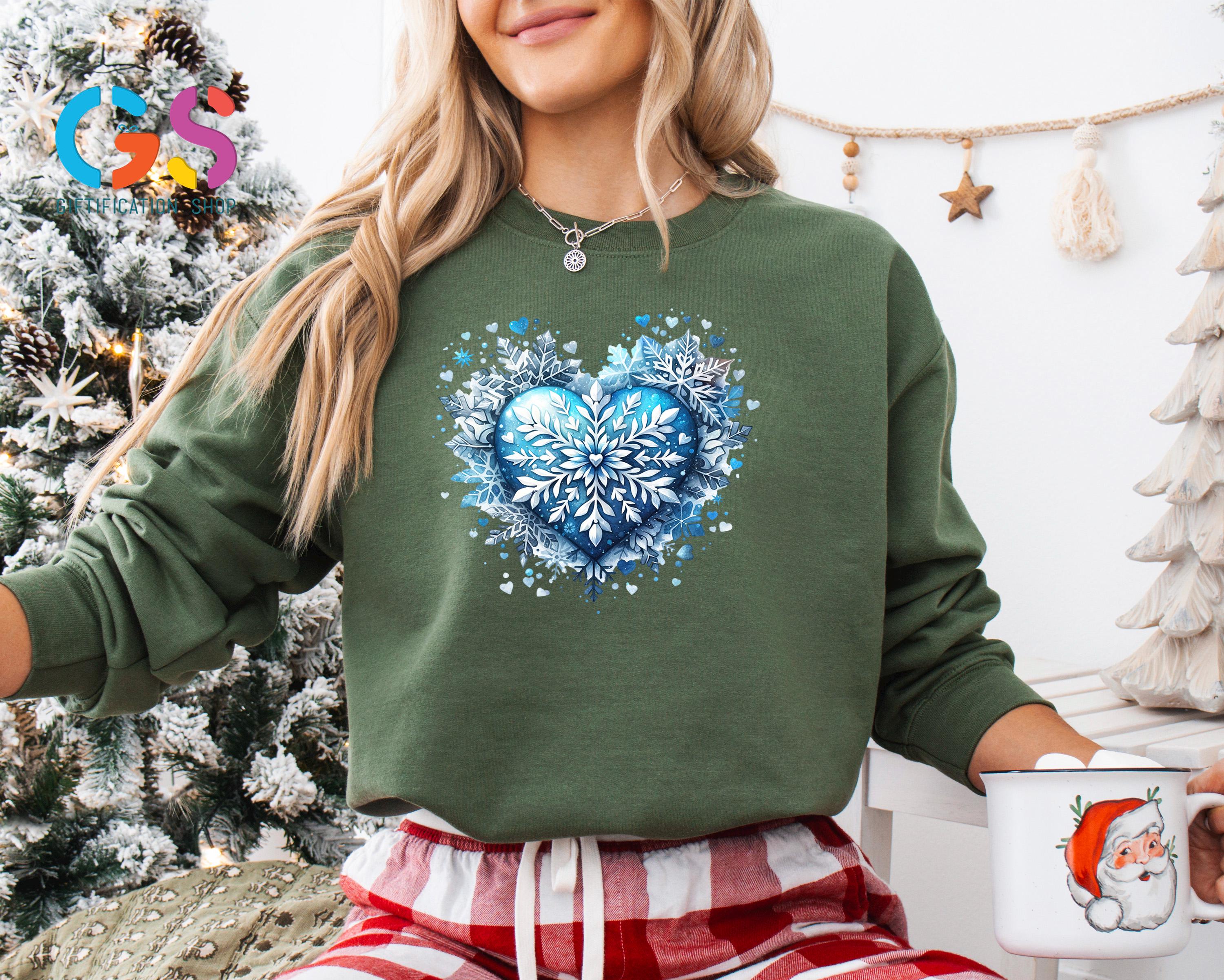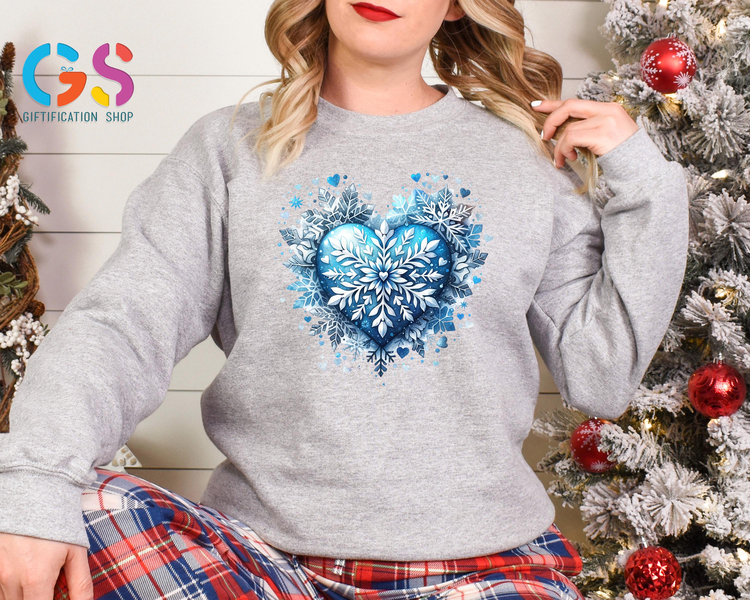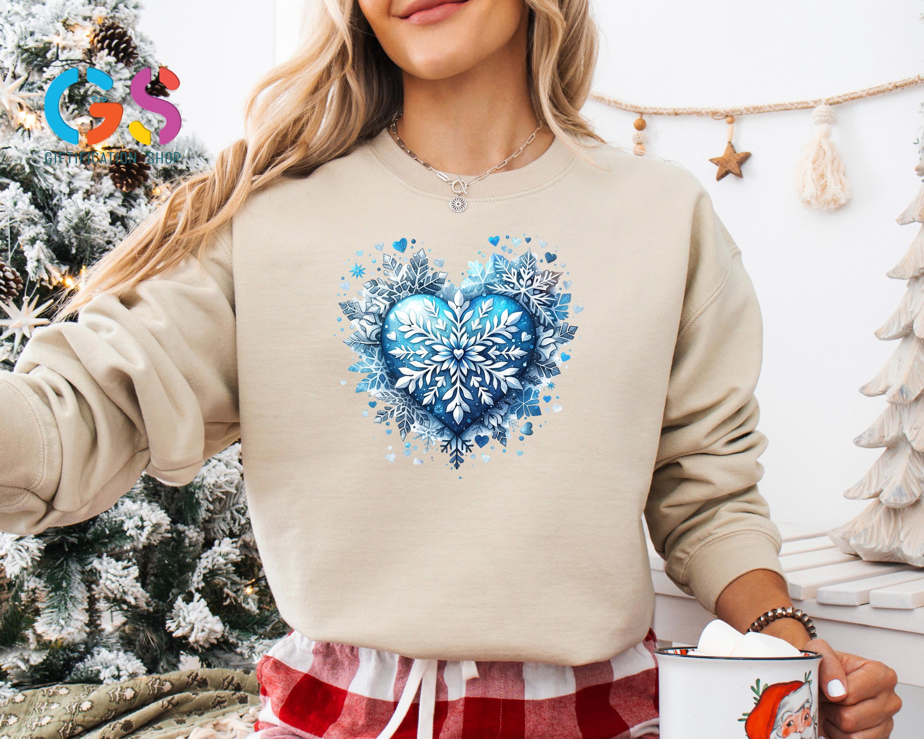 Stay cozy and stylish all season long with this Blue Snowflake Sweatshirt! Featuring a delicate heart and snowflake design, this Cute Winter Sweater perfectly captures those magical Christmas vibes. Soft, warm, and effortlessly trendy, it’s ideal for holiday gatherings, cozy nights in, or festive outings.
