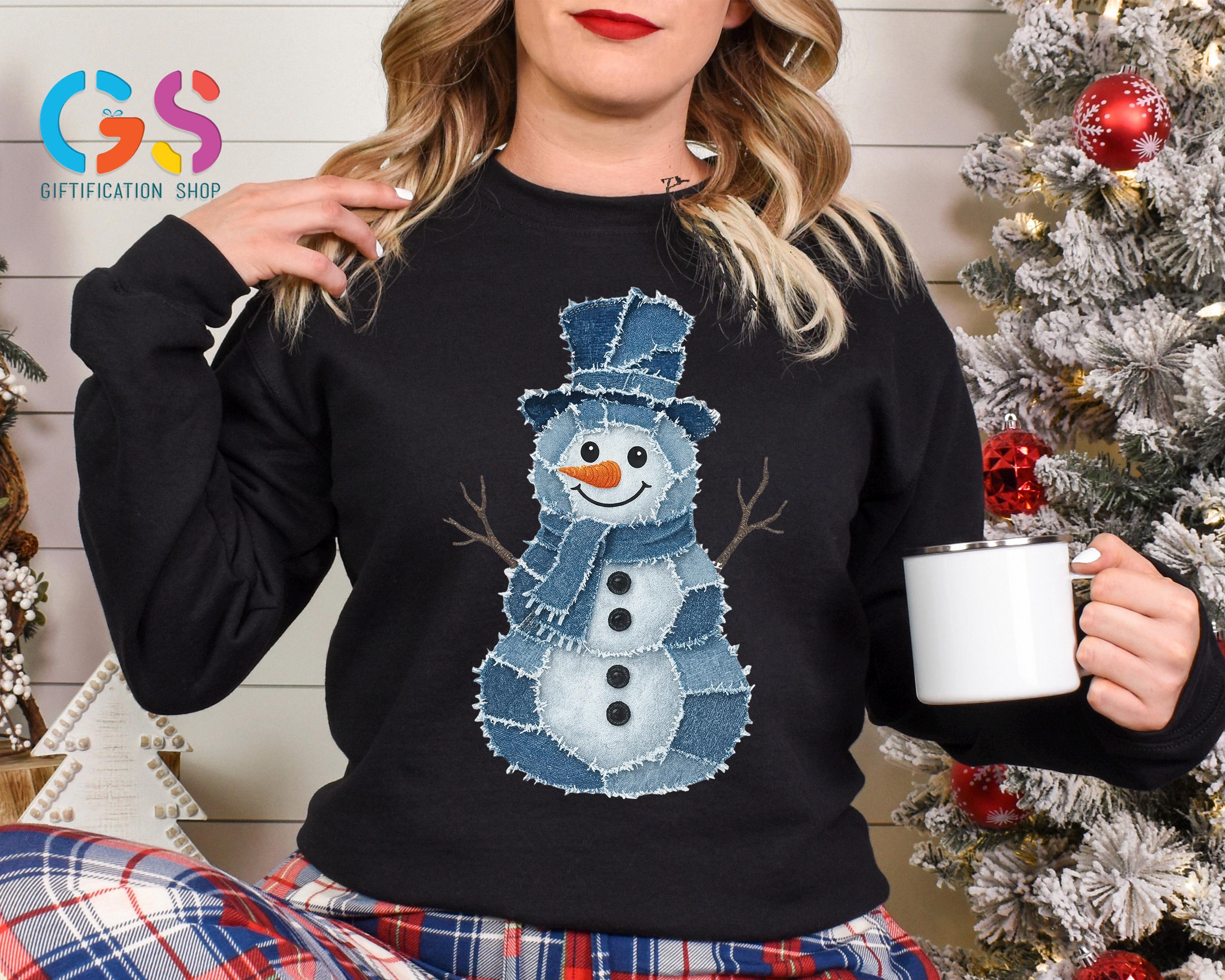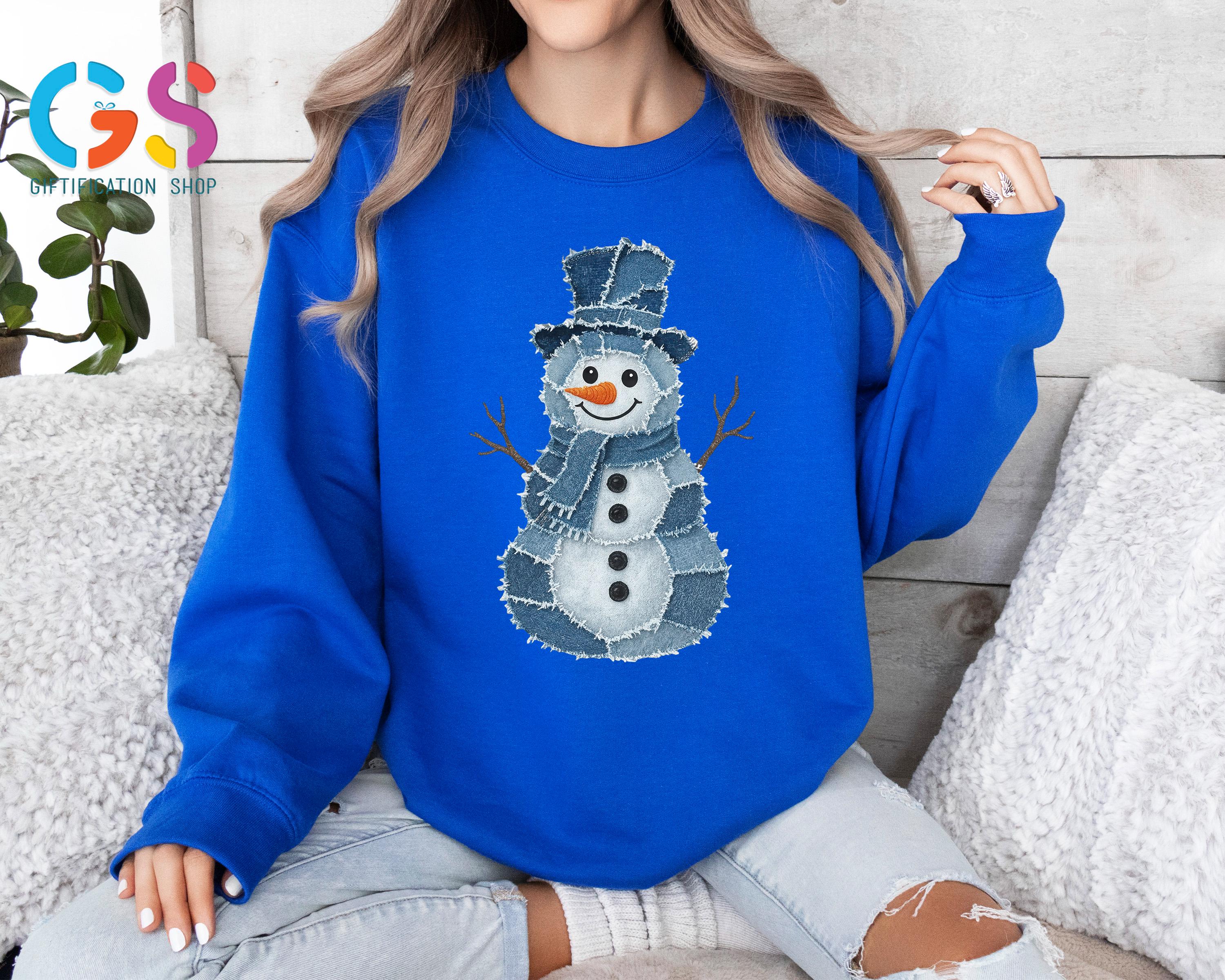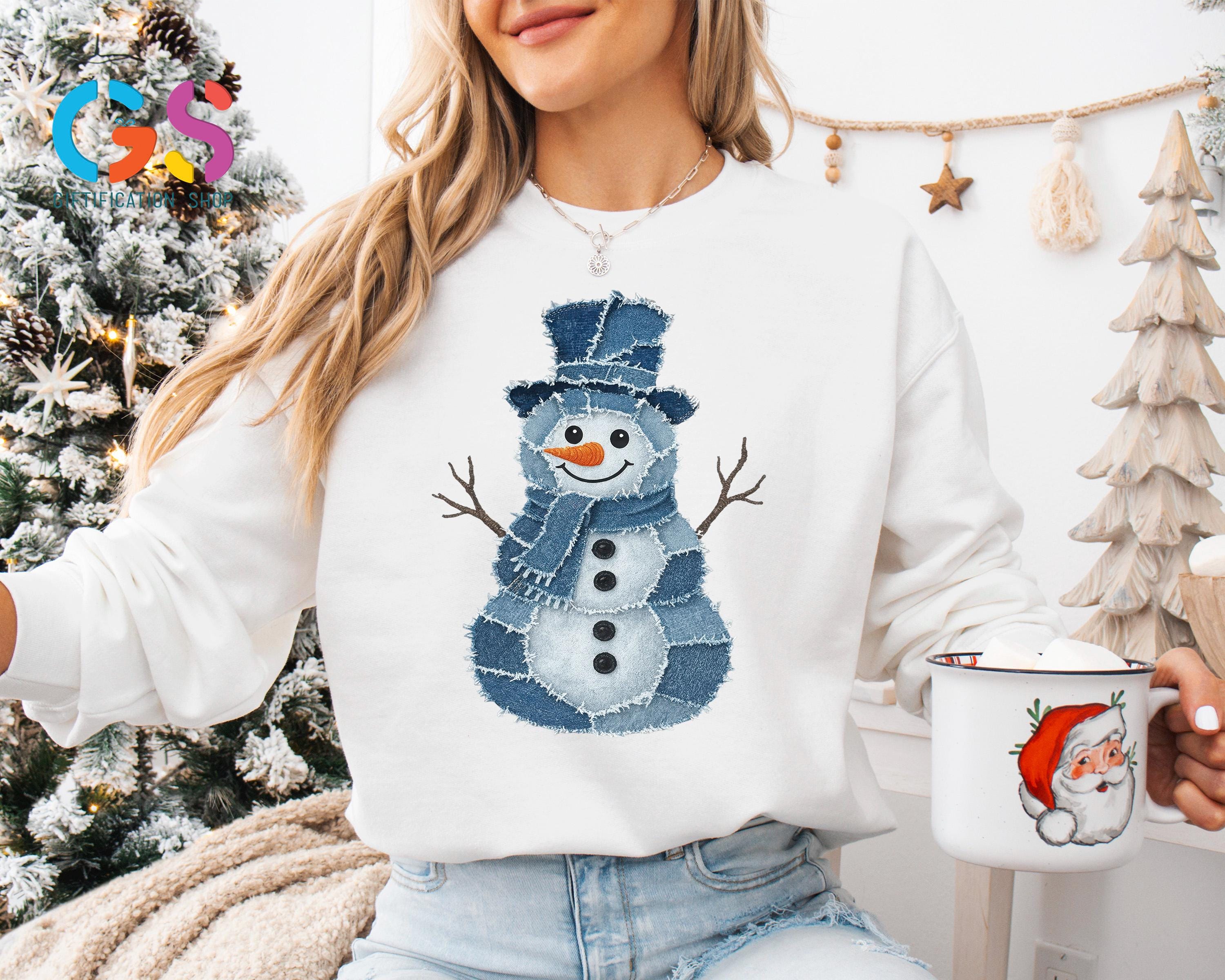 Trendy Snowman Sweatshirt, Winter Sweater, Denim Clothing Snowman, Christmas Hoodie, Funny Winter Gift, Holiday Sweatshirt