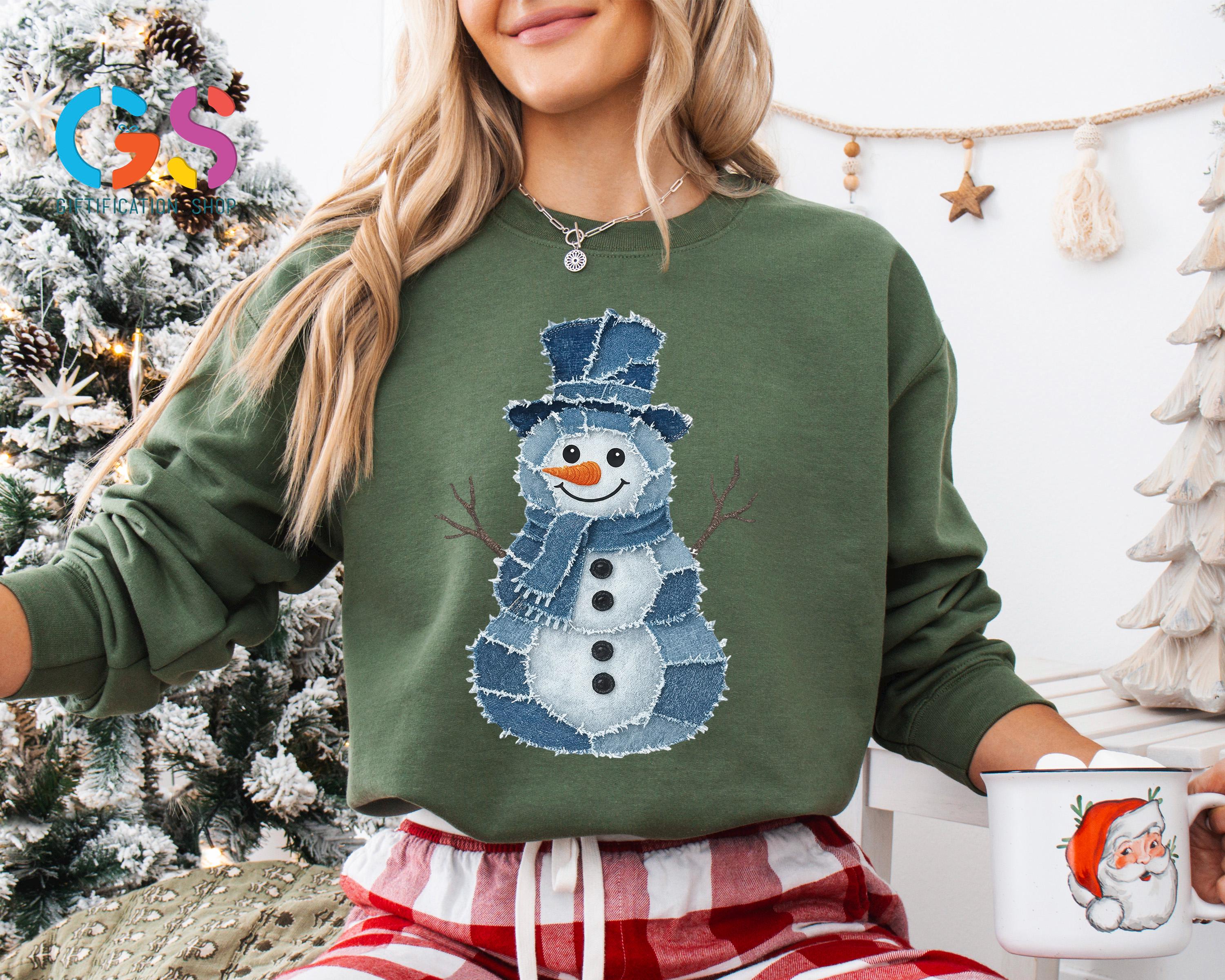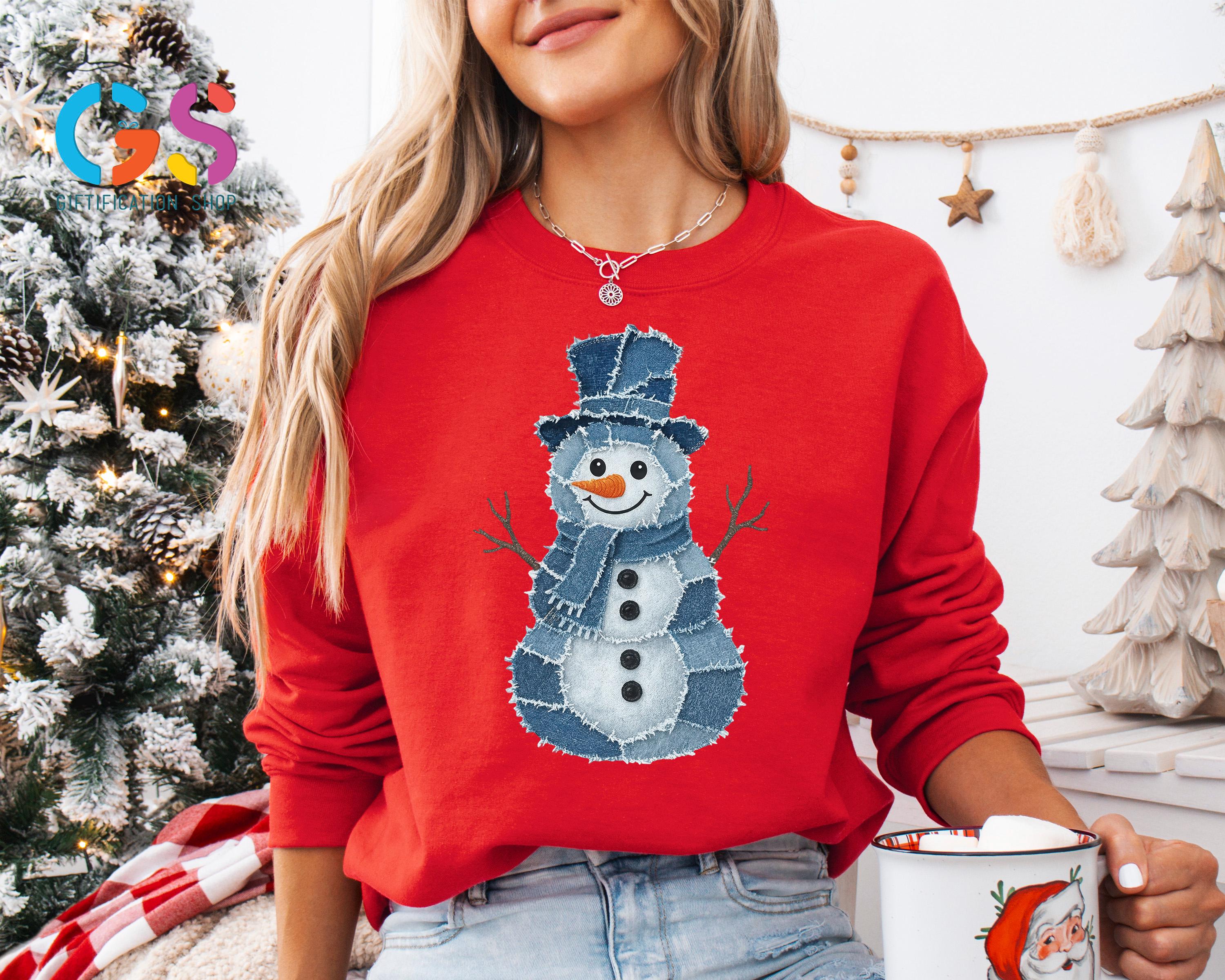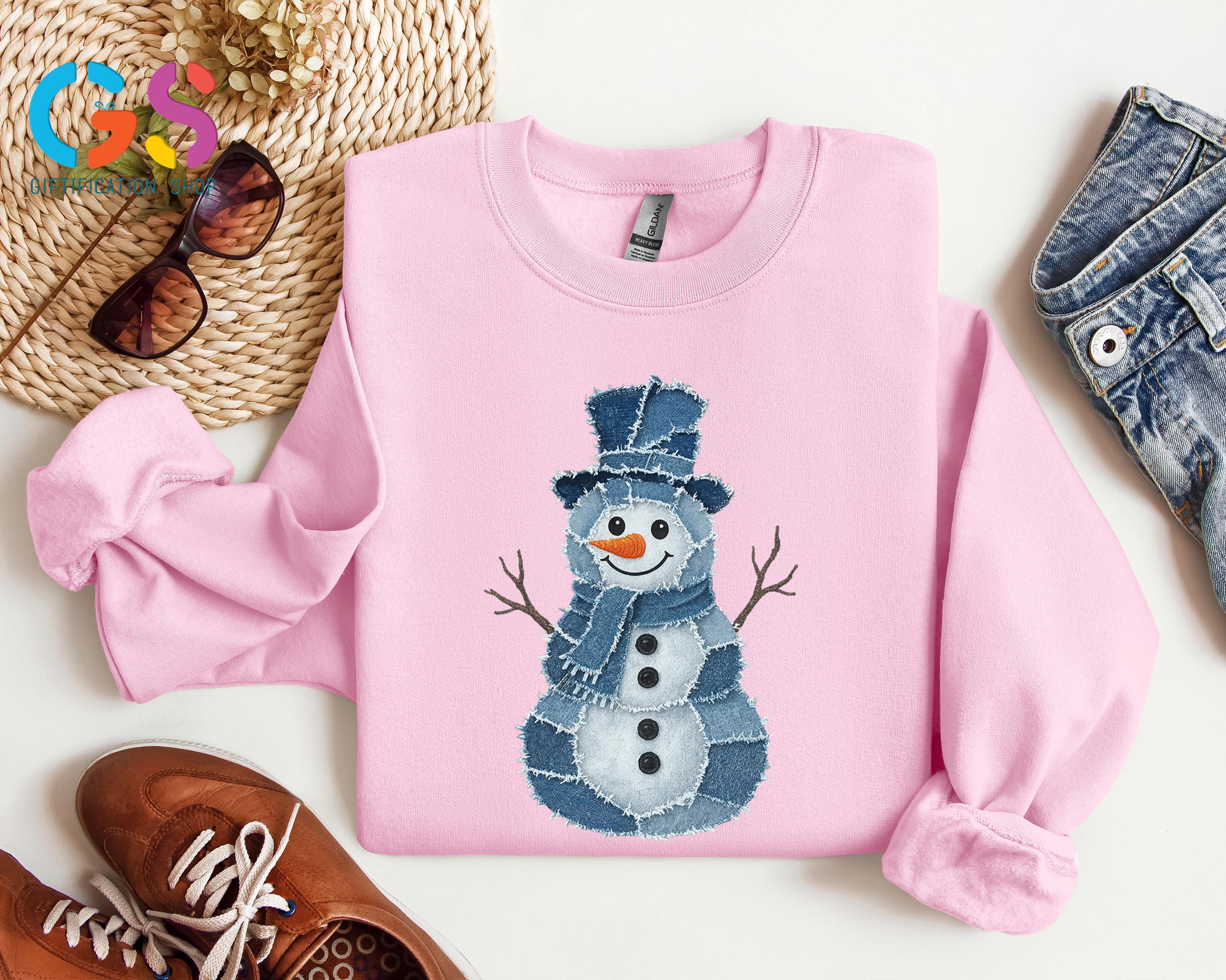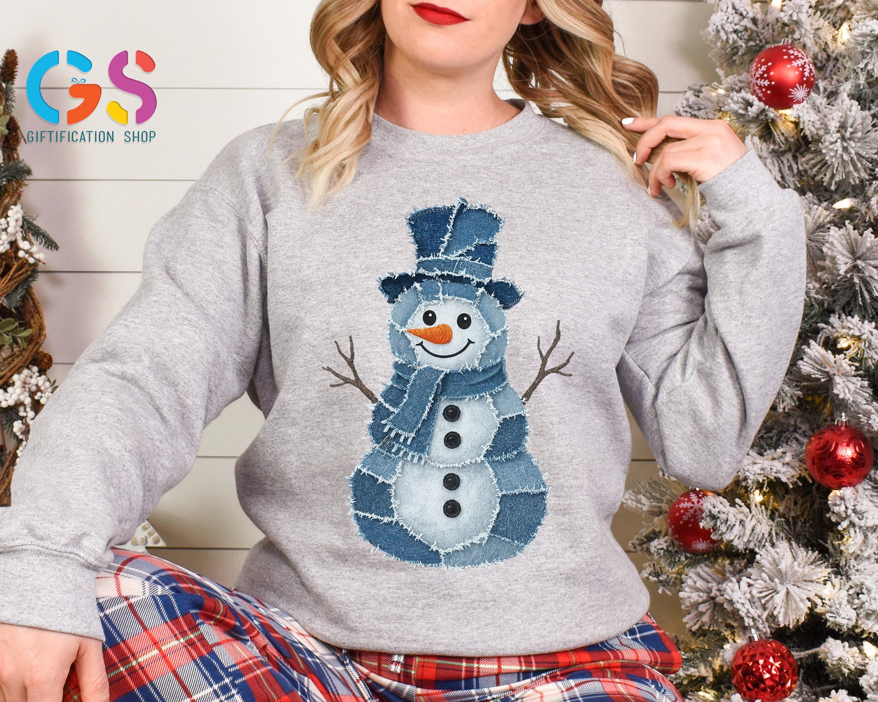 Trendy Snowman Sweatshirt, Winter Sweater, Denim Clothing Snowman, Christmas Hoodie, Funny Winter Gift, Holiday Sweatshirt