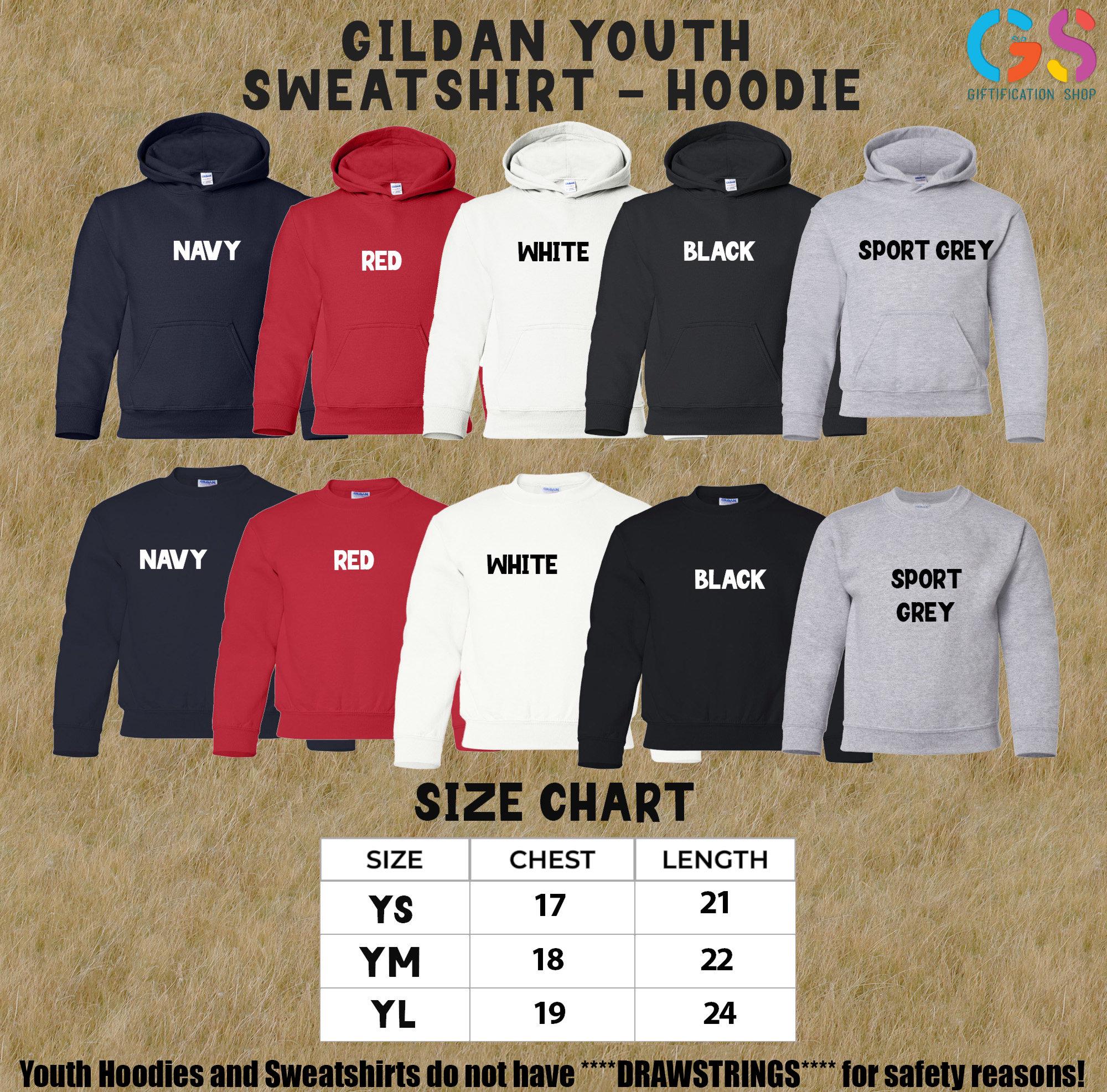 **Youth hoodies and Sweatshirts do not have DRAWSTRINGS for safety reasons.