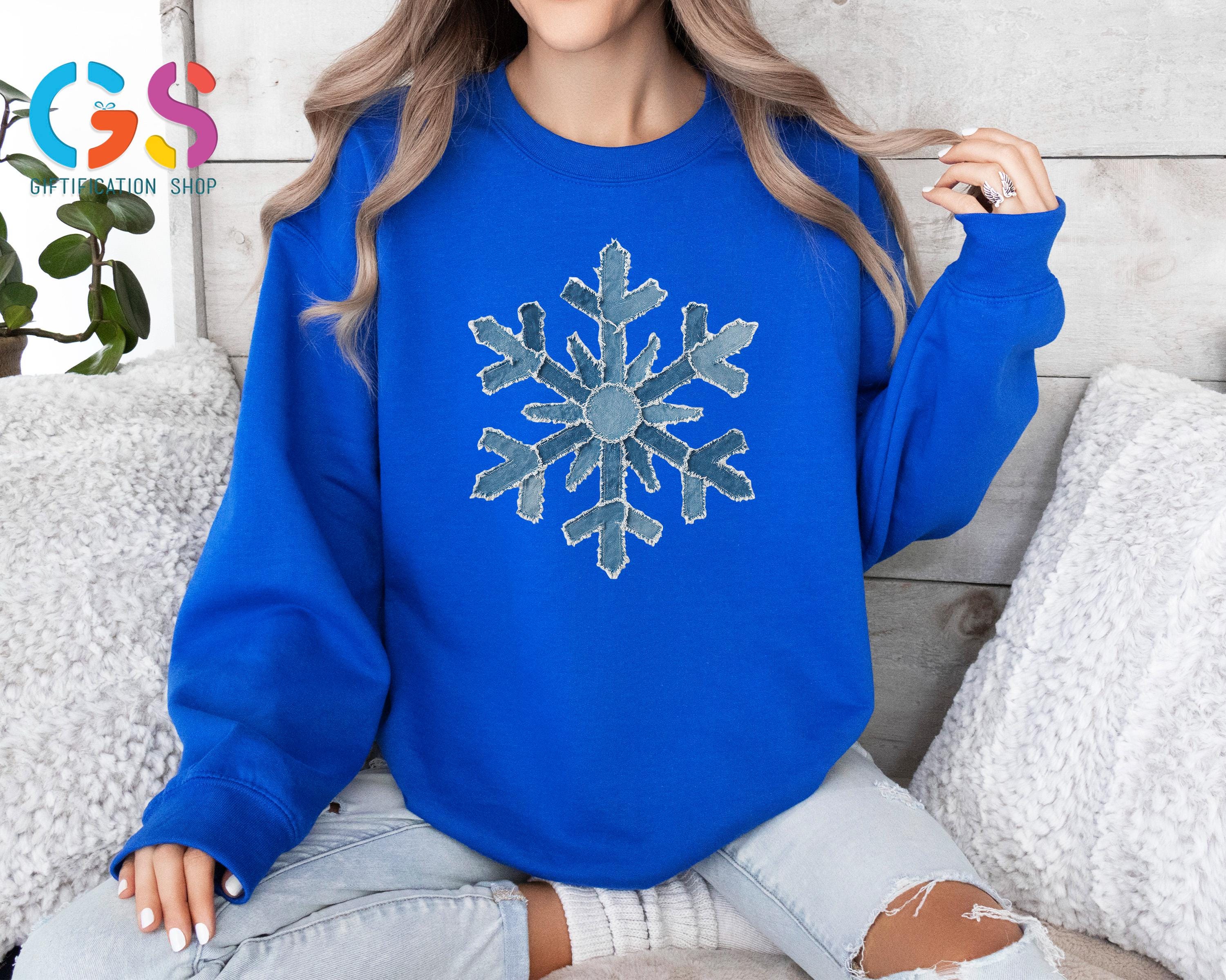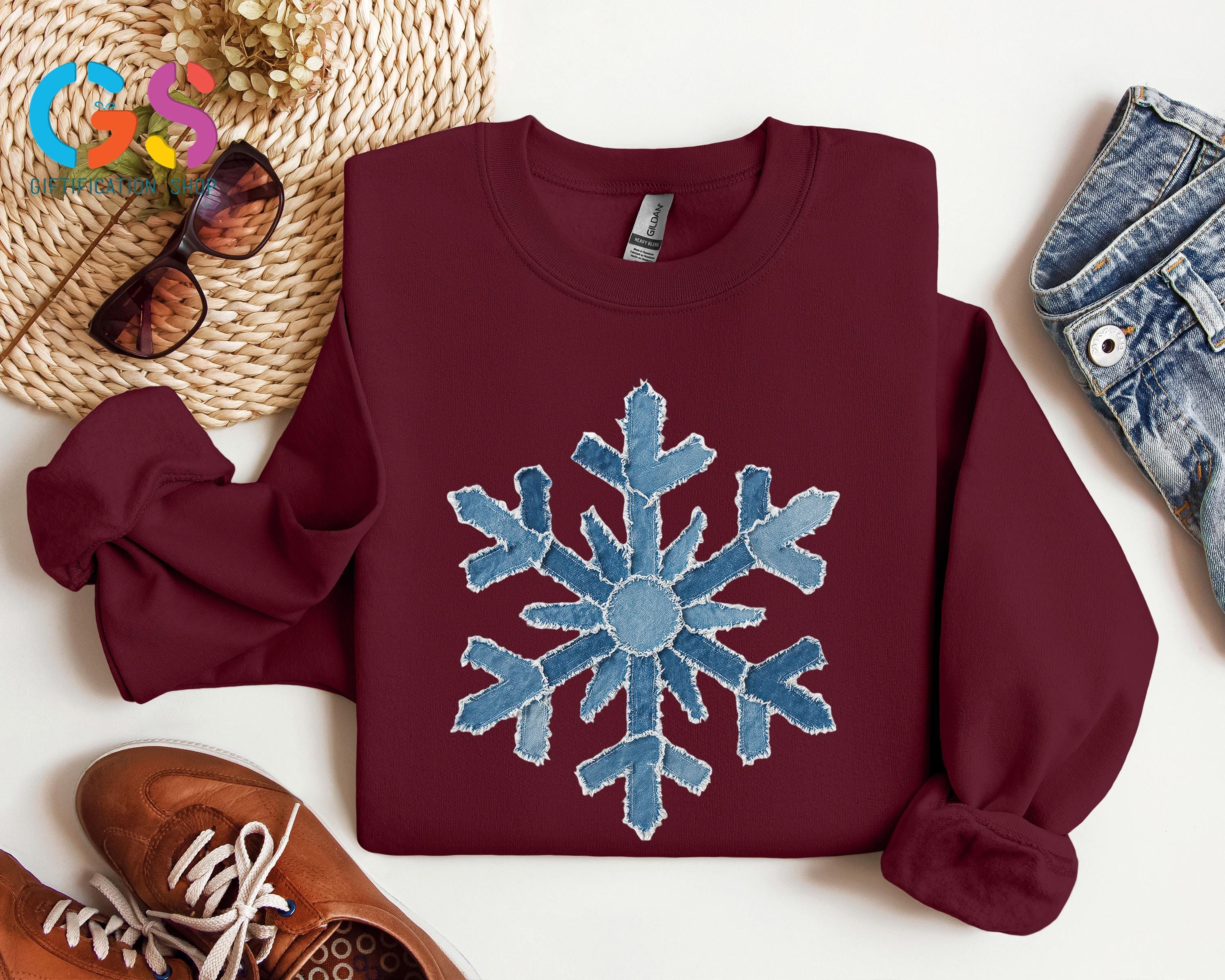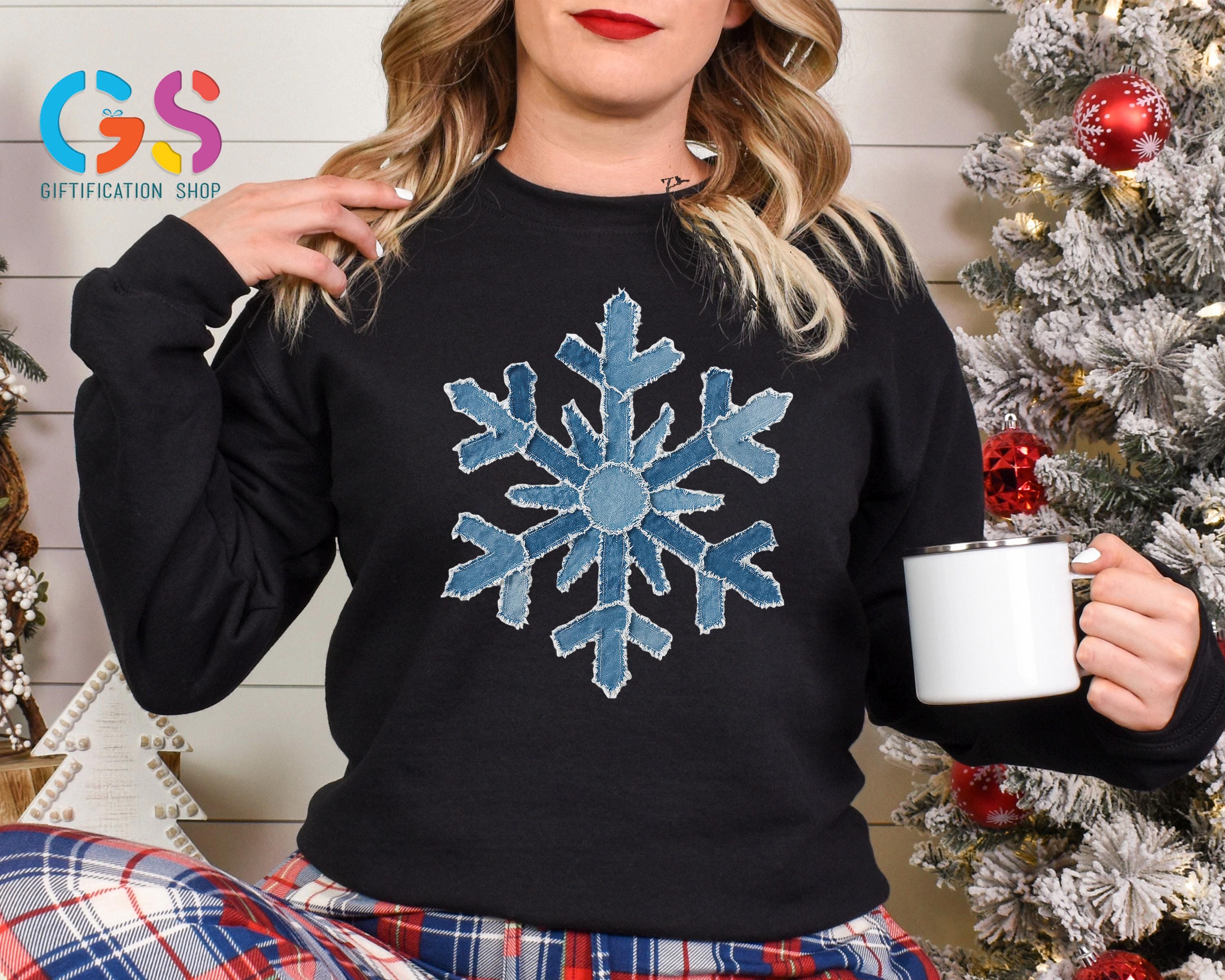 Trendy Snowflake Sweatshirt, Funny Winter Sweater, Denim Christmas Season Hoodie, Holiday Season Gift, Winter Vibes