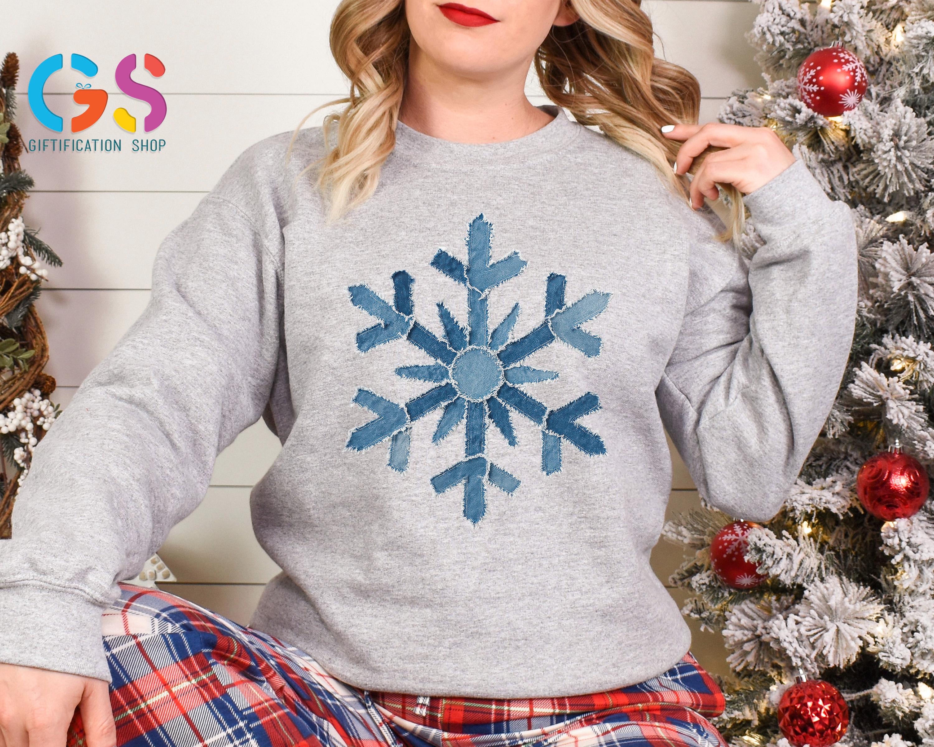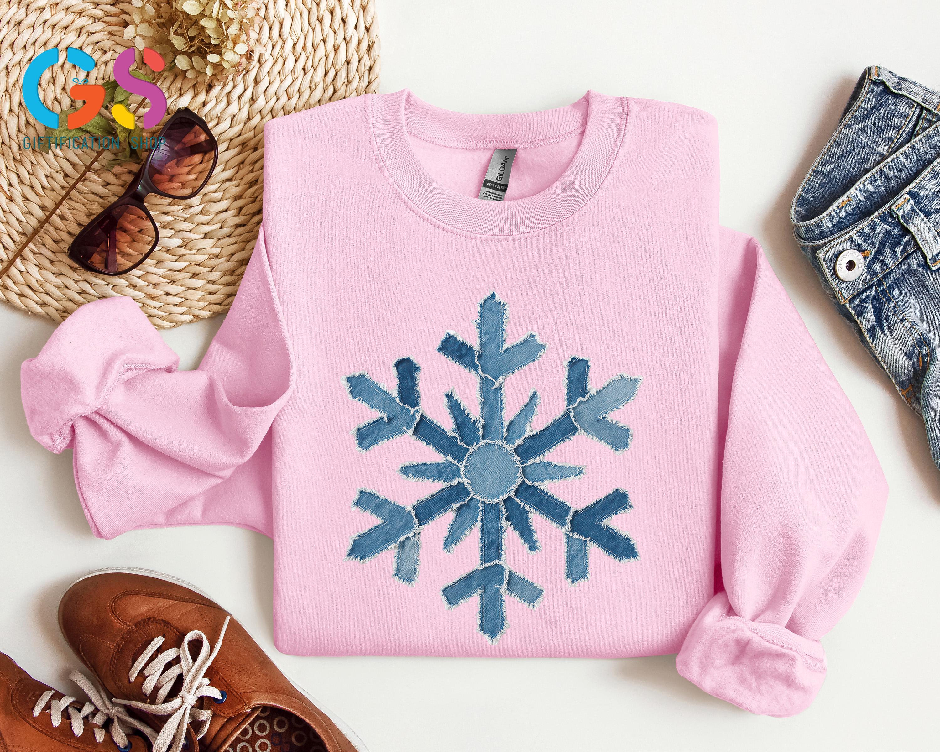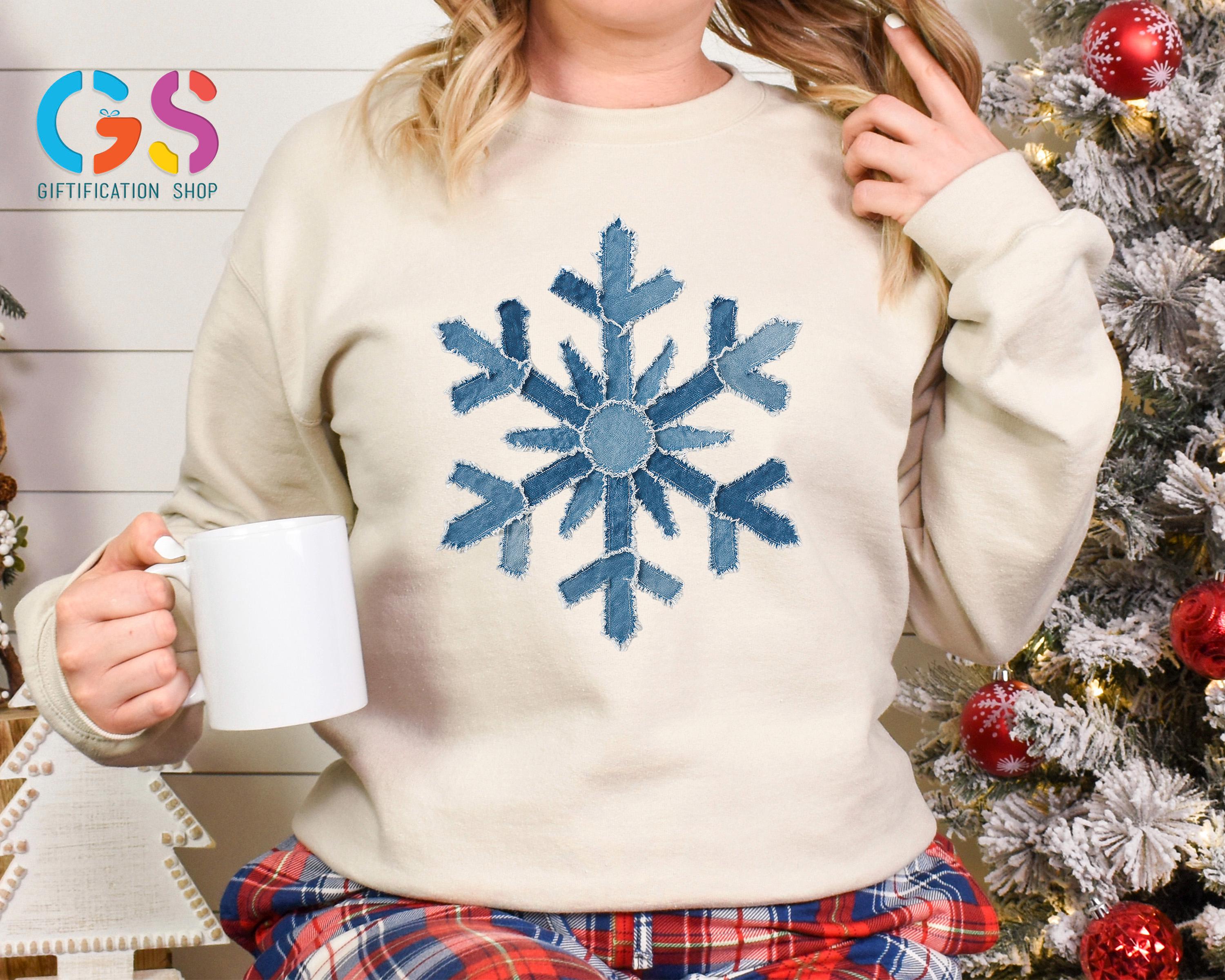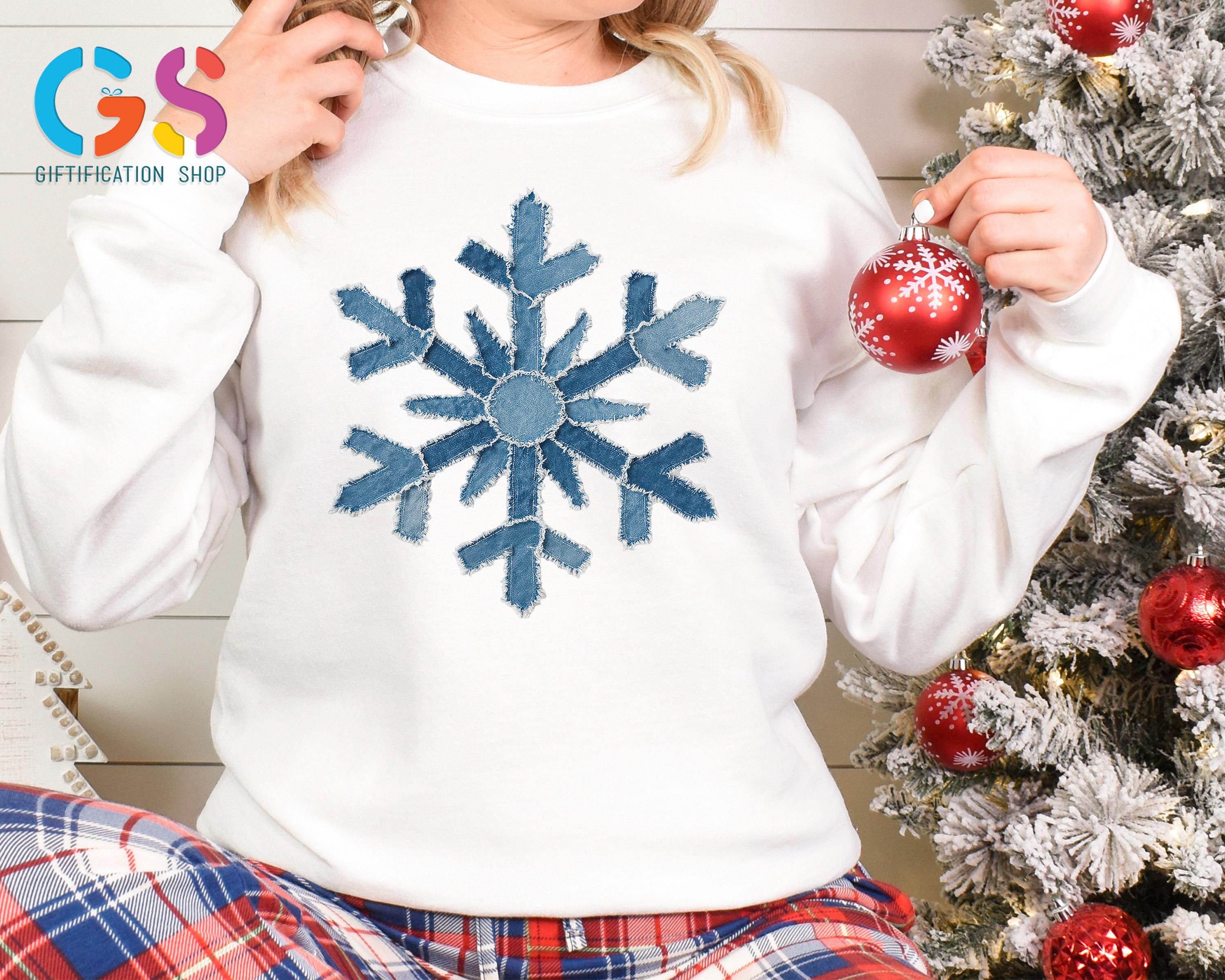 Trendy Snowflake Sweatshirt, Funny Winter Sweater, Denim Christmas Season Hoodie, Holiday Season Gift, Winter Vibes